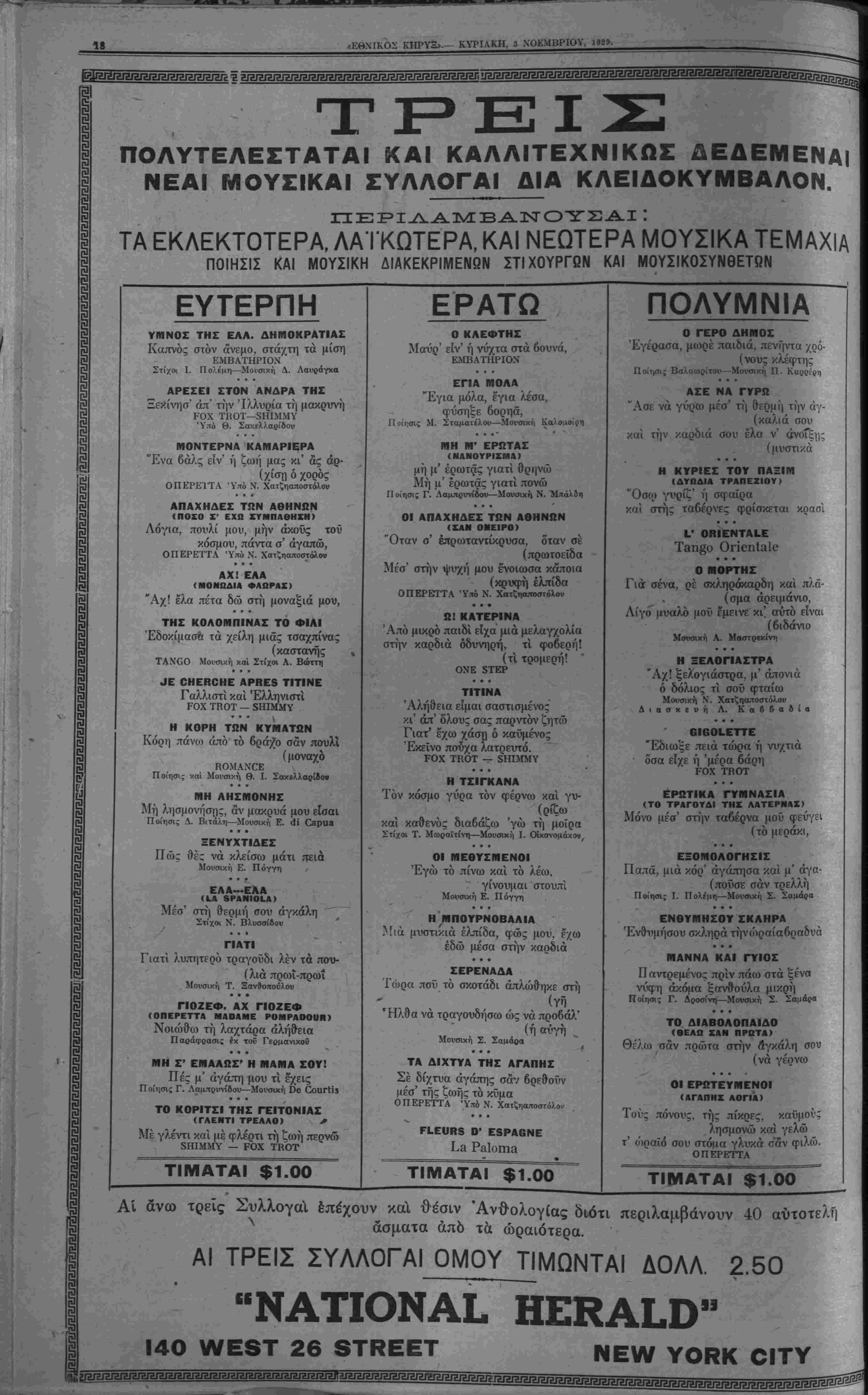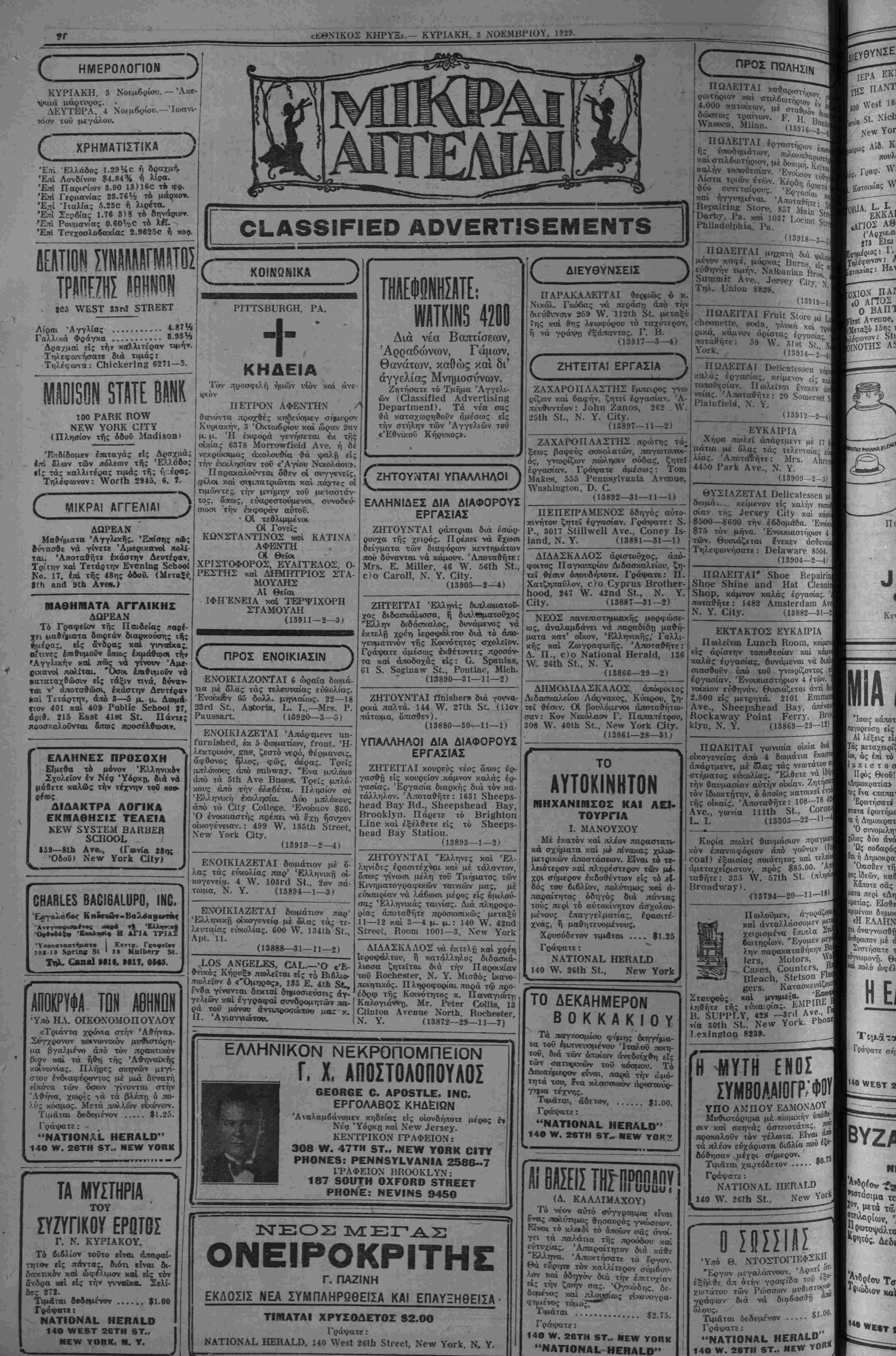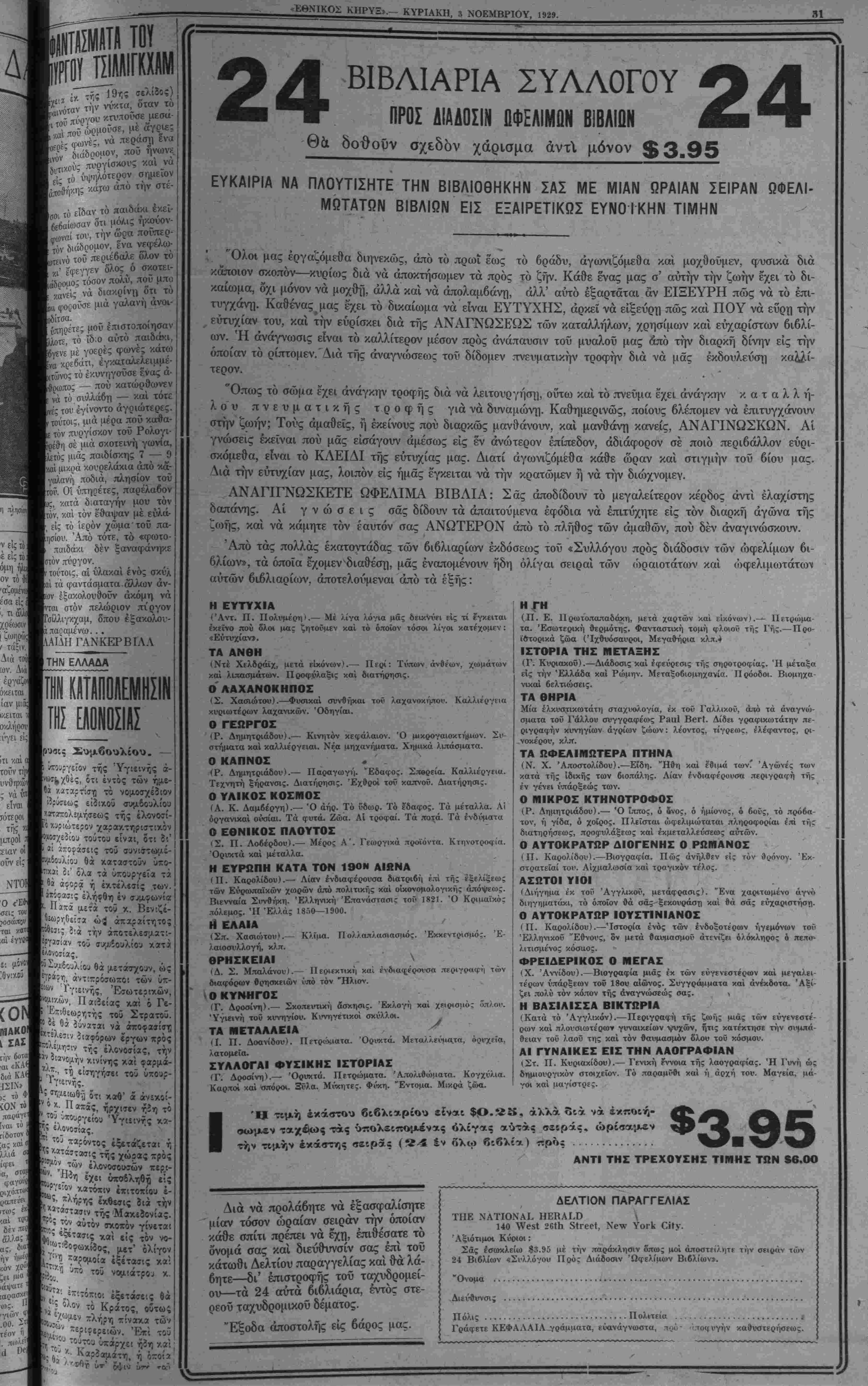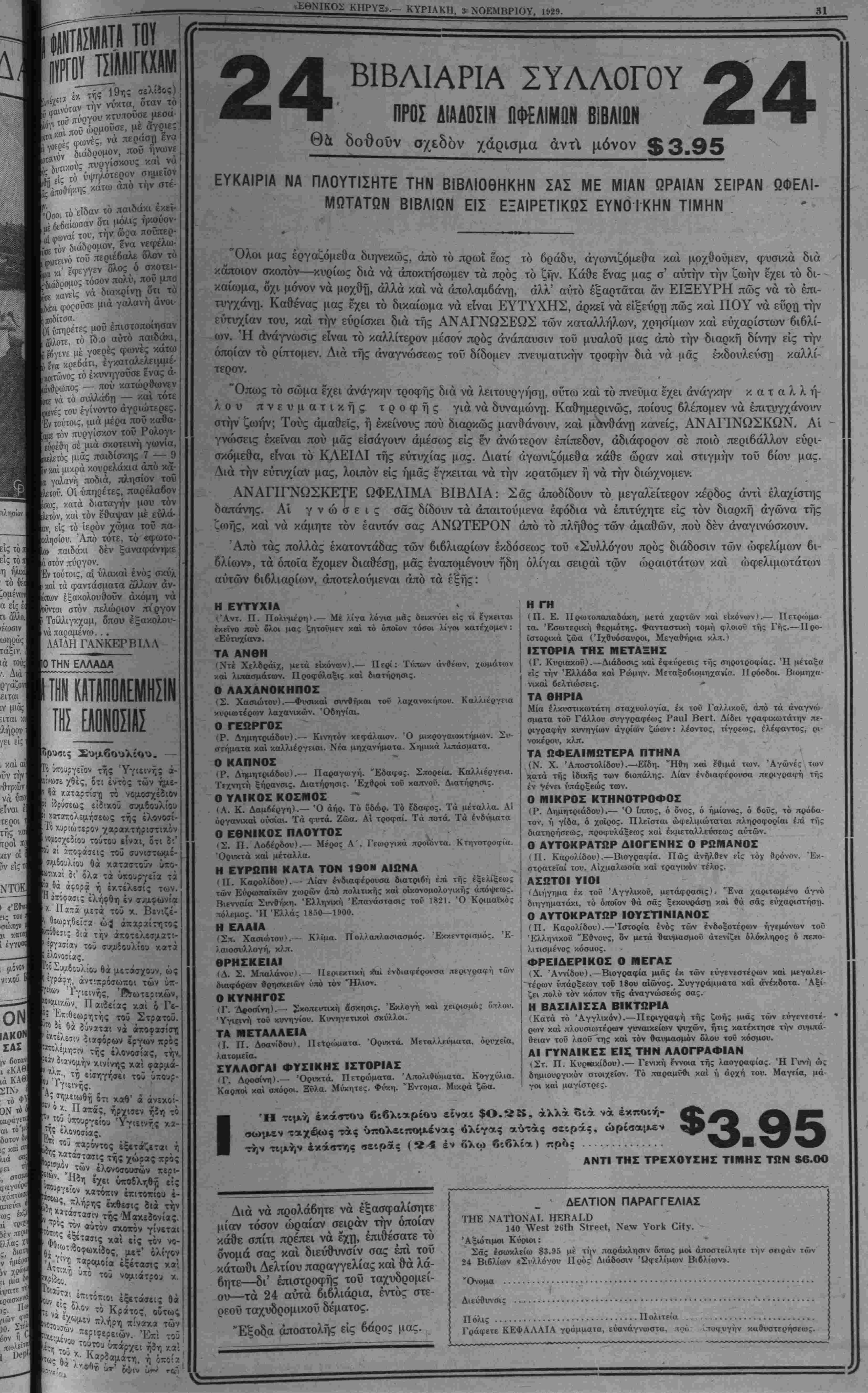 Χο. 5304.________ΝΕ\ ΥΟΠΚ, ΚΥΡΙΑΚΗ, 3 ΝΟΕΜΒΡΙΟΥ, 1929.