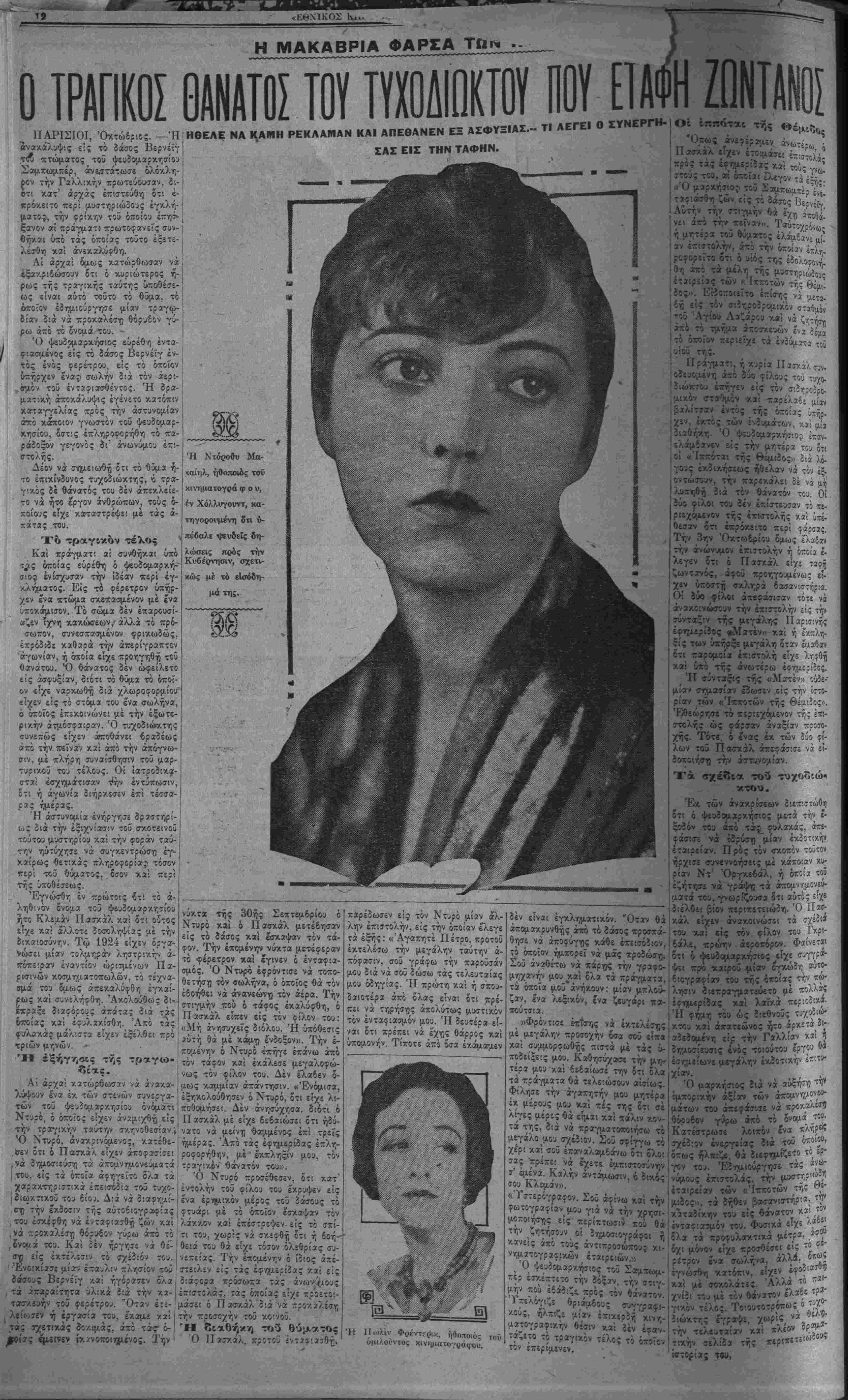 <ίΐ/.ο, απέθανε μ έτό μειδίαμα είς τα νείλη της, άν καί ή καρδιά της 6αί(ος Ι'κλαιε διά την σκληρότη- , τοΰ πράγματος. Ηκολούθησε τα δήματα τοΰ Μπροντγουαίη, τα Ι ο-τοΐα ήσαν πολύ γρήγορα διά την Ι "-ιδίαν της. Απέθανεν ώς κάλυξ Ιοοδου υπό την πνοήν τοΰ βορρά. Το Μπροντγουαίη άφαιρεΐ μέγα Ι"|ν ζωτικότητα άπό τάς ευνοουμέ- |να? του·- Άιαιτεΐ όπως χορεύουν Ιναι τραγονδοϋν καί γελοΰν καί χει- |οον0μοϋν άπαύστως καθ' δλην την ■«Μνείαν τοϋ θέρους, δταν πολλά ■'-α πρόσωπα περνοΰν τόν και- >ν των είς τάς παραλίας ή τα ό-