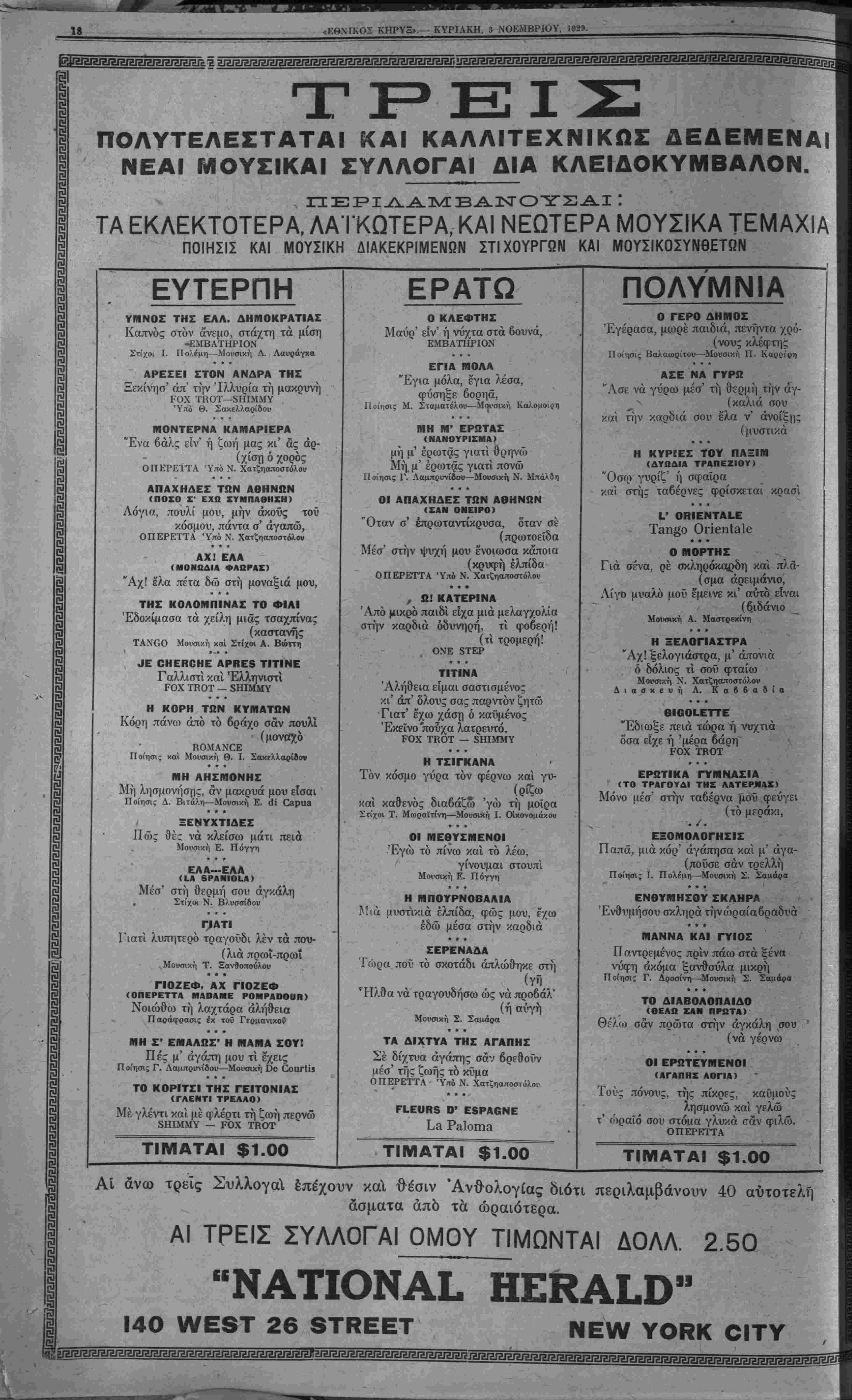 Νο. 0304. -ΝΚΥν' ΥΟΚΚ, ΚΫΡΙΑΚΗ. 3 ΝΟΕΜΒΡΙΟΥ, 1929.