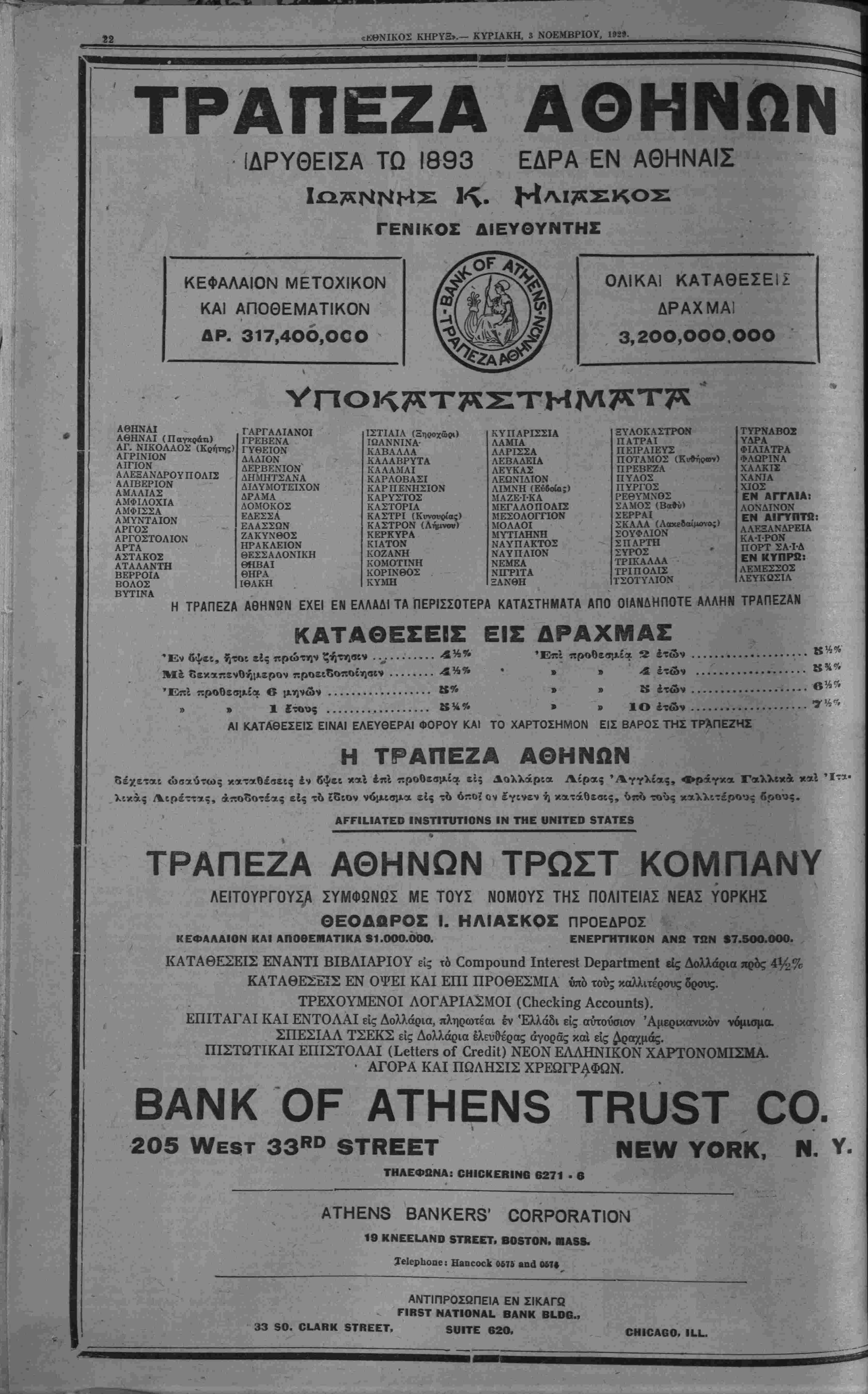 ((/οΰ 'Επιθεωρητοΰ των Τραπίζών έν Νβςι Ύόρκυ, κα-