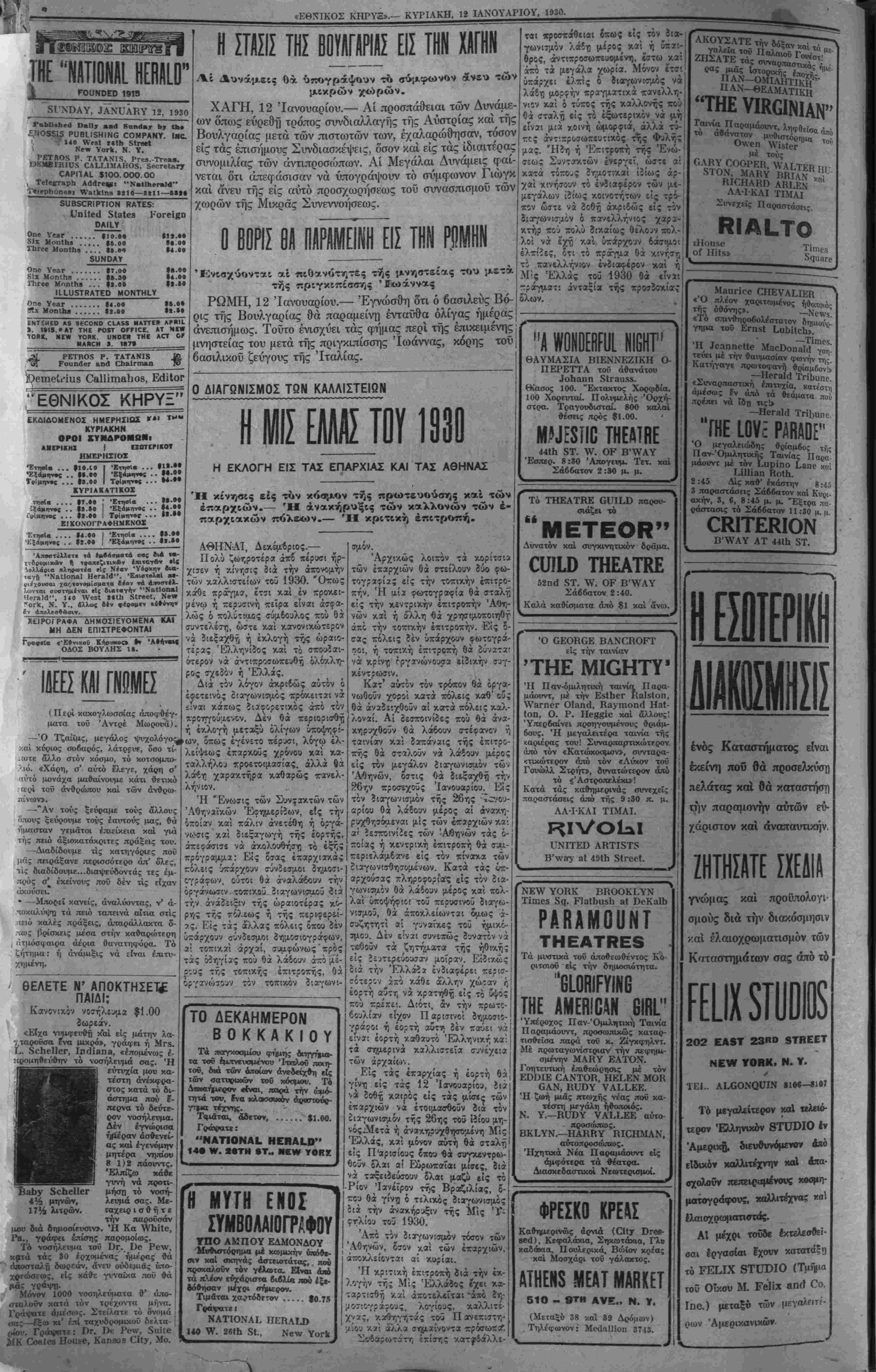 ΝΕΥν ΥΟΒΚ, ΚΥΡΙΛΚΗ, 12 ΙΑΝΌΛΡΙΟΥ, 1930