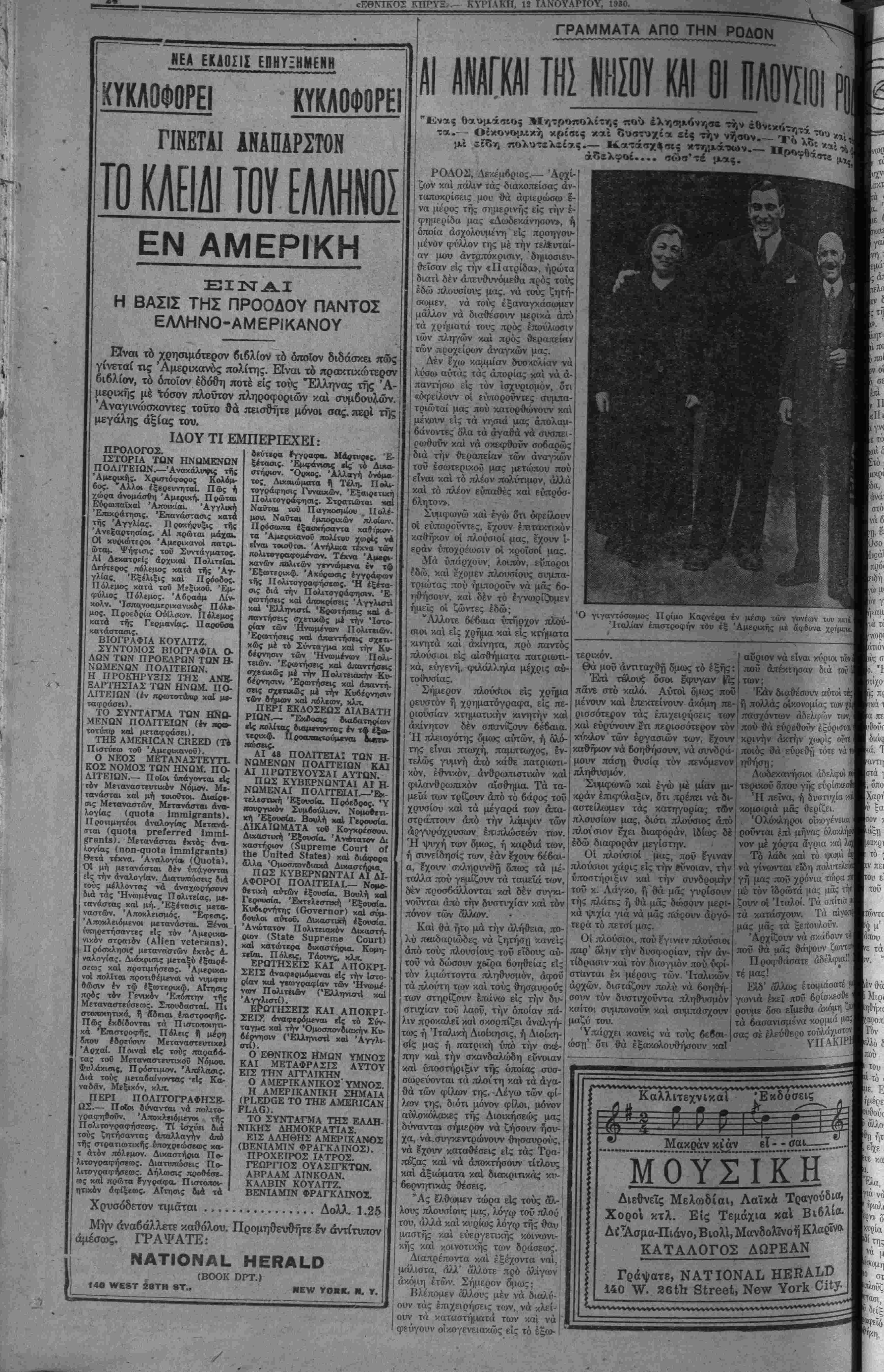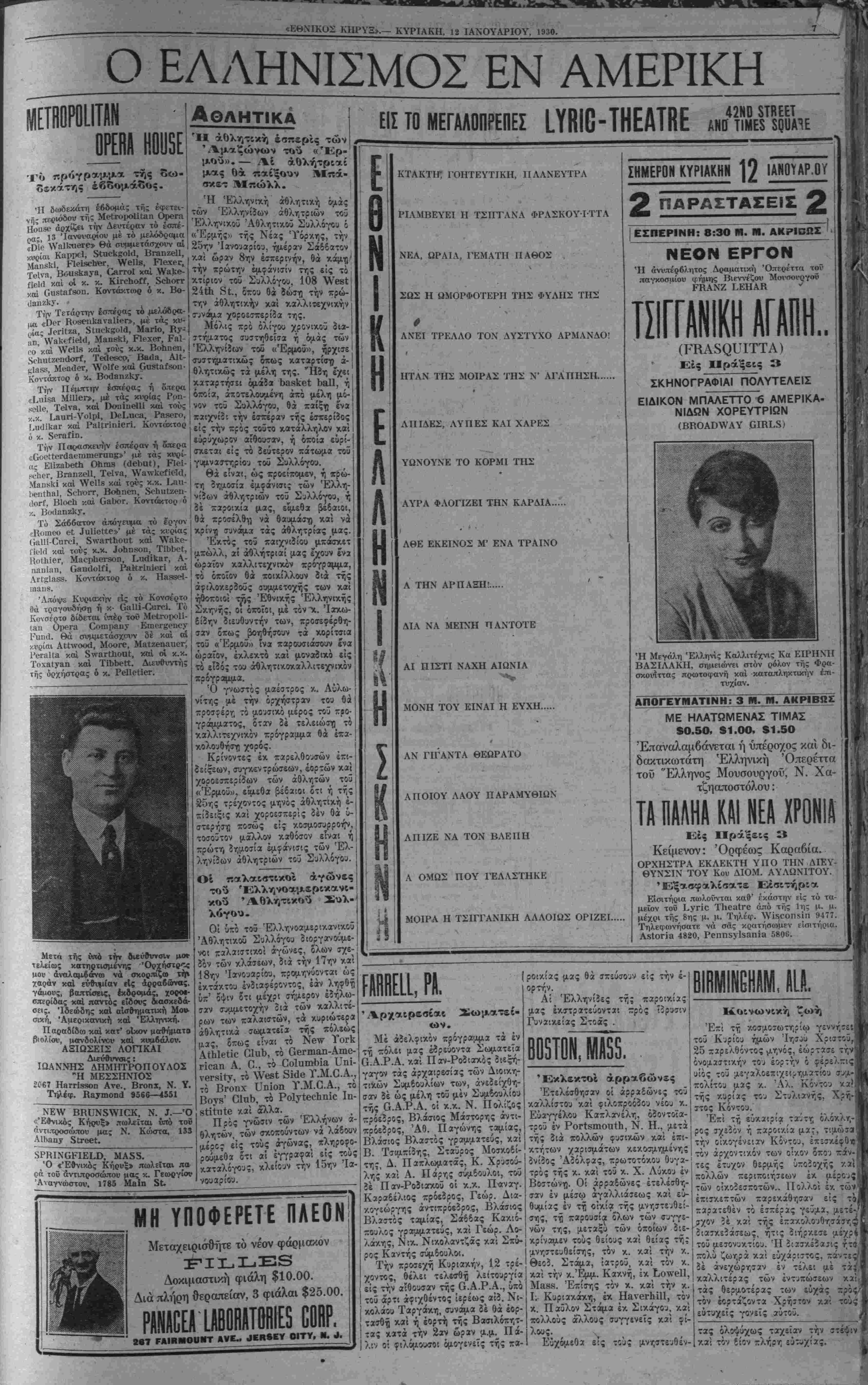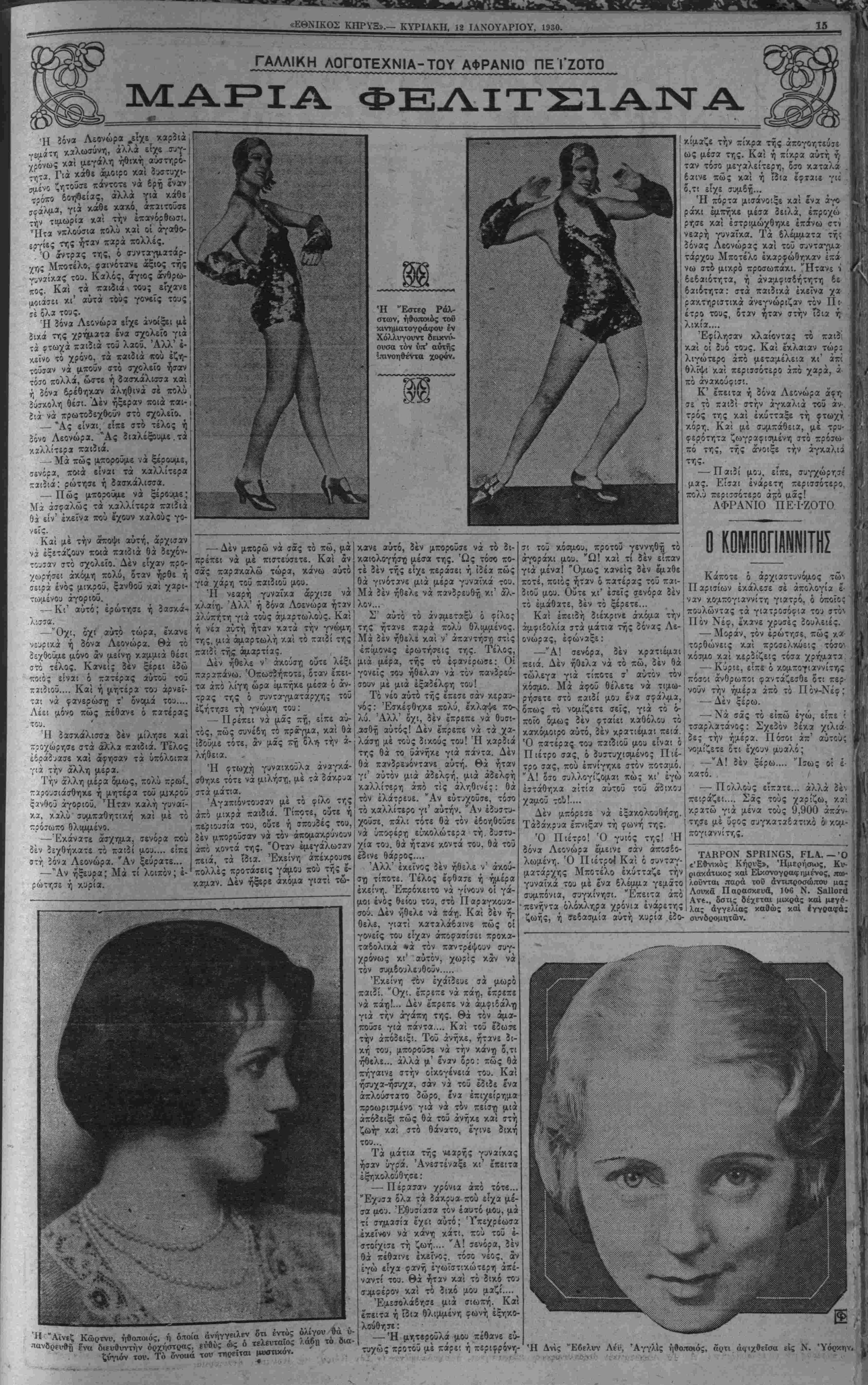 τ<*» σος. Δέν κηλιδώνει την χκραλήν 1 τα ροδ-.α. Μεγάλη ψιάλη 1.00 δολλ. μέ την άγγιλΐαν ταύτη». ΟΕΝΕΠΑΙ. ΡΒ00ΙΙ0Τ5 ίΑΒΟΗΑΤΟΗΙΕ5, Ν. Η. 703 — 5ι1ι δι-, Ν. ν/. ν35ΐιίη§ΐοη, ϋ. Ο. 'ΕπΜΓτρέ?εται ΐ(; την 'ΕλλάΟα ντε Αμερικανικόν θ«ραικντήο«·)ν Κ. ΛΙΝΑΡΔΟΥ Μό; Σανκοάτοΐίς &οι». II Άθήν* ΰ ασφαλώς χαΐ άναιον- ά λ Ευμ νχκτημβτα. Μέθοδθΐ νε-^τάτι». ΦΥΟΤΡΙΧΟΝ ΤΟ ΜΟΝΟΝ ΦΑΡΜΑΚΟΝ ΠΑ ΤΑ ΙΗΑΛΛΙΑ ΣΑΣ Κατά την βοτανι- κήν είναι «ΚΑΘΕ ΡΙΖΑ διά ΚΛΘΕ ΠΑΘΗΣΙΝ» έ- τομένως τό ΦΥ- ΤΡΙΧΟΝ τό ό- παράγεται ρους είναι τό μό¬ νον άντίδοτον διά άπό ρίζας καί βπό τα μαλλιά σας. Κβ8· ϋ.δ.Ρβι. ΟΗ.'Εξαλείφει την Ν. Ο. ΡΑΒΑΚΟ5 πι,ιυρίόα, σταμα- 'ΕνΕυβέτης χαΐ τή χήν φαγούραν καιοσχΐυαατής. χ<χΐ τρΐχόπχωβΐν 136 νν*. 42ηα δΐ,καί θεραπεΰει ά Νβ— Υογ^ ΟΚν. λανθάστως έκξέ- ΜβιΙ&ΙΙϊοη 3814 ματα και τρΐχο- φάγον, δέν περιέ- χει Ο1ΝΟΠΝΕΥΜΑ ή άλλας χη- ιαχάς, η λιπώδεις θυσίας, διατη- ρεί τό κχένισιια όλην την ημέραν χαί έπαναφέρει τό φυσιχόν χρώμα Ηΐς τα μαλλιά σας. Άξίζει μί/ δο- κιμή διά νά πεισθήτε. Γράψατε την κατάστασιν σας διά νό^ ταρασχενά- οω τό φάρμακον αναλόγως. Πω- λεϊται είς 8 καί 16 ούγγιών φιά- λας, πρός $2.00 καί $4.00. Στέλ- Αεται παντοϋ προπληοωτέον ή & Ο. Ώ. Έν αηϊ-αβο, 111. πωλεϊται είς τό ΜαΓδήβΙΙ Ρΐβΐιΐ δΐθΓβ. ΑΓΓΛΙΚΗ ΣΧΟΛΗΤΒΙΟΗ Α Μόνον $5.00 μηνιαίως. Διδασκα-λία άτομική, Άγγλιστί—'ΕλληΛ-ι- στί, παρ' Άμίρικανίδος, κατόχοΰτής Έλληνικής. 'Ανοικτή οπό 10 .τ- μ. εως 10 μ. μ. % 5Β4 - 7ΤΗ ΑνΕ. (Μεταξύ 40—41ης 'ΟδΛ) ΝΕ¥Τ ΥΟΒΚ