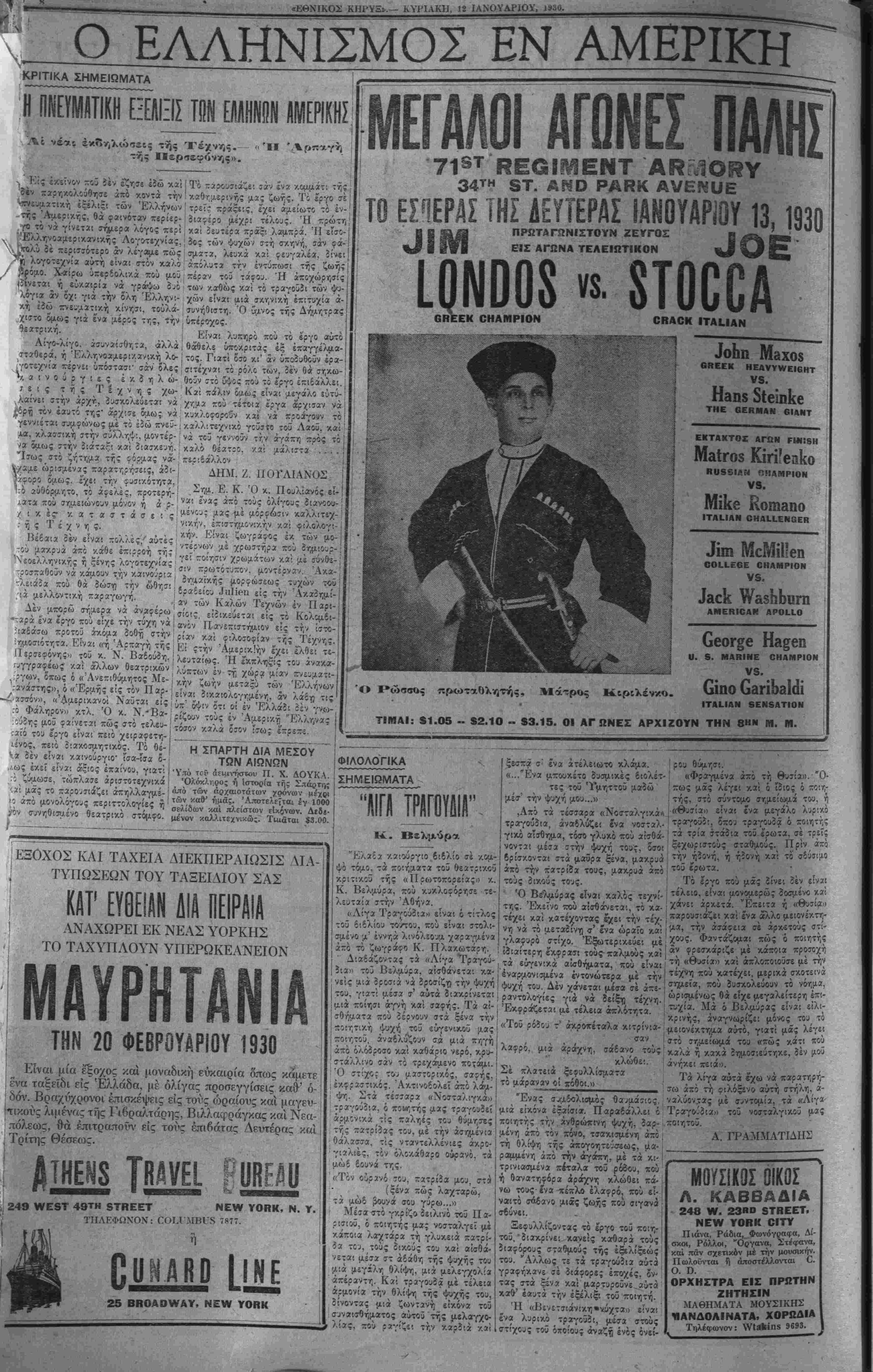 ΧΕλΥ ΥΟΚΚ, ΚΥΡΙΑΚΗ, 12 ΙΑΝΟΥΑΡΙΟΥ, 1930.