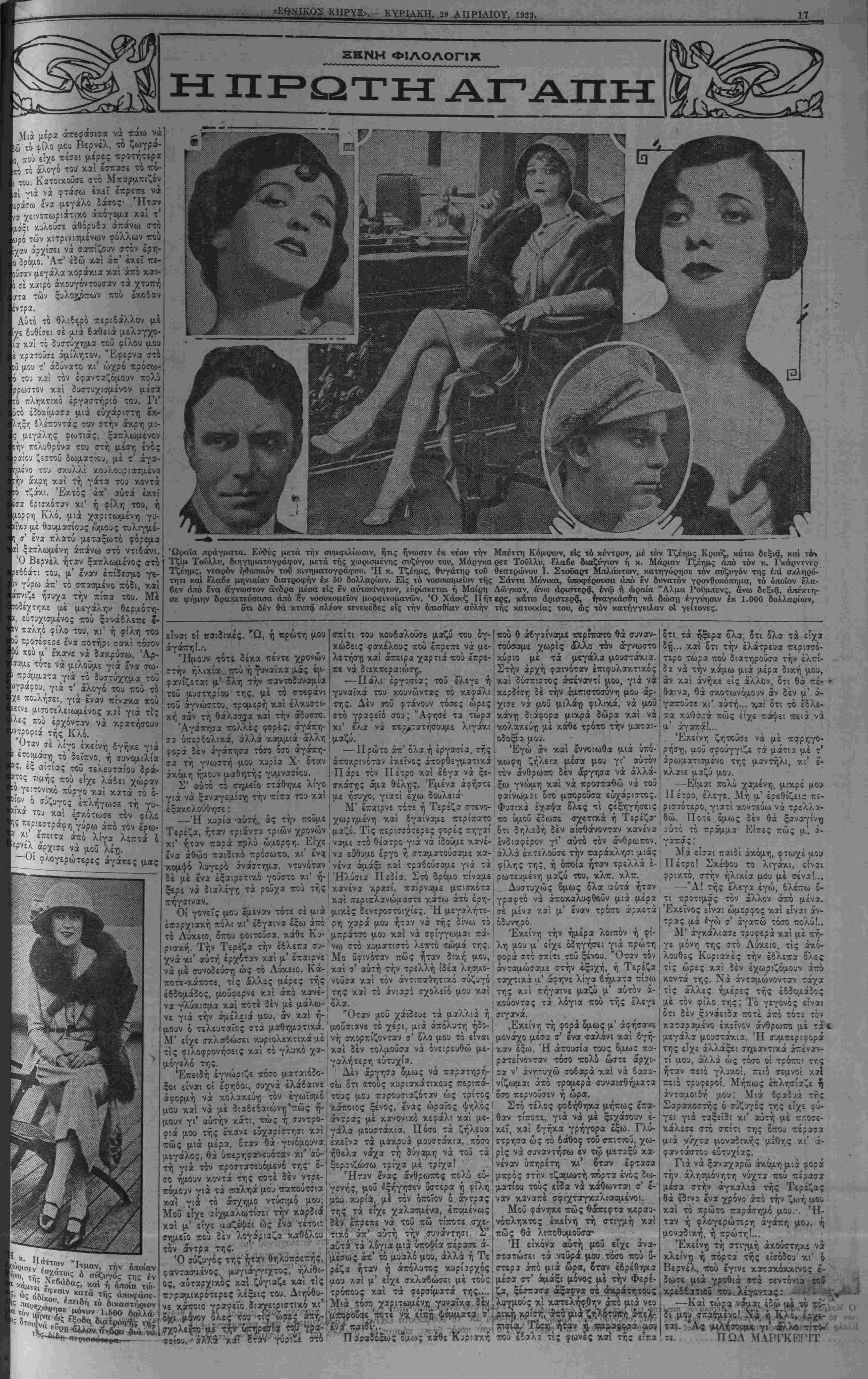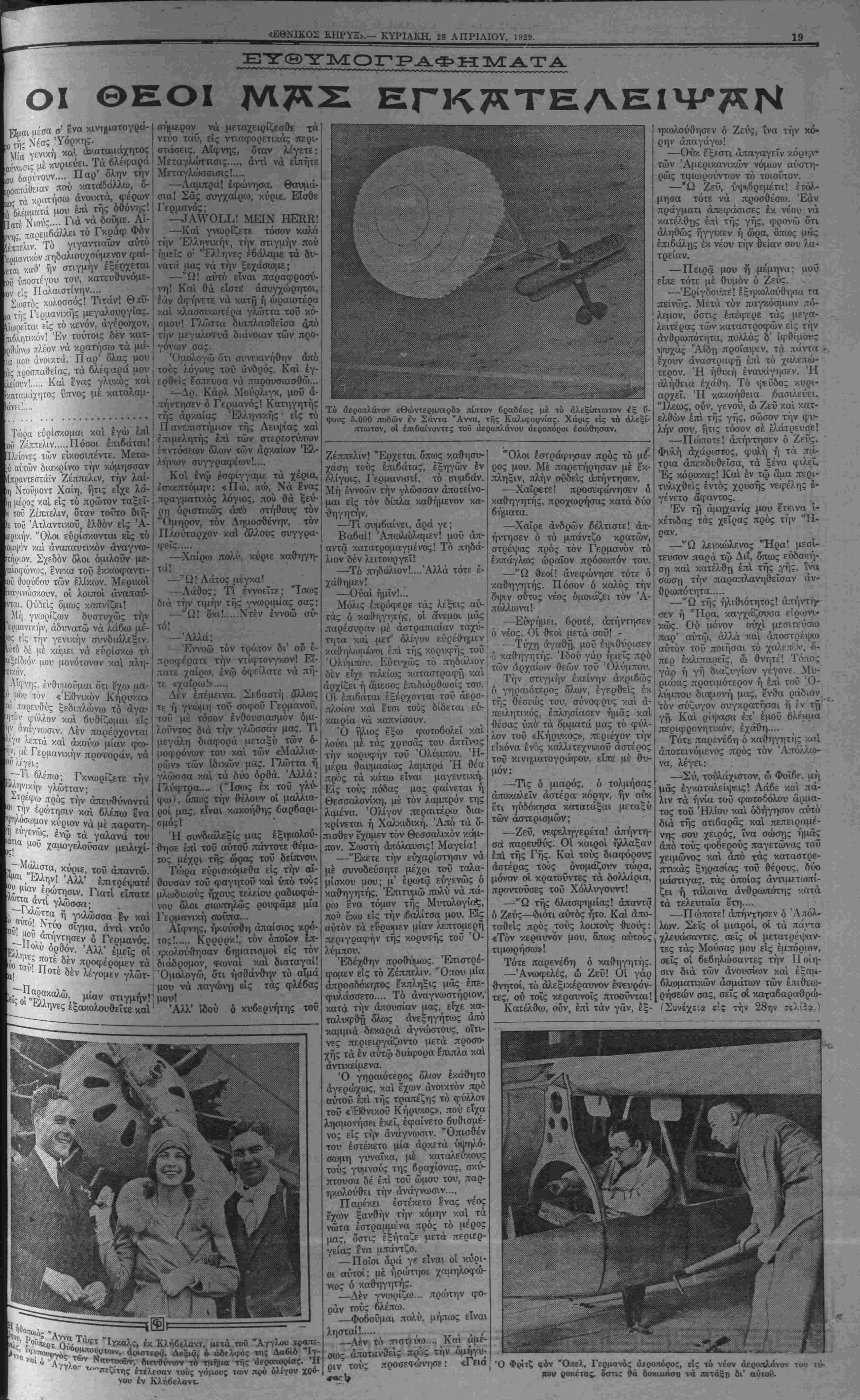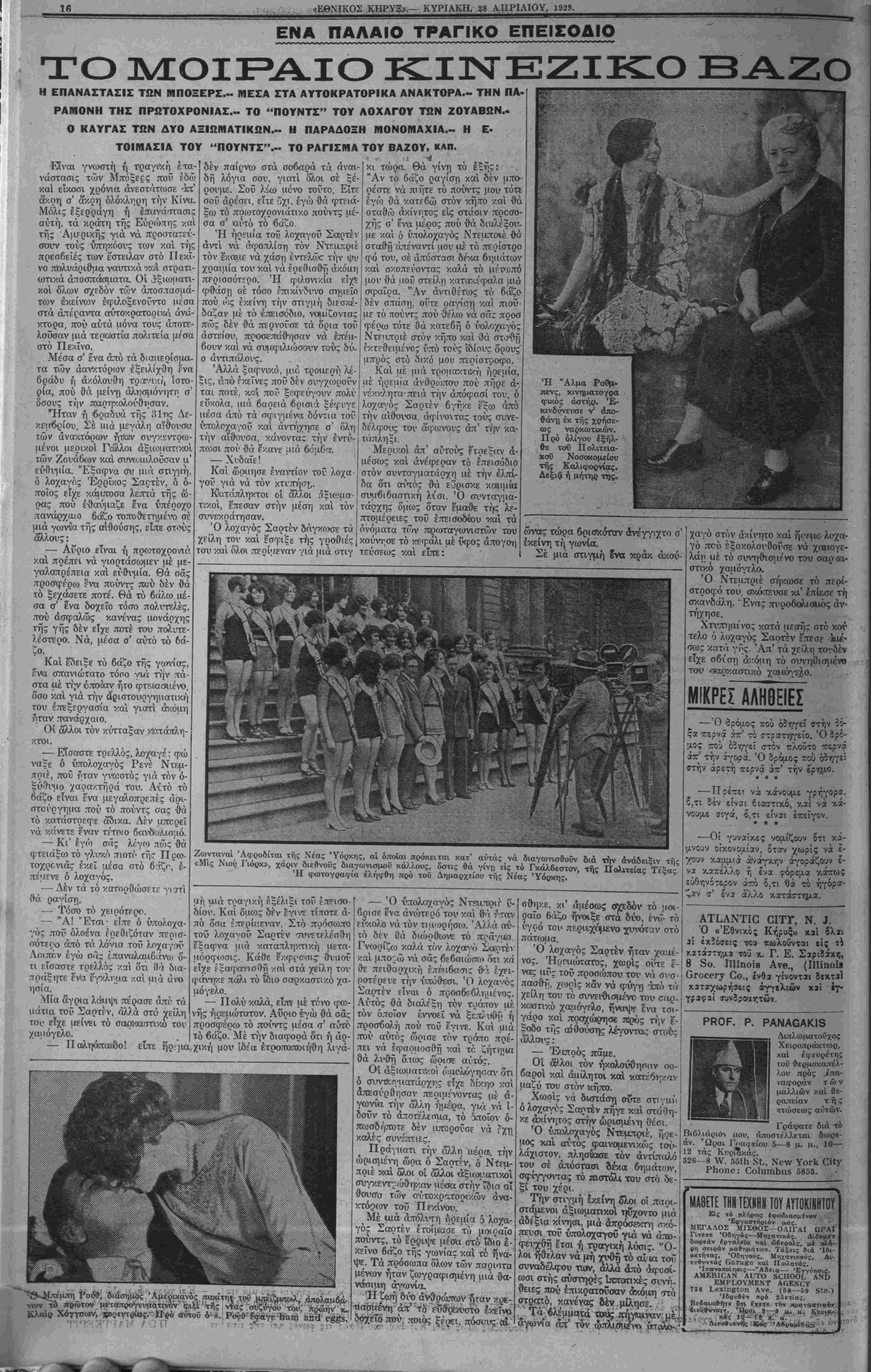ΥΟΚΚ, ΚΥΡΙΑΚΗ, 28 ΑΠΡΙΛΙΟΥ, 1929.
