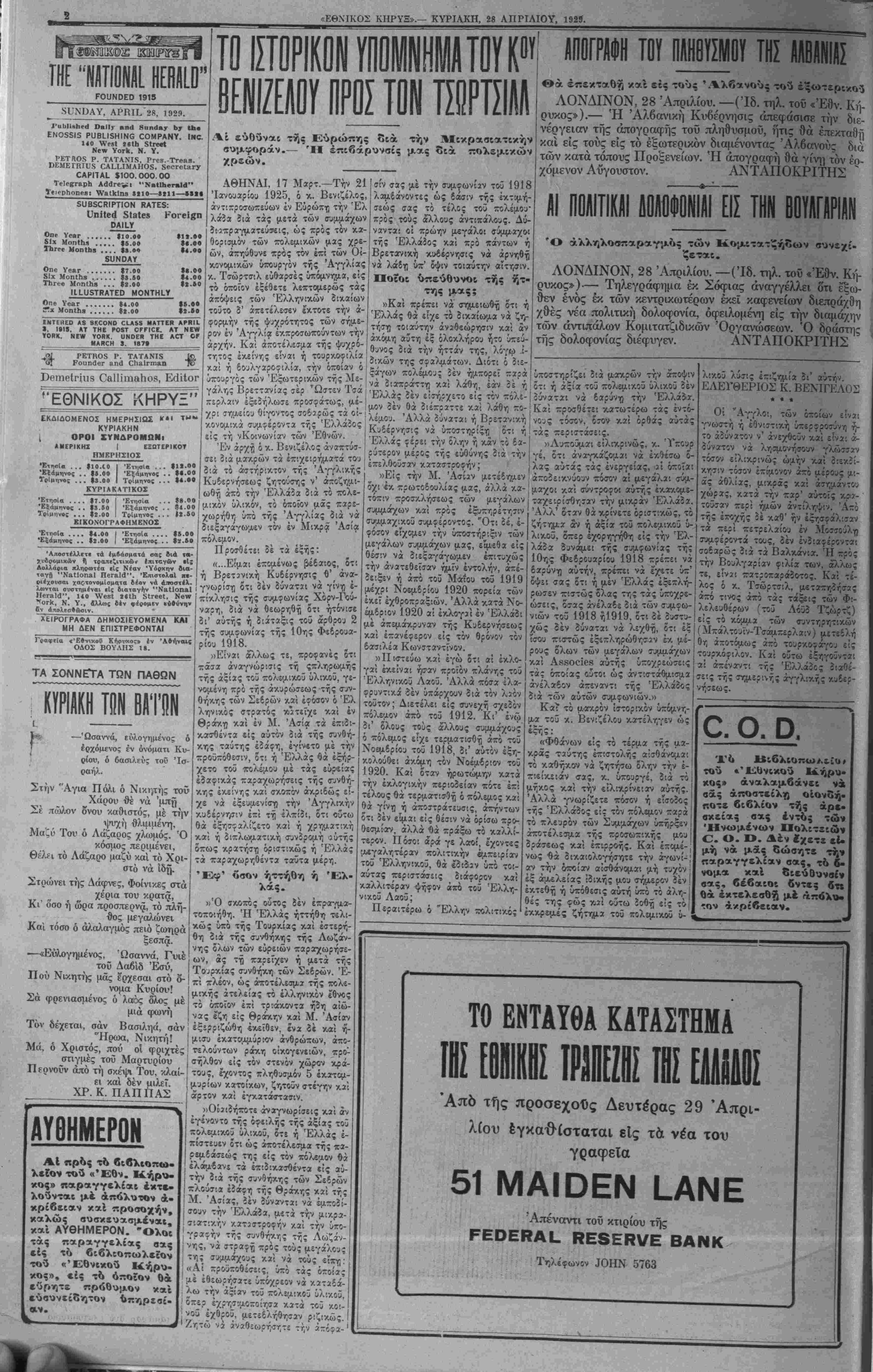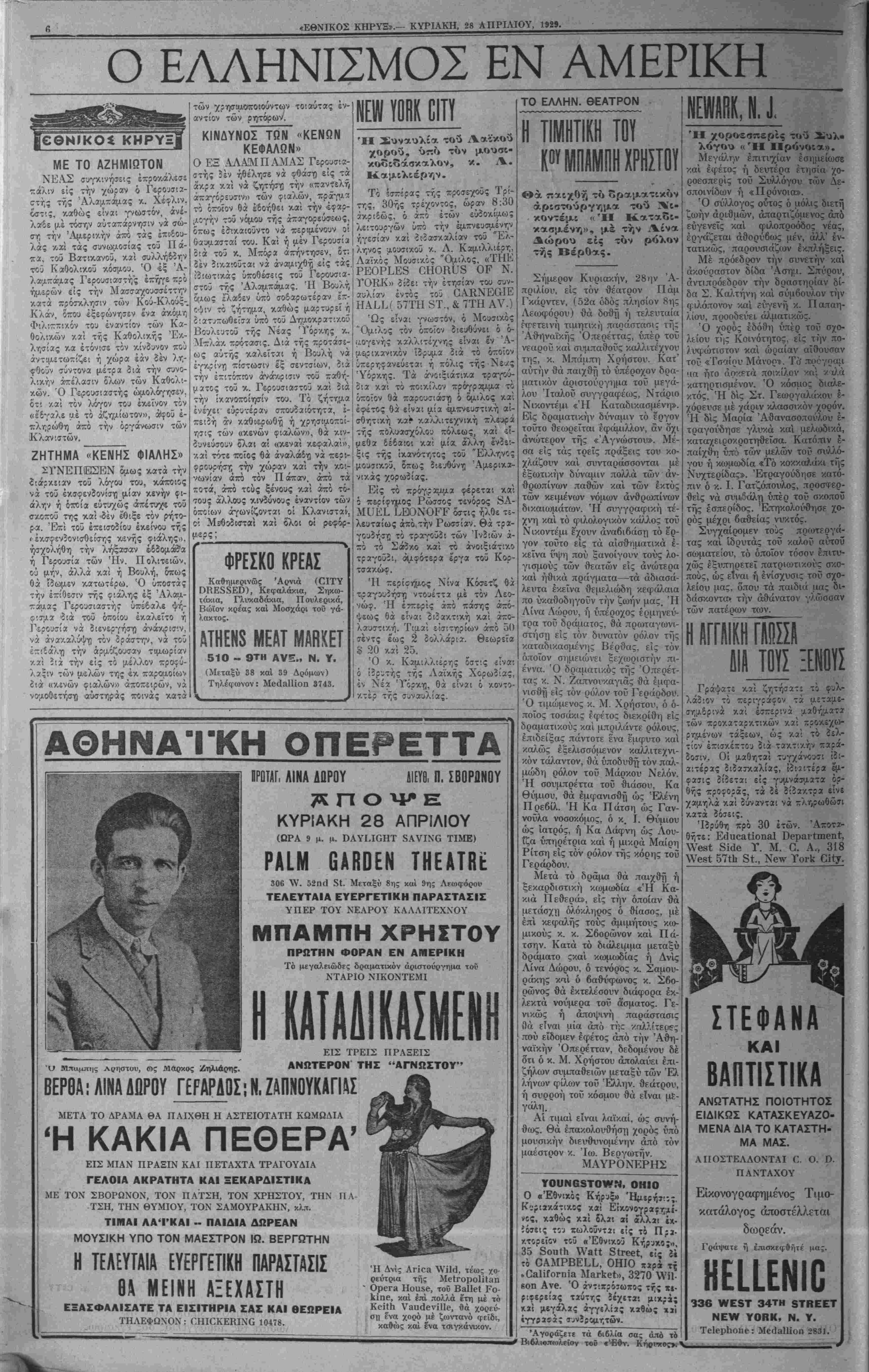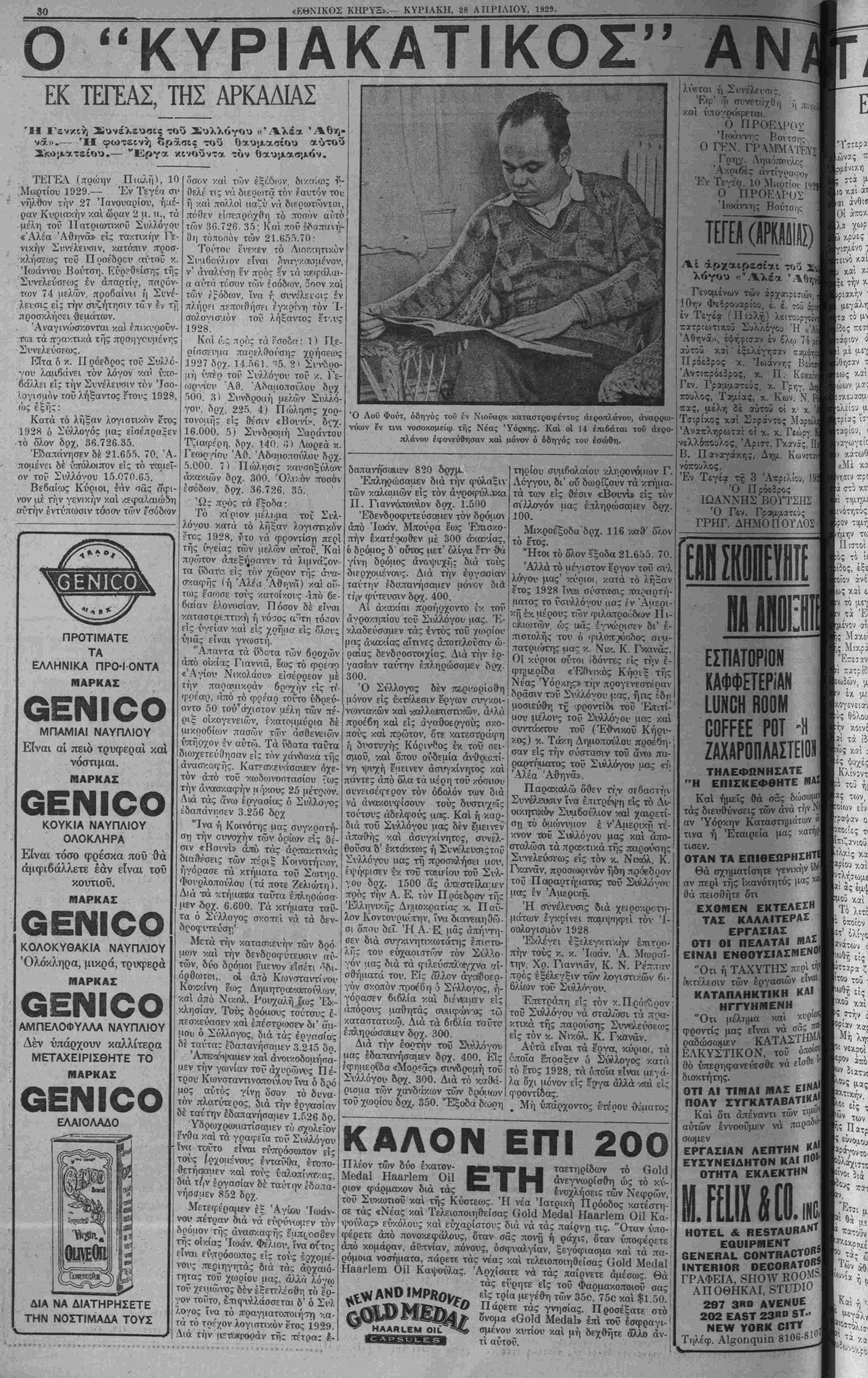 ΥΟΚΚ, ΚΥΡΙΑΚΗ, 28 ΑΠΡΙΛΙΟΥ, 1929.