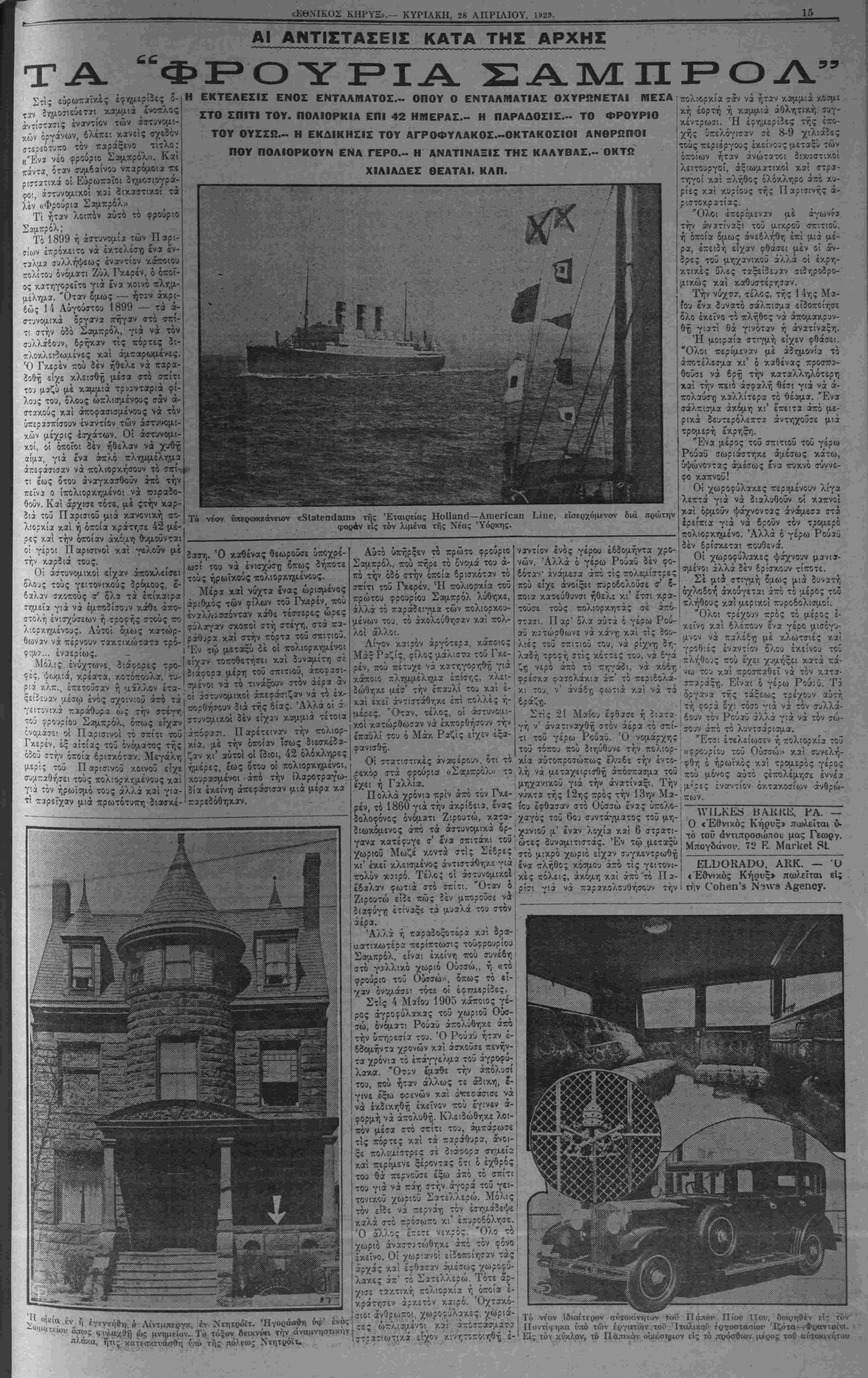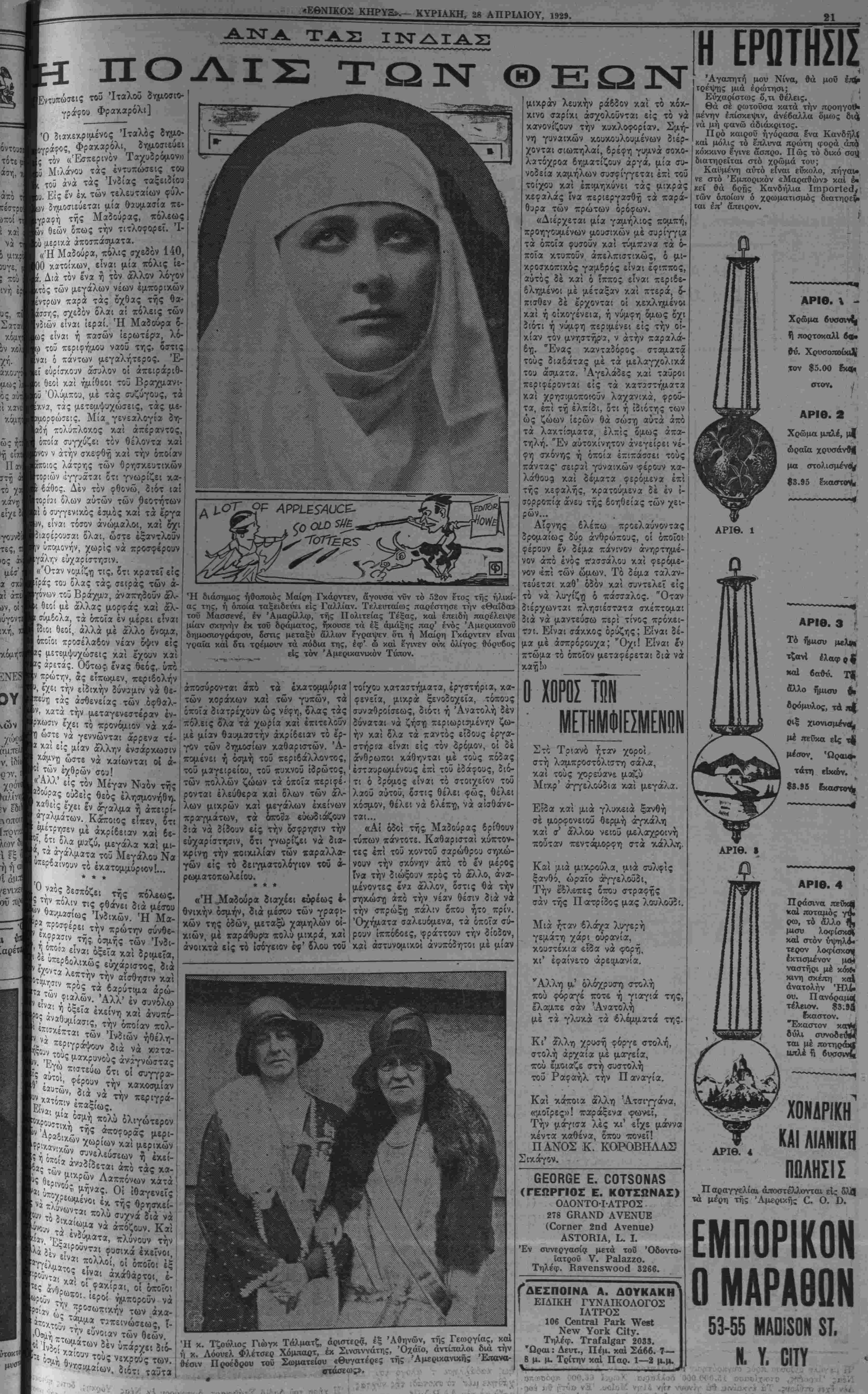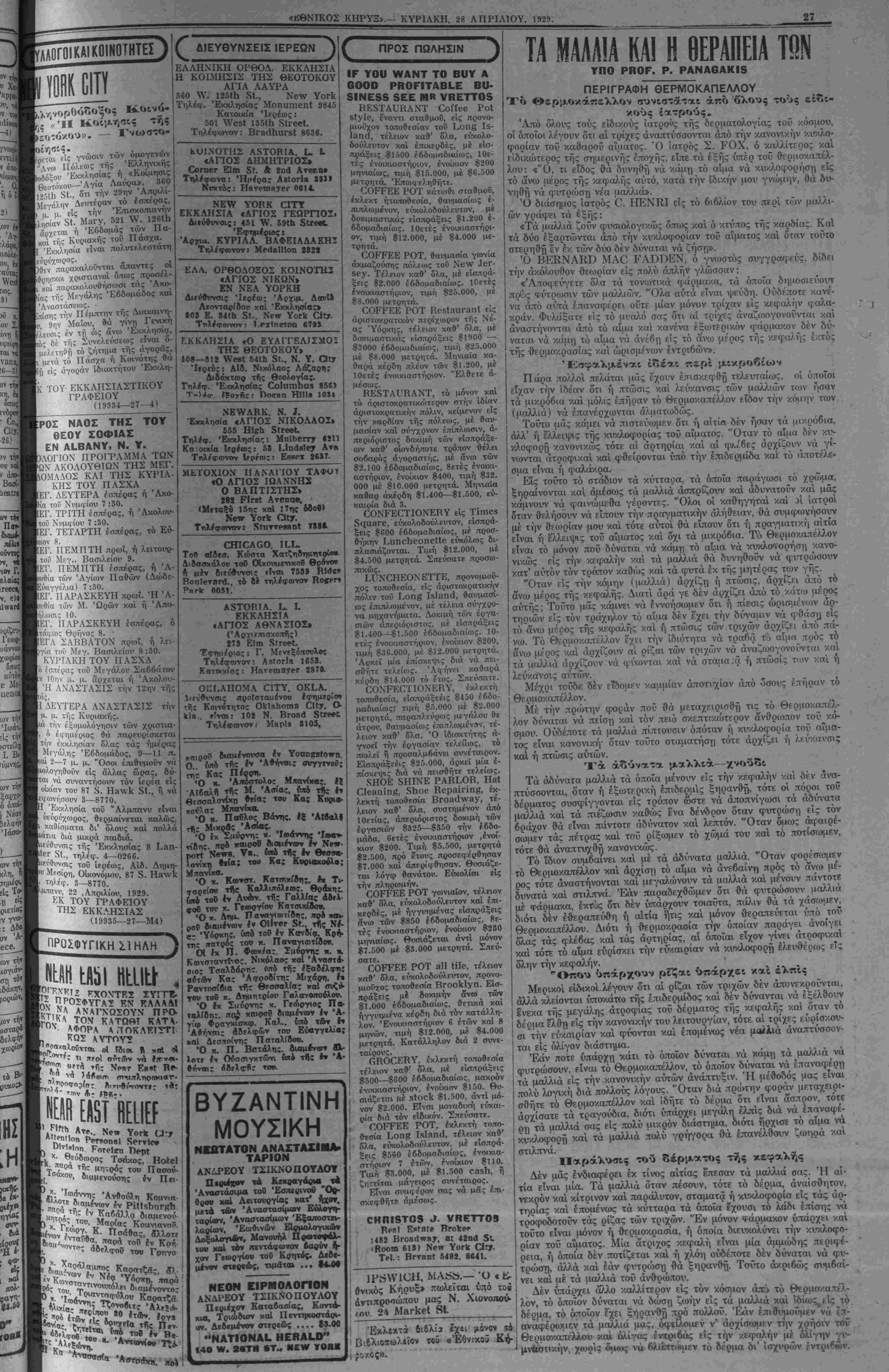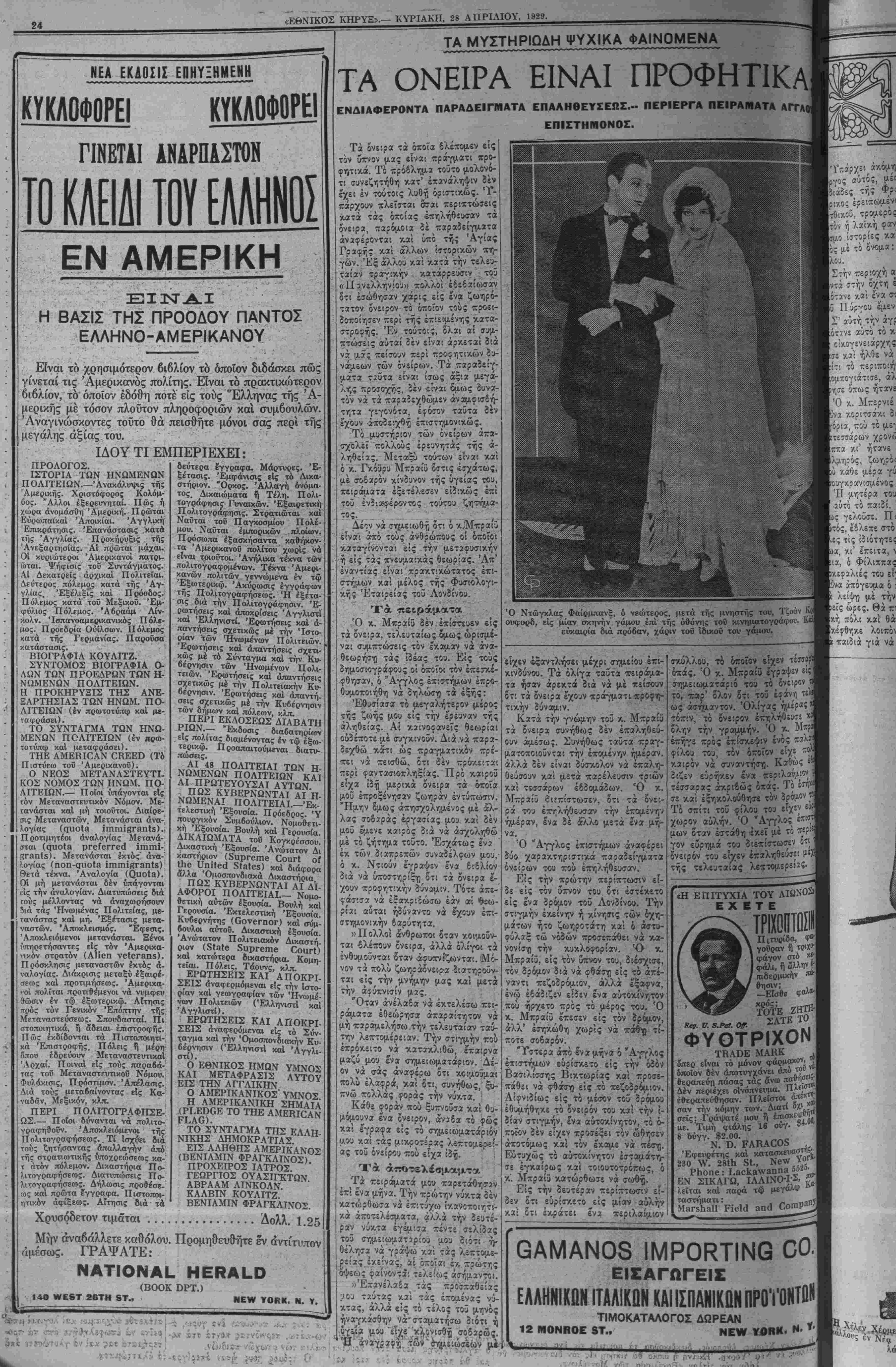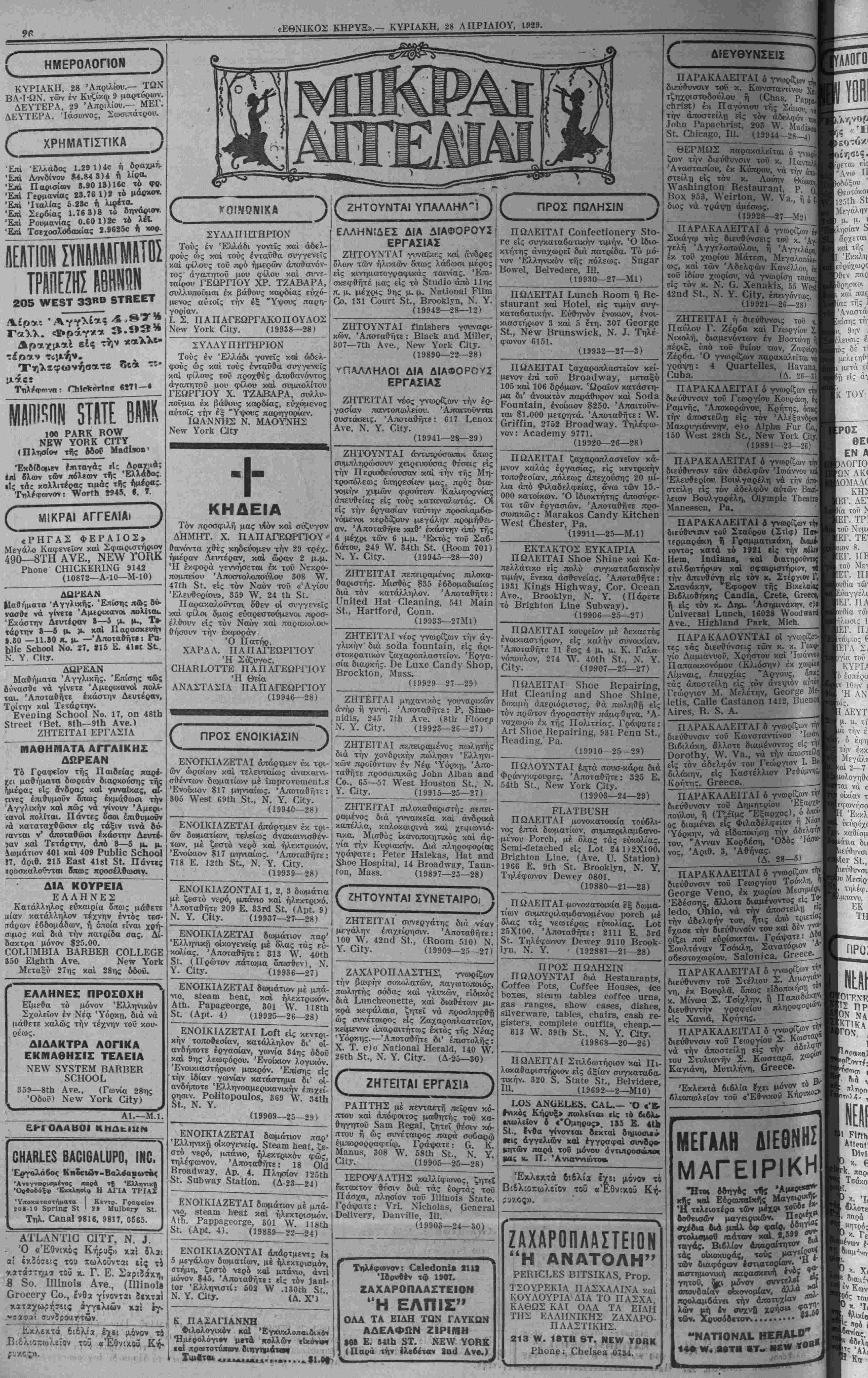 δϋΝϋΑΥ, ΑΡΚΗ. 28, 1929.— ΥΟΙ..