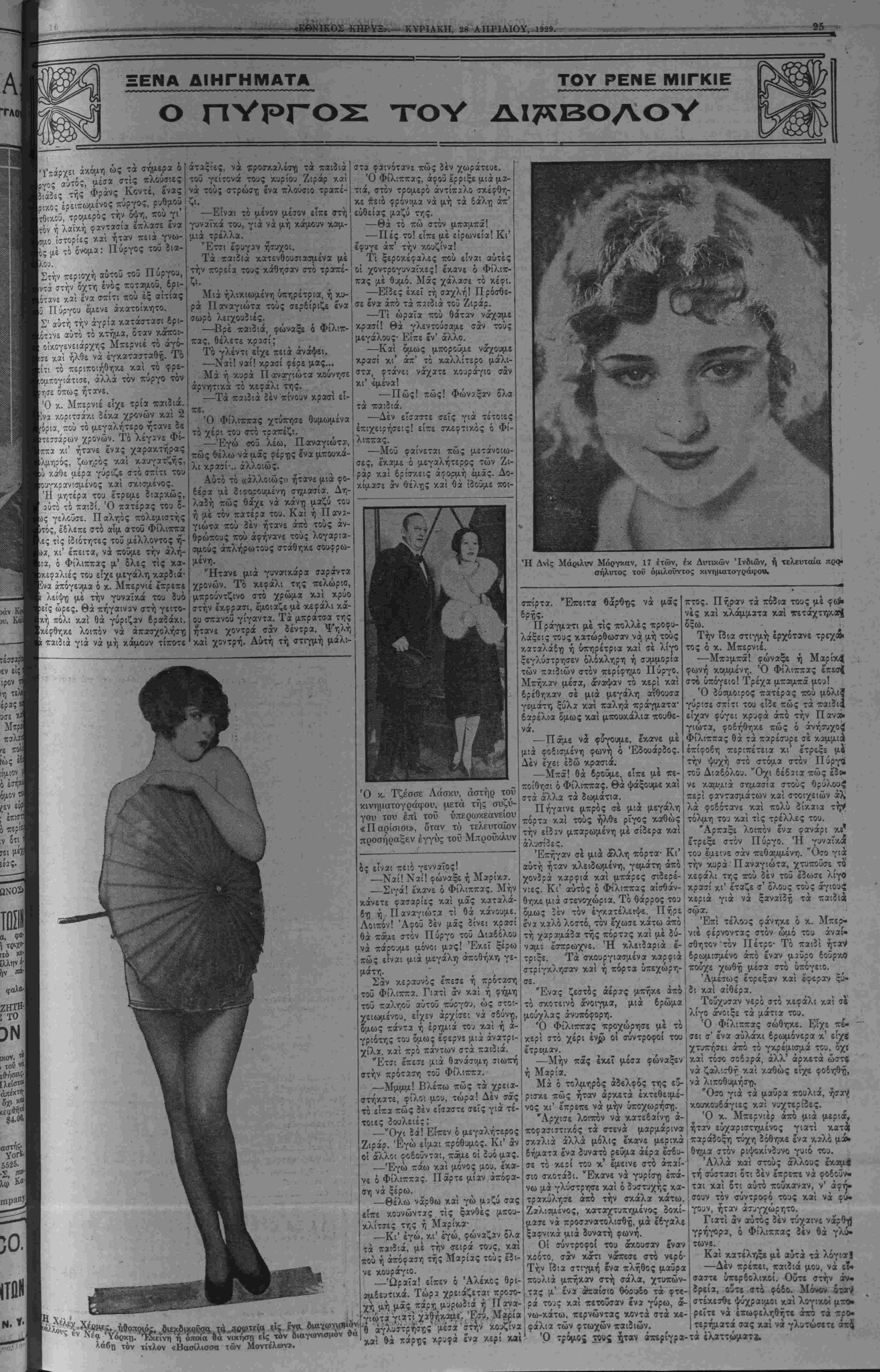 -<ίσεως, δπότε 6 σΐ'νοοος τον, ύρδος Νό^δεβν."* μετέβαινον όπως έ Γϊόυ την φέ.ιη Επί τίλους τό φινάλε της έτελ?ί- •οσε καί τό τελρνταϊόν τη; ΰσμι I- ψά?ιη, δ δέ ΠρΤγκιψ εναγωνίως ανέμενεν εί Γτήν είσοδον τη ·&ε- άτρου, ενω ό λόραος Νόρδίσν. ?ι- μορφή τον ήτο γνωοτή είς τα πα- ρασκήνιο. Ενθα·: εισήχθη είς τό κο·ιιϊ»τήριον καί έχοαρετΊο ^γ ιιέ ευχάριστον αειδίιμα. 'Αλλά. φοΐΈον Ηλ,ε! "0™ν δ Λόρδος είπεν ότι δ φίλος τού, <) Πρϊγκΐι|ί τής Οναλία;, ανέμενε είς την ιϊσοδον δπχος την <Γι;%·αντή- «η, τα μενάλα καστανά ;ιάτΐα τή^ , ΑιιεριΙκανίδος δέν διηίλΌΐίιχίτησαν κοιθό?.ου, «λλά ιιέ μίαν ι'γένειαν αυτή είπε: Λ"" . φέρτέ τον επάνω, σ.ν ..... νά έλθη»." , Ό Λύρδος Νόοδεσκ έιιει%"εν έμ- βρόντητος. Τό βέβαιον είναι ότ< τα δικά τού δμιιατα εδείκνυον με- γίνονται ετσι είς τίιν Αμερικ^»; 'Επί τίλον; τί άλλο ίιδι'ατο νά χρά Εί] 6 Λόοδος Νόοδεσ1--: Ίκιοα νά πληρο(ΓΌρήσ»ι την ΑίτοΓ' Ύι|Μ|/.ό- ΐΊΐτα ότι Λν ί θίλε νά σΐ'ναντι'ΐίΓτι την χορι-ι'τηιπν, ώφτιλε νά ΰπάγτ, αύτό; πρός ικείνην! Φααασθητε εσεΐς ποάγματσ! 'Αλλά τό πτΐσιια τοΓ :-ναλοιιαίϊη- νου Πρί/νιπο, νχο εξ ισοΐ' δυ¬ νατόν δσοΛ' καί τ7}: Άαρςινανίδος καί δ Πρΐνκιψ εφννεν, ττιοα- χθείς δ'χι ολίγον. 'Αλλά την ρτο αένην ποοηαν δ ϊδιος ετοιεςεν είς (ν «νι'ίο.το;λ£ΐον. Ιόιάλεξρν εν ιιενά- λο α.τουκέτο άπό τριαντά(|~υλλα χαί διέταΐε νά τό στΓίλονν την εσπε'- ραν εκείνην πρό; την δεσττοινίδα , Φαίη ΜάρΗπ. Διότι ή Άιΐεοιν.ανις|__ δέν τίτο ιϊλλη άπό την Νεοθοοκέζαν εΰτοιθΛ', ή δτοία ^ίπί τοϋ τα- τος δίδει σειράν Εύρωπαϊκών ί;ορών »ετ' άσμάτων είς το θεατρον λίπέλμολτ. ΙΟοτόπιν ή δεσποινίς Μάριΐιπ, ά- φοϋ έδεχ-θτ] τα τρΐαντάορνλλα, έ- δέχθη είς τό καμιχοοτήριόν της την -.τίσκεψΐν τοϋ Λόρδου ΝόοβείΓχ, χν οποίον είχεν ϊδί] πάλιν εί; το ρεΐον (τυνόδρι.'Μΐενον απα? έ'τι πό τοϋ Πρίγνιπος. Οτοτν δμως ό Λόρ·δος Νόοθεσκ, έλ.τίζί>>ν ότι τα