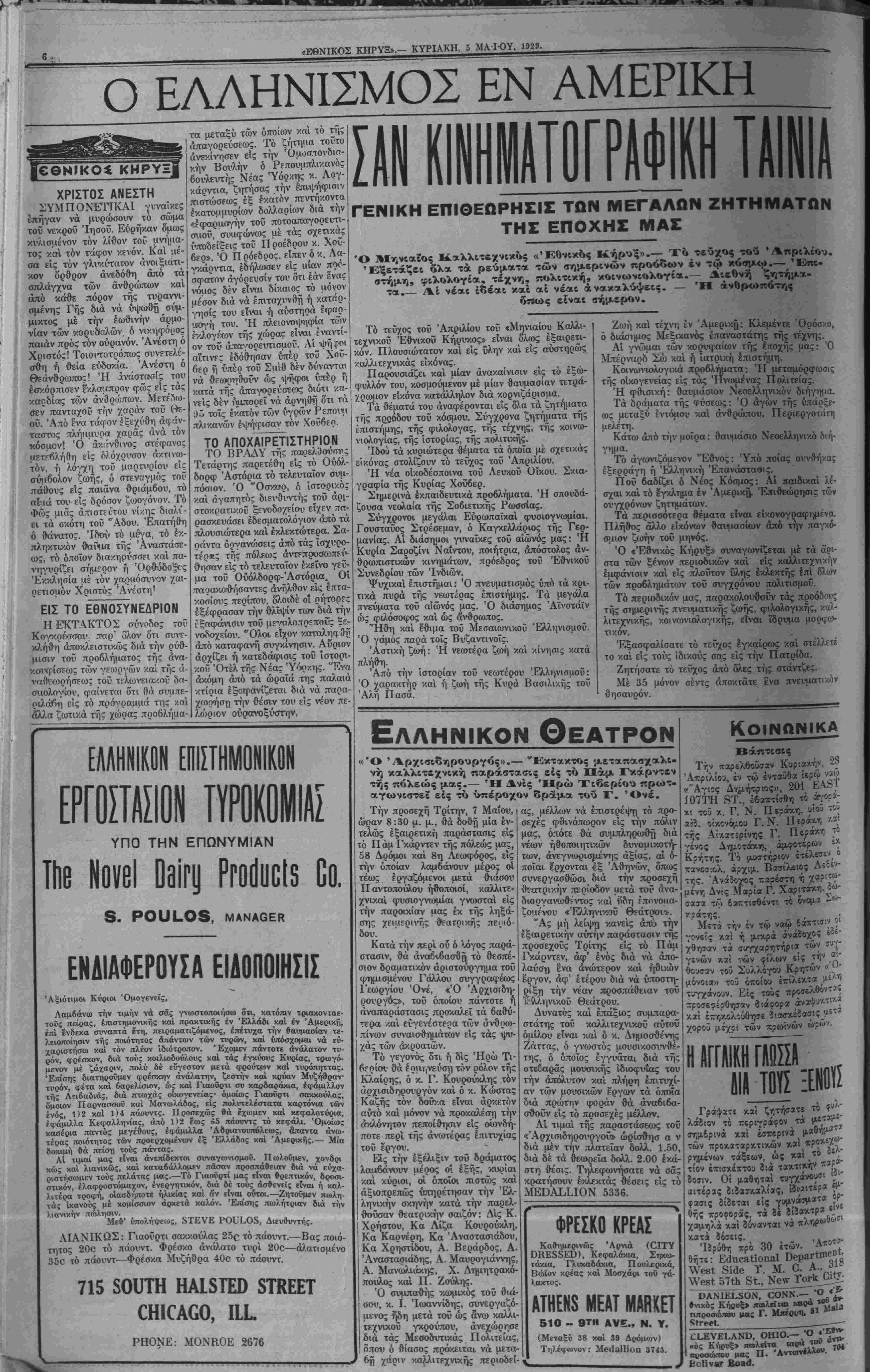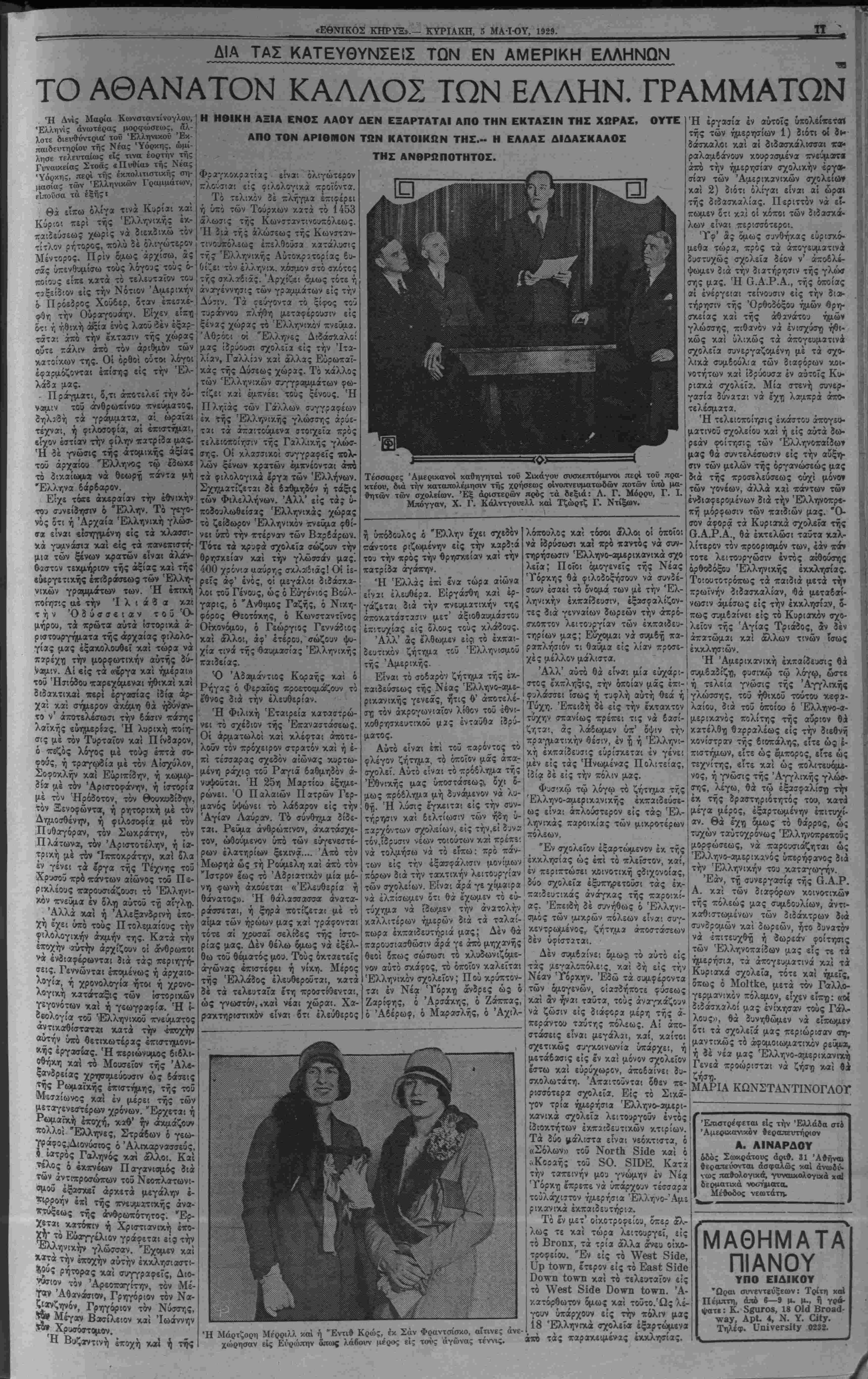 ΥΟΚΚ, ΚΥΡΙΑΚΗ, 5 ΜΑ-Ι-ΟΥ, 1929.