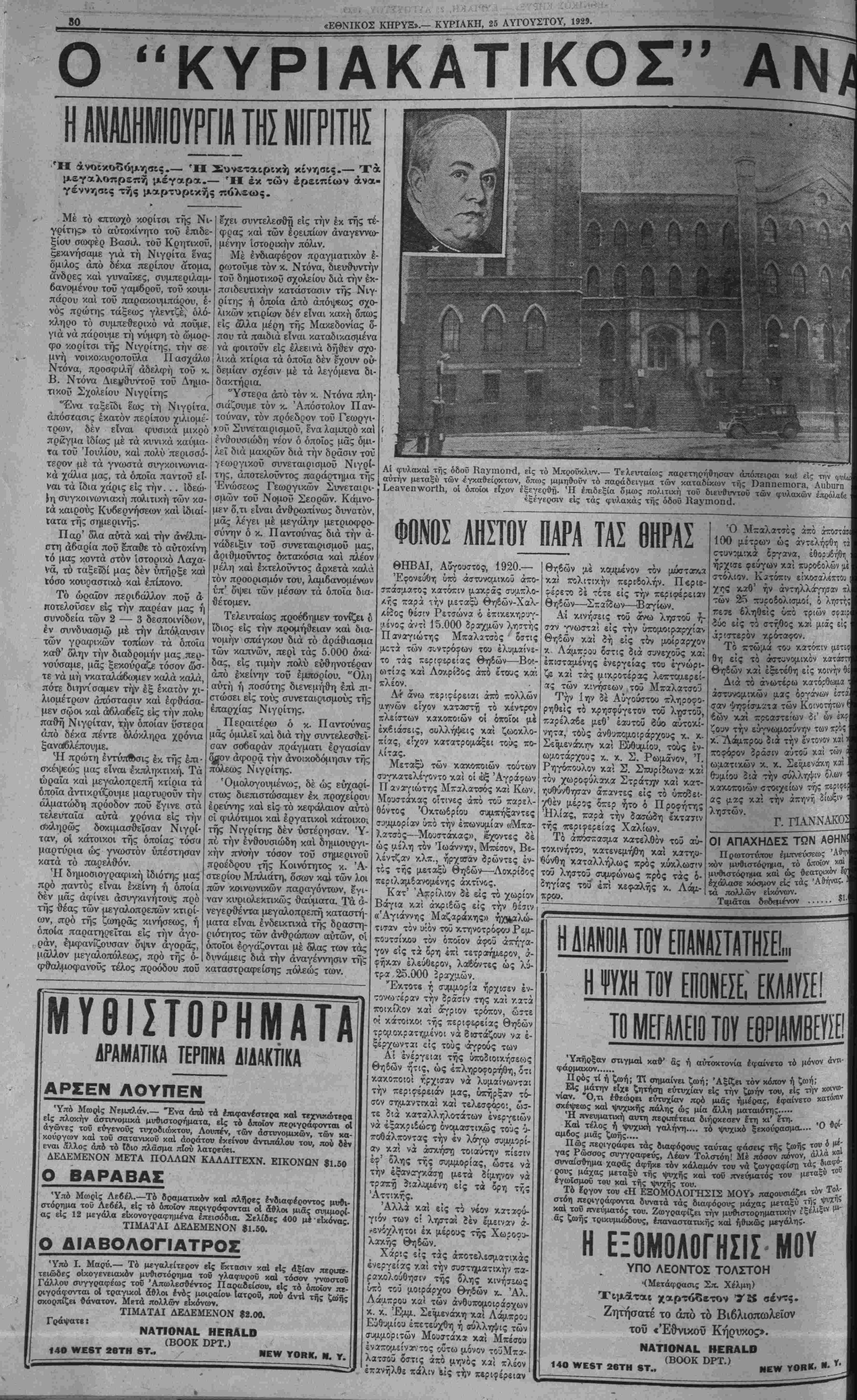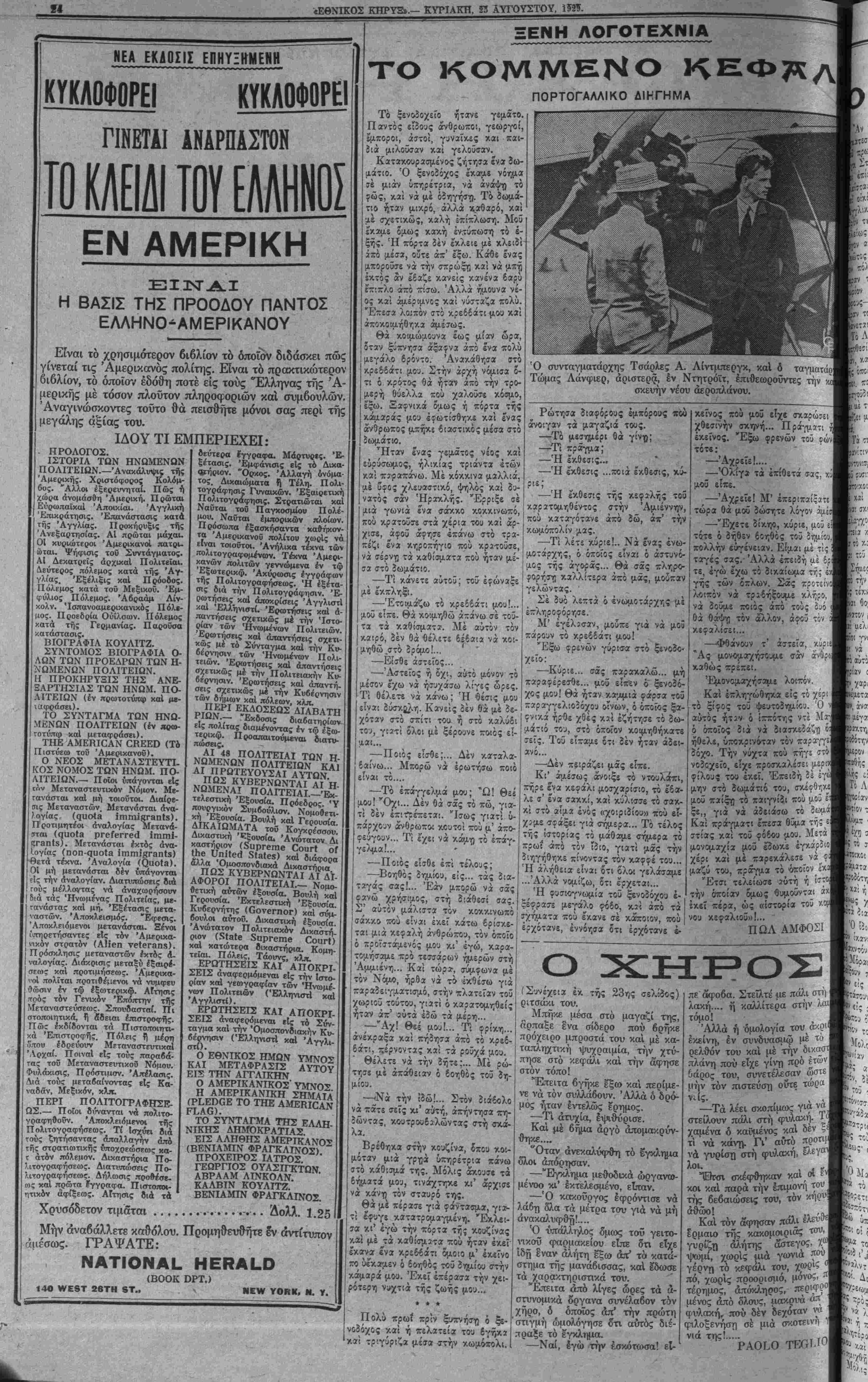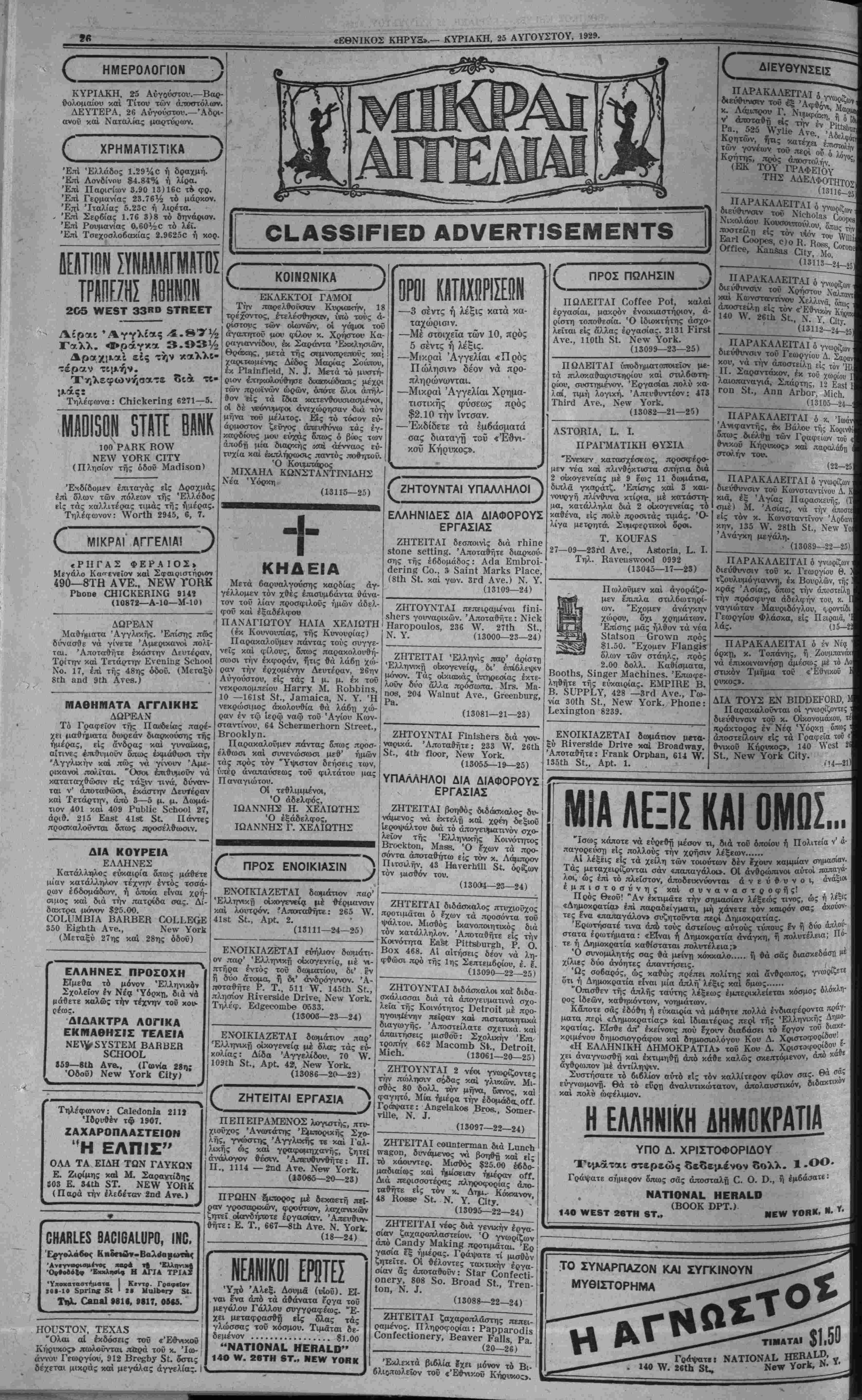 ΝΕΥ ΥΟΚΚ, ΚΥΡΙΑΚΗ, 25 ΑΥΓΌΥΣΤΟΥ, 1929.