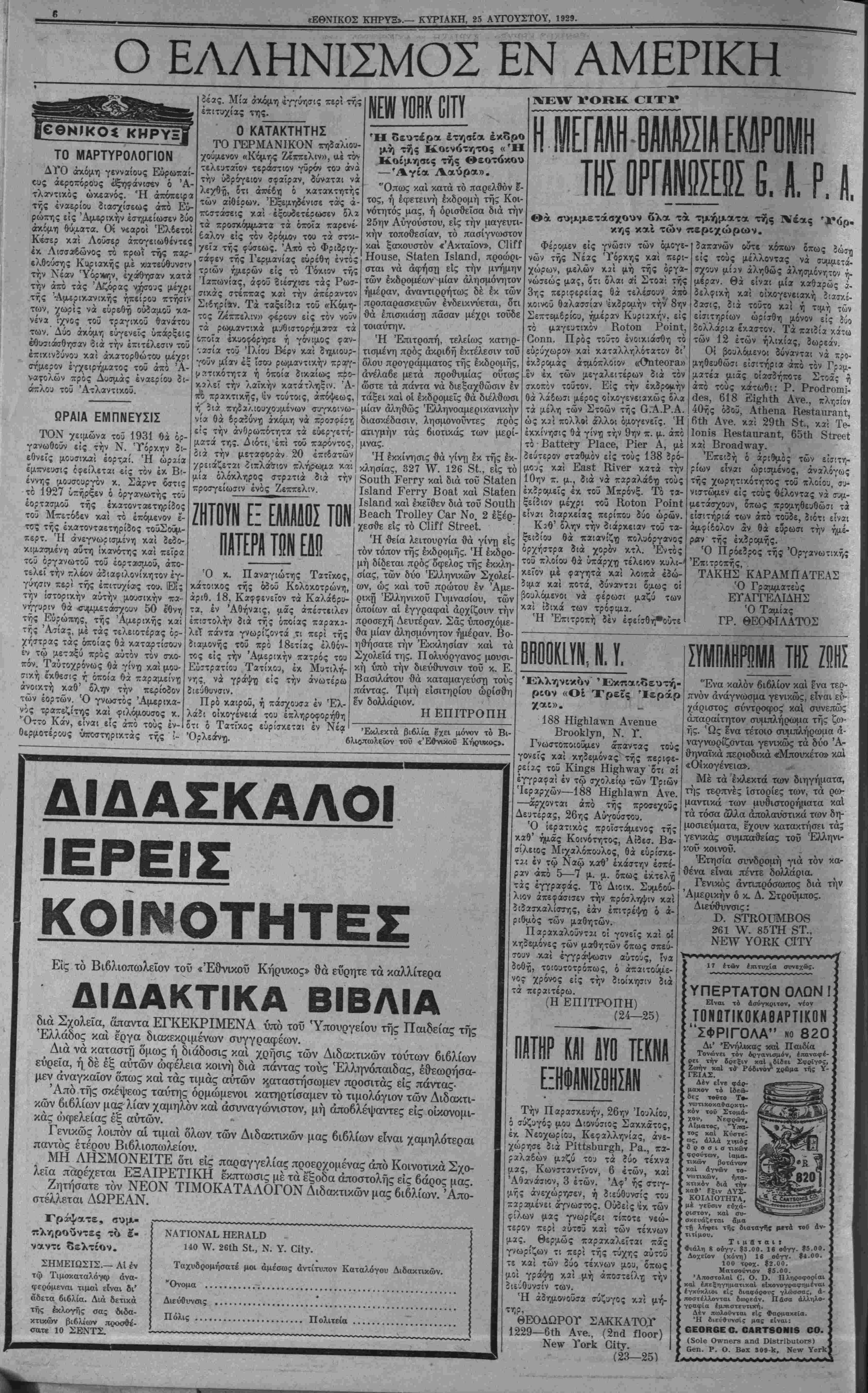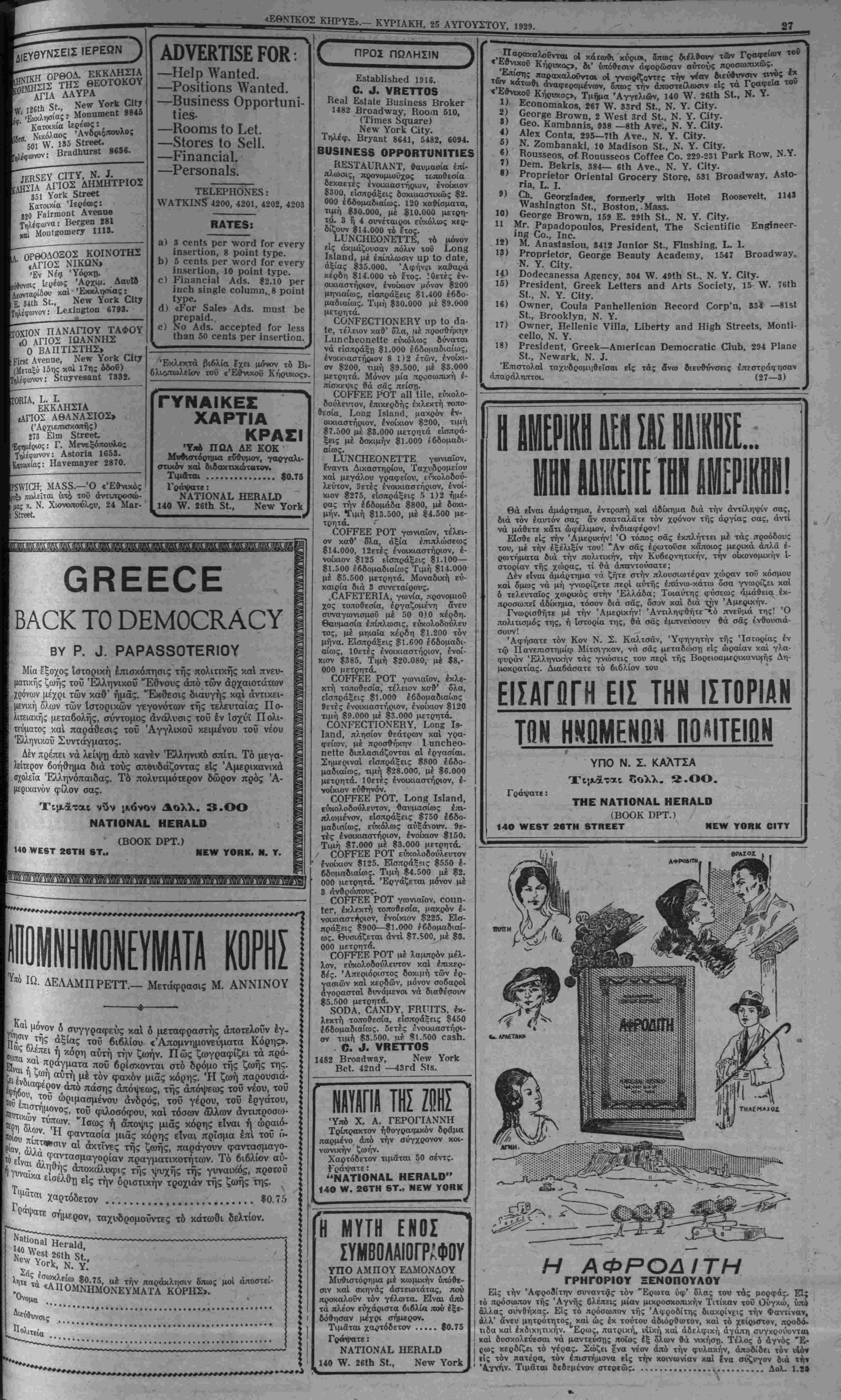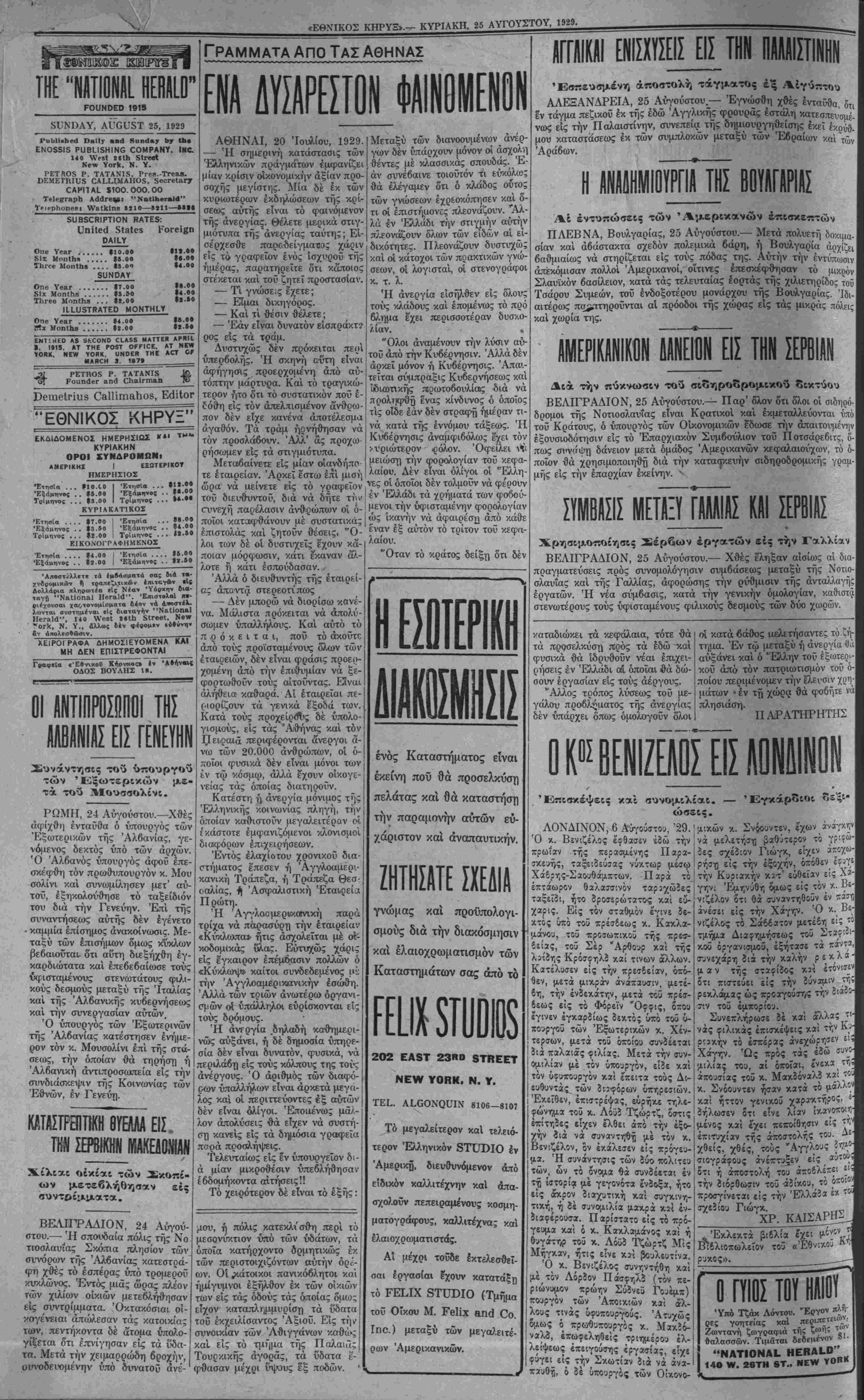 ΝΕΥ ΥΟΚΚ, ΚΥΡΙΑΚΗ, 25 ΑΥΓΌΥΣΤΟΥ, 1929.
