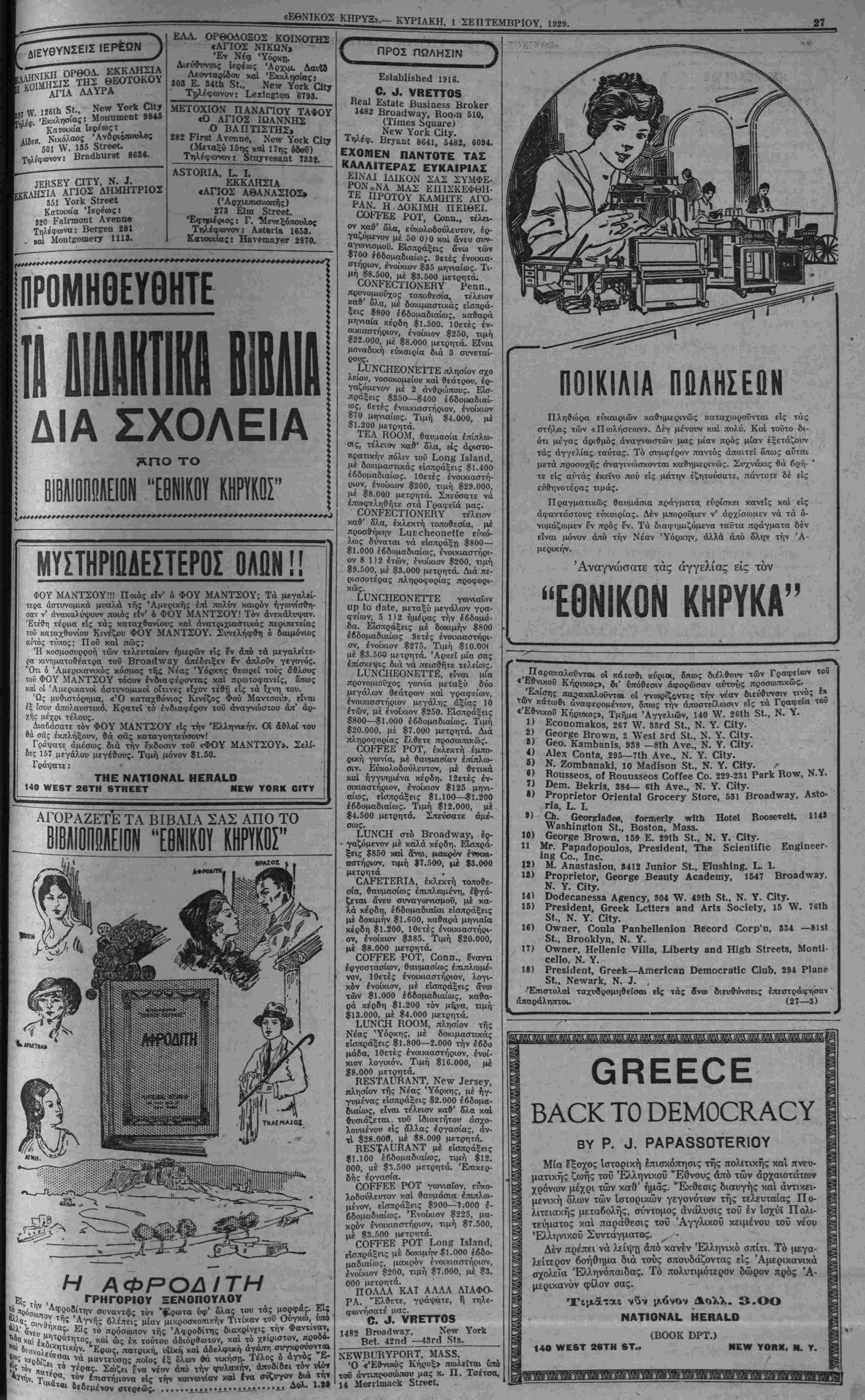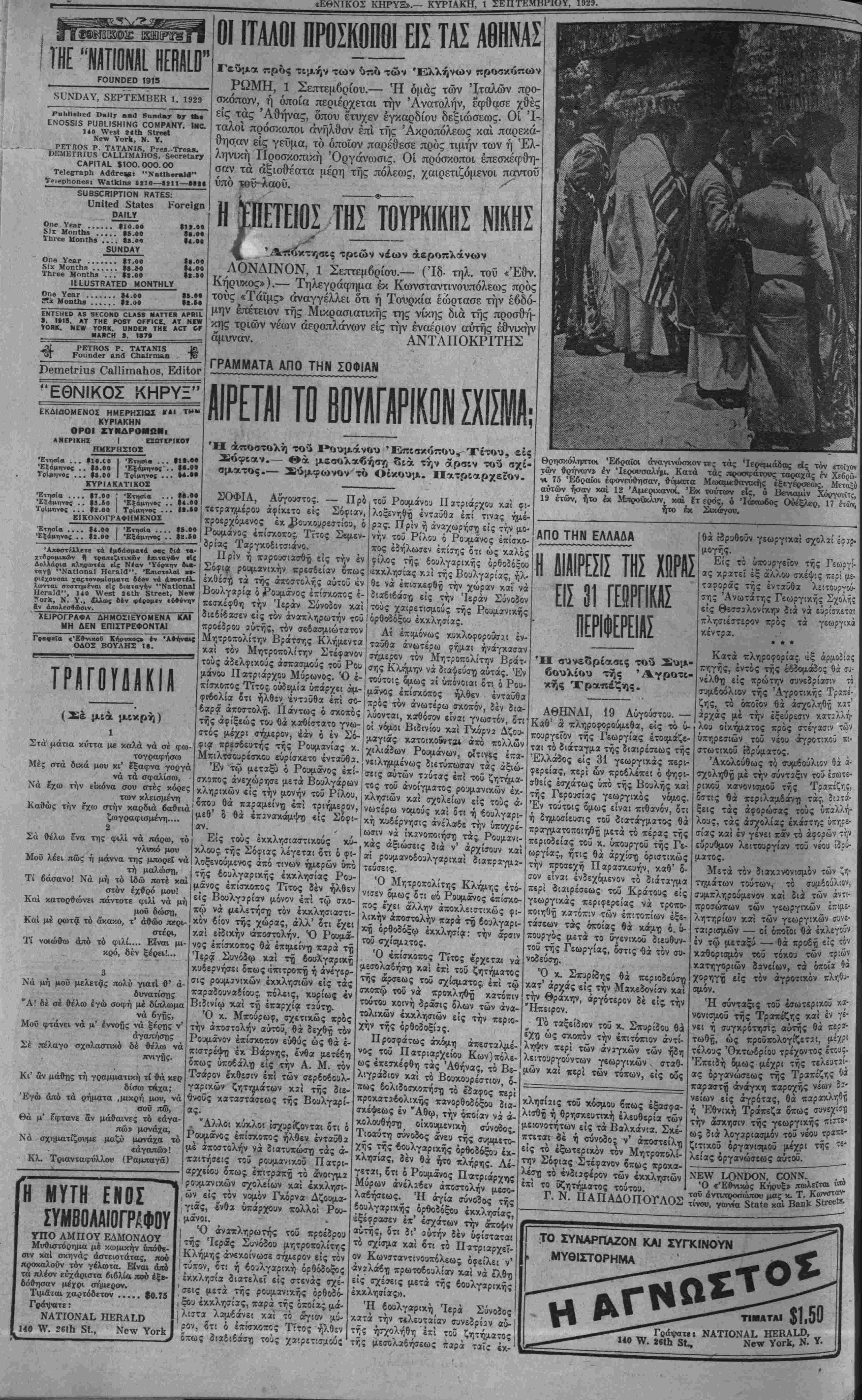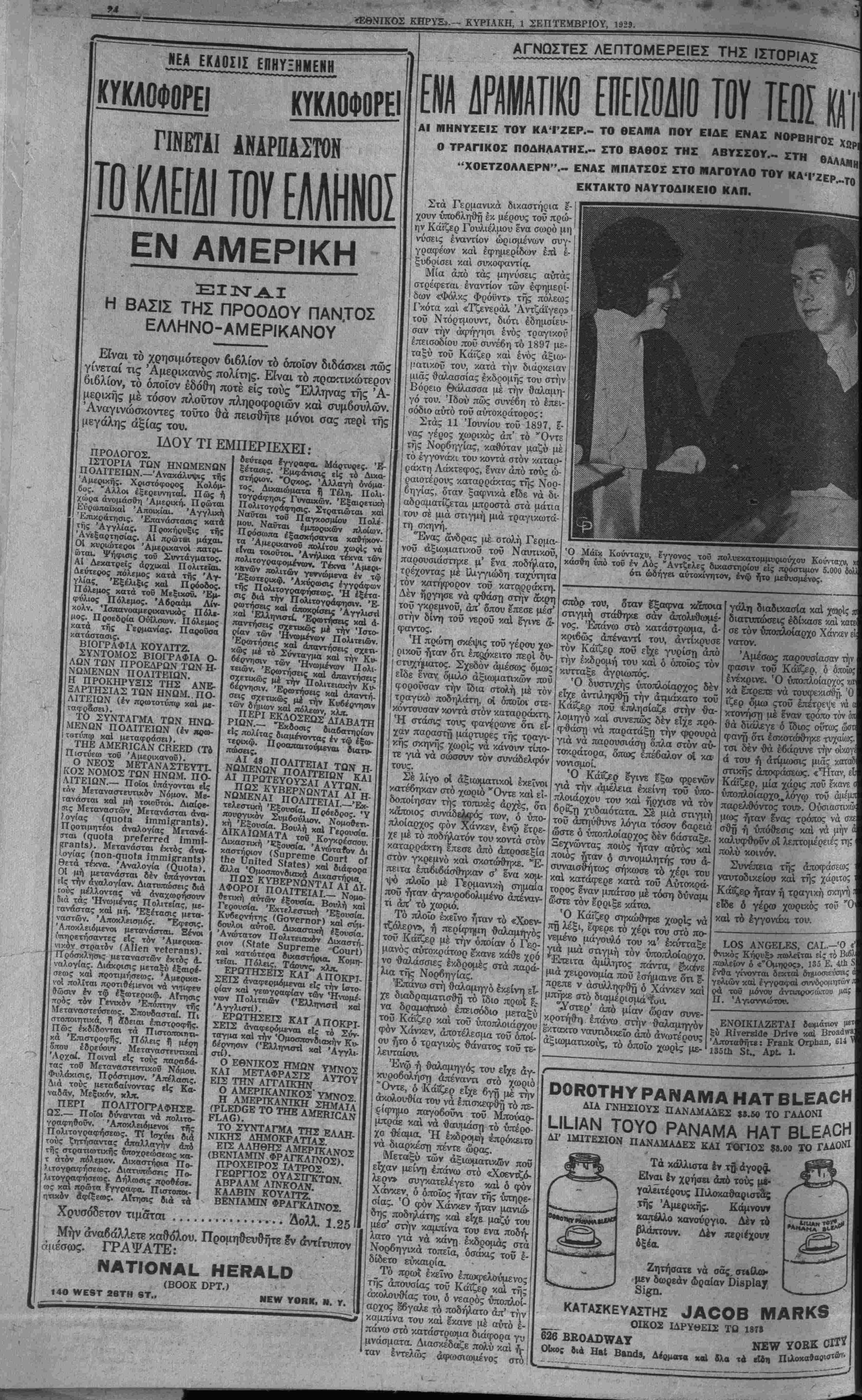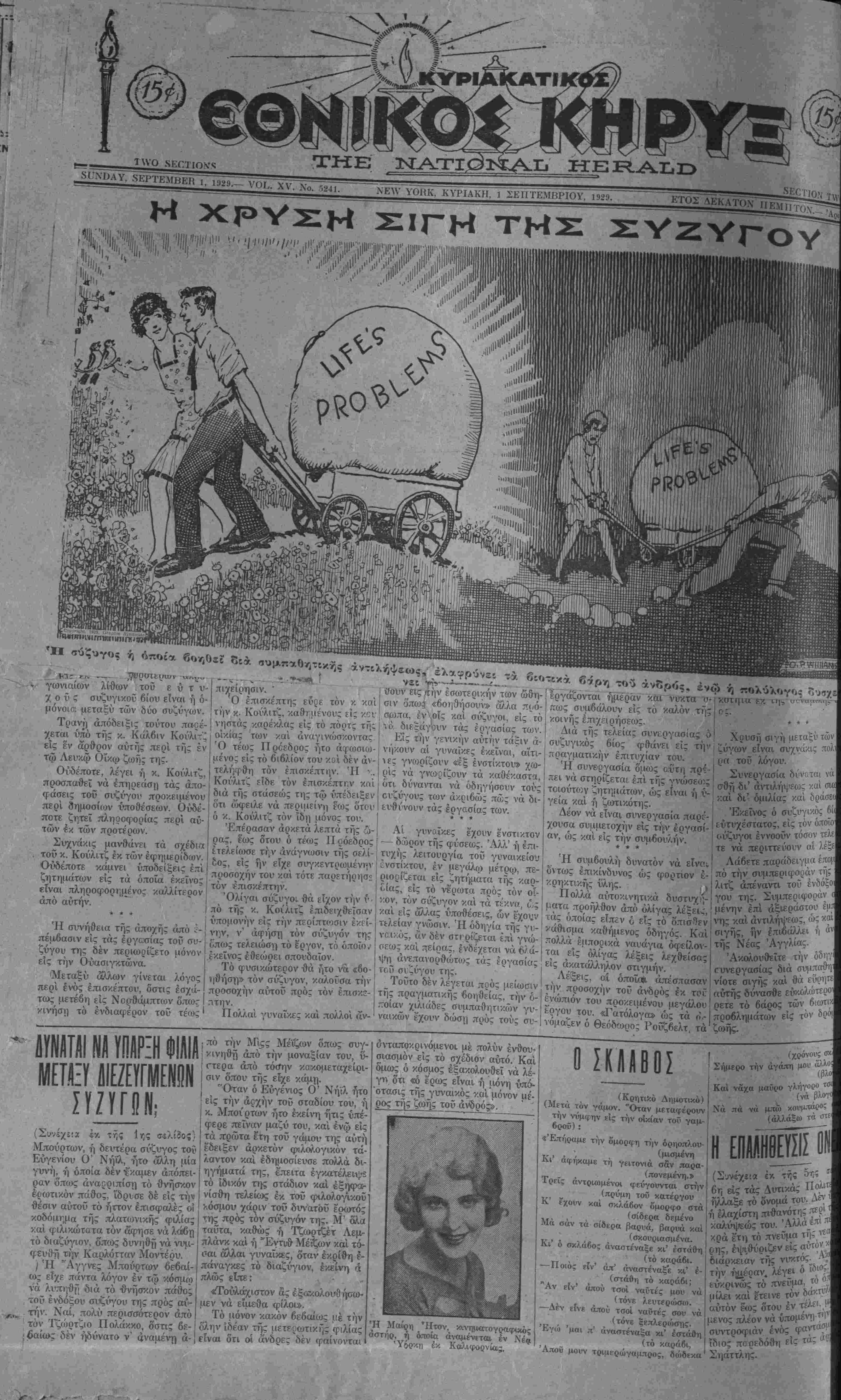 Νο. 3241. ΝΕνΥ ΥΟΒΚ, ΚΥΡΙΑΚΗ, 1 ΣΕΠΤΕΜΒΡΙΟΥ, 1929.