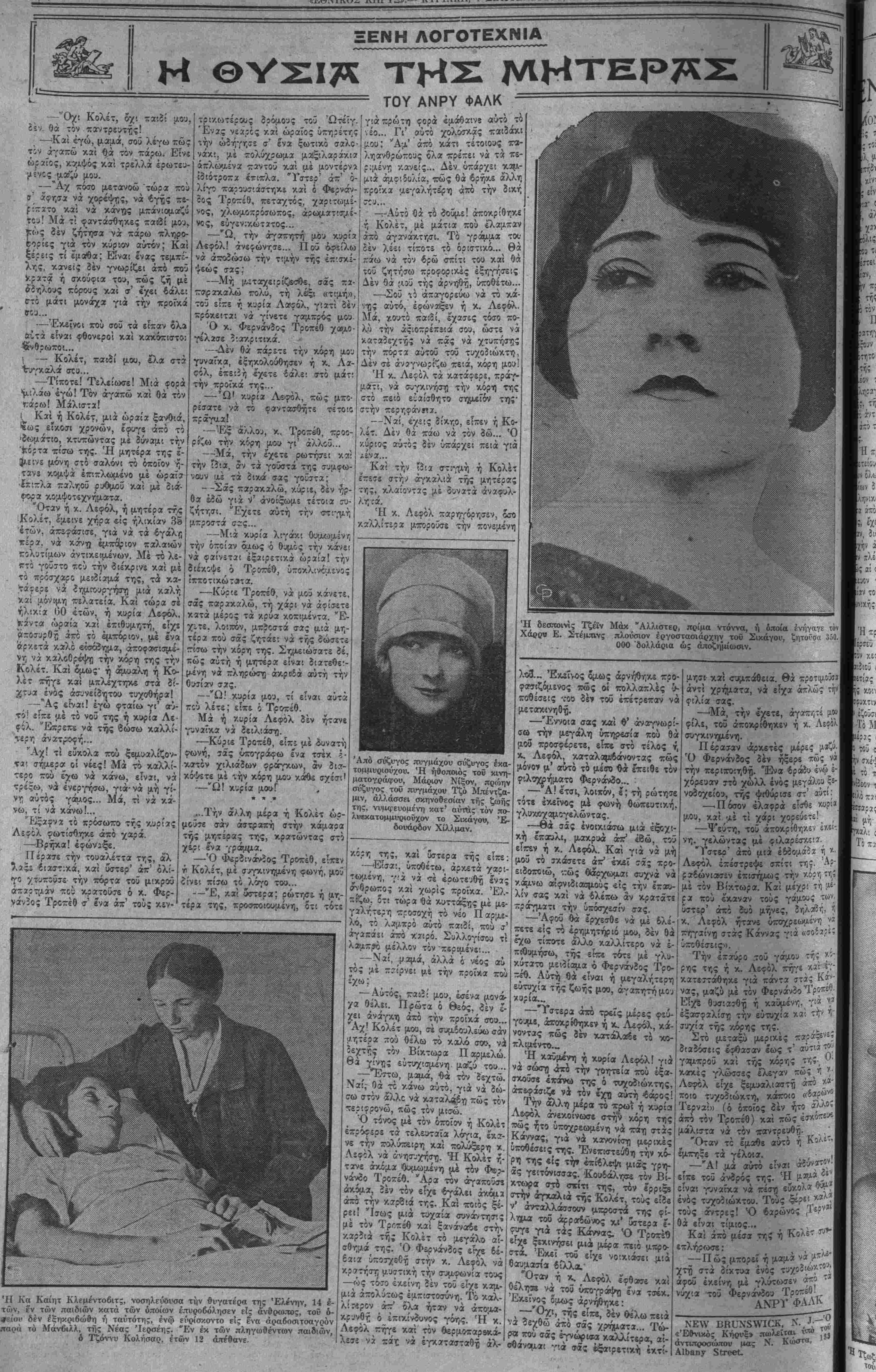 ν. Α'<«Γ^Λ»-τΐ»στ^?δΛ~τον έκλόνι- οεν ή άνένδοτο; απόφασις τής σι- ζύγου τον, ώστε μετέβη είς την .'- ξοχήν όπως αναλάβη ν.οί δέν ί|δυ- λ-ήθη^νά παραστη εί; τό δικαστή- ριον δταν ή μήτη.0 τοΰ τέκνον τού Ι έλαβε τό διαζύγιόν της. Έν ολίγοι;, αύτό; δέν φρονεί καθόλου ότι ό χωρισμό; τού άπό την σύζυγον τού είναι εύκαιρία πρό; εκδήλωσιν χαράς ή ανταλλα¬ γήν φιλικών μειδιαμάτων μεταξυ αύτοΰ καί της πρώην κ. Πολάκκο, αναμφιβόλως δέ συμφωνεΐ με τον ΜΙΑ ΑΠΑΝΤΗ¬ ΣΙΣ ΕΙΣ ΤΟΣΥ- ΖΥΠΚΟΝ ΠΡΟ- τα « /ειοονομιας υψίστης άπελπισί- ει ή κ. Πο ^ ίου οιτζμχό Υ.^ Λουδοβίκου χαϊμί- ,όλίνων 'Αμερικονίδων, δ Άω^ ή "Εντιθ Με'ιζων, ώραία ά- οιδός τού μελοδρά¬ ματος, ή όποία έ- πιθυμεΐ νά διατηρή οί) την φιλίαν με¬ τά τοΰ πρώήν σν- ζύγου της, Τζώρ- τζιο Πολλάκο, ά- ριστερςί, διευθυν¬ τού τής Σίβικ "Ο- περα Κόμπανυ τοΰ Σικάγου, έπειδή φρονεί ότι έρως καί άγάπη είναι χωρι- στά αίσθήματα. τί) ^ανετΐ, ^ η ομόν τηλ "1 άτομον θαυμα- ί .ν - τον έπιΦ«νή δΐευθχ'ν- ϊ ^ε;9'α> χα1 θά τόν έκτιμό