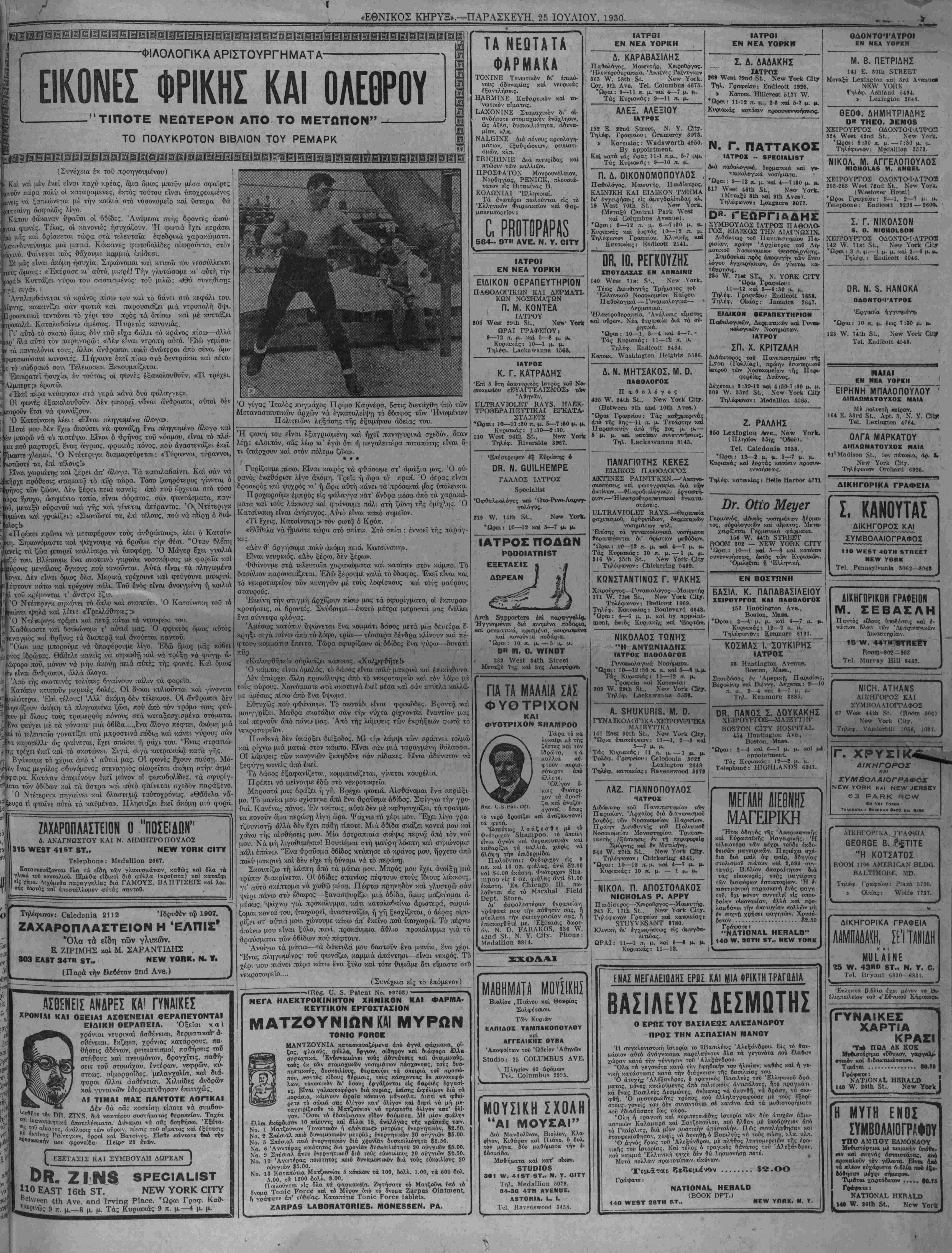 ύποψηφιότητα γερουσιαστοϋ < Πολιτείαν τής Πενσυλίανί» * * * Σημαίνουν: Οβττΐίίβτΐ Αοοοιιηίαηΐ. * * · Έφονεύιθη είς τόν ττύργον Καστάνιας επί δυσπροσίτο·ο ' 'ρείας τοΰ Ταϋγετου, πολεμώι . των διαδοήτων Βαρϊουνιοηών ι τοΰ ονομαστοΰ άραατωλοϋ ] γιώταρου Βενετσανάκου τφ Εγεννήθη είς τάς Πάτρ^Ι 1β45 καί απέθανεν είς Π.....1 τω 1874. Έκ των δραυ.αταώνι έργων σποκδαιότερα 6ίωρο3ν^ ίίθί Καλλέργαι», ή «Γαλάτεια,] «"Υψηλάντης» καί έκ των -«' των «Αί Άττικαί Νύ%τες«. Ι ΚΑ δτι τό σώμα αΰτο κινείται τατα καί δέν είναι ίονατον δα'.ωθή «κόα.η, αετά· θετικότι έάν κινήται -έριξ τοΰ ηλίου, ?| τος τοΰ ήλιακοΰ συστήματος.' δήποτε, έάν σΰμοαίνη τό Ιι'^ πρώτην φοράν ή άστρονομία Οα| αειώση την ύπαρξιν οϋρανίοιι ί ματος κινο'ϋμένοο είς τα νρια] ήλιακοΰ μας σΐΗττιηματος καί ά] τής ηλιάκης βλξεως. Π Έκλεκτά βιδλία εχει μίνο» Βιδλιο-πωλείον τοΰ «Έθναοδ ρυκος». ΓΡΑΦΕΙΟΝ ΤΑΞΕΙΔΙΟΝ ΗΛΙΑ Λ. ΚΑΜΜΕΙΜΟΥ (ΕΚ ΓΑΛΑΞΕΙΔΙΟΥ) Ιι ( Είσιτήριά μέ δλας τάς Έταιρείας. Ταχεΐα καί εΐλικρινής δι» »Ι •οαίωσις δλων των διατυπώσεων τοΰ ταξειδίου σας. Ρ1)1" περαίωσις ΣΥΜΒΟΛΑΙΟΓΡΑΦΕΙΟΝ» ΜΕΤΑΦΡΑΣΕΙΣ ΛΟΠΣΤΙΚΑΙ ΥΠΗΡΕΣΙΑΙ ΕΙ-ΙΑ8 ί. ΟΑΜΜΕΝΟδ 20 ΝΙΑ0Ι50Ν 8ΤΒΕΕΤ ΝΕΜί ΥΟΒΚ, Ν. Τ ΤΗΛΕΦΩΝΟΝ: ΌΚΥηθΟΚ 8578. Ψ ΐΐκ IV Α ΑΔΕΛΦΟΙ ΚΑΡΑΜΕΣΙΝ (ΕΚ ΚΑΑΑΒΡΓΤΛΙί) ΓΡΑΦΕΙΟΝ ΤΑΞΕΙΔΙΟΝ Έξασφαλίζομεν τάς καμπίνας σας. ΦΡΟΝΤΙΖΟΜΕΝ δια τάς αδείας σας επιστροφήζ διά την ήμερομηνίαν της άφίξεώς σας, διά την παρολα 6ήν καί φόρτωσιν των άποσκευών σας, αύτοκινήτων, χ)λ Άποθήκη δωρεάν. Είμεθα είδικοί δι' οικογενείας. Γνβ· στοί είς τούς "Ελληνας τής Άμερικής άπό τοΰ 1906. Η. ΚΑΠΑΜΕ55ΙΝΕ5 ΒΒΟ5. Β ΑίΒΑΝΥ 8ΤΗΕΕΤ ΝΕΥ ΥΟΗΚ 01ΤΤ 2 Β^Ο^Κ8 δΟϋΤΗ ΟΓ ΟΟΚΤΕΑΝϋΤ 8ΤΚΕΕΤ ΤθΙ. ΗΐΙθΓΐοοοΙί 5888. — ΝϊβΙιΙ Ρΐιοηβ: 81. Οβοτ& 451! Α, Β' ΚΑΙ ΤΟΥΡΙΣΤ ΘΕΣΕΙΣ 1800 ΕΞΟΧΕΣ ΘΕΣΕΙΣ ΤΟΥΡΙΣΤ. $260 μέ επιστροφήν καί πρωτά- κουστα εύεργετήματα. Ή Έθνική Τραπέζα της "Ελλάδος ΐΓροσφέρεται προθύμως νά υποβο¬ ηθήση τούς Ικδοομ-εϊς είς τό ζή- τημα τής μεταφορδς των χρημά- των των, βνευ ούδεμιάς προμη¬ θείας η αί.λου έξόδου διά τοΰ; έκορομεϊ;. Γράψατε: ' Έκδρομήν ά,πθμάχων ΠΡΑΚΤΟΡΕΙΟΝ "Ο ΦΑΡΟΣ" 59 ν¥Α5ΗΙΝ0Τ0Ν 5Τ.. ΝΕνΥ ΥΟΒΚ ΟΙΤΥ ΟΛΕΘΡΟΙ 'Υκό Ι. ΟΙΚΟΝΟΜΙΔΗ Χνλλοντι ποιημάτων έμπνη—ιε- ν»ν άπό την φρίχην καί την άγο»- νίαν των τε/νευταίων πολέμων. Τιμάται, χαριόοετον, (0.73. Γράψατε: ΤΗΕ ΝΑΤΙΟΝΑί ΗΕΒΑίΟ 140 «ΥΕβΤ 2βΤΗ «Τ^ΕΕΤ Η ΑίΑΝΟΙΑ ΤΟΥ ΕΠΑΝΑΣΤΑΤΗΣΕ!... Η ΊΎλΗ ΤΟΥ ΕΠΟΝΕΣΕ. ΕΚΛΑΥΙΕ1 ΤΟΜΕΓΑΛΕΙΟ ΤΟΥ ΕθΡΙΑΜΒΕΥΙΒ ------,,_. στιγμαί κβθ* δς ή αύτοκτονία εφαίνετο τό ιιόνον ** φάρμακον...... Πρός τί ή ζωή; Τί σημβΐνει ζβή; Άξίζει τόν κόπον ή ζωή; Είς μάτην εΐχε ζητήση ευτυχίαν είς την ζωήν τού, είς την χ»* νίαν. Ο,τι "εθεώρει ευτυχίαν πρό μιάς ημέρας, εφαίνετο κατό* σκέψεως καί ψυχικής πάλης ώς μία όίλλη ματαιότΟς.ΤΓ. Η πνευματική αυτή περιπέτεια διήρκεσεν «τη κ.ι' ϊτη. Καί τέλος ή ψυχική γαλήνη.^. τό ψυχικό ξεκούρασμα.... Ό «* αμθος μιας ζωής.... ν ε· Πως περιγράφει τάς διαφόρους ταύΐας φάσεις τής ζωης τού * ^ γας Ρώσσος συγγραφεύς, Λέων Τολστόη! Μέ πόσον πόνον, άλλά «ί συναίσθημα χαρσς αφήκε τόν κάλαμόν τού νά ζωγραφίση τάς δια<ε* ρους μάχας μεταξυ τής ψυχής καί τού πνεύματο-ς ,ου μεταςύ «· ίγωΐσμου τού καί της ψ>χής τού.