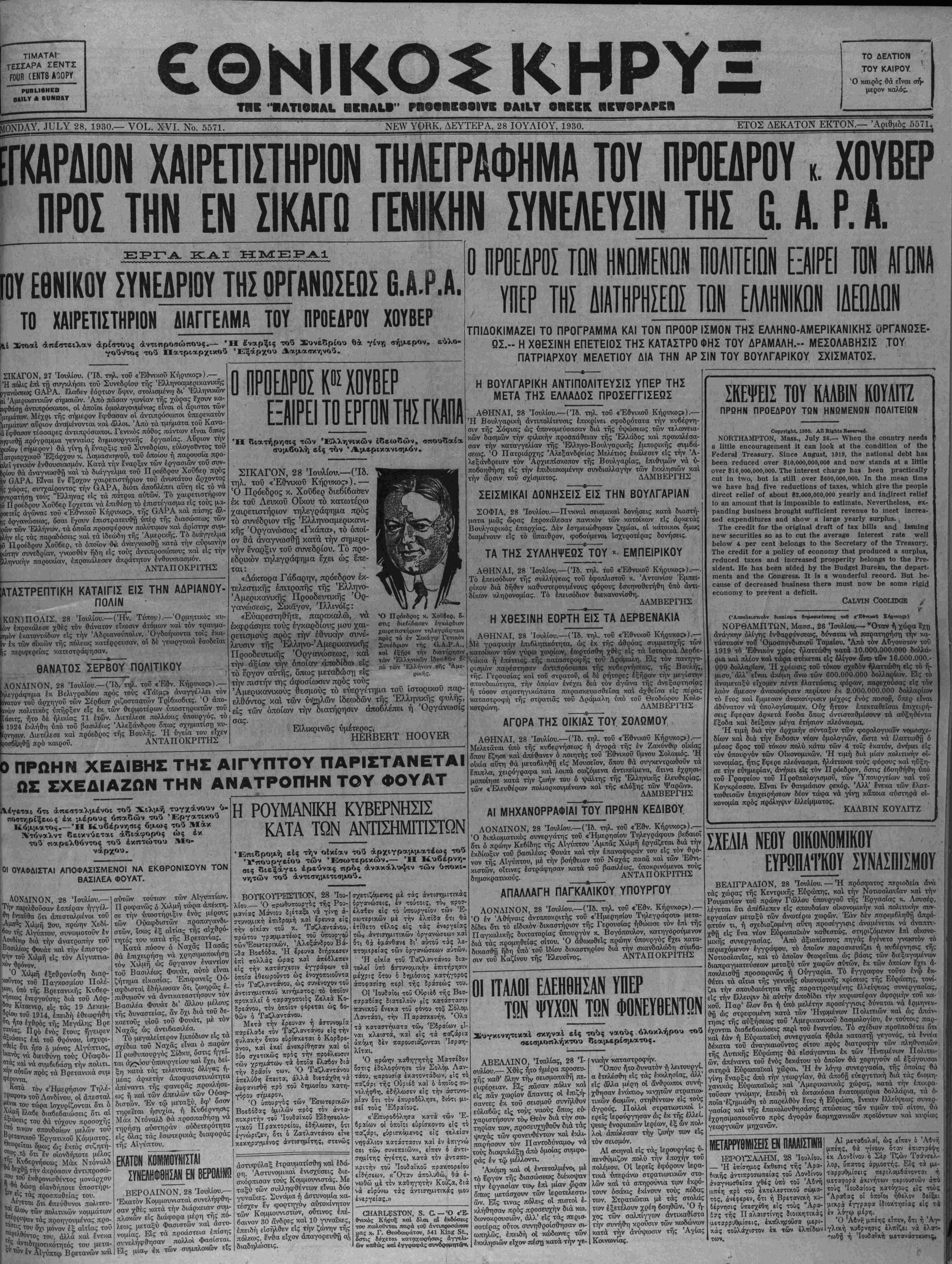 υρίου θά άναγνοχτθη καί τό διάγγελμα τού Προέδρου Χοΰβερ ατρύς