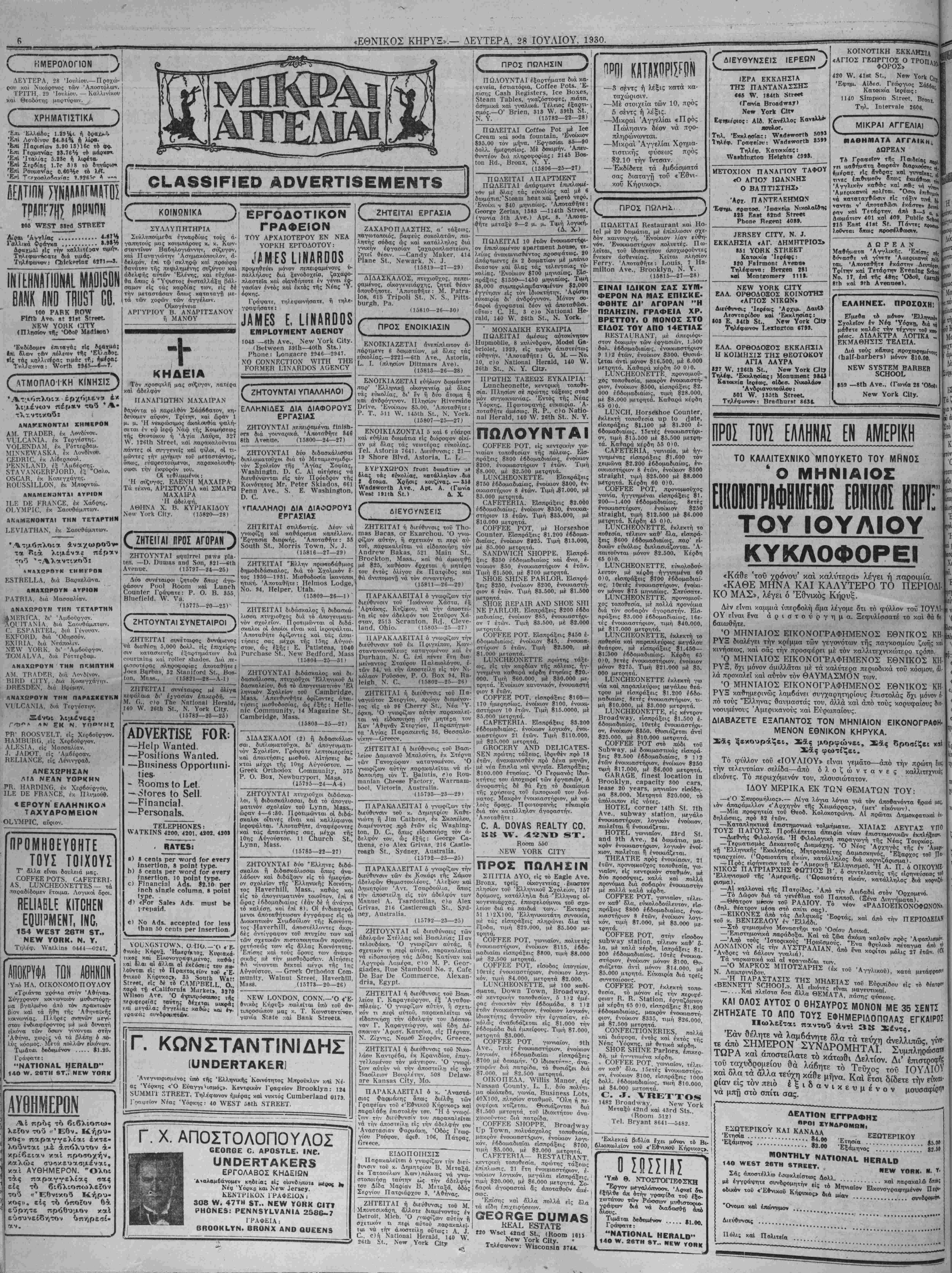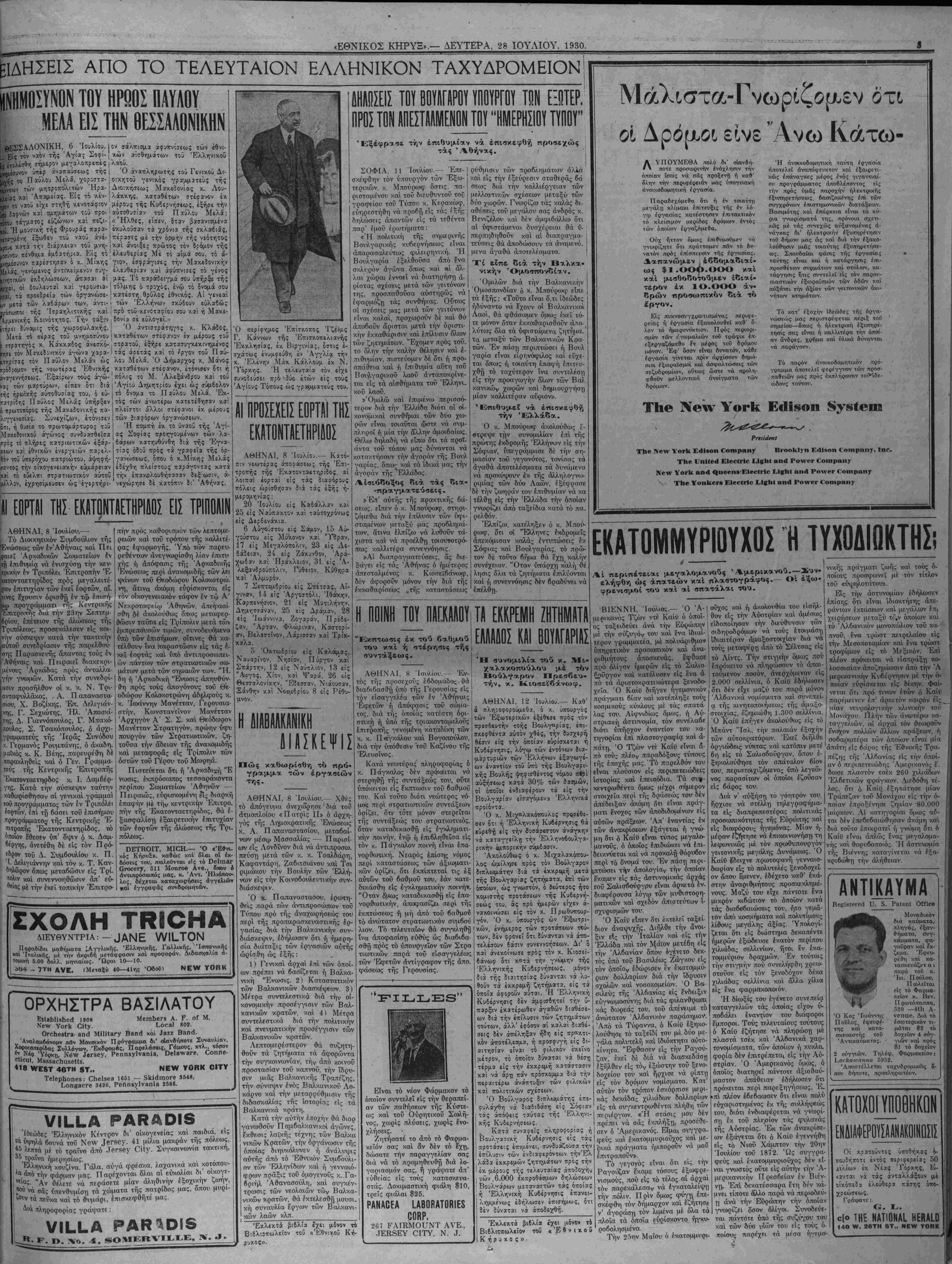 ΝΕ¥ ΥΟΒΚ, ΔΕΥΤΕΡΑ, 28 ΙΟΥΛΙΟΥ, 1930.
