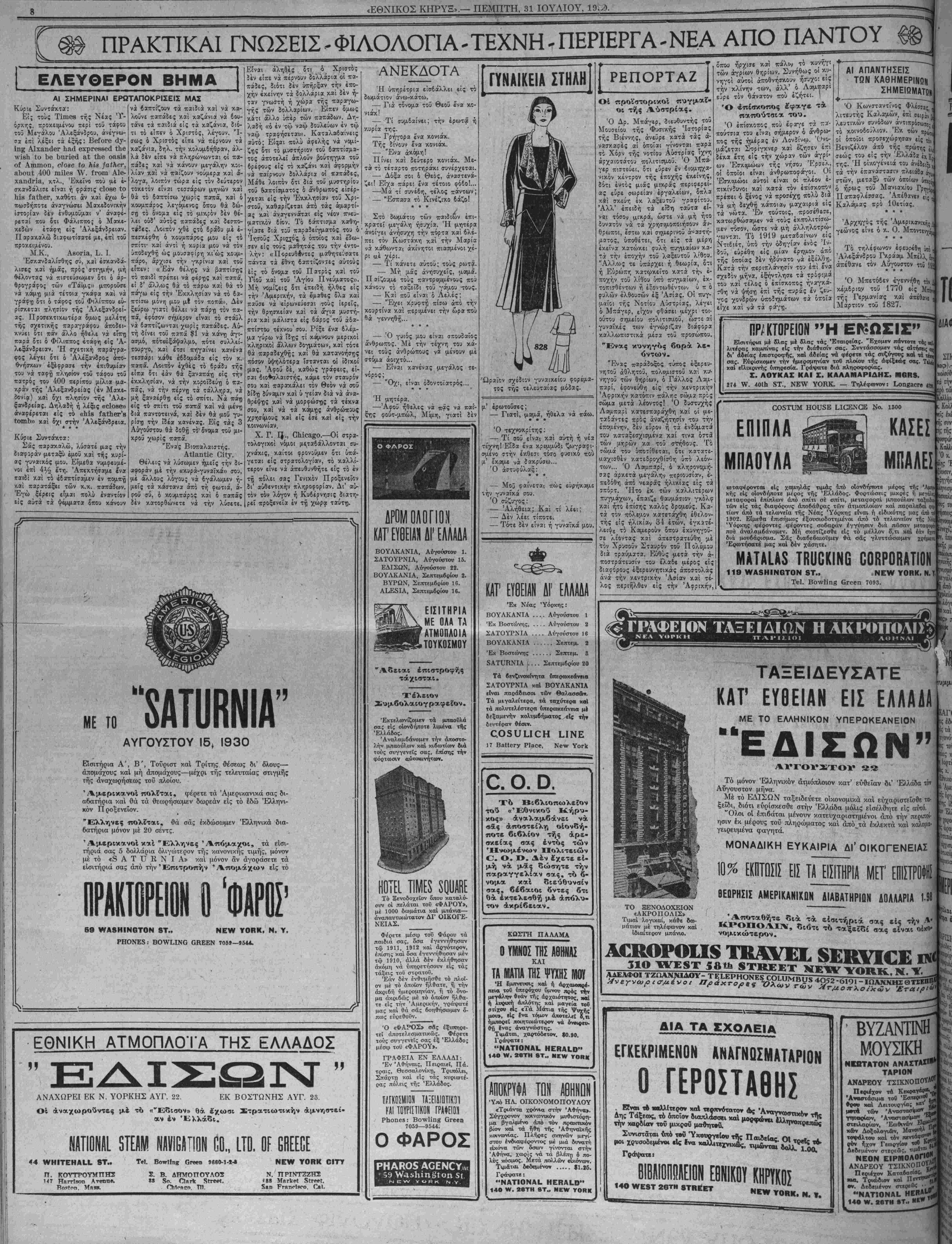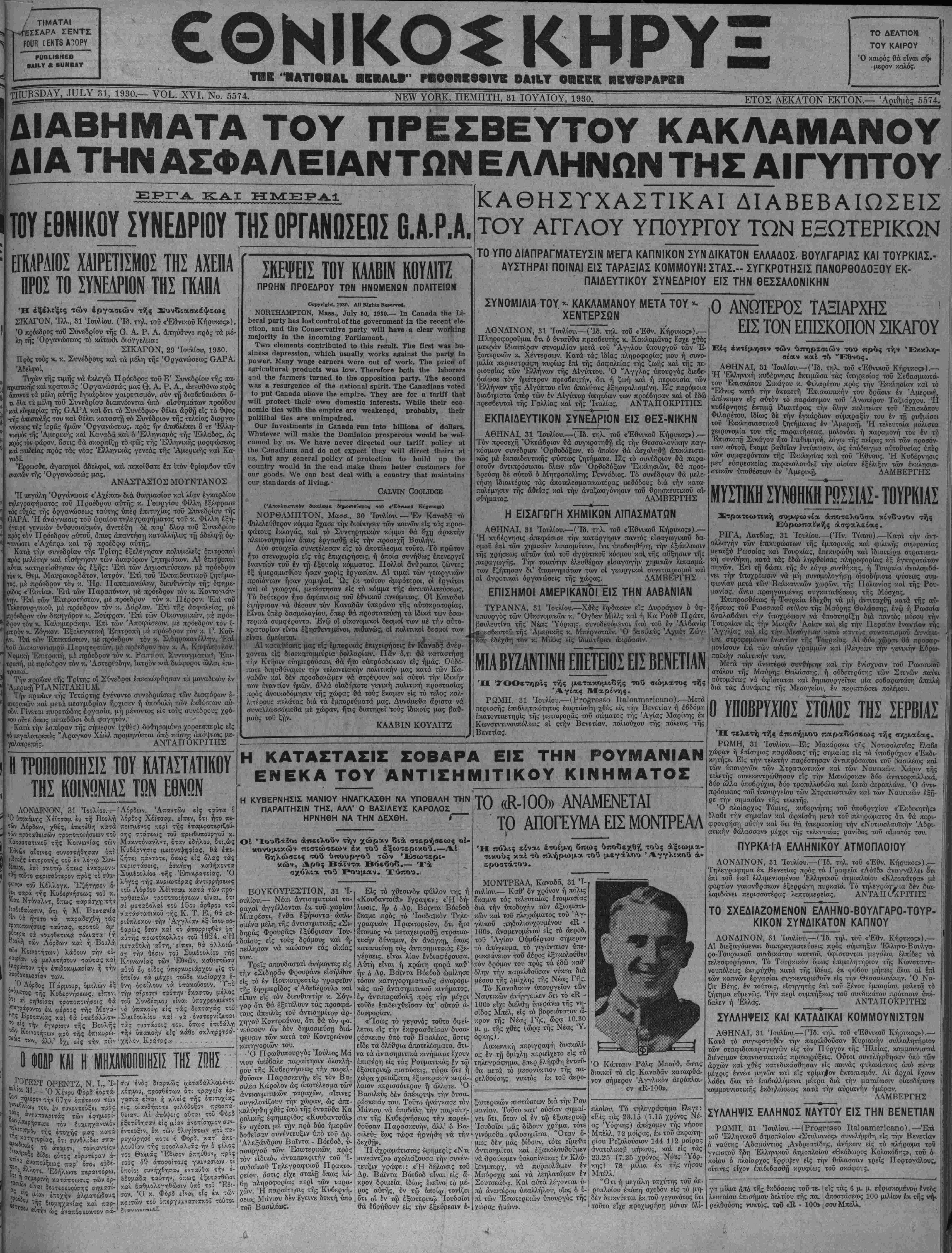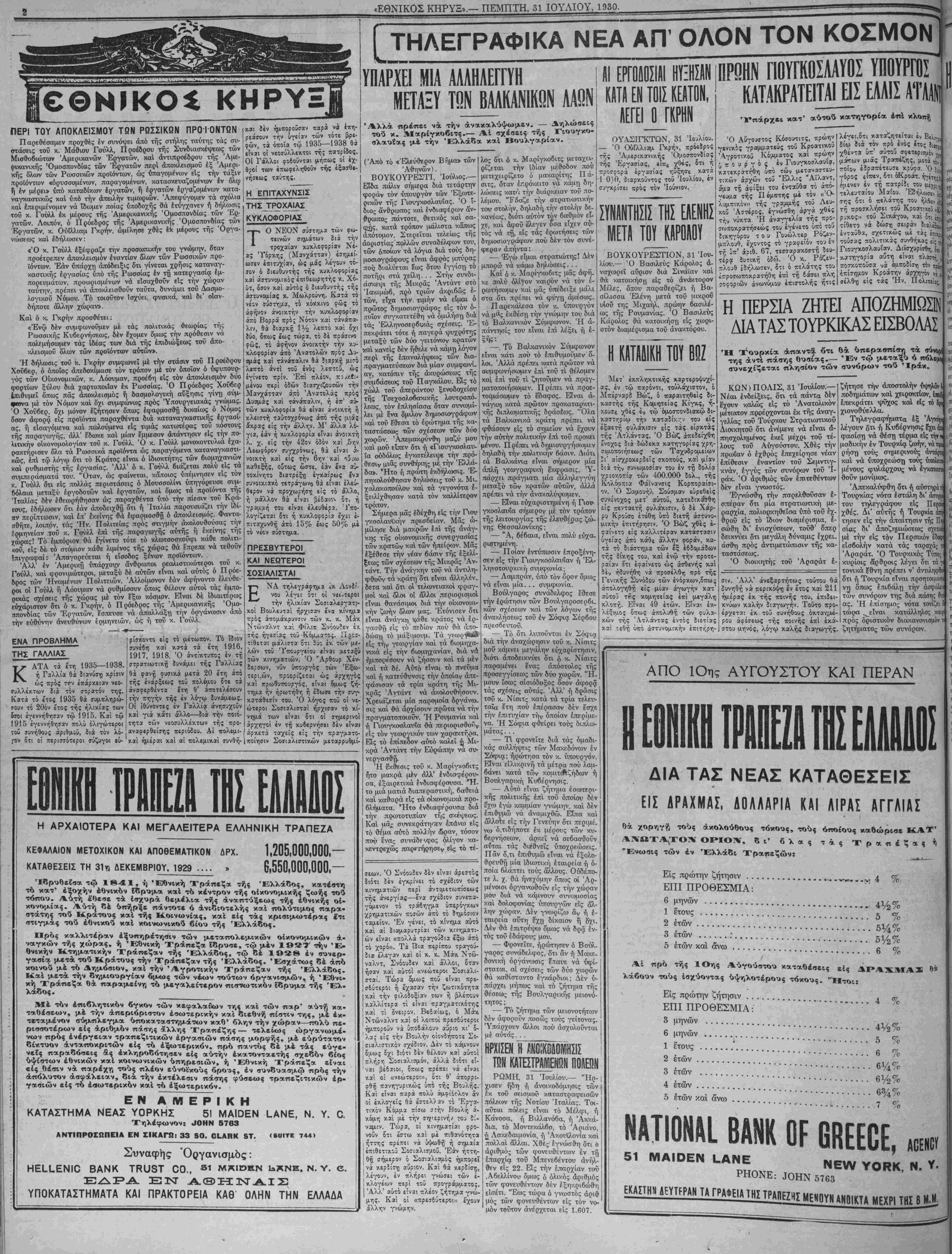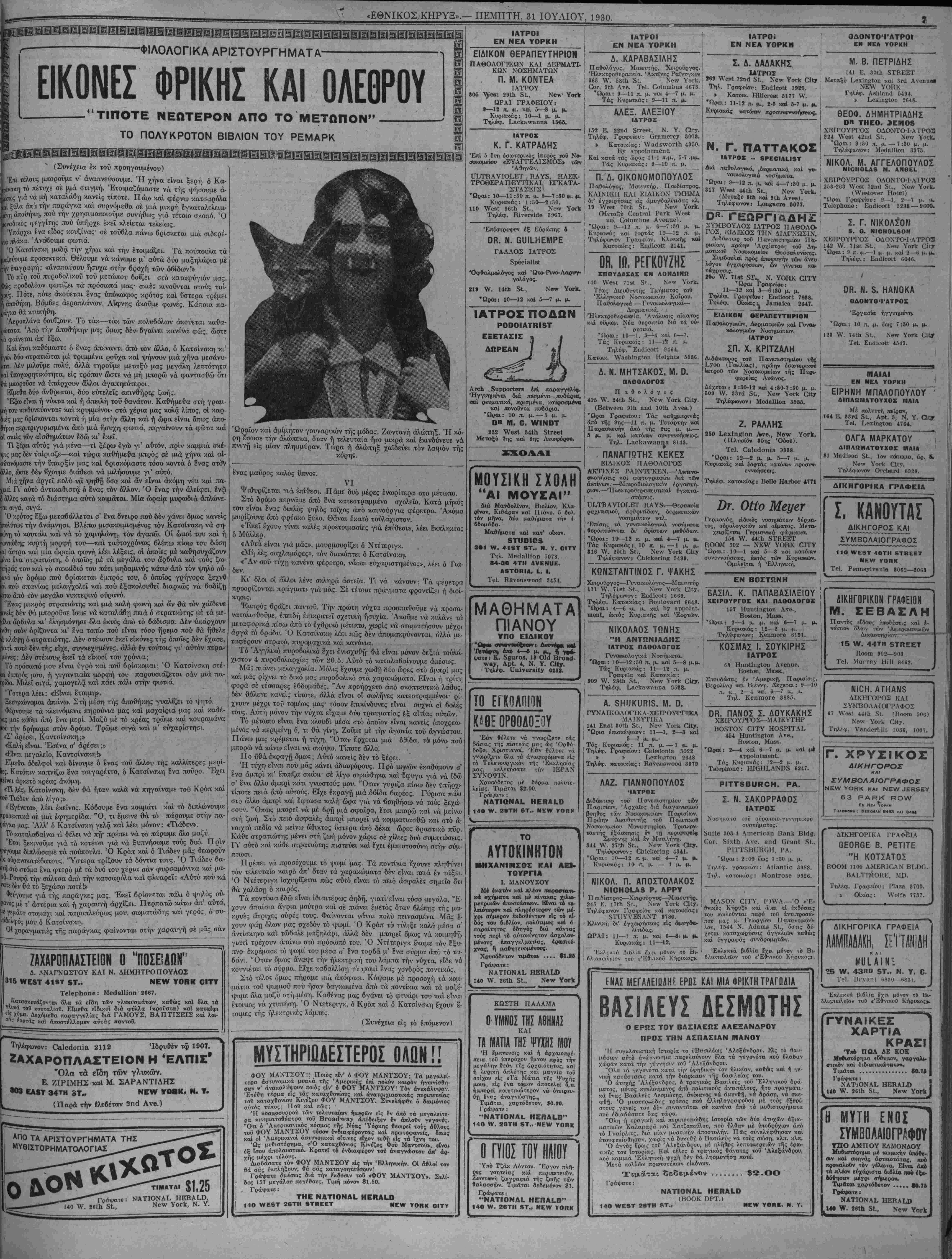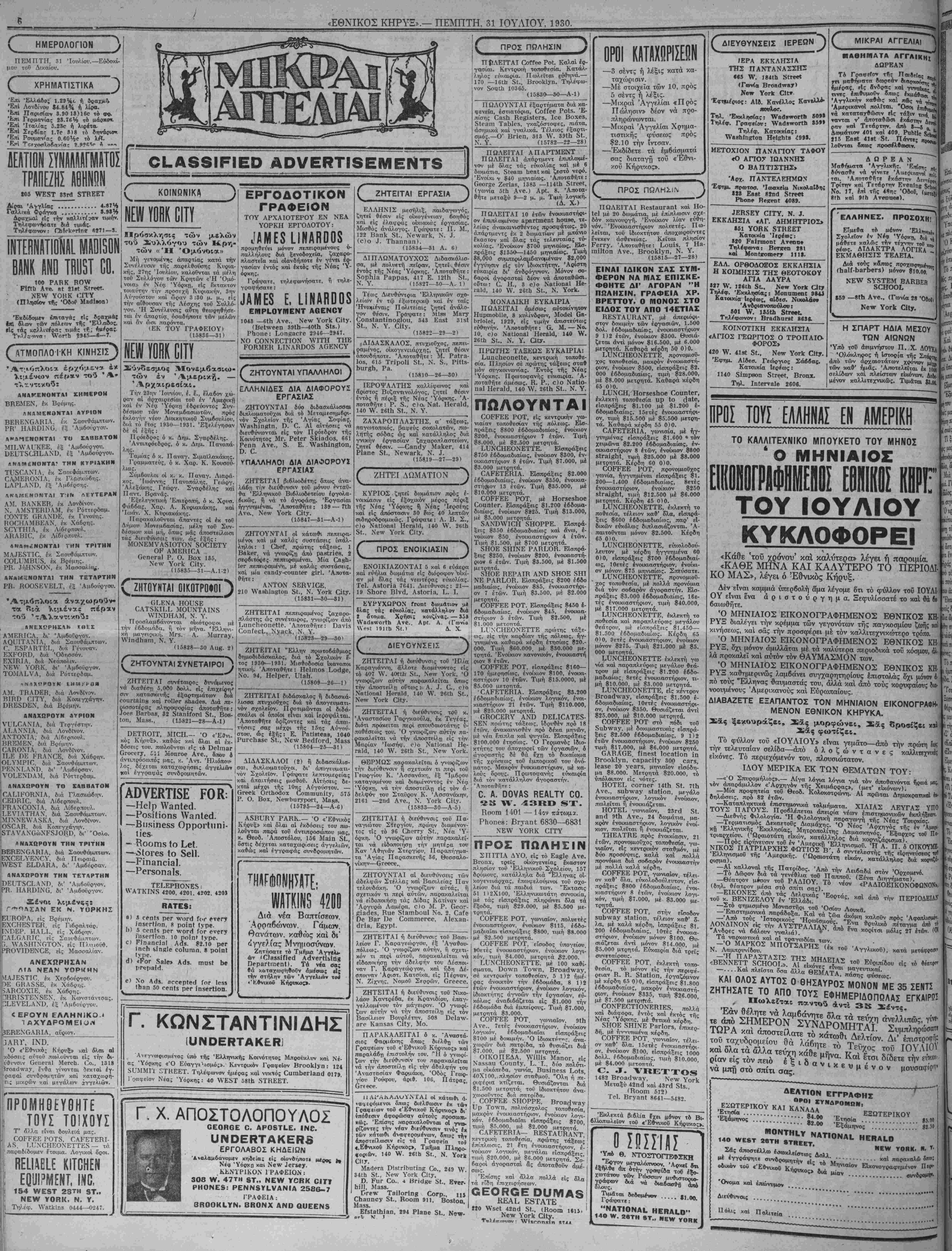 ΝΕν ΥΟΚΚ, ΠΕΜΠΤΗ, 31 ΙΟΥΛΙΟΥ, 1930.
