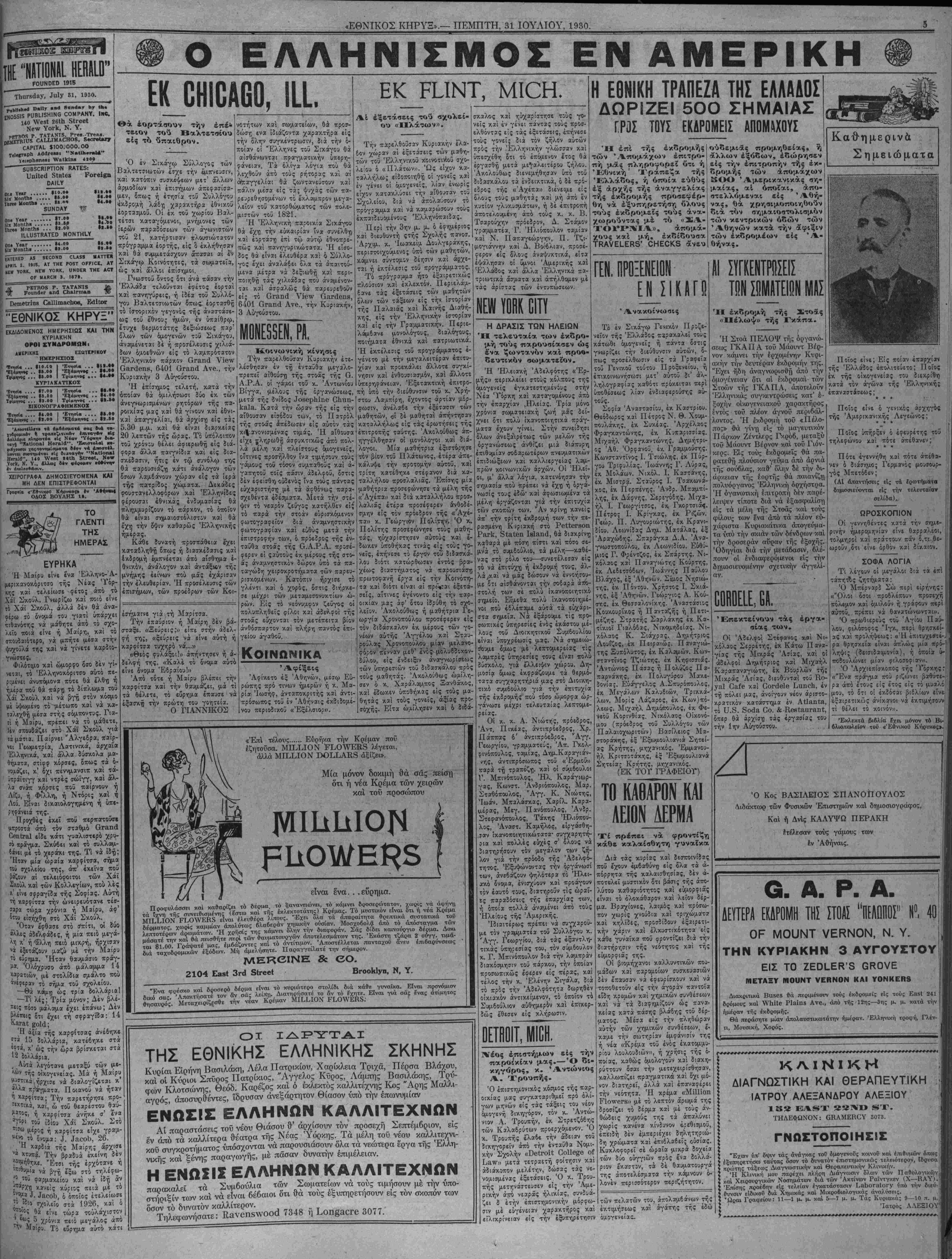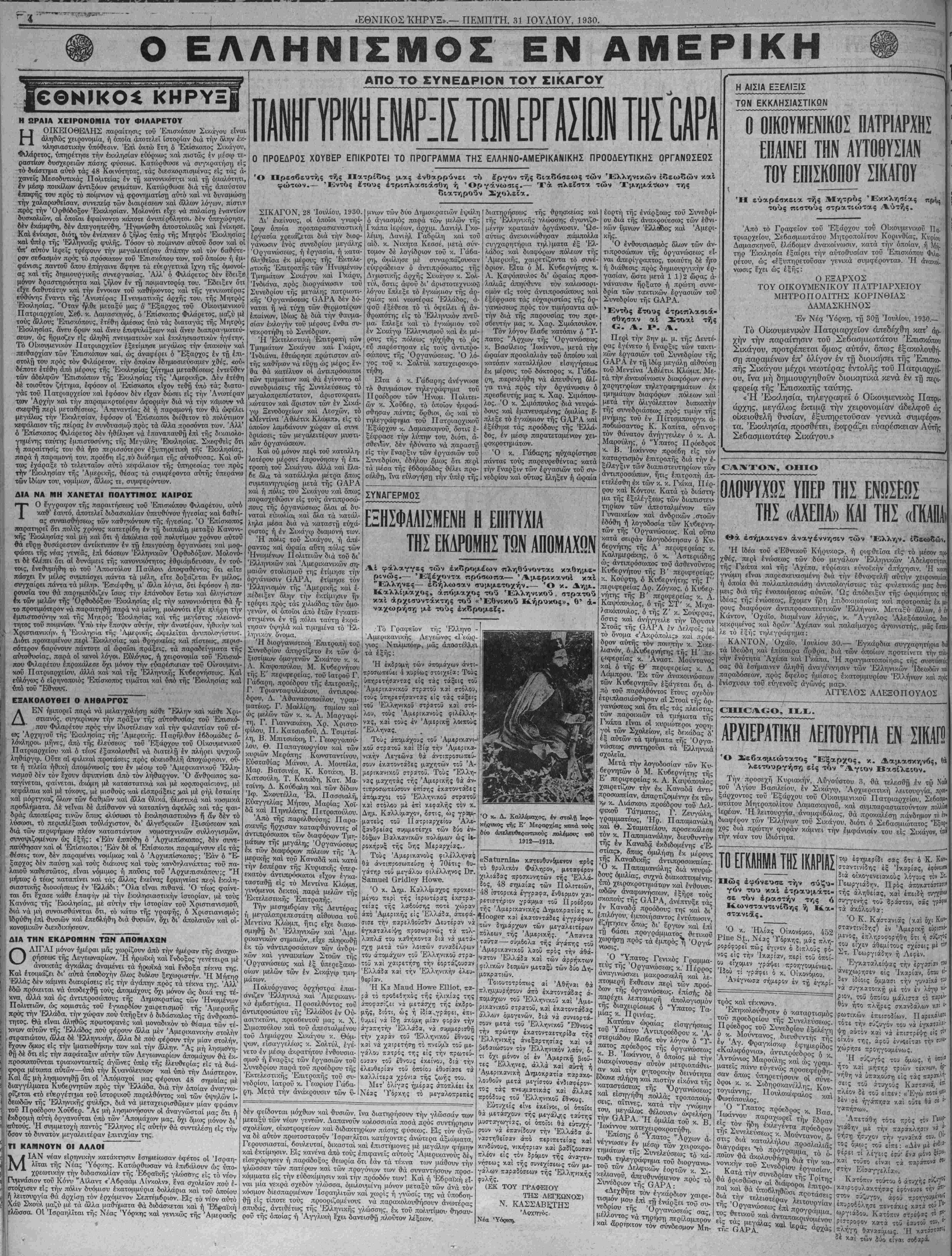 ΣΙΚΑΓΟΝ, Ίλλ., 31 Ιουλίου. (Ίδ. τηλ. τοϋ «Εθνικον Κήρυκος»).