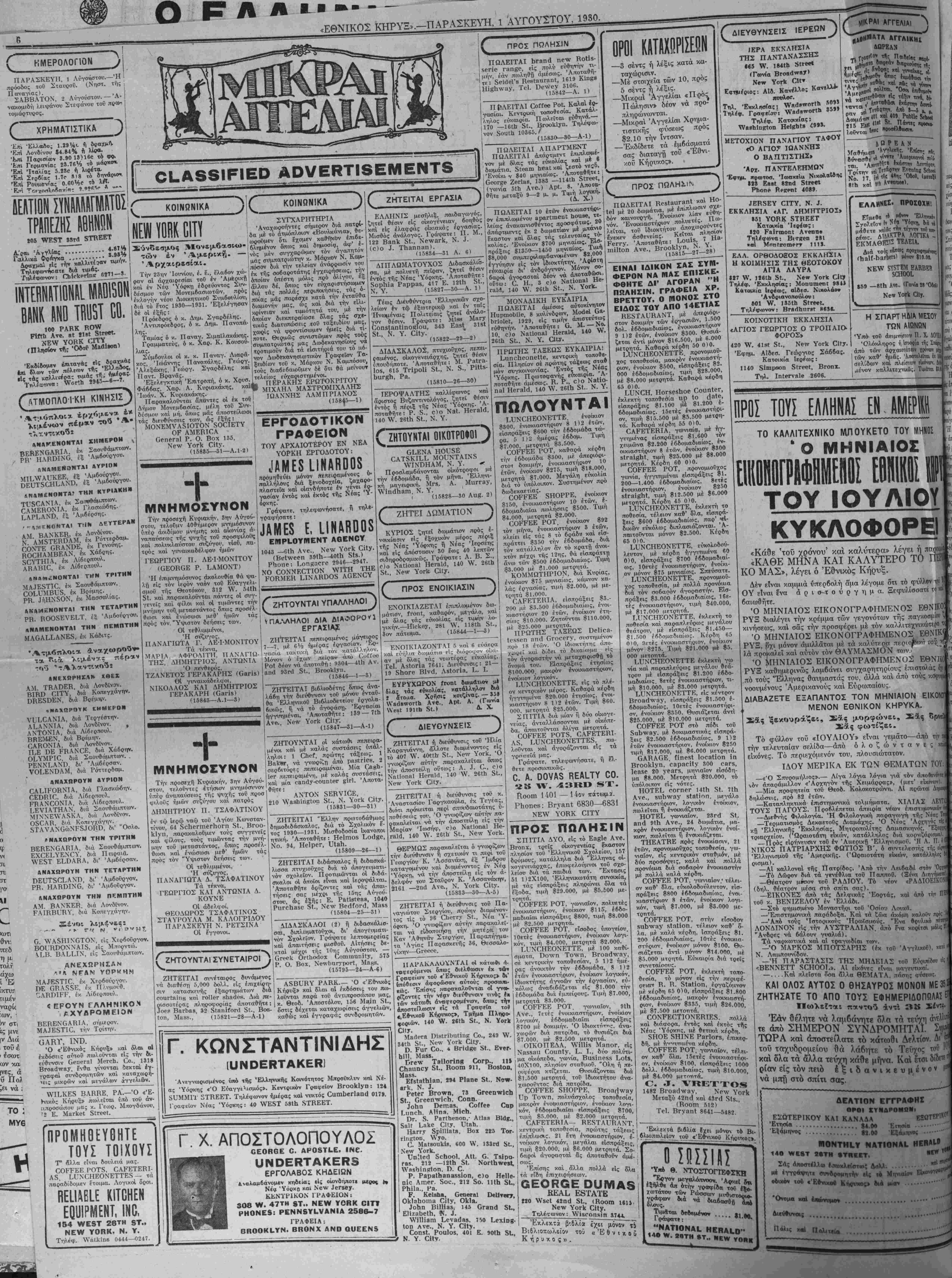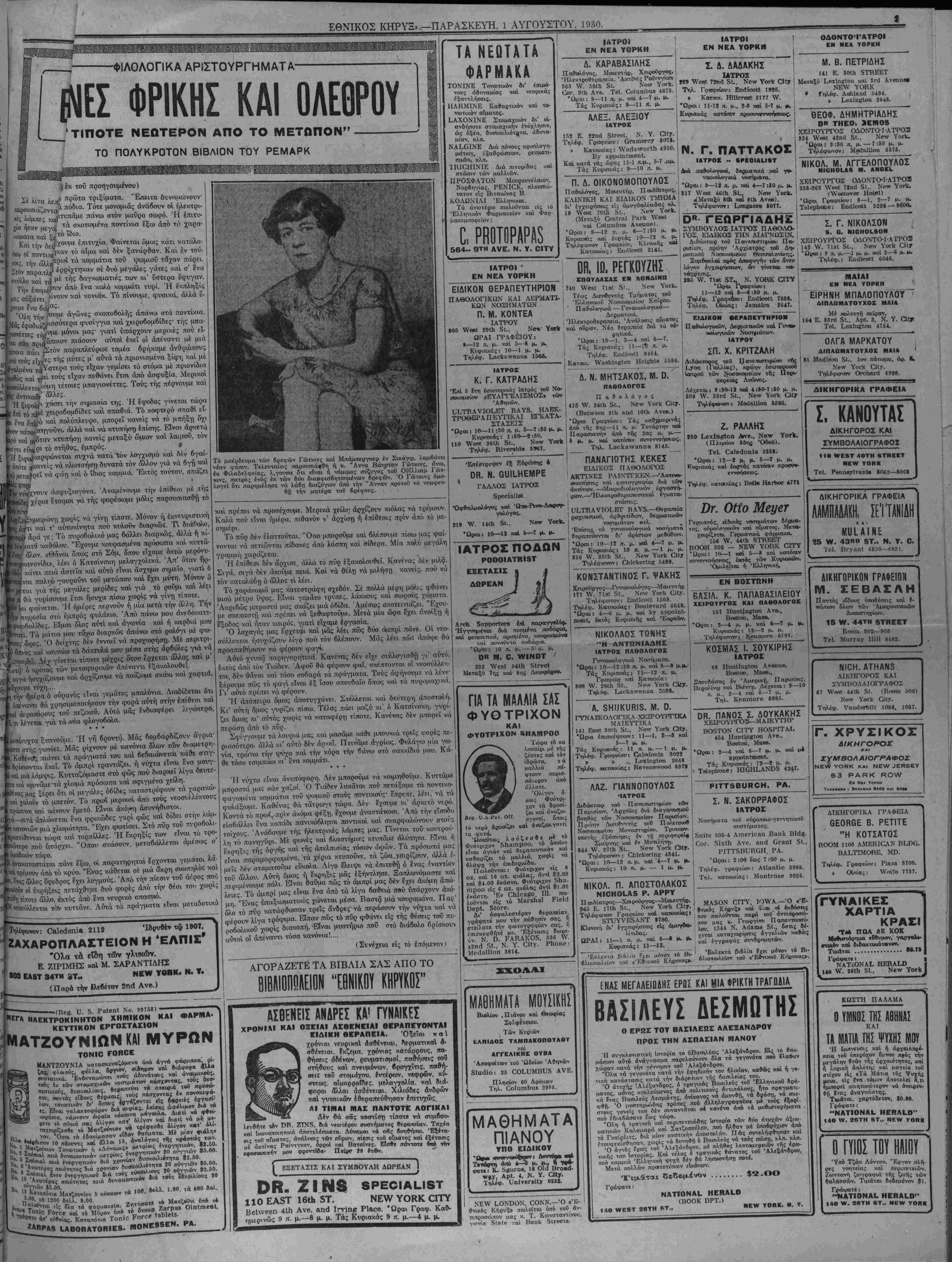ΝΕν ΥΟΚΚ, ΠΑΡΑΣΚΕΥΗ, 1 ΑΥΓΟΥΣΤΟΥ, 1930.