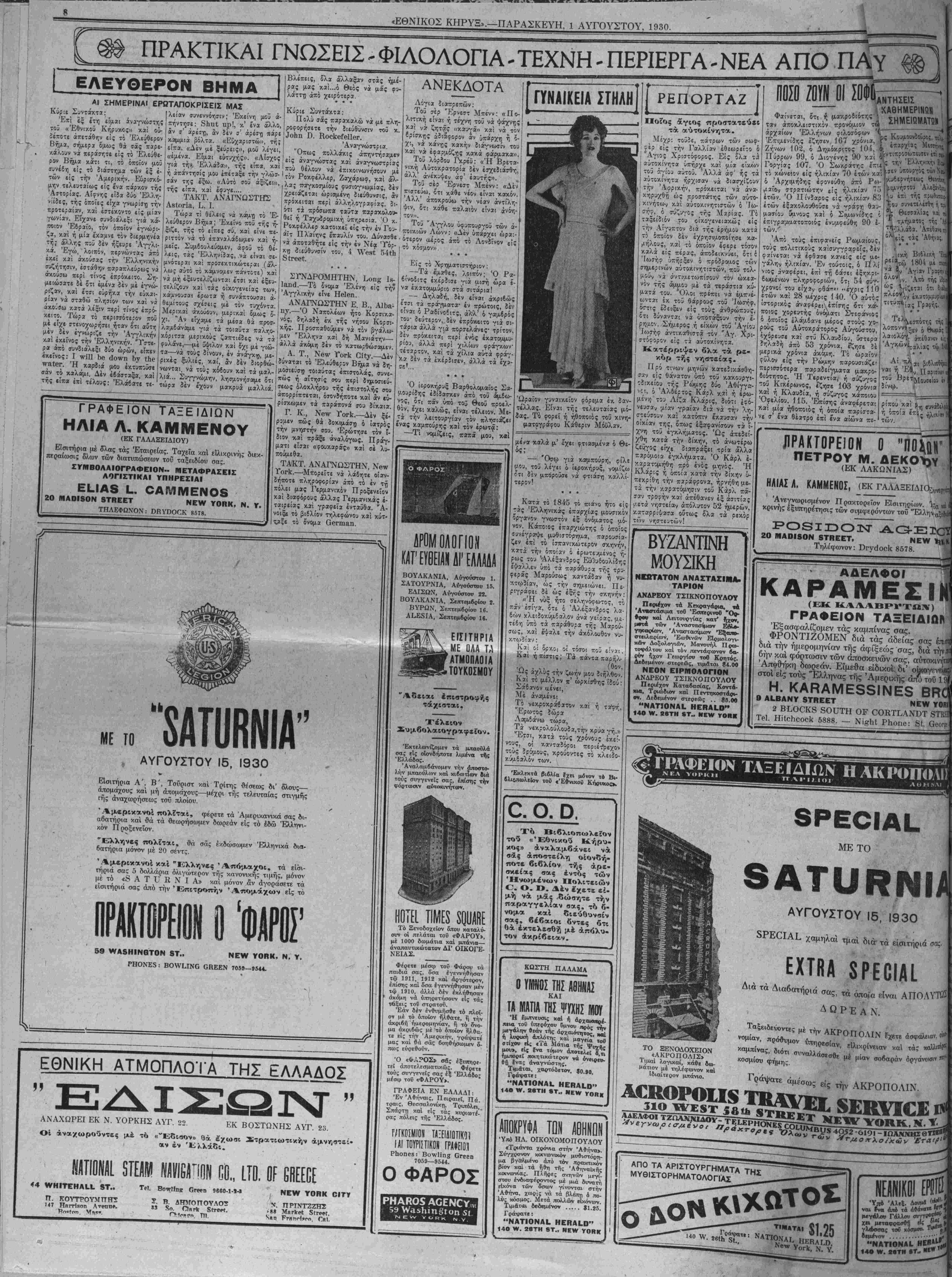 ίστορικος άναφερει' έπίσης <5τι χά- ποίος χορευ·τής ονόματι Στϊφάνιος ό οποίος ελάμβανε μ&ρος στονς χο- ρούς τίΰ Αύτοκράτορος Αύγούστοϋ, «ίχόρευσε καί στΰ Κλαυίίου, ϋίστερα δηλαδή άπό 53 χρόνια, εζησε ϊέ μερικά χρόνια άκόμ.η. Το ωραίον φΰλον είς την Ρώμην παρουσιάζη πίβισσότερα παραδείγμ,ατα ρ ρμ μρ διοτητος. Ή Τίρεντια, ή σύζυγος τοΰ Κικέρωνος, έ'ζησβ 103 νρόνια καί ή Κλαυδία, ή σύζυγος καποιου Όφελίου. 115. 'Βπίσης άναφέρεται καί μία ή^οποιός ή όποία χαρίστα- νε σ' «να θΐατρο επί ίνα αΐώνα πε- ..Λερνήσιως ή Ά έχι τής ρ υ συνετιλίΐ&η ή -, ©ϊσσϊλίΐς χ» ■< ί της "V ί έλ!ίίς τάς Αθήνας * * * '·ιν.ή Βιίλιχ,ή Έι: *{? 1804 μ.» :{? 1 ά Κ Αγ Μ**. Ά ή ω?, ^ίζετϊΐ ότι ίιι πλέον^ν ί%Λτψμι'υ ΠΡΑΚΤΟΡΕΙΟΝ Ο ^ ΠΕΤΡΟΥ Μ. ΔΕΚΟ)Υ (ΕΚ ΛΑΚΩΝΙΑΣ) ΗΛΙΑΣ Λ. ΚΑΜΜΕΝΟΣ, (εκ γαλαξειδιο;^ 'Ανεγνωρισμένον Π ρακτορείον Είσιτηρίων. 1^α «αί ι κρινής εξυπηρέτησις των συμφερόντων τοΰ "ΕΚλΜ ΡΟδΙΌΟΝ 20 ΜΑΟΙ8ΟΝ 8ΤΠΕΕΤ, Τηλέφωνον: ΝΕΥΥ 8578. ΑΔΕΛΦΟΙ ΚΑΡΑΜΕΣΙΝ (ΕΚ ΚΑ1ΒΡ1·Τϋ) ΓΡΑΦΕΙΟΝ ΤΑΞΕΙΔΙΩΓ Έξασςραλίζομεν τάς καμπίνας σας. , ΦΡΟΝΤΙΖΟΜΕΝ διά τάς αδείας σσς &ι<ηο διά την ήμερομηνίαν τής άφίξεώς σας, διά την.ιο βήν και φόρτωσιν των άποσκευών σας, αυτοκίνητον Άπφθήκη δωρεάν. Είμεθα είδικοί, δι' οαηγη στοί είς τούς Έλληνας τής Άμερικής άπ* τοϋ Η. ΚΑΡΑΜΕ55ΙΝΕ5 ΒΡ< Ο ΑΙ.ΒΑΝΥ 8ΤΗΕΕΤ ΝΕτΥ ΥΟΒ(| 2 ΒΕΟΟΚ8 8ΟϋΤΗ ΟΡ ΟΟΚΤΕΑΝϋΤ 8Ί ΤβΙ. ΗΊΙοϊιοοοΙΐ 5888. — Νϊ^ΙιΙ ΡΙιοηβ: 81. ΟβοΓ|ΐί| ^ΓΡΑΦΕΙΟΝ ΤΑΞΕΙΔΙΟΝ ΗΑΚΡΟ1ΓΟΛΙΙ ΤΤ.Λ.Ι·! Ι.ΙίίΙ Λ *·> Μ ΝΛΙ