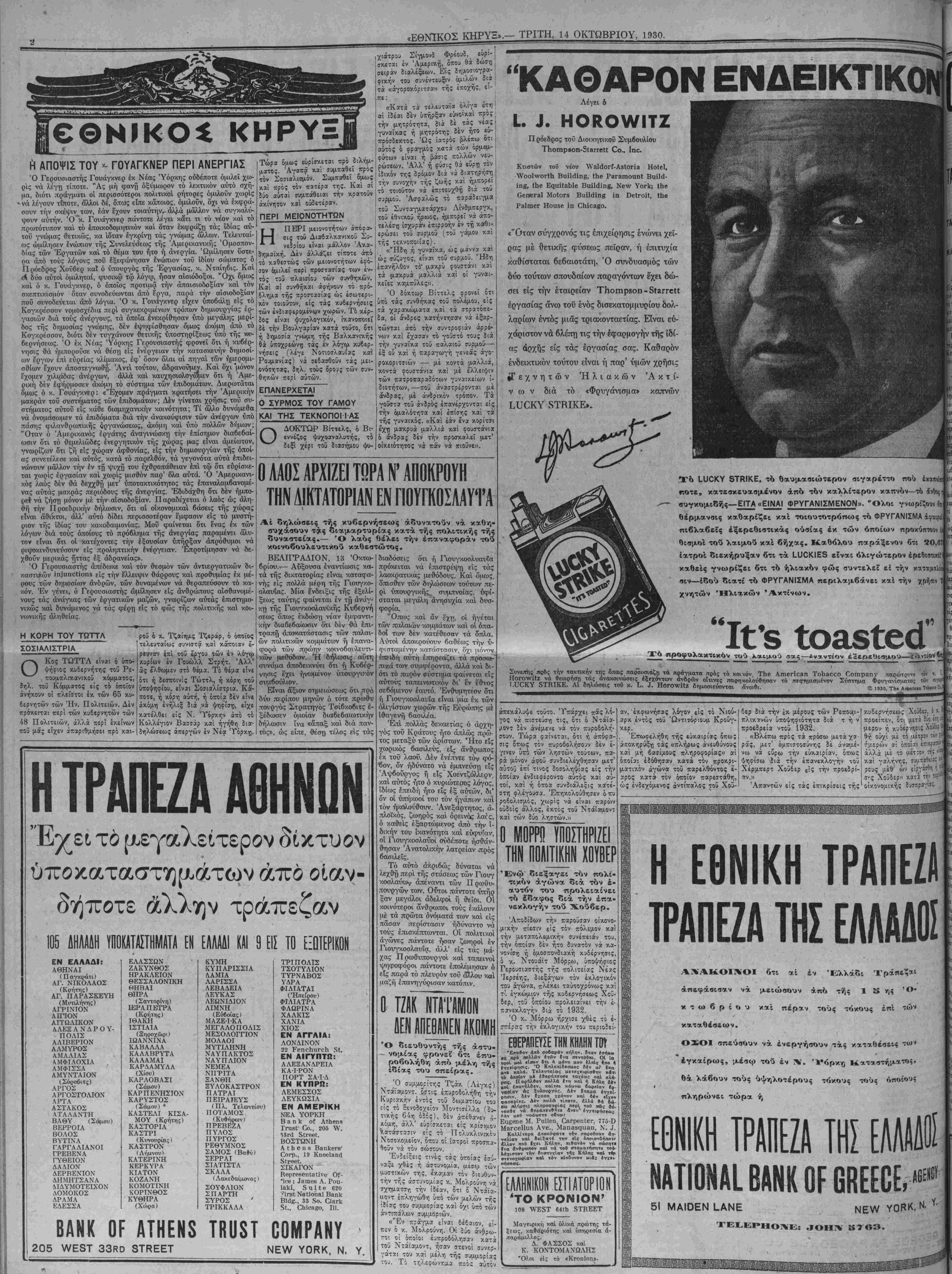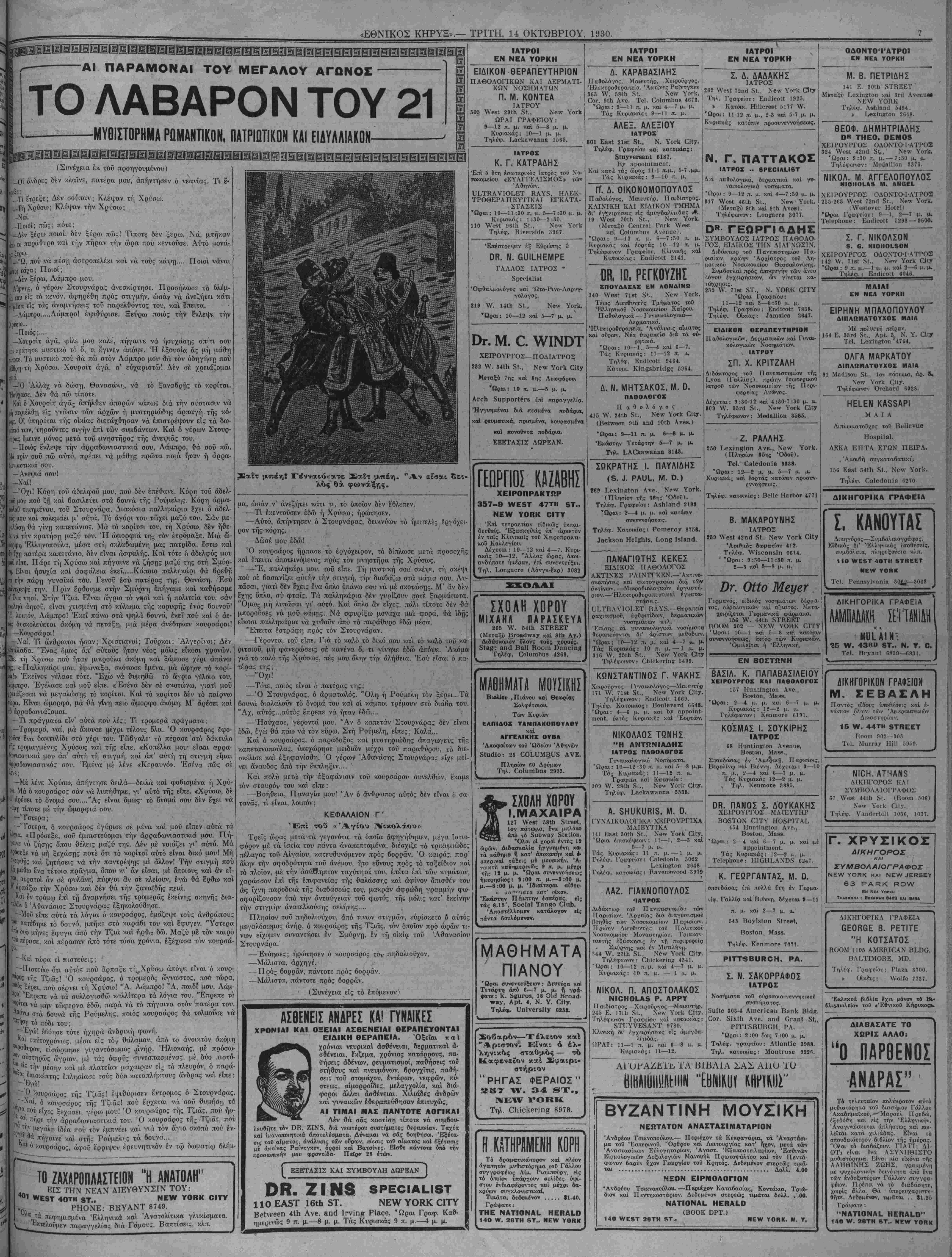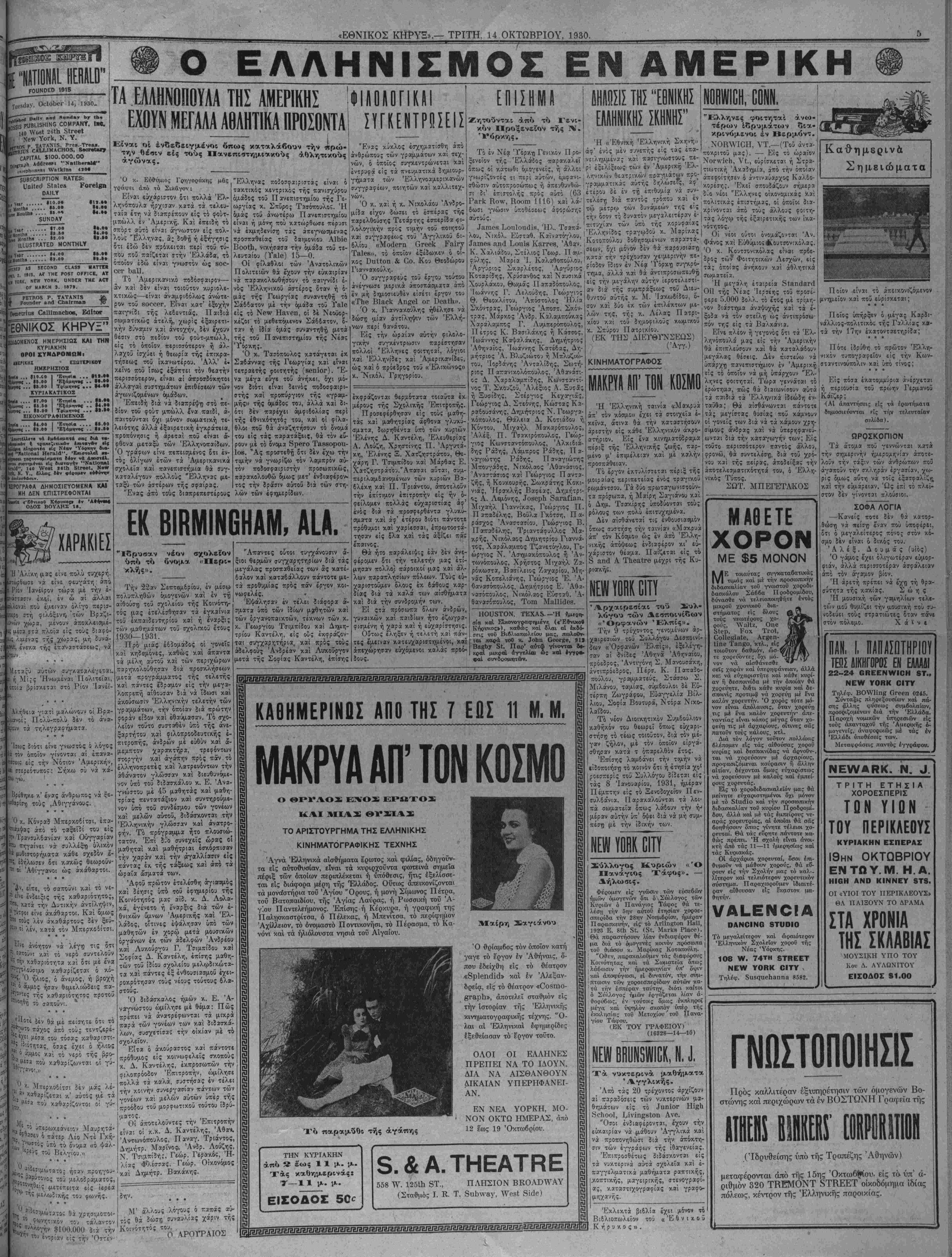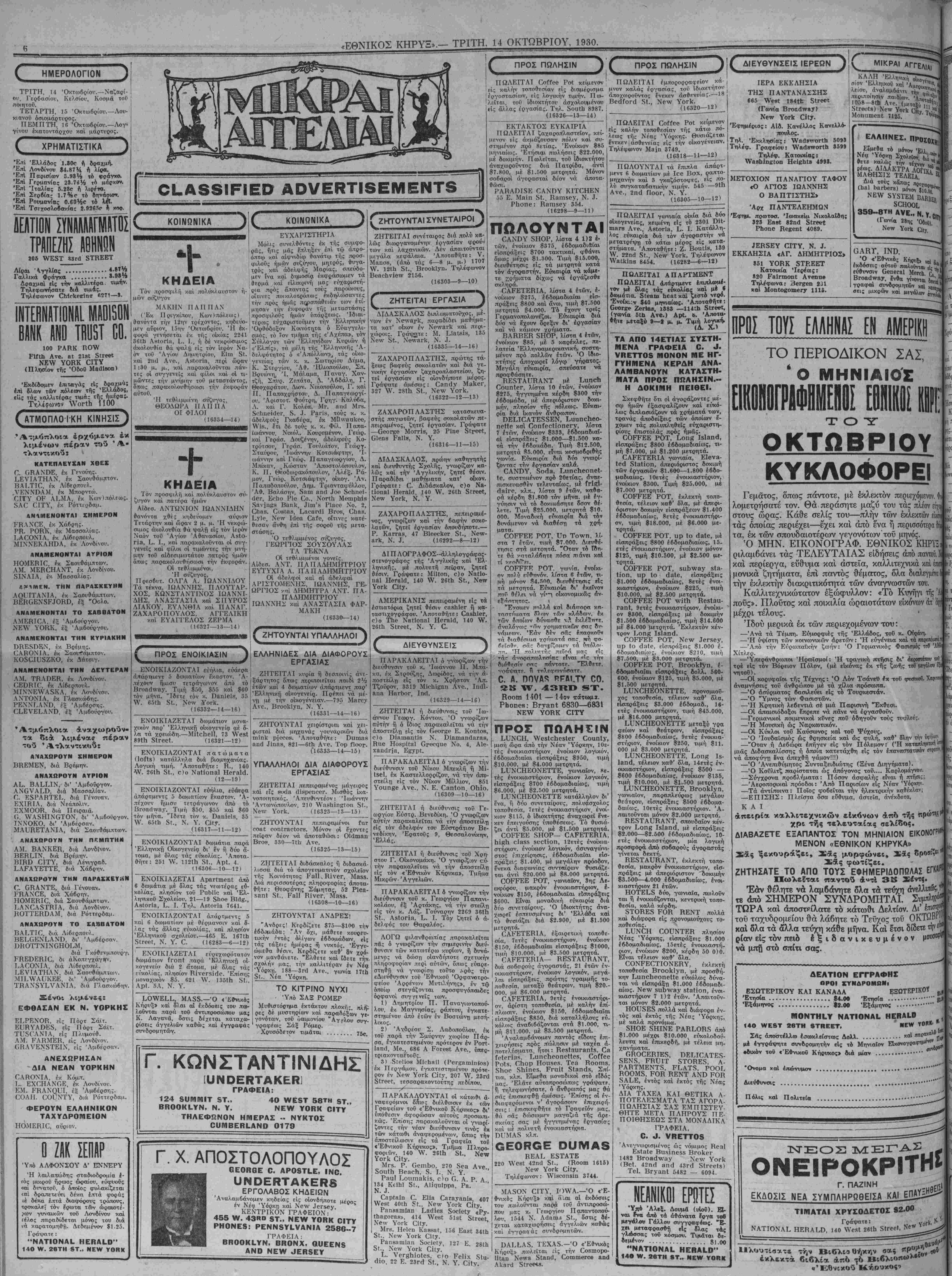 ΝΕΥ ΥΟΚΚ, ΤΡΙΤΗ, 14 ΟΚΤΩΒΡΙΟΥ, 193Ο.~