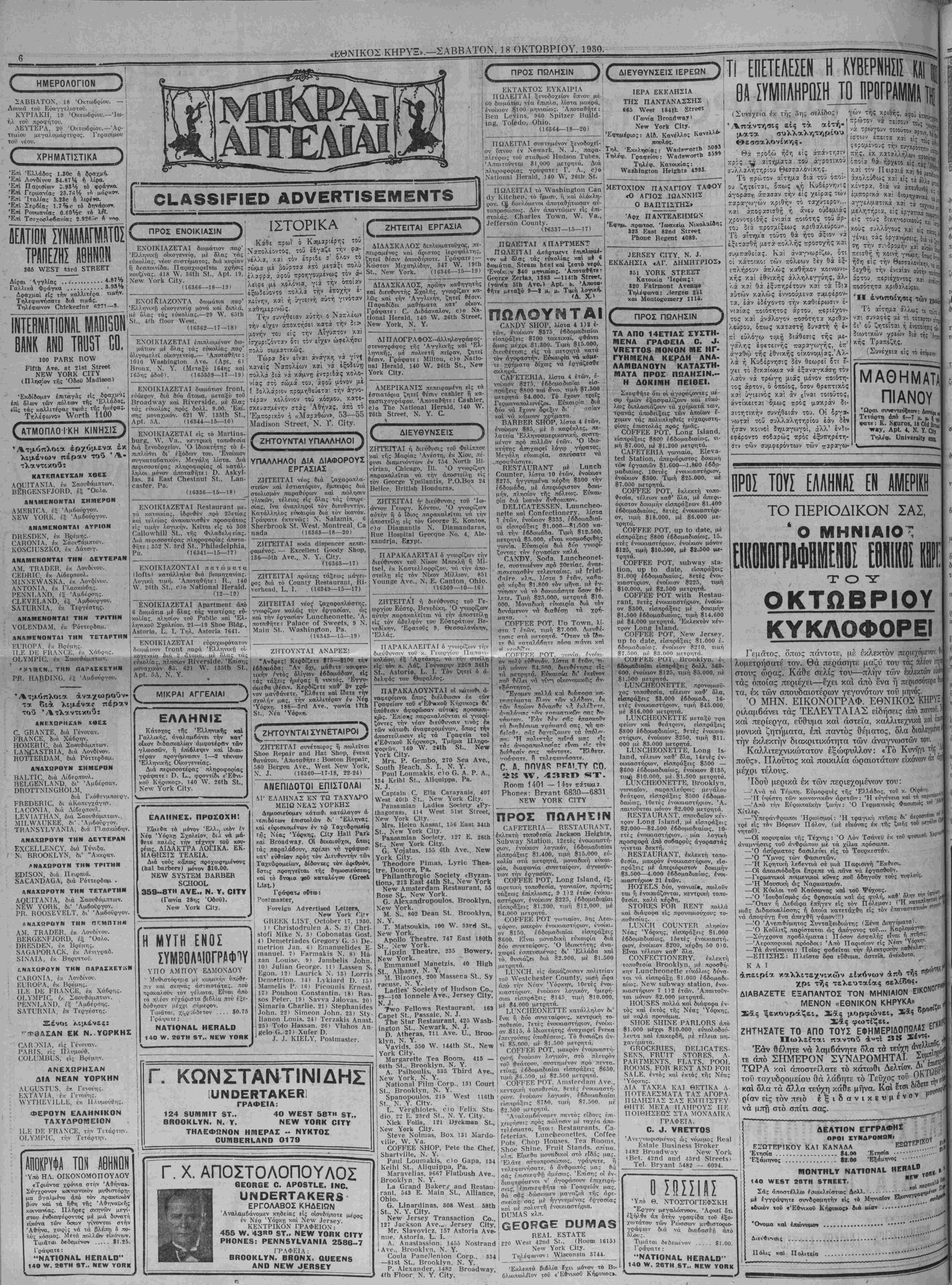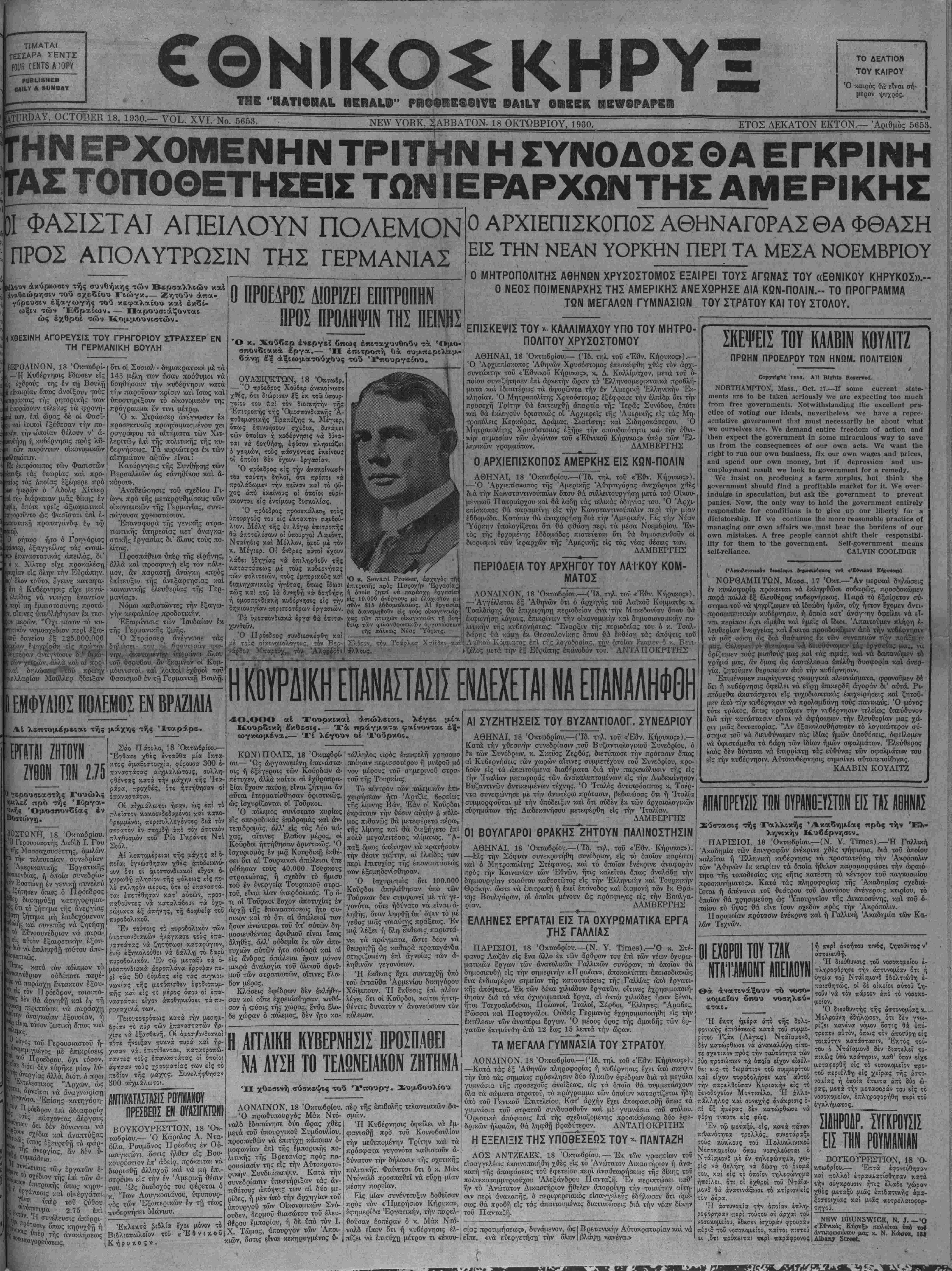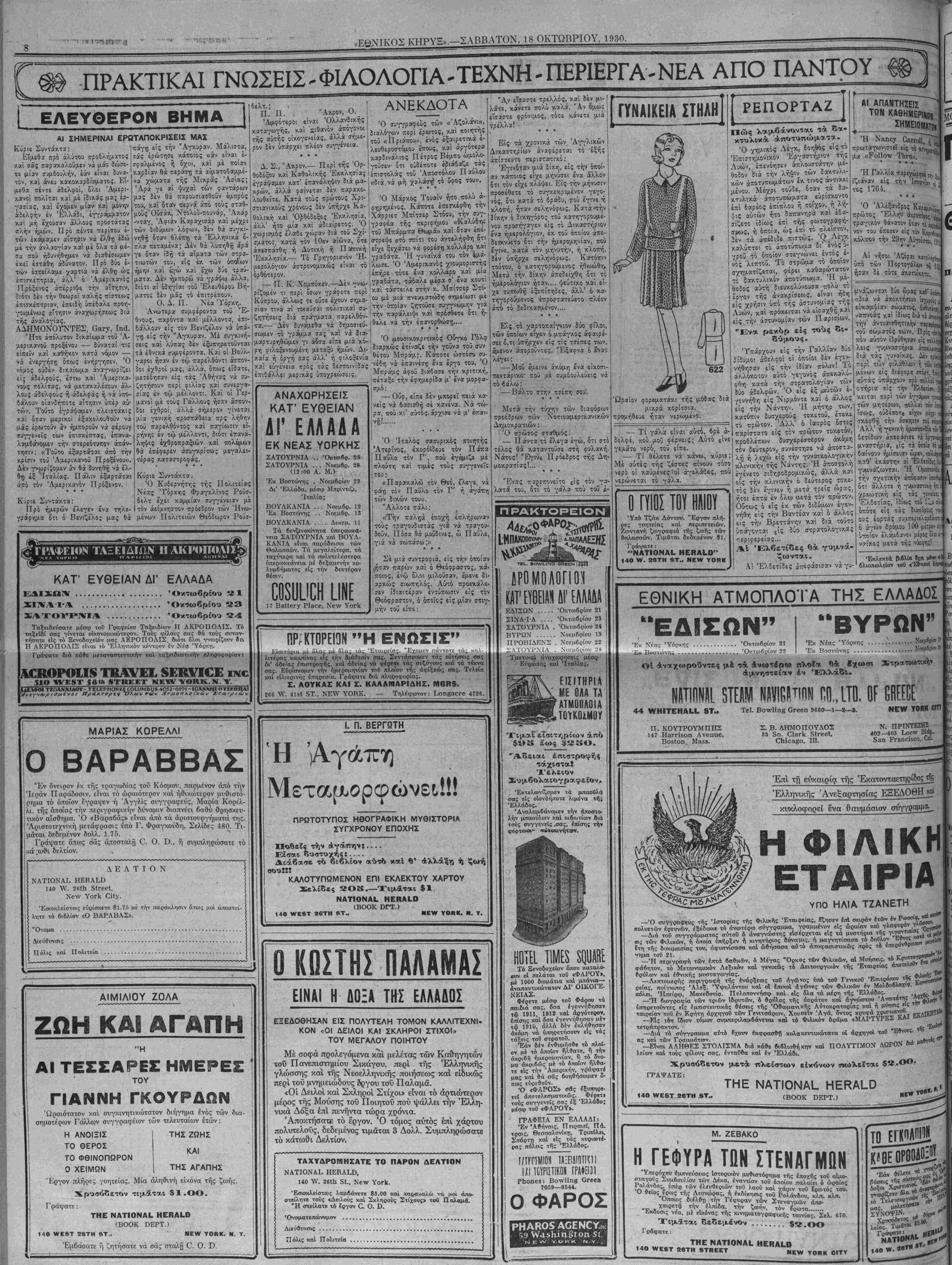 ΝΕΥ ΥΟΚΚ, ΣΑΒΒΑΤΟΝ, 18 ΟΚΤΩΒΡΙΟΥ. 1930.