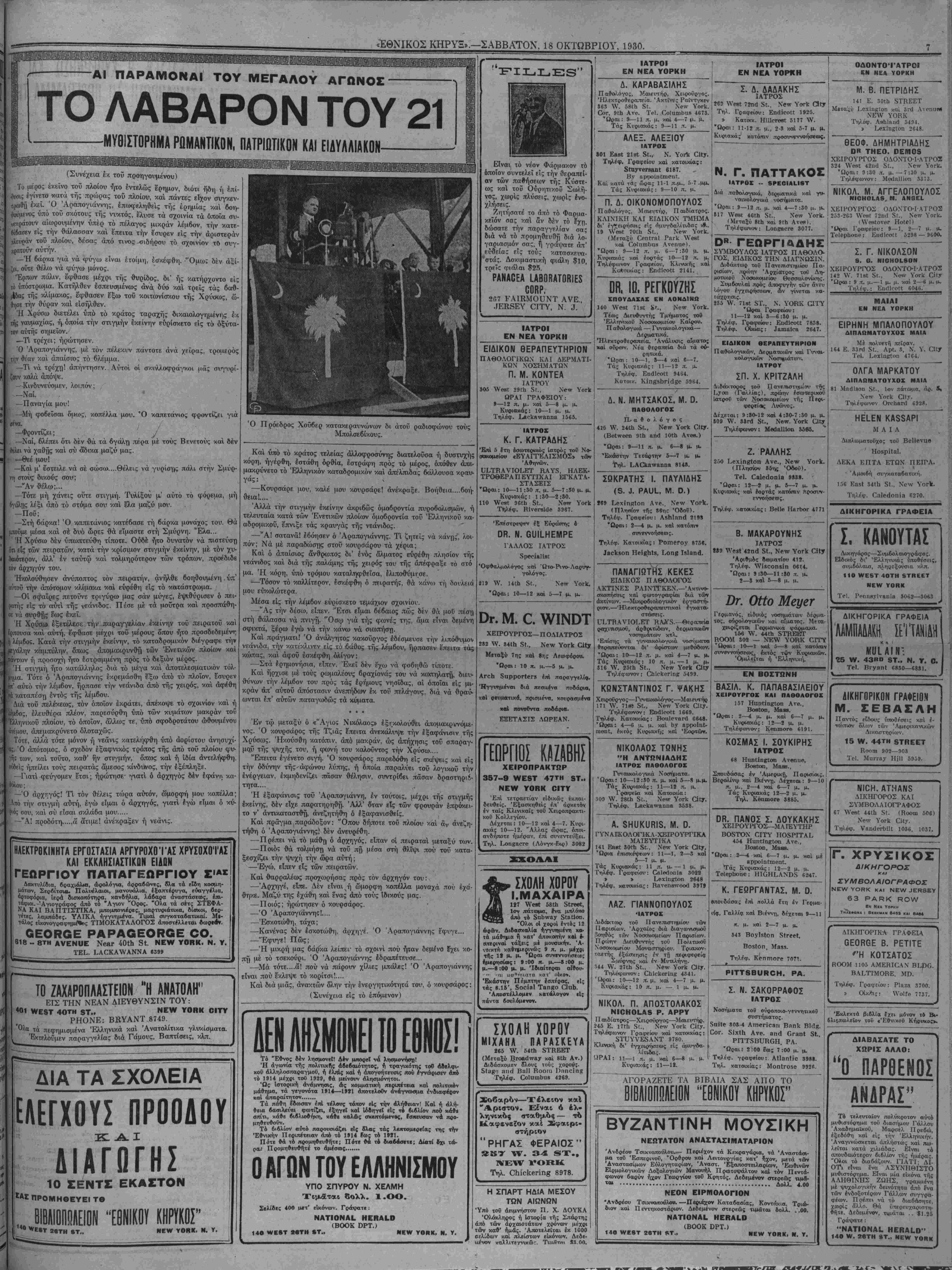 Έκ Ν/π; 'Υόρκης ............. Όκτωβρίου 21