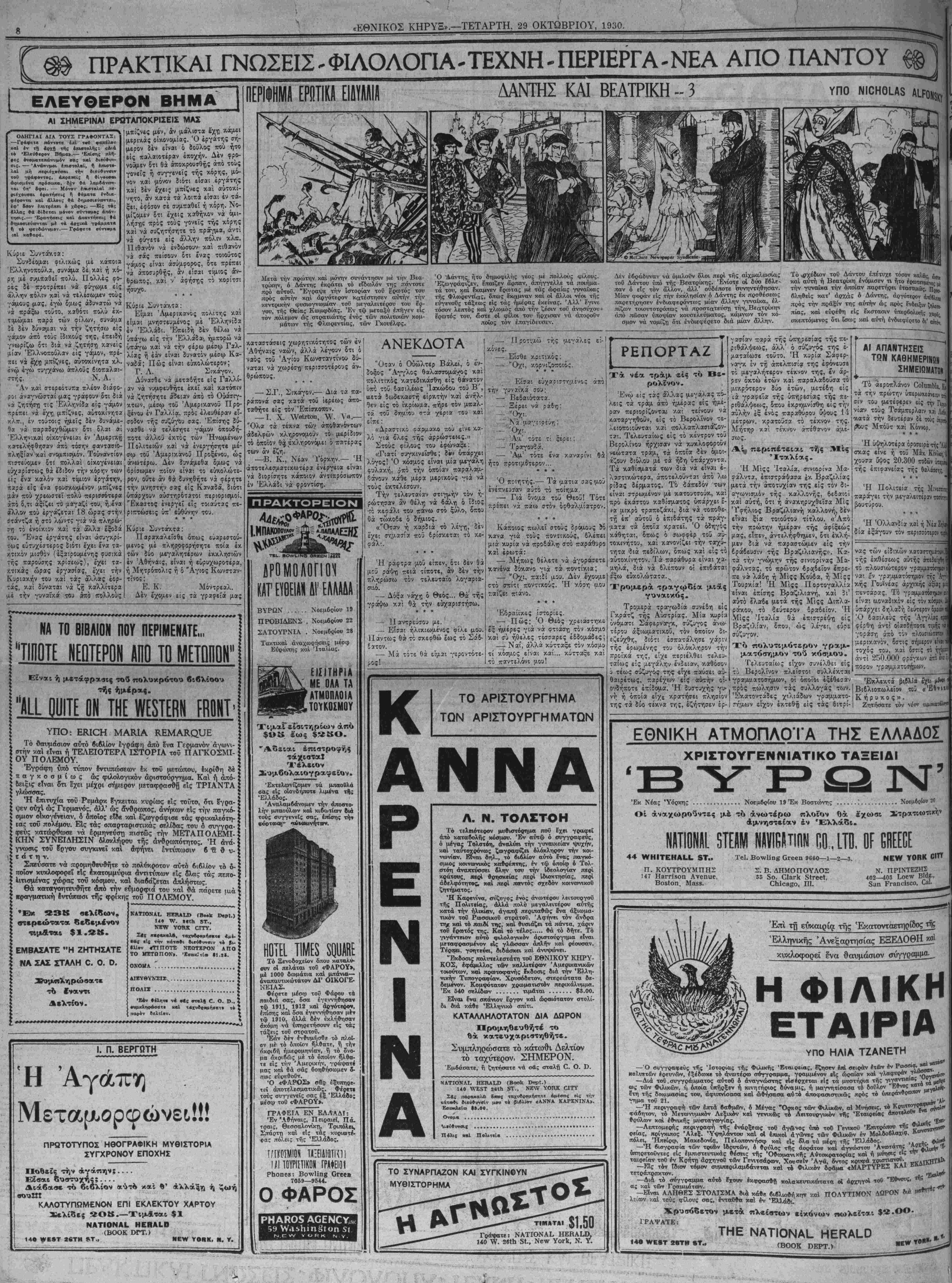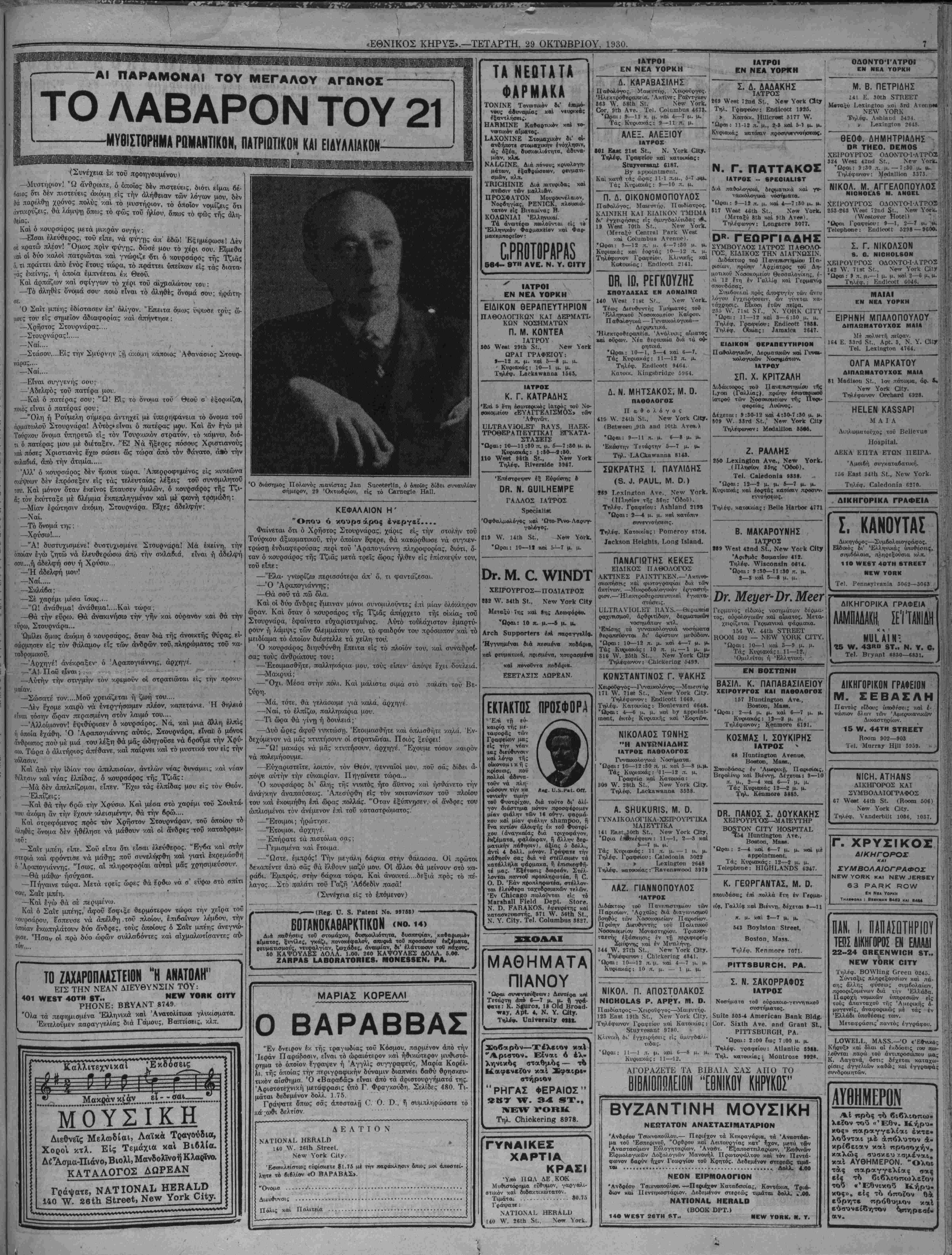 πο:ον γραμματο<ηίιων. Έκλεκτά βιδλΐβ ίχίι μ*» ι Βιβλιοπωλείον τοΰ α Έν» ι*· Κήρυκος». Ζητήσατε τόν νέον ΕΘΝΙΚΗ ΑΤΜΟΠΛΟΤΑ ΤΗΣ ΕΛΛΑΔΟΣ ΧΡΙΣΤΟΥΓΕΝΝΙΑΤΙΚΟ ΤΑΞΕΙΔΙ Γ=»_2ΤΝΓ Έκ Νέας Ύόοκης .............. Νοεμβοίου 19 Έκ Βοστωνης ......:...........Νοεμβριού 20 Οί άναχωρουντας τί» ανωτέρω «λοΐον 6α ϊχωβι Αμνηατείαν ίν Ελλάδι. ΝΑΤΙΟΝΑί 5ΤΕΑΜ Νλ,ΙοΙΐτΐ(ΙΝ Γ,Ο, ίΤΟ. Οί 44 νΥΗΙΤΕΗΑίί 5Τ.. Π. Κ0ΥΤΡ0ΥΜΠΗ2 147 ΗβΓΓΪδοπ Ανεηιιε, ϊβΐ. ΒθΛνΙίηβ ΟΓββη 9660—1—2—3. ~. Β. ΔΗΜ0Π0ΥΛ02 83 5ο. ΟΙηγΙι δίΓββΙ, 111. ΝΕ%Υ ΥΟΒΚ Ν. ΠΡΙΝΤΕΖΗ2 402—403 Ι,θον ΒΙΑΚ, θκ , 140 νν 2βΛ 51., Νβν Υογκ, Ν. Υ. 'Επι τη εύχαιρία της Έχατονταετηβίδος τη; Έλληνιχής Άνεξαοτησίας ΕΞΕΔΟΘΗ χ» Ηυχλοφορεί ένα θαυμάσιον Η ΦΙΛΙΚΗ ΕΤΑΙΡΙΑ ΥΠΟ ΗΛΙΑ ΤΖΑΝΕΤΗ <£ιβι· —Ό συγγραφεύς ττίς Ίοτοριας τΐ^ς; Φιλιχης Έταιοβιας, ϊζησβν επί βειοαν ίτατν έν ιλλλμ κολυ«τόνν ίρευν&ν, εξέδωκε τό ανωτέρω βτόγγοαμμα, γραμμένον ·1ς ωραίαν καί γλαφνράν νλω5) —Διά τοΰ. σνγγράμματος αυτού ό άναννώοτης είβέοχϊται βΙ· τα μυστήρια τής γιγβνηβ'αί *^~ ως των Φιλικων, ή όποία ΰπηρξβν ή κινητήριος Ούναμις, ή μαγνητίσασα τα δοΰλόν "Εθνος κατο ίτη τής δοχιμασίας τού, άςιυπνίσασα καί ώθήσασα αύτό αποφασιστικώς πρός τό ύπϊράνθρωΛθ* γημα τοΰ 21. —Ή περιγοαφη των έ—:ά βαθμ&ν, δ Μέγας "Οοκος τέ»ν Φιλιχων, αί Μυήσίΐζ, τό ΚσυΛτογ •ραβητον, τό Μετωνυμικόν Λεξικόν καί ν—αχ&ς τό Λβιτουργιχον τί|ς 'Εταιρϊίας άποτβλουν •ρύλων καΑ ίθνικής μυσταγτβνιας. —Λεπτομερώς περιγοαφη τ<ξ ίνάρξββνς τοθ άγβνος &το τοδ Γίνιχσϋ 'ΕπιτοΟΛου , ρβΐας, πρίγκιπος Άλ«ξ. 'Υψηλάντου κοΐ οί έπιχοΐ άγόν«ς των Φιλικων έν Μολδοβλαχίθ. «όλει, 'Ηπϊ£οφ, Μσκεδονία, Πελοποννήοτρ καΙ είς δία τα μέρη τί|ς Ελλάδος. , — Η βιογραφία τδ>ν τοιων Ιδουτών, ό θρύλος της άοράτου καί αγνώστου Άνωτάτης —