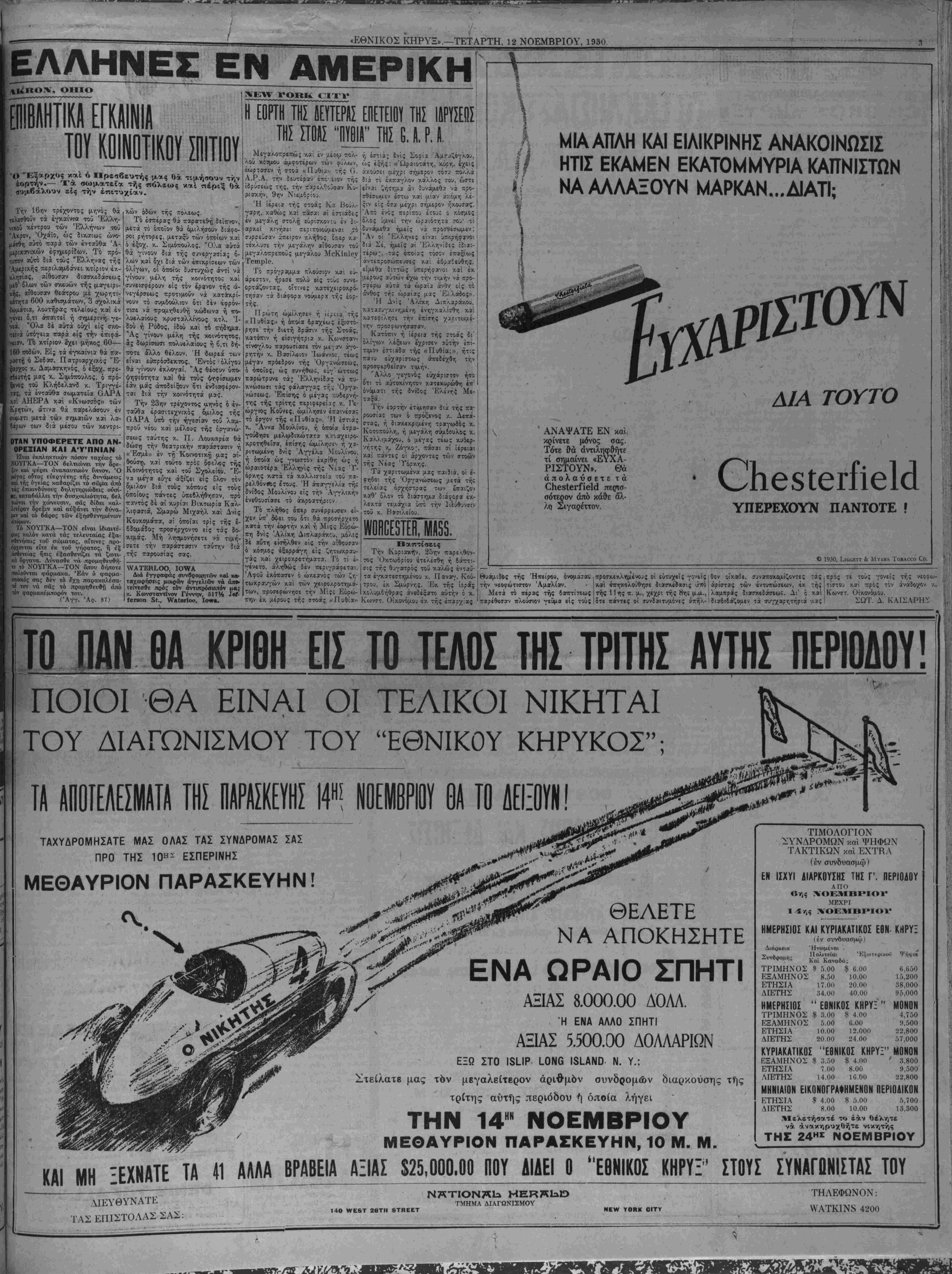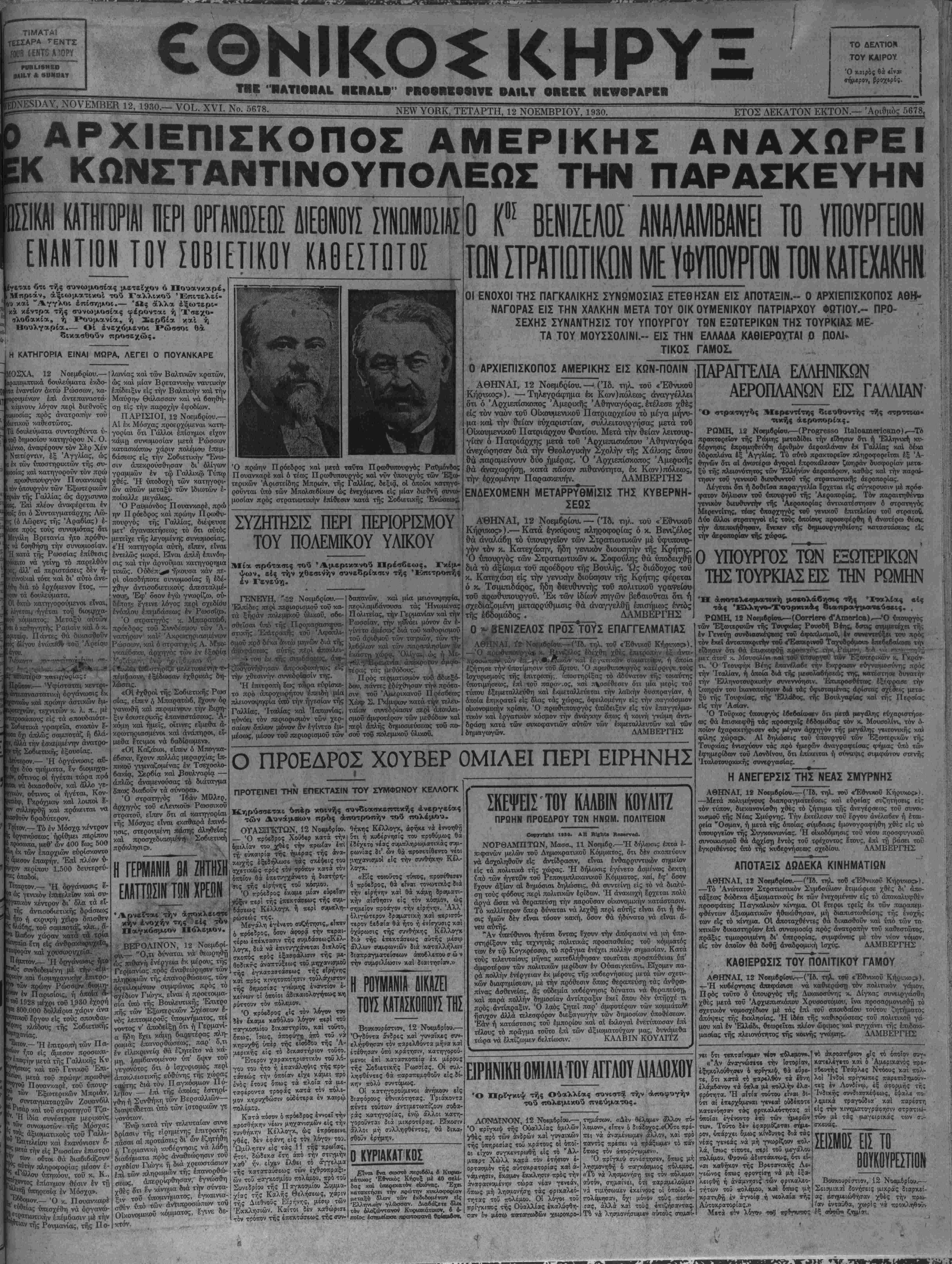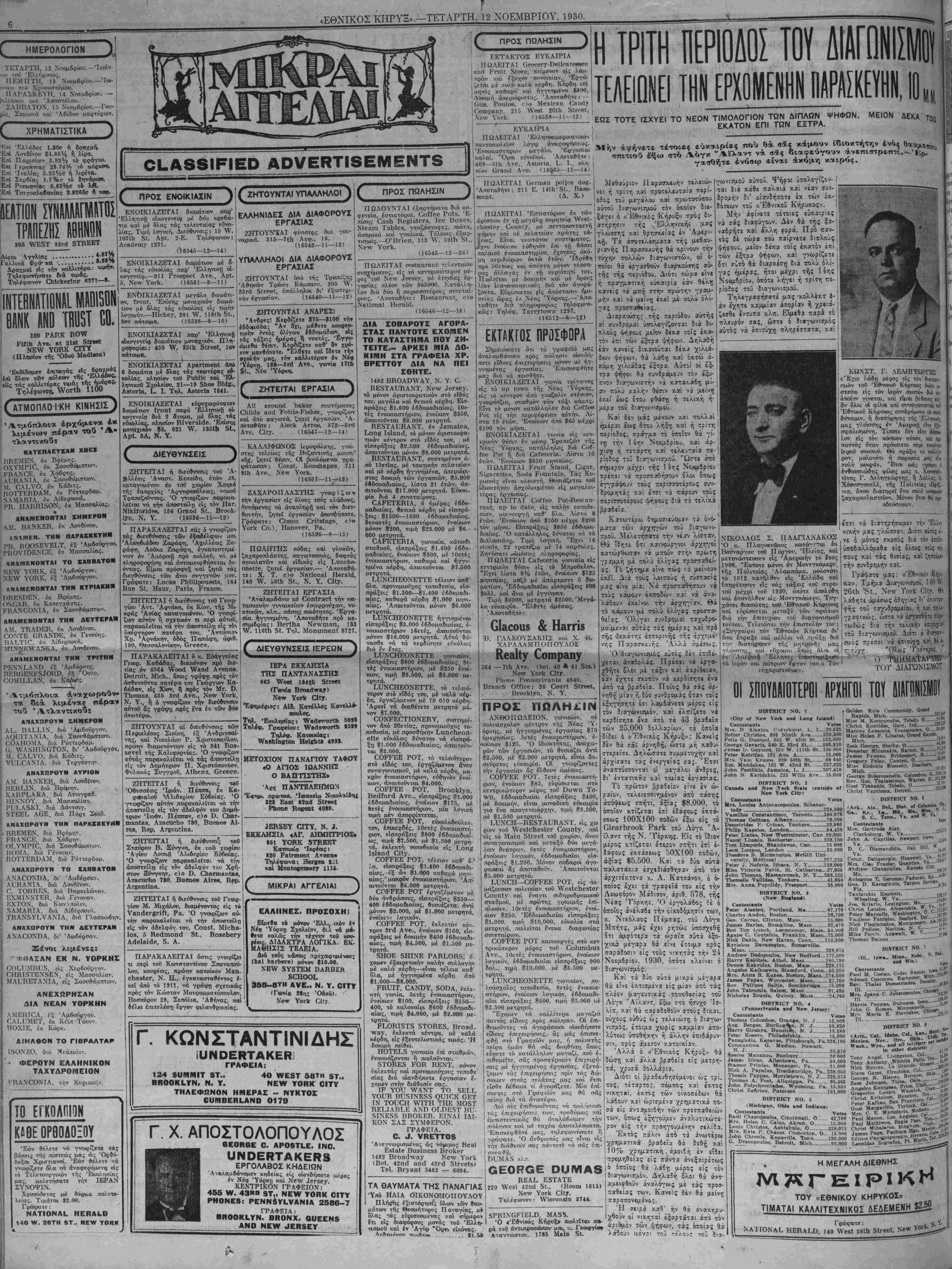 ΝΕΥ ΥΟΚΚ, ΤΕΤΑΡΤΗ, 12 ΝΟΕΜΒΡΙΟΥ. 1930.