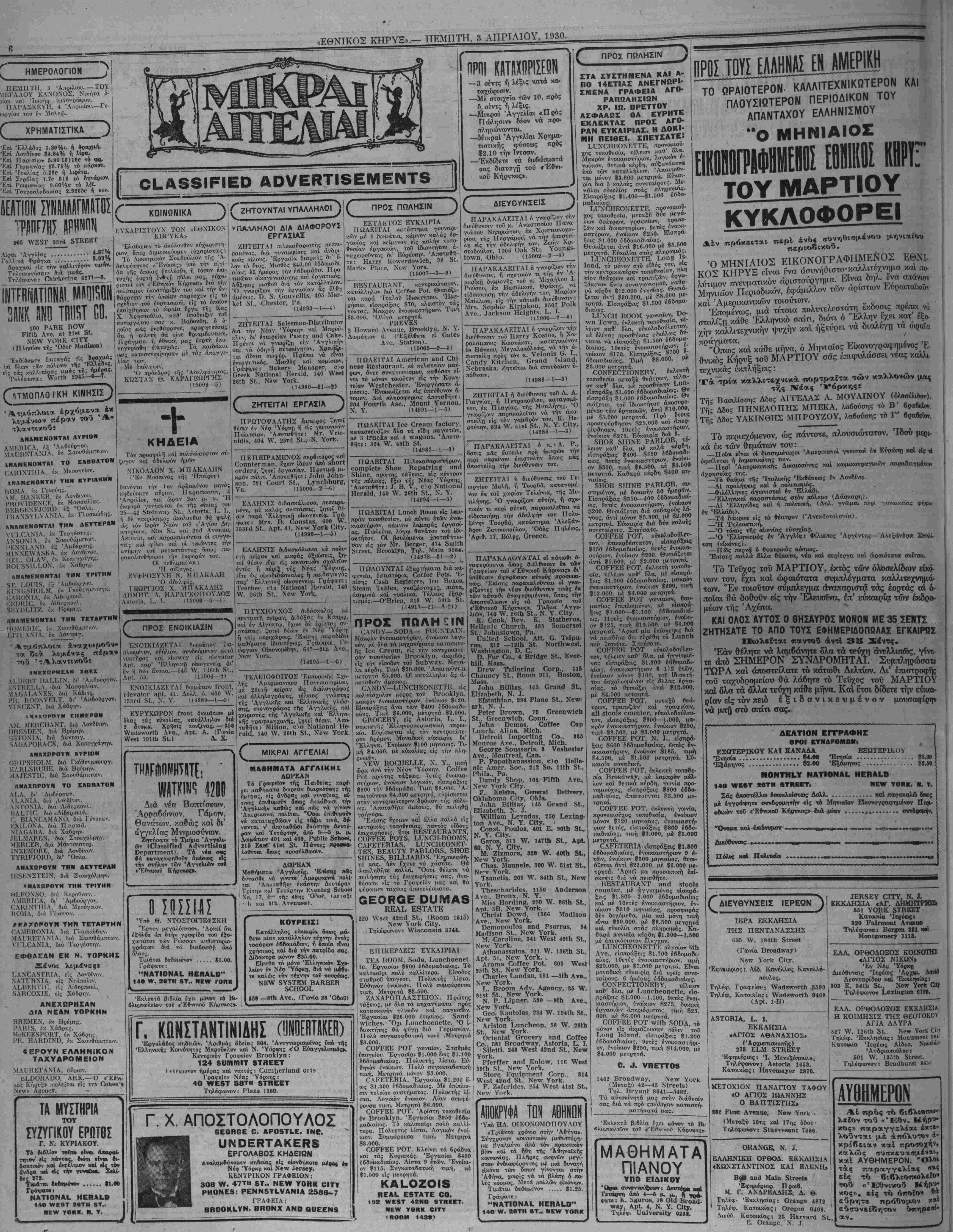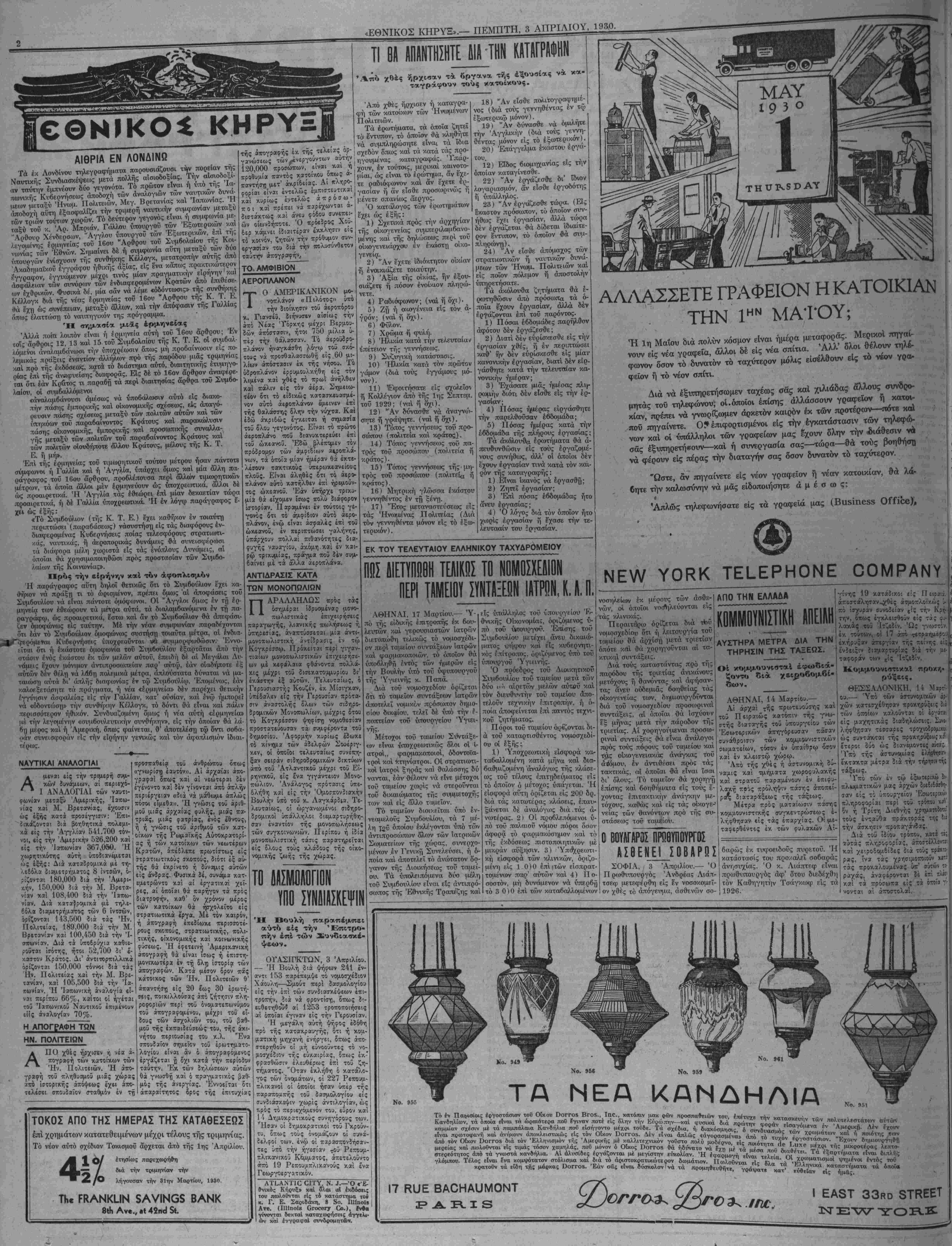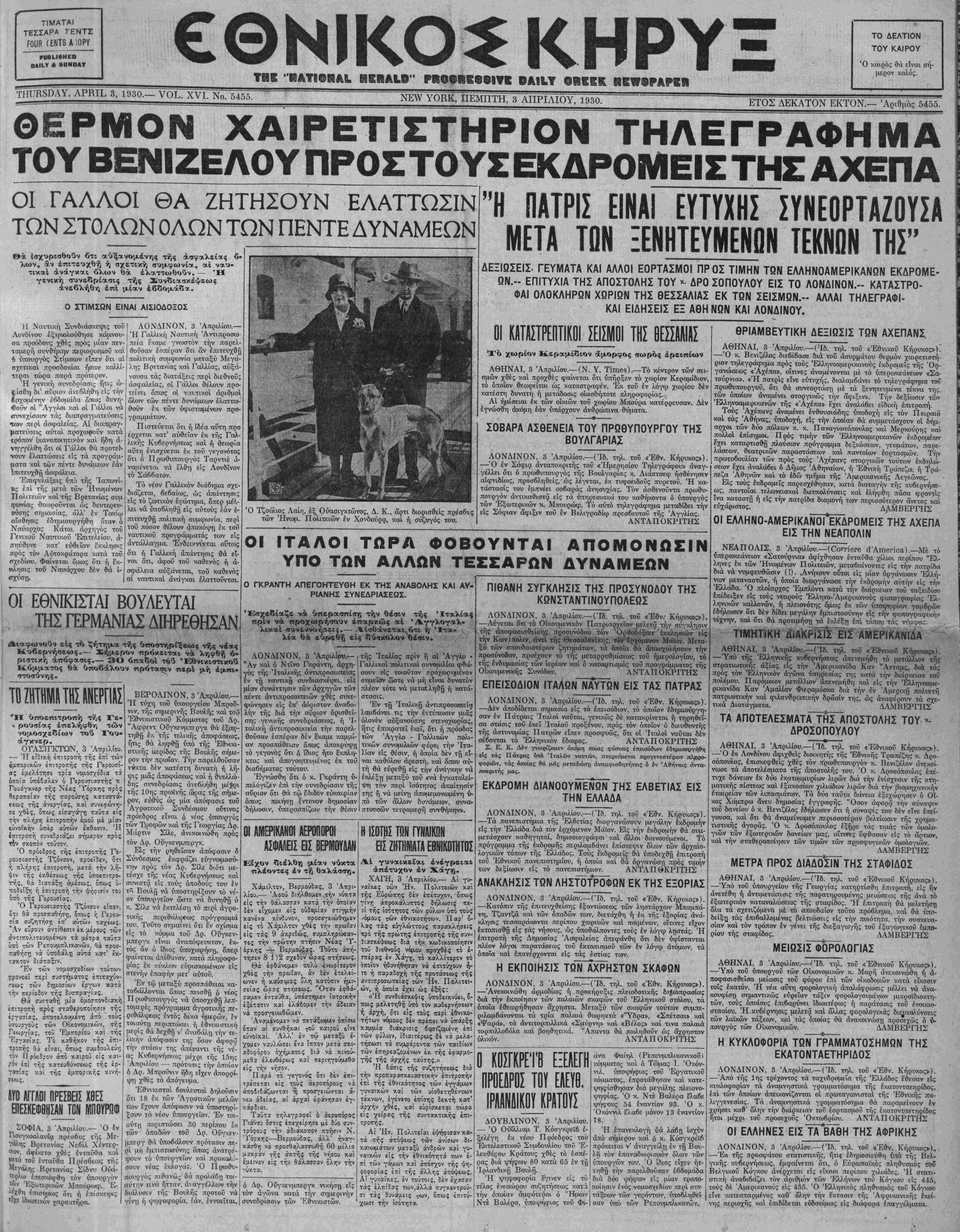 ΝΕν ΥΟΚΚ, ΠΕΜΠΤΗ, 3 ΑΠΡΙΛΙΟΥ, 1930.