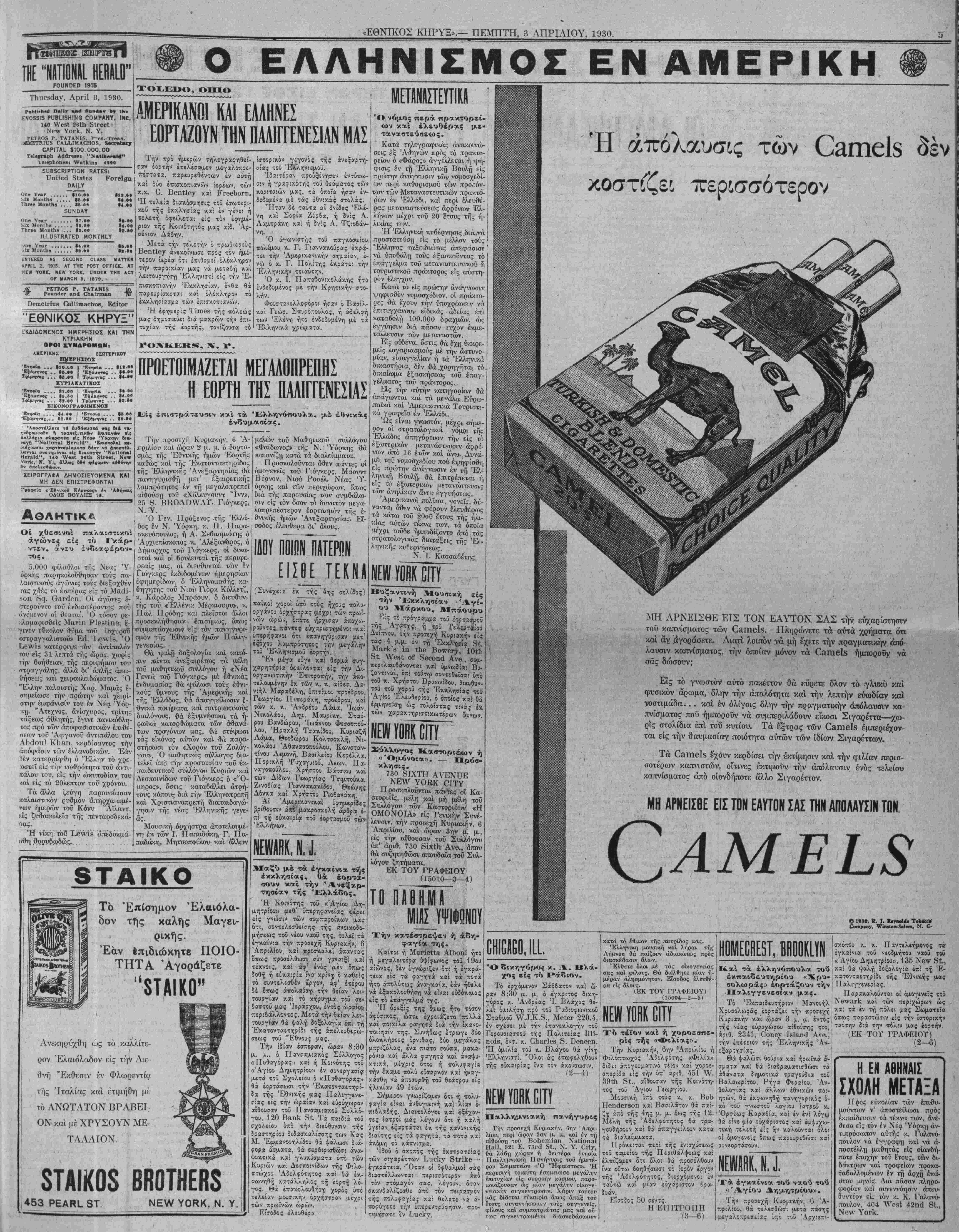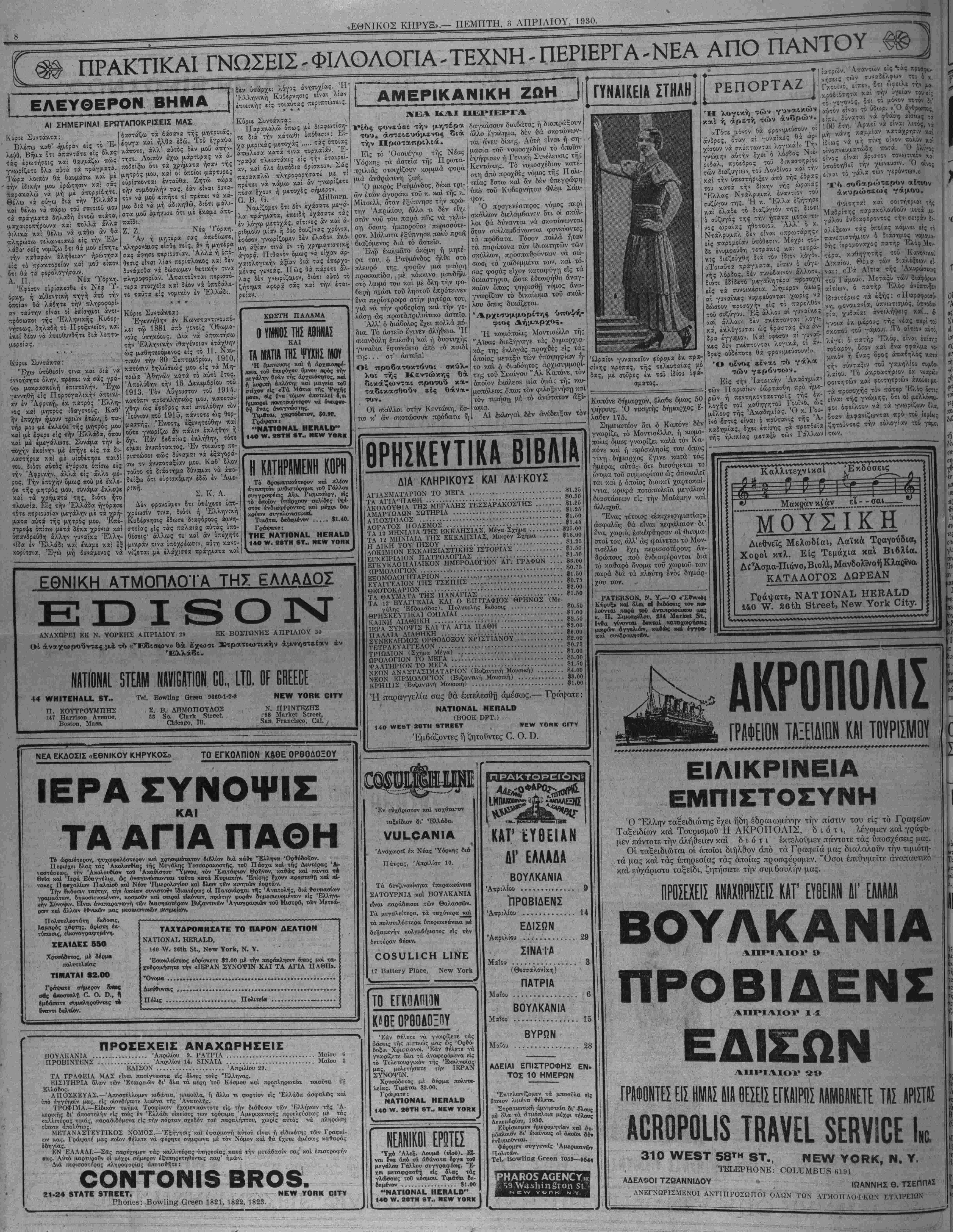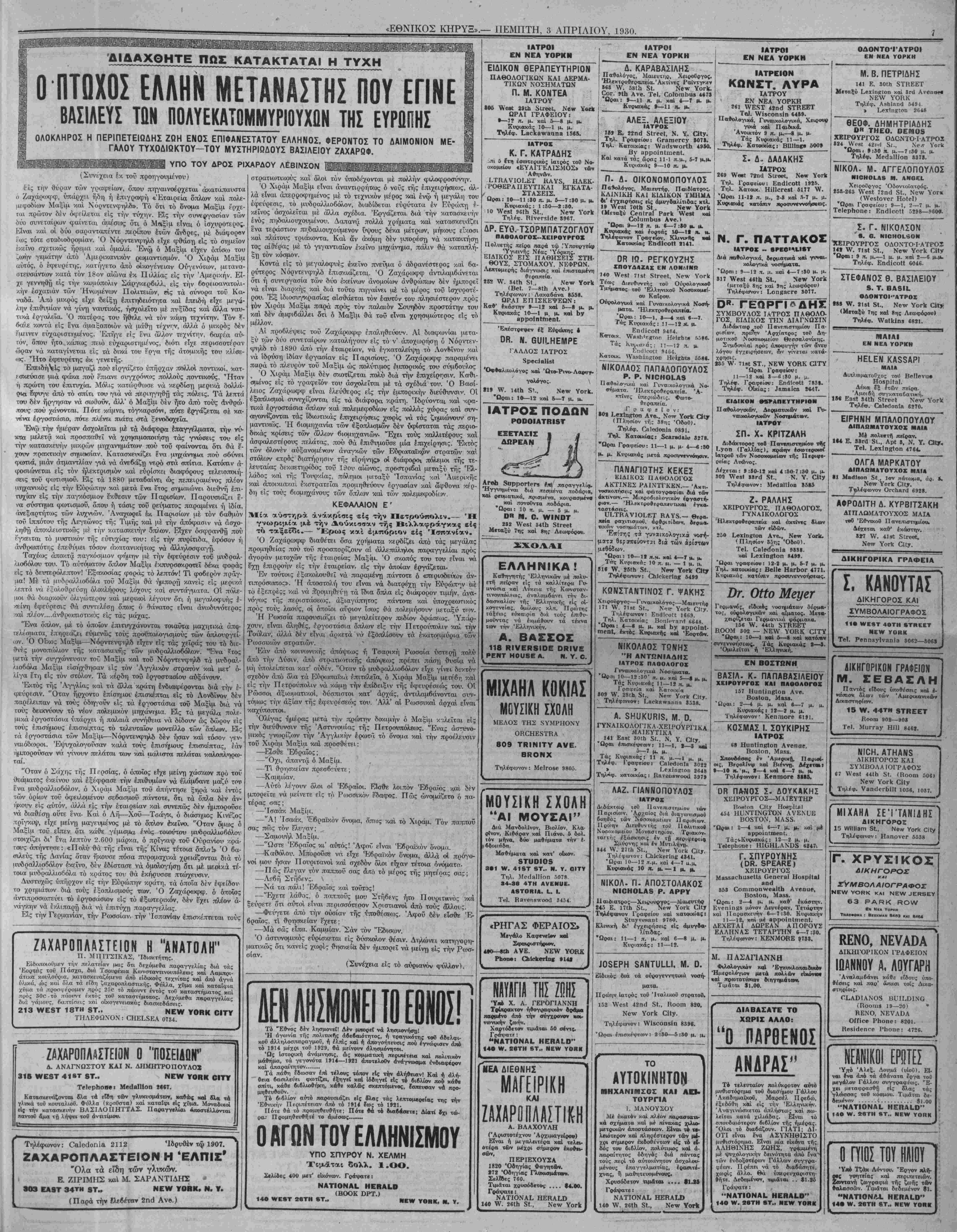 ΝΕν ΥΟΚΚ, ΠΕΜΠΤΗ, 3 ΑΠΡΙΛΙΟΥ, 1930.
