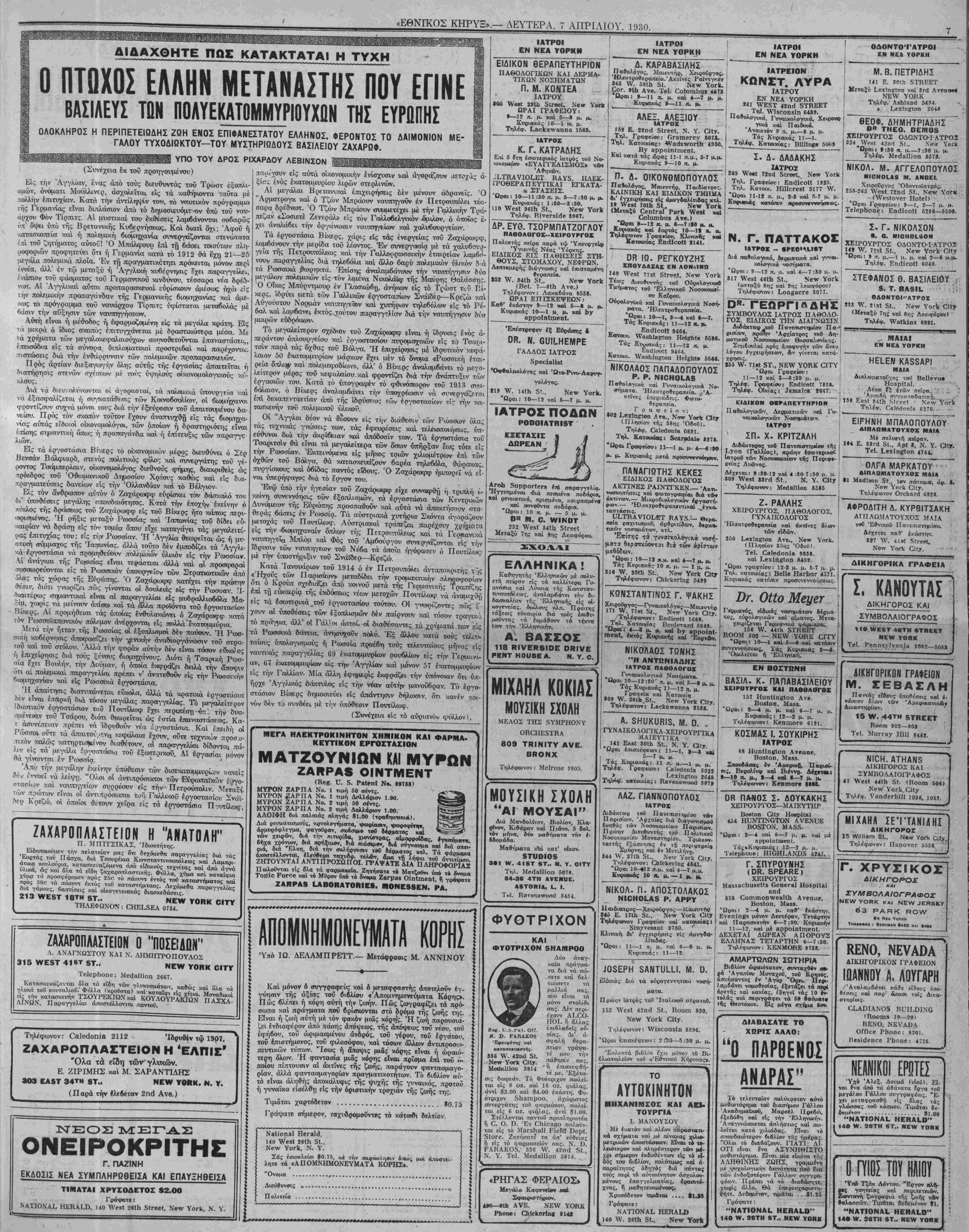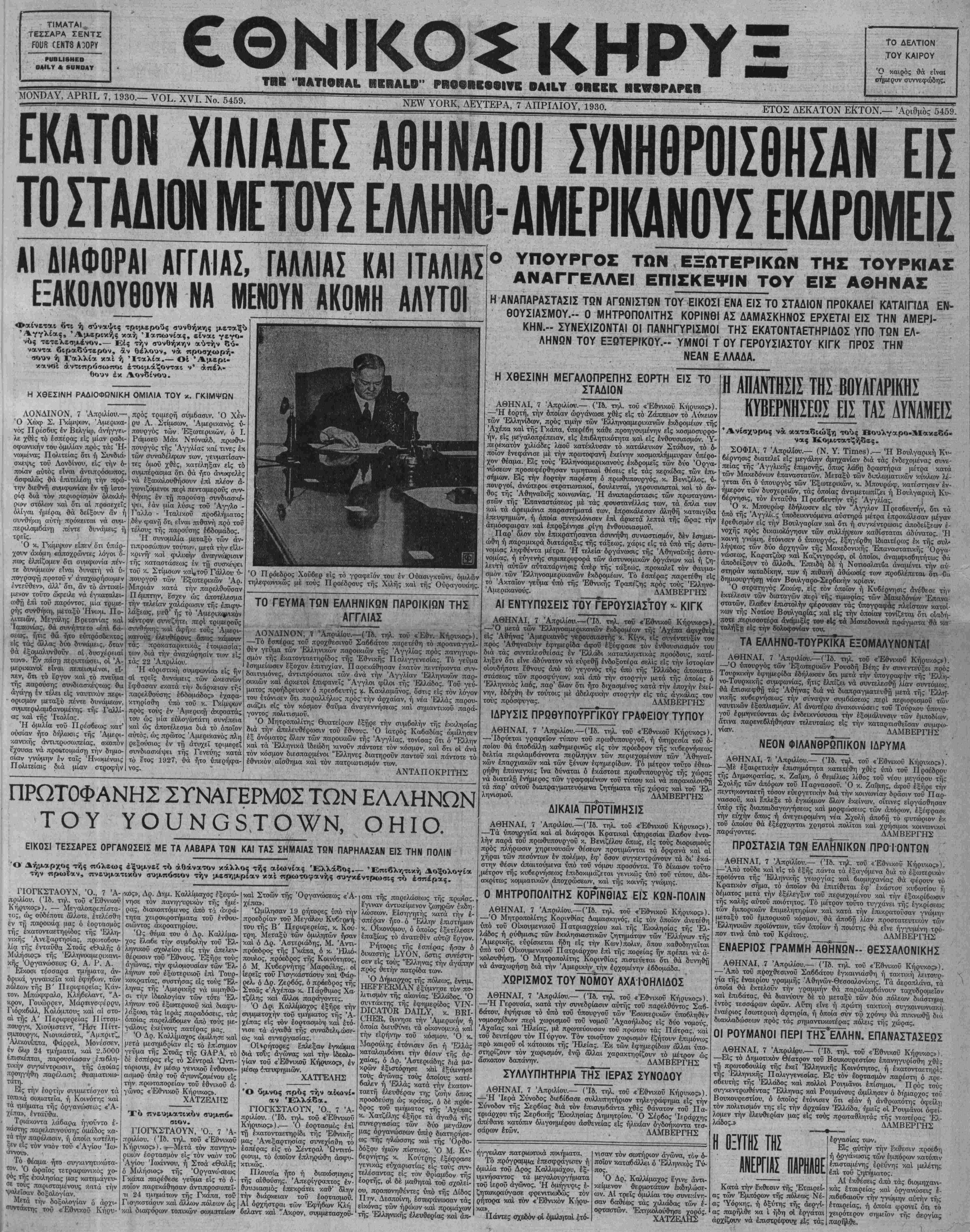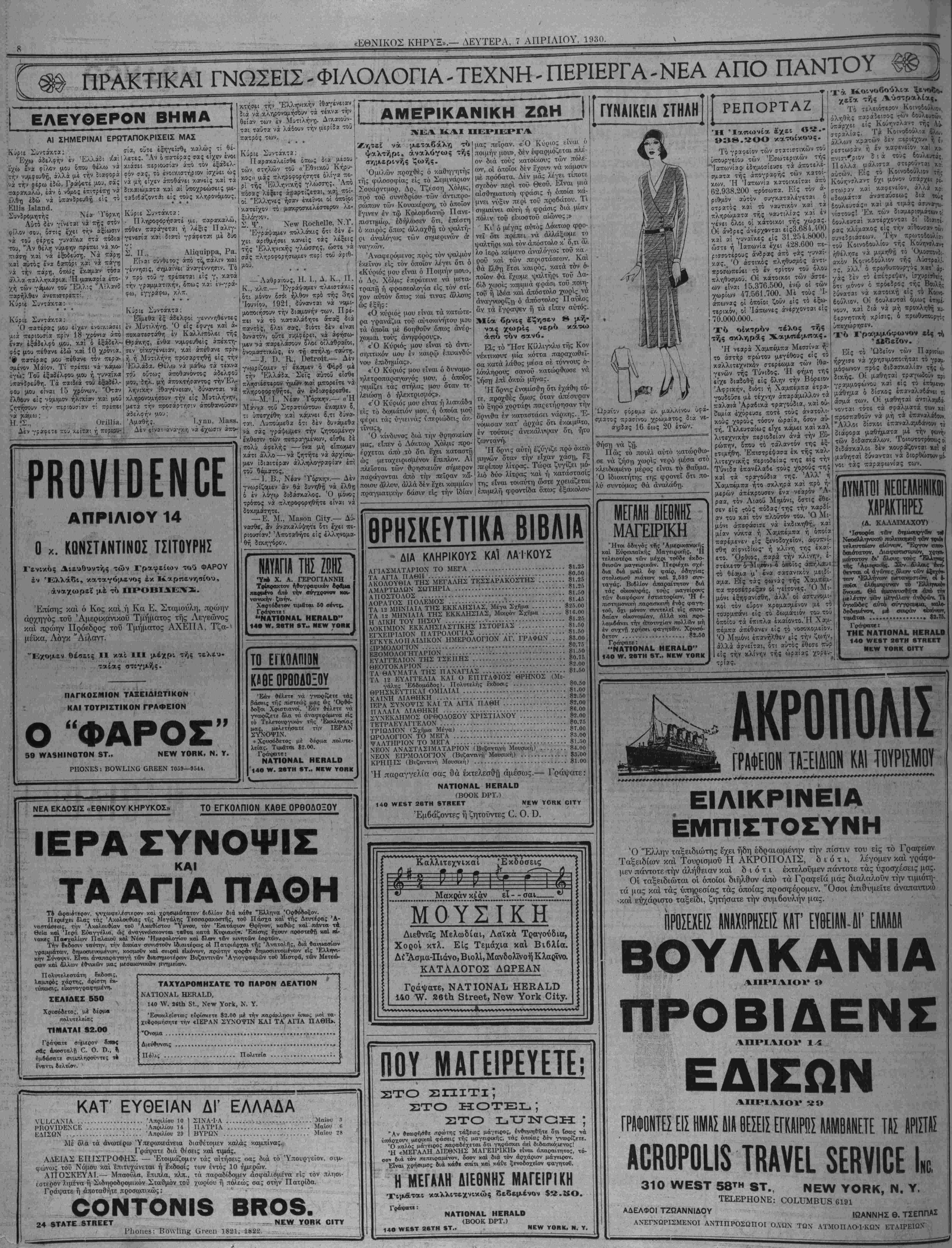 ΝΕΥ ΥΟΚΚ, ΔΕΥΤΕΡΑ, 7 ΑΠΡΙΛΙΟΥ, 1930.