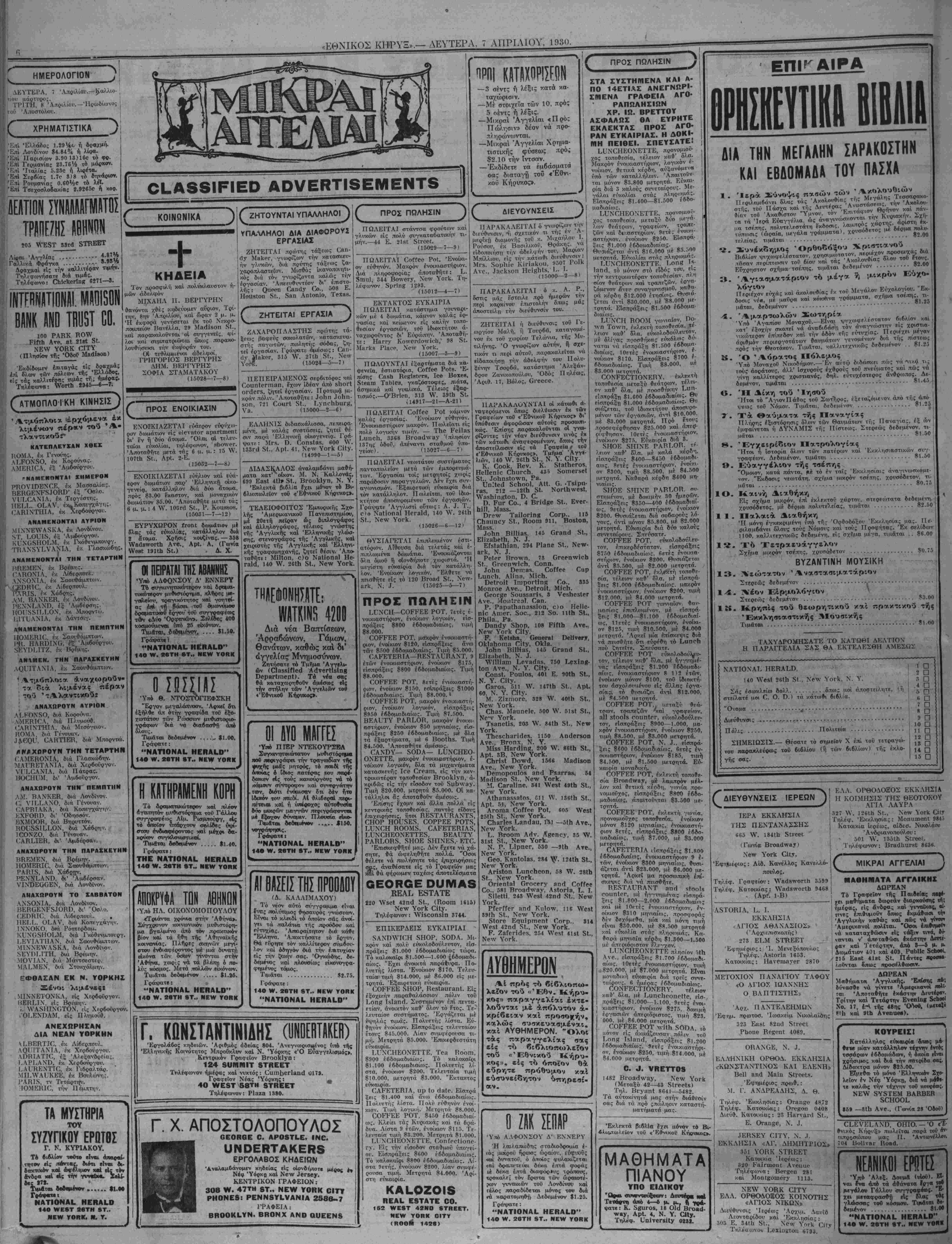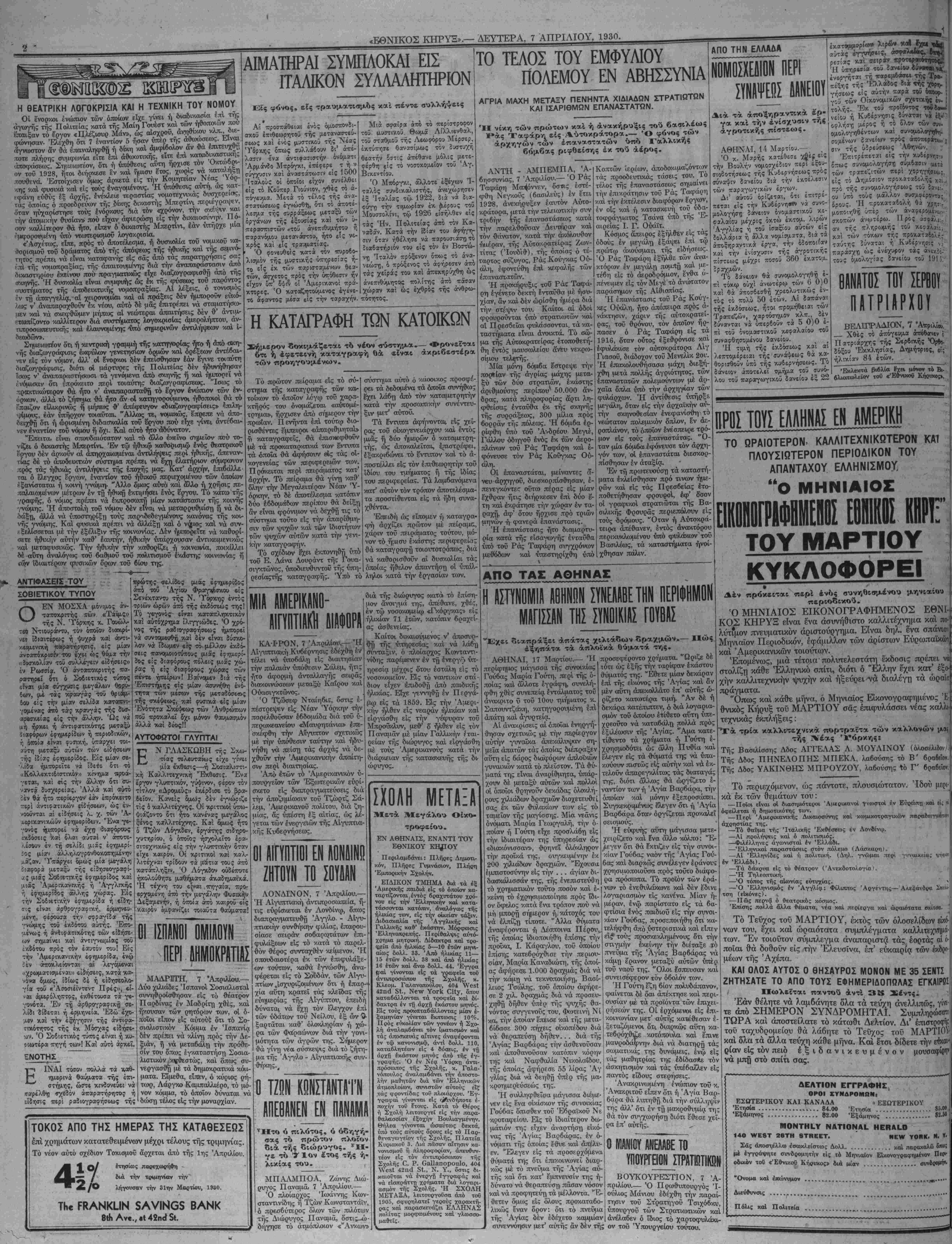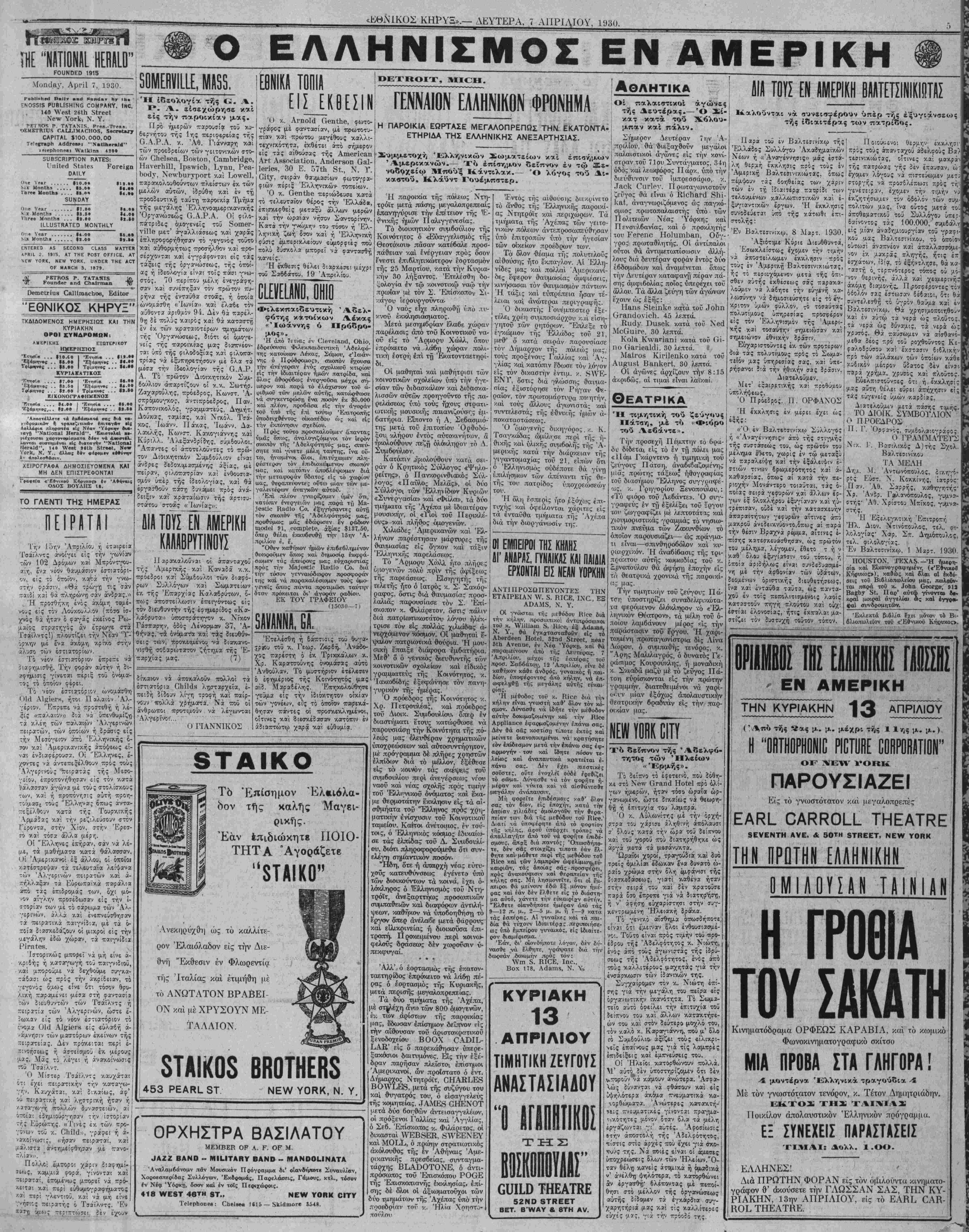 ΝΕΥ ΥΟΚΚ, ΔΕΥΤΕΡΑ, 7 ΑΠΡΙΛΙΟΥ, 1930.