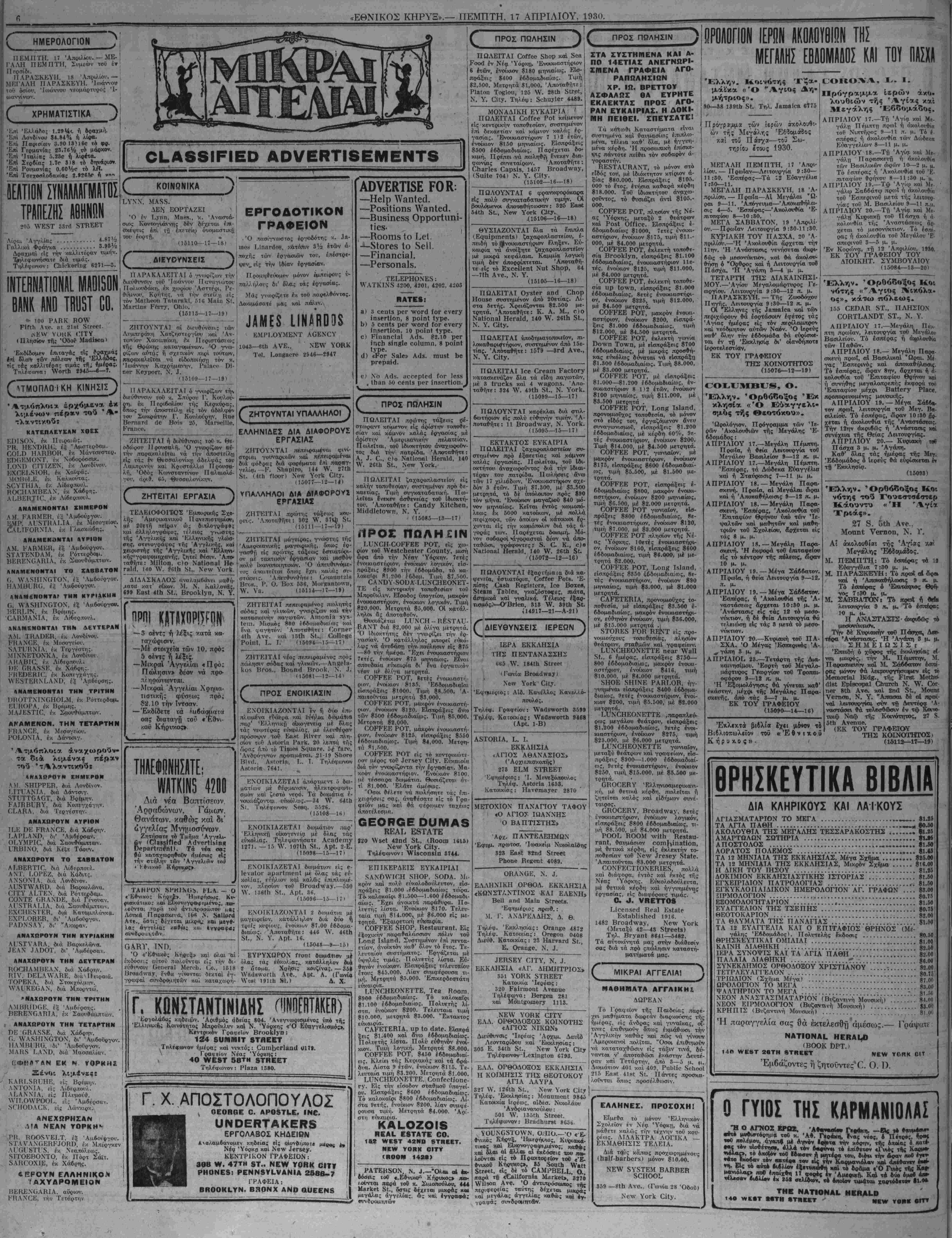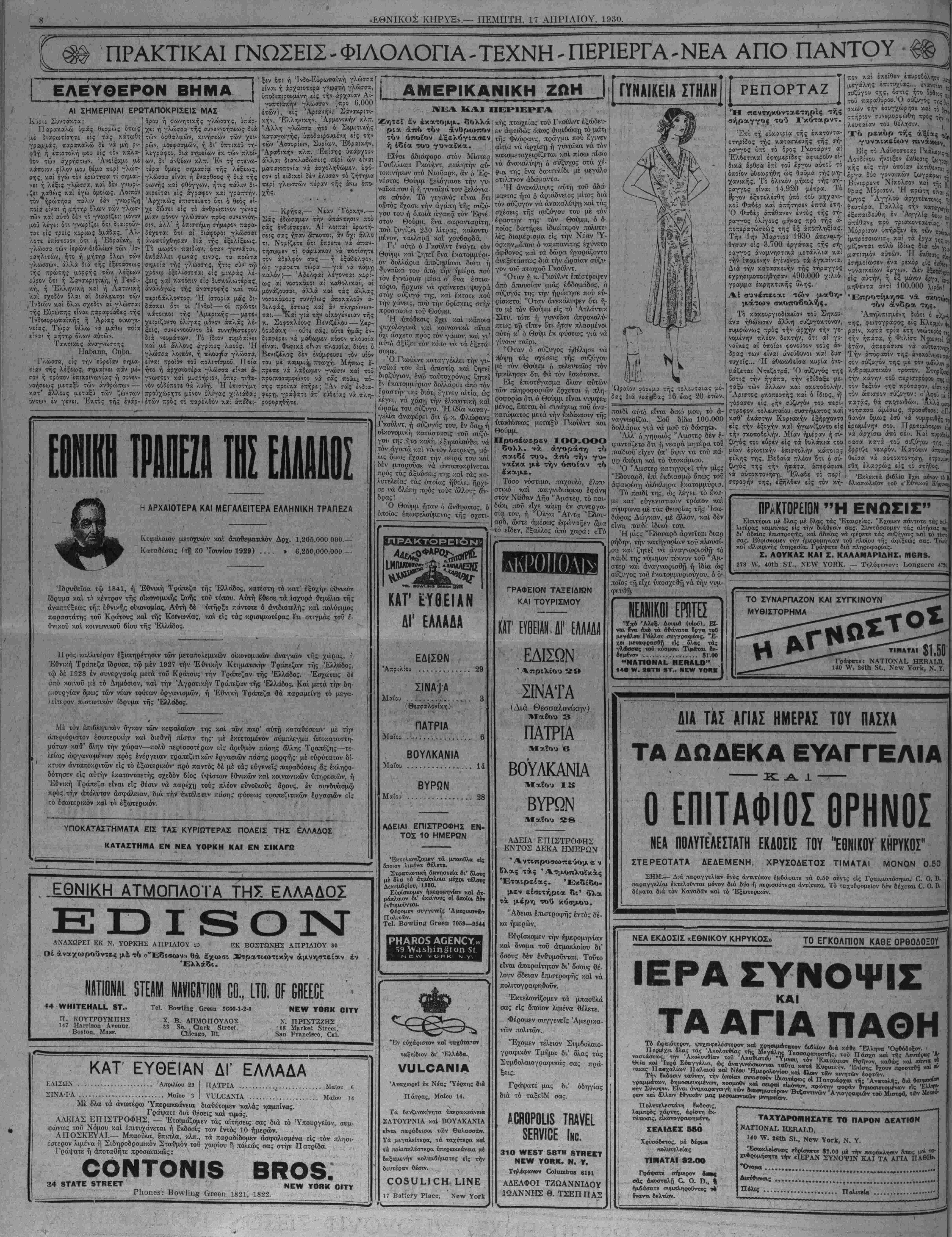ΝΕΥ ΥΟΚΚ, ΠΕΜΠΤΗ, 17 ΑΠΡΙΛΙΟΥ, 1930.