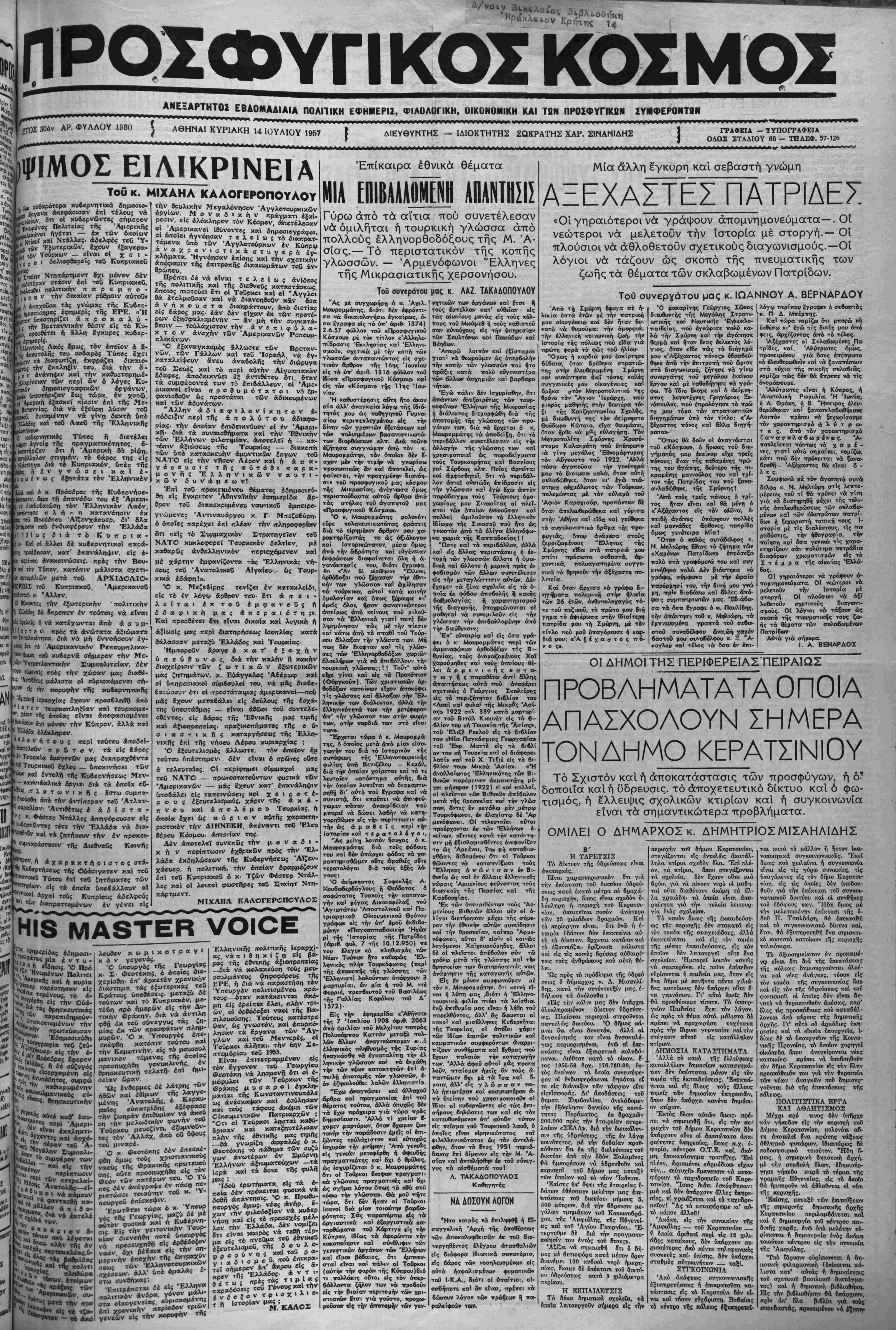 ΑΘΗΝΑΙ ΚΥΡΙΑΚΗ 14 ΙΟΥΛΙΟΥ 1957 Ι ΔΙΕΥΘΥΝΤΆΣ — ΙΔΙΟΚΤΗΤΗΣ ΣΩΚΡΑΤΗΝ ΧΑΡ. ΣΙΝΑΝΙΔΗΣ
