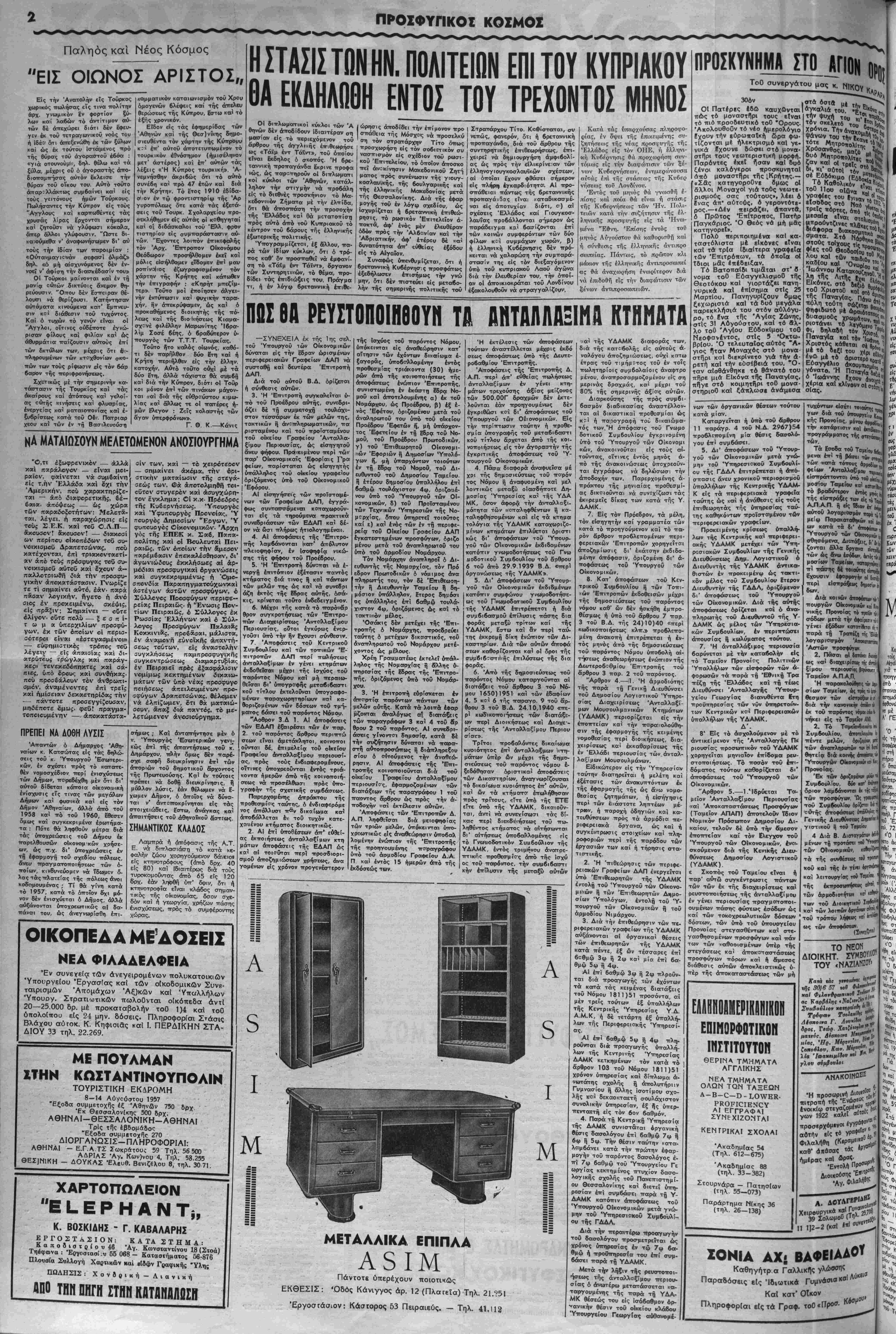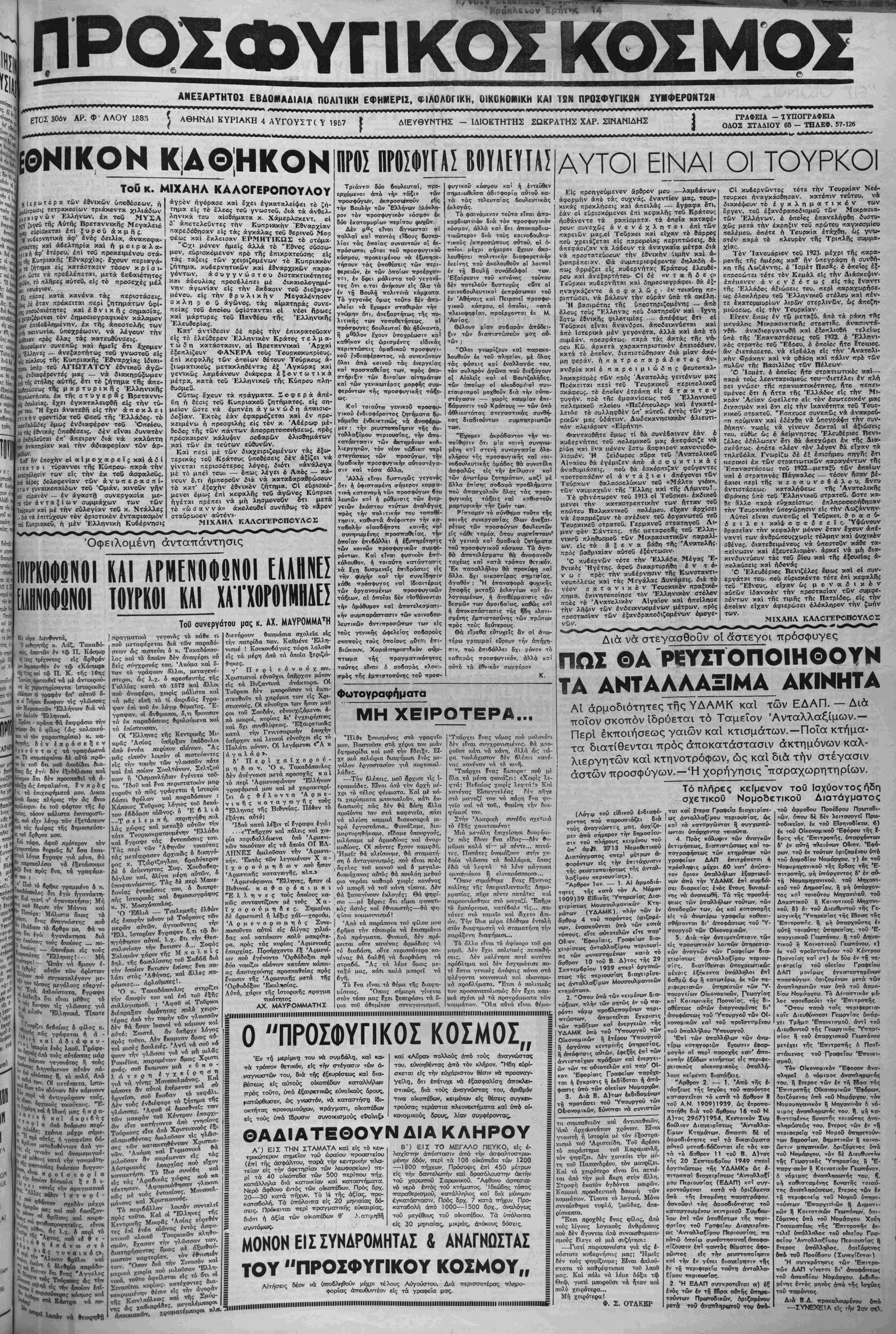 <$ ίβυλείαί· εχβι έγκαταλειφβη είς την τύ- «ν τβυ. "Η Ιχει ανατεθή είς τίιν ά π ο κ λ ε ι ίΤΐχην φρβντίδ* τού ©εβϋ τής Ελλάδος, τό ί εδέ ΰ ΌΙ Κ διεκϋ [ΟΙ» θί(] λλάδπ τε τή»4| ►•ού αί ωμόίΚ βΐβτ, τι βμως ενδιαφέρον τβΰ ΌπβΙβυ, ϋΐ τάς έ&νιχάς ύτβθέσεις, δέν είναι δυνατόν ιι έχίπλβΰται έπ' άπειρον διά νά καλύπτη »ναιτηρίαν καί την αδιαφορίαν τών άρ- ίων ' ήν εποχήν οί αΐμβχαρείς καί ά δ Ι τ ο ι τύραννβι τής Κύπρου, παρα την των είς την έκ τβΰ άσφαλβΰς, ϊ«β αέρος δβλβφβνίαν των άνυπερασπί- βτβν γυναικόπαιδων τβϋ 'Ομάν, κινβΰν γήν ιη βύρανόν — έν άγαστϊϊ συνεργασΐα με- ΐ» των ά ν τ α ξ ί ω ν ουμμάχων των των ΤάρχΜν καί μέ την εύλβγίαν τβΰ κ. Ντάλλες _ 6ιά νά επιτύχουν τβν οριστικόν ένταφιασμον «δ Κυπριακβΰ, η μέν Έλληνικη Κυβέρνησις μ είς τό έλεβς τβϋ γνωστβΰ, διά^τά άνβελ- ληνικά τβυ αίαβήματα κ. Χάμερλσκεντ, βΐ δ απβτελβΰντες την Κυπριακήν Έ6να·ρχίαν παρεδόδηοαν είς τάς άγκάλας τβϋ βερινβΰ Μβο Φεως καί έκλεισαν ΕΡΜΗΤΙΚΩ2 τό στόμά "Οχι μβνβν ημείς άλλά τό "Εδνβς σύσσω¬ μον, εύρκΐκβμενβν πρό τής έττικρατβύσης είς τας ταξί,ις των χειριζβμένων τό ,Κυηριακόν ζήτημα, κυ6ερνητικών κα'ι ββναρχικών τταρα- γβντων, άσυγγνώστβυ διατακτικβτητβς και άδβυλίας πρβσδλέττει μέ δικαιβλβγημέ- νην αγωνίαν είς την έκδοσιν τβΰ διεξαγβ- μένβυ. είς την β ρ ι> λ ι κ η ν Μεγαλβνηαβν