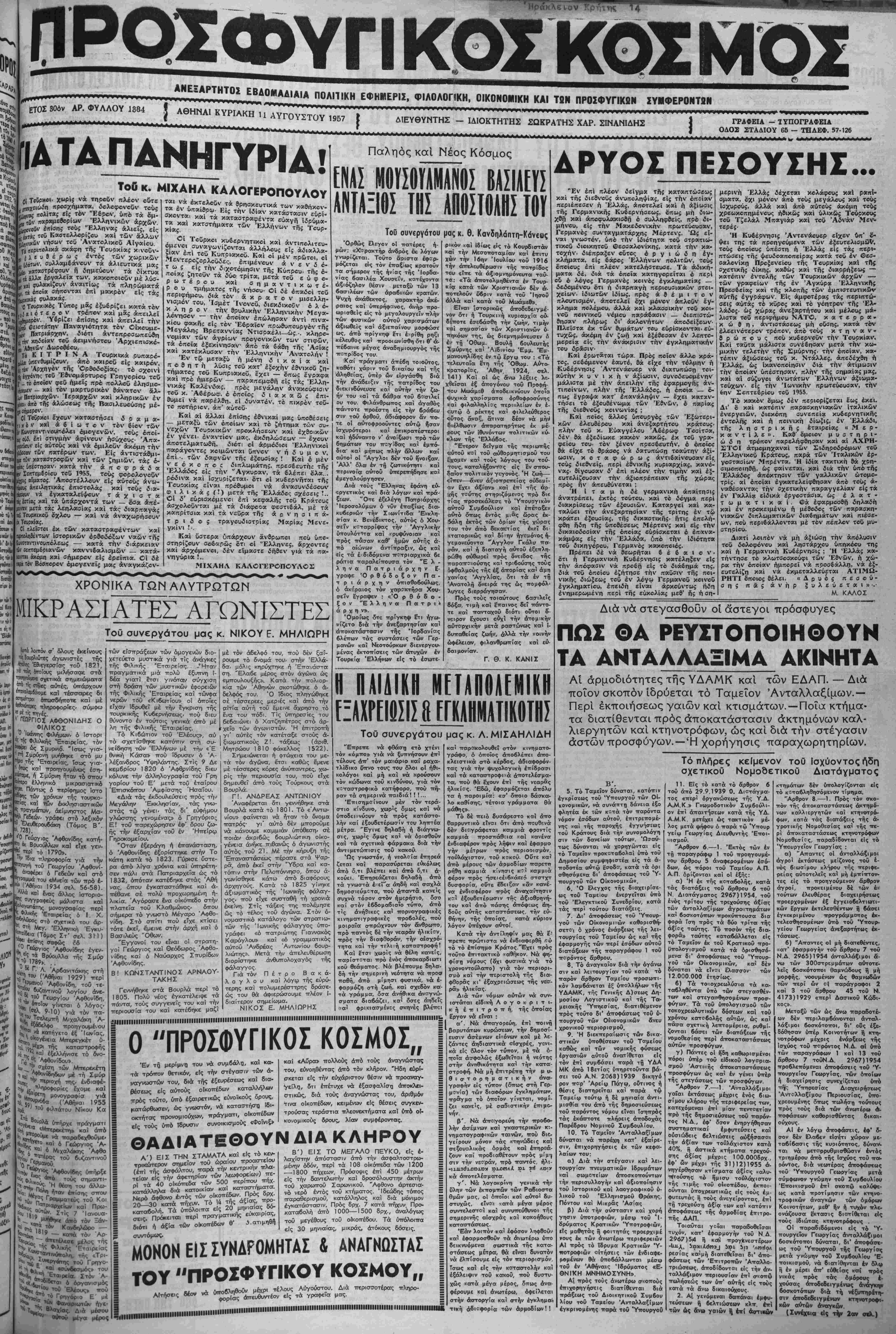 '} ΑΘΗΝΑΙ ΚΥΡΙΑΚΗ 11 ΑΥΓΟΥΣΤΟΥ 1957