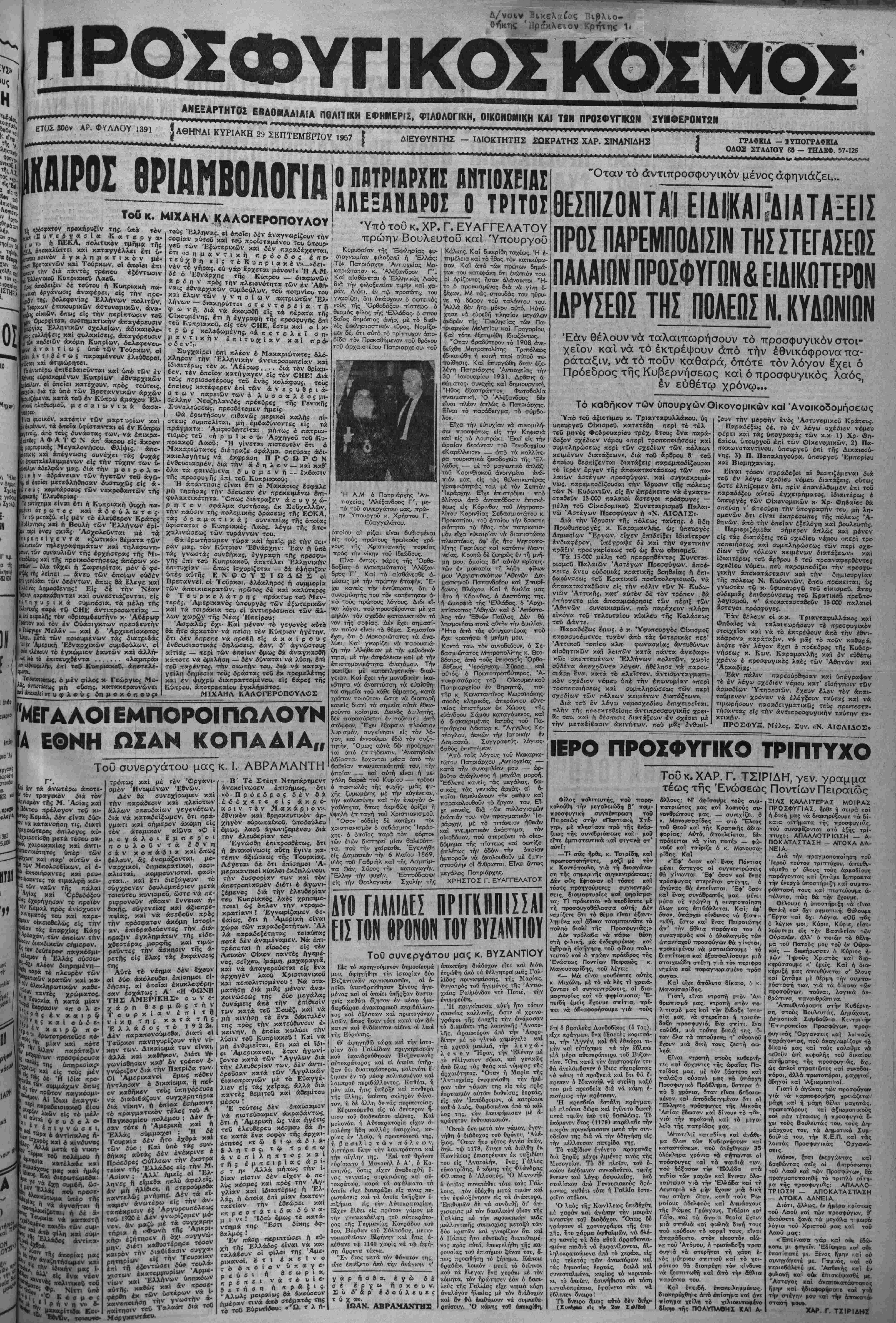 Μρ—εν _ε^^^ ^πης Ηρακλειον Κρτίτης 1< ΡΟΣΦΥΓΙ ΚΟΣ ΚΟΣ Μ ΑΡ. ΦΥΛΛϋΥ 1391 ΑΝΕ5ΑΡΤΗΤ02 ΕΒΑΟΜΑΑΙΑΐΑ Π0ΛΙΤ.ΚΗ ΕΦΗΜΕΡΙΣ, ΦΙΑΟΑΟΠΚΗ, 0ΙΚ0Ν0ΜΙΚΗ ΚΑΙ ΤδΝ ΠΡΟΣΦΥΓΙΚΟΝ ΖΥΜΦΕΡΟΝΤΒΝ ΑΘΗΝΑΙ ΚΥΡΙΑΚΗ 29 ΣΕΠΤΕΜβΡίΟΥ 1967 ΔΙΕΥΘΥΜΤΗΣ - ΙΔΙΟΚΤΗΤΗΣ ΣΩΚΡΑΤΗΣ ΧΑΡ. ΣΙΜΑΝΙΔΗΣ ΘΡΙΑΜΒΟΛΟΓΙΑ Ι ΓΡΔΦΕΙΑ - ΤΥΠΟΓΡΑΦΕΙΑ 0Δ02 ΣΤΑΔΙΟΥ 68 — ΤΗΛΕΦ. 57-126 ιβ, «» η Μ ν» ή ΠΕΚΑ, πολιτικόν τμήμα Αηβκαλύπτει καί κατα,γγέλλει δτι ύ· ,.ιι χβινβν έγκλη,ματικβν μί- ιίν Βρίταννών καί Τούρκων, οί ©πβϊβι επι την διά παντός τρόπβυ εξόντωσιν ["•Ελληνικβϋ Κυπρίακβΰ Λαόν. απόδειξιν δέ τούτου η Κυττριακη πα. οργάνωσις άναφερει, «Ι; την ποβ- ||ν τηί, δβλβφβνίας Έλλήνων πβλιτών, ΤοΟ κ. ΜΙΧΑΗΛ ΐςΑΛΟΓΕΡΟΠΟΥΛΟΥ «ς, οί οποίαι δέν άναγνωρίζβυν την υπό τβν γ ο; πί φς ή πβ [Γ«ύρκ»ν έιτικου,ρικών αστυνομικον, «να- ■ ι< «Ικιών, όπως είς την περίπτωσιν τοδ ι Όμορφίτοοι, αι>3ττιματο»Γΐν ««αγόρευσιν