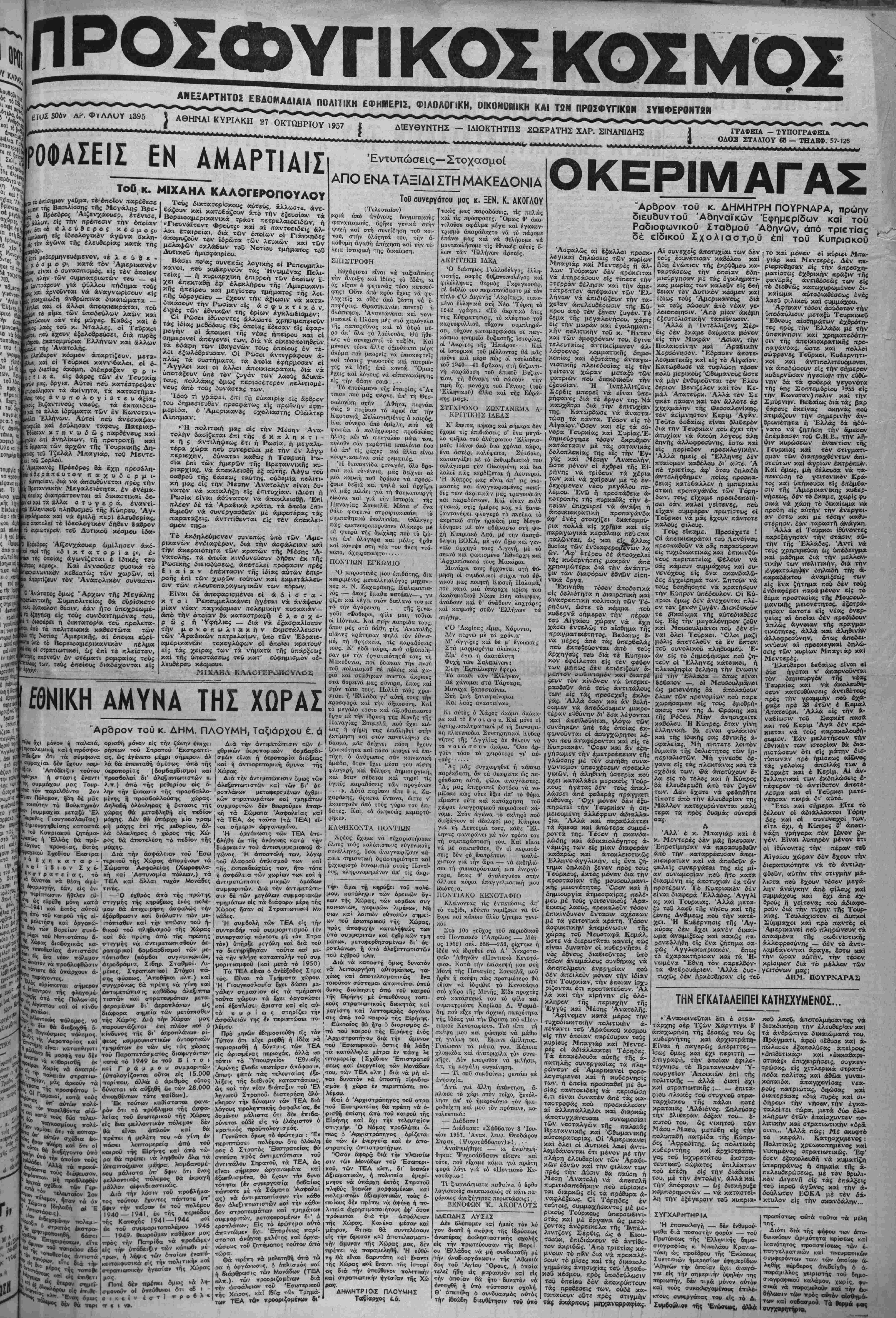ΑΘΗΝΑΙ ΚΥΡΙΑΚΗ 27 ΟΚΤΩΒΡΙΟΥ ,957