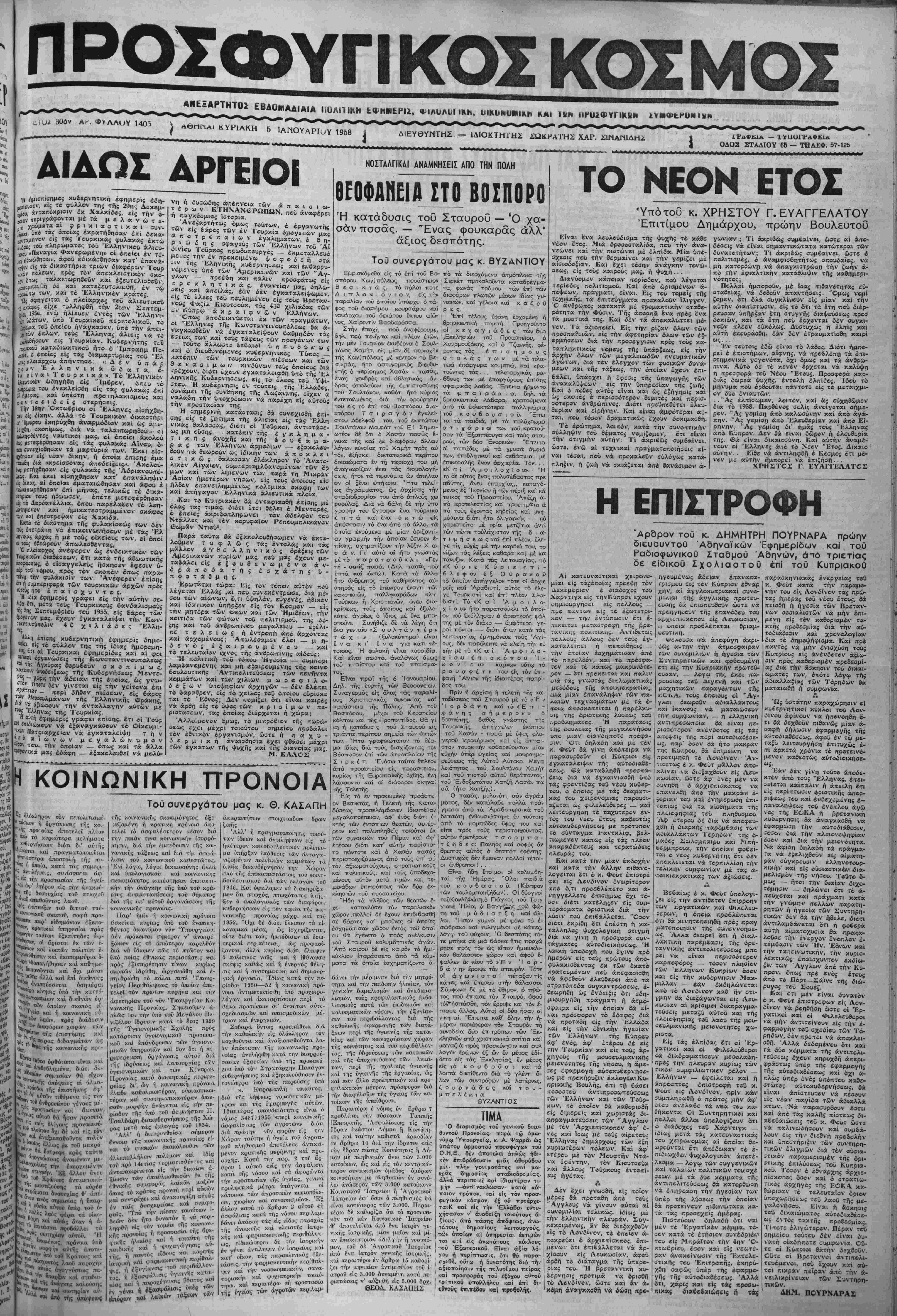 ε**^·ε»·^»«^^ε·»·^ε·*·^»^^^^»ε»·^ε»<·*»^·ε^_»»^^·^_»^_« 5 ΐΑΝΟΥΑΡΙυγ 1958 % ΔΙΕΥΘΥΝΤΗΝ - ΙΔΙΟΚΤΗΤΗϋ -ΩΚΗΑΤΗΣ ΧΑΡ. -1ΜΑΜ1ΔΜ. ΔΙΔΟΣ ΔΡΓΕΙΟΙ ΟΔΟ2 ΣΤΑΔΙΟΥ 60 — ΊΉΔΕΦ. 57-126 *ρΐθϋ, άνταποκρισιν έκ ίίΐβν περιγράφβνται μέ τα μ ε λ α ν ώ τ ε- ; „ χρώματα α» ΦΡ>κ>αστικαί συν-