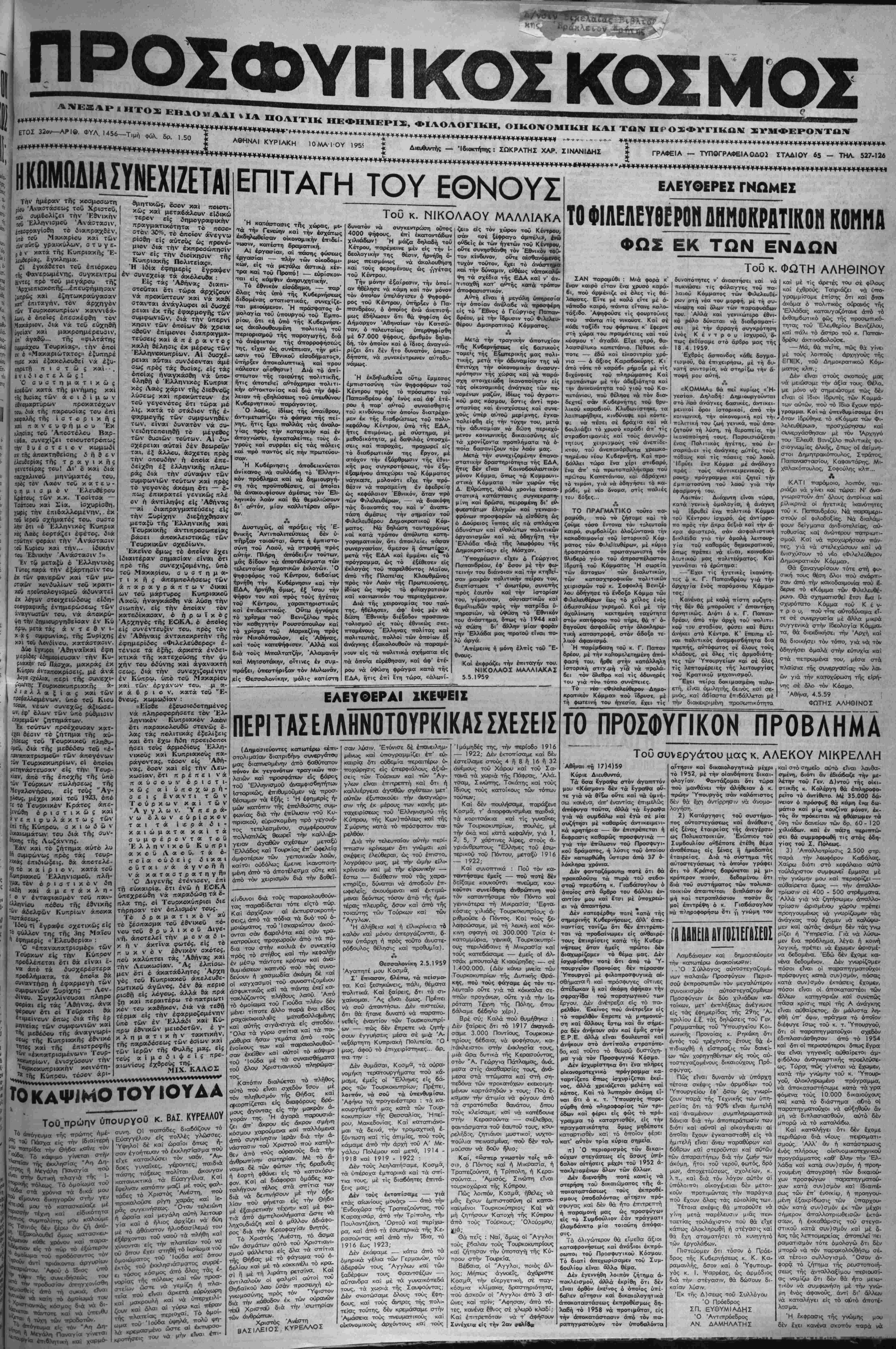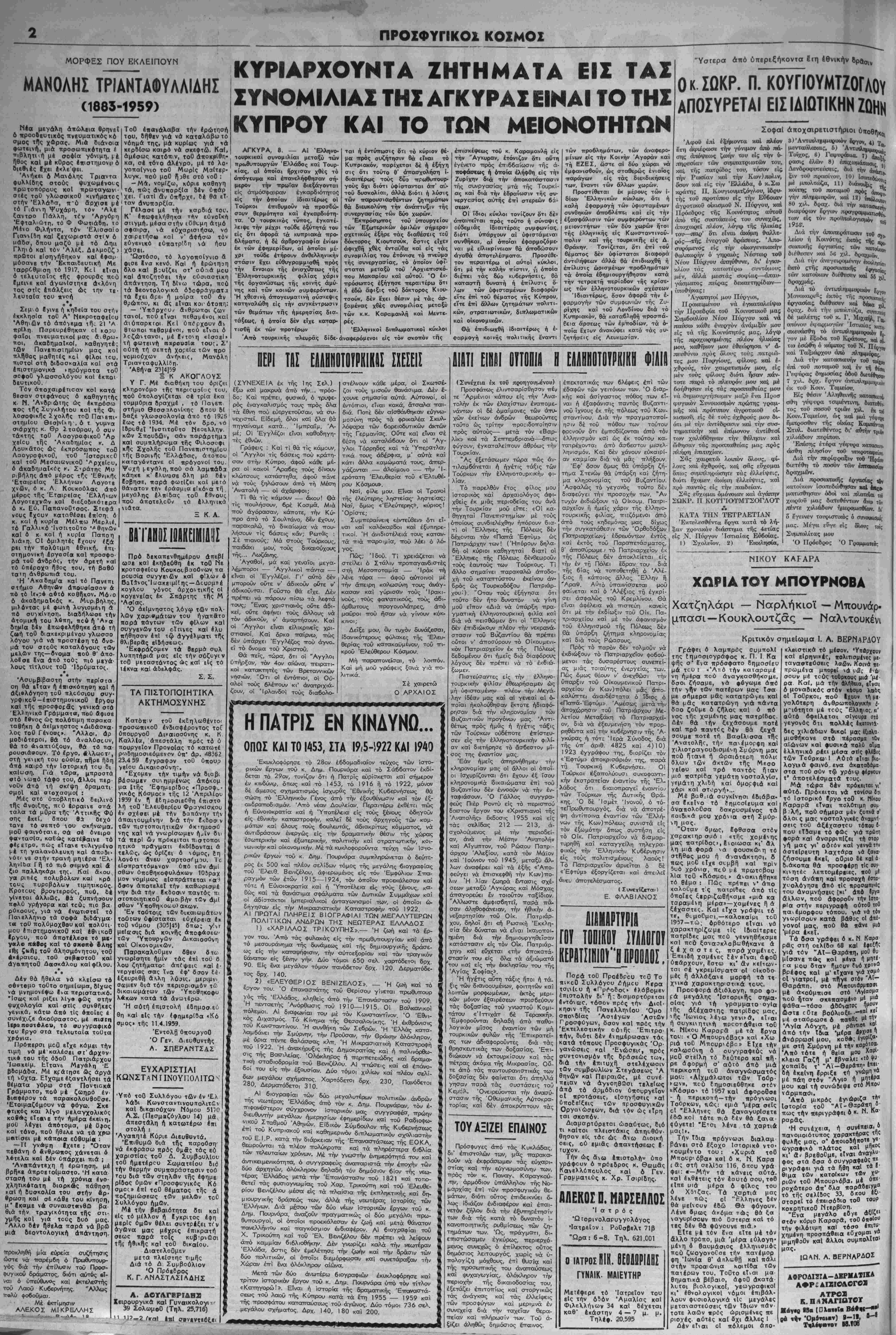 <η$ιτή πιστώς κ* ι ■ ■ . «ν ι <5 ι ο τ ε λ ώ ς ! Ό αυοτηματΐκώς «οίίών κατά τής μνήμης καϊ τής Θυσίας των ά β ι δ ί μ ω ν ίβναιαρτϋρων προκκτόχων τα», οιά τής ηαρβυοίας τβυ επί κεφαλής τής ί σ τ ο ρ ι κ ή ς χαί πανευφήμου Έκ χληοίας τού Αποστόλου Βαρ- ΐ'άΐα, συνεχίζΐΐ τοιουτοτρόπως την βυέστειβν κωμωδί αν τής άπβκτηβείοης δ η Θ ε ν έλενΛερίας τής τ ρ α γ ι κ η ς γΐνετείρας τού! ΔΓ ο κα'ι διά ΐΜκχαλινοΰ μηνύματός τού, πρό; τόν Λαόν τού κ α τ ε υ - Φ η μ ι α μ β ν Έλευβέρβυ Κράτβυς των κ.κ. Τββίταα — Τβάτοβυ καί Σία, ίσχυρίσθη, %φς την έπιβαλλομένην, έκ τοδ (έροΰ βχήματός τού, ουοτο λήν ότι «έ 'Ελληνικός Κυπρια κός Λαός έορτάζει εφέτος, διά πρώτην φορα,νι την 'Ανάατααιν τού Κυρίον» καί την... ιδικήν τβυ Εθνικήν Άνάβταβιν !» Έν τώ μεταξϋ ο 'Ελληνικός Τύηος παρά την έξάρτηαίν τού 'ί,ν. των φα,νβρών καί των μυ- κβνδυλίων τοϋ κρατι- ς δβον και ποιοτι- κως κ»! μετα4άλ©υν εΐδικώ τερβν εί5 δημβγ,ραφιχην «ραγμοιτικότητα τό ποσο¬ στόν 30%, τό οποίον άν«γνω μιβν δια την έκπροσώπησίν των είς την διοίκησιν της Κυπριακής Πβλιτείας». Η ιδία εφημερίς έγραψεν εν συνεχεία Τα άα(6Χν0& ~ Είς τάς Αθήνας διαπι- βυτται β ώ ά στβυτται βτι τώρ« να ηροκύΐίττουν καΐ νά καθί στοενται άνάγλυφοι «ί δυοχβ ρειαι εκ τής εφαρμογήν των συμφωνιών, διά την ύίτβρνί κησιν των δποίων βά χρεια σβουν έπίμονοι διαπραγμα- τευσεις κβίάπίραντο; καλή Θέλησις έκ μέρους των Ελληινιοκυΐτρίων. Αί δυσχέ¬ ρειαι αυται συνδέβντοπ άμέ αως πρός τάς θυσίας, είς τάς οποίας ηναγκάσθη νά υπο¬ βληθή ό 'Ελληνικός Κυπρια κός Λαός χάριν τής δΐιεβνβύς λύσεως κ«ί πρβκώπτουιν έκ τβΰ γεγβνότος βτι τώρα μό λις, κατά τό στάδιον τής έ- φαρμογής των συμφωνηθέ,ν των, είναι δυνατόν νά συ- νειιδητοττβιηθή τό μέγεβος των θυοιών τβύτων. Αί δυ- σχέρειαι αυταί δέν ©εωρβΰν ται, έξ αλλβυ, ααχβτβι πρός την απβυδήν ή «ποία έπδ- δείχθη έξ έλληνικής «λετυ- ράς διά την σύναψιν των συμφωνιών τβύτων κα.1 πρός τό γεγβνος άκόμη «τι — ί^ ΕΠΙΤΑΓΗ ΤΟΥ ΕΘΝΟΥΣ ΣΤΑΔΙΟΥ 65 - ΤΗΛ. 527-126 ¥*¥»¥¥¥¥¥τ»¥¥¥¥¥¥¥¥¥¥¥¥¥_Ι 4 ΓΡΑΦΕΙΑ — ΤΥΠβΓΡΑΦΕΙΑΟΔΟΙ ^»»¥¥¥¥¥¥¥¥¥¥¥¥¥¥¥¥¥¥¥¥¥¥¥¥ Η κατάχττ«οΊς της χώρας μί, την Γβνϊώ,ν καΐ την εσχάτως ι«Γθίν οικονομικήν έπτιδεί- τί—η 6ρβιμο-ικιί. σίαιι, αί ~άσης φώ«—«ς — ""Λη*1 των οίκοδβιμ/ΐ- Τού κ. ΝΙΚΟΛΑΟΥ ΜΑΛΛΙΑΚΑ έργ Ολο μγ^ κη^ κ£ν ί τού Προττό! — ευρίσκον¬ ται «Ις κάιμψιν άνησυχι<ΐικτρ. Το εθνικόν ί.Ι<Γό6ηιμοο# — ·—φ' ος τάς ύ—ό τής Κυββρ,νή—χ»ς δΐΛομενας «ττατιστικάς, σννεχίζε- ται ΐμβιού,μβνοιν. Ή ~ρό|σψ—ος ό- Μολογία τού ύτΓθΐφγού τοθ Έμττο- ρίο«, βτιι «ή ύ-ό τής Κυιβερνησί- άΛθΙ λ ή ής Κυιβερνησί- ως άκοΛουθοι/μεΙνη ττολιτική τοί -εριοριιοΐμοΰ τής παρ«γ«γής, διά τό όνέφικτοιν τής αττορροφήσΐώς, της, «ΤχεΛΐ ώς συνί—,ιιαν, τή|ν ιμεί- «»ιιν τού 'ΒΒνιικοϋ είσο6ήΊματ»ς», ύπήιρΐεν <5—οκαλι—τ ι«ή κο» -ρου κοολεσεν α'ίσβησιν! Διά τό α— ί- τής τοιαύτης ττολιτικής, ΐλΐ ύό ής ης ττοκής, {{τις άττοτίΐλιεΐ αύτόχρ·ημα ττολιτι- ικήν αύτοκτονίοος καί διά την άφέ- λειοΐν τή ςδιηιλώοιεως τοΰ ύ~ευθύνου Κυβερνητικοϋ ττοφάγοντος. Ό λαός, ιδίως τής ΐ—«ίθρου, άντιμετωττίζει τό φάσμα της ■—ί- νης, ήτις έχ&ι —οΛλάς τάς άνχχλο- γίας ττρος τψ κατοχικήν καί έν ώτταγνώσΐι, έγκατοβλιείιτεΐι τοϋς ά- γρούς καί συρρέει είς τάς ττόλεις καί ττρό τταντός ίίς πήν ύ ) Ή Κυβέρνησις άττοδεικνύεται ώνι'κανος νά σιΛΙλαβη τό Ελληνι¬ κόν ττρό6ληιμα καΐ νά δημιουργή¬ ση τάς τφθύποβέ—α'ς, αί οποίαι κοΰ έχ λόγων βτοιχειώδουις εΐδη- οεβγραφικής ένημερώσεως των αναγνωστών τού, νά άπακρύ- ψπ την διγμιο^ργηθε