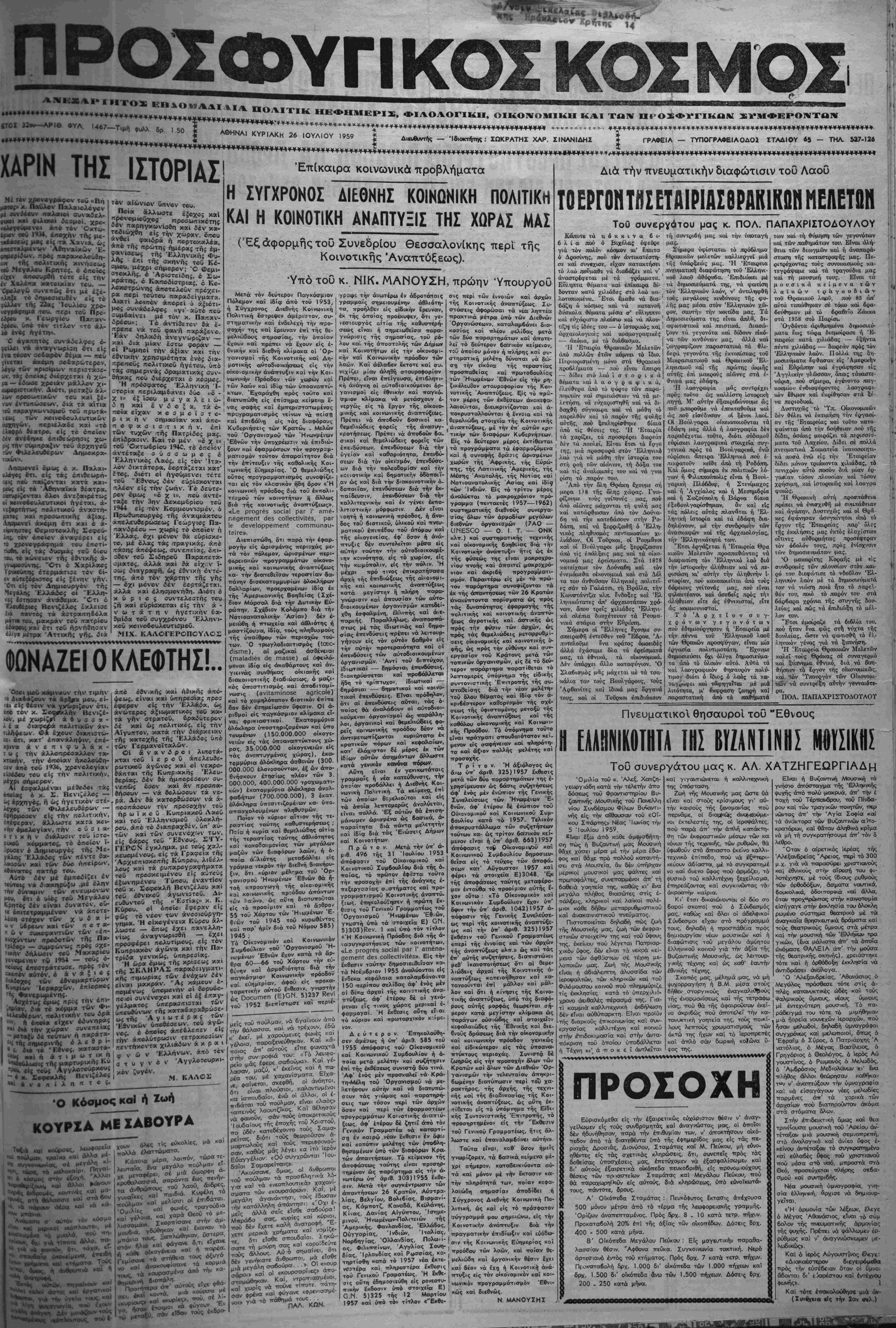 •Υπό τού κ. ΝΙΚ. ΜΑΝΟΥΣΗ, πρώην ΎπουργοΟ