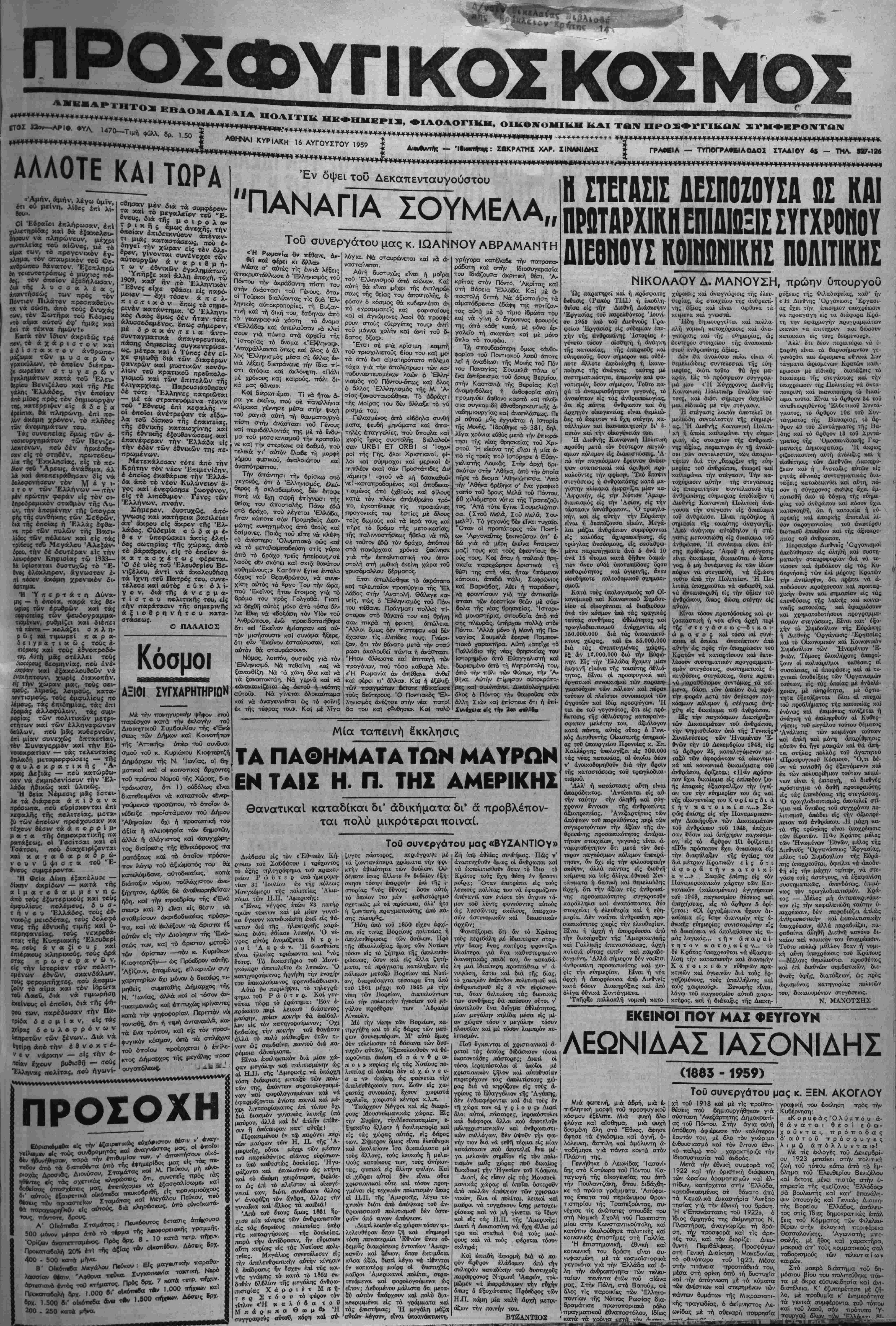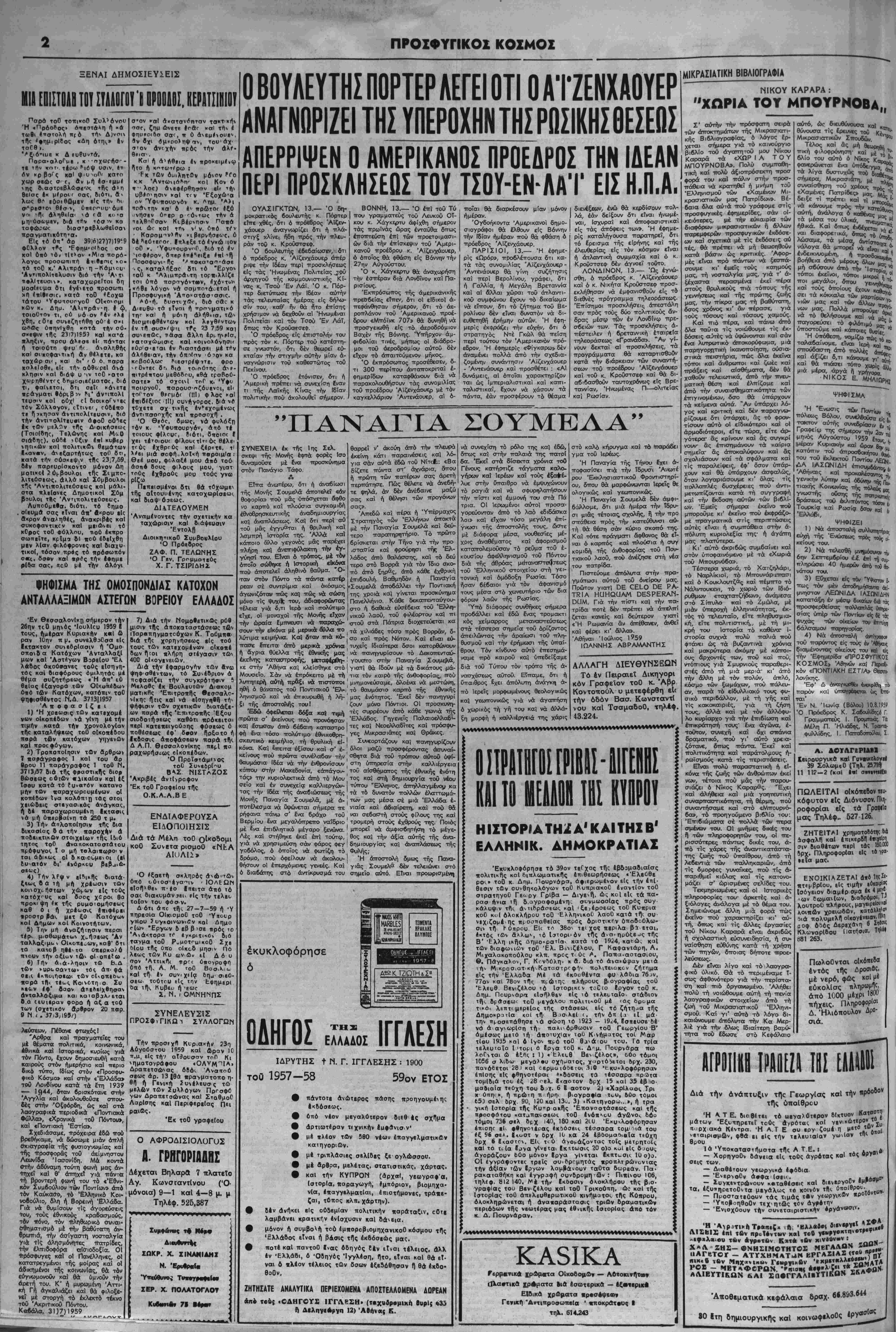 Γραφείω της σημερον την 2<λ «Χ μηνός Αύγούστου 1959 ϊτουζ ·! ΐμέραν Κυριακήν καΐ ώραν βην',7 κατόπιν τοϋ άπροοδοκιγτο^ * τού τού 6κλΒκ.τοΰ Π—'— ■ ΙΑΣΩΝΙΔΗ __ II αύτό, ώο διευθύνουσα καΐ κ θύνουσα τίς £ρευνες τού Κέ Μικρασιατικων Σττουδών. Τ*°" Τέλος καϊ άς ,μή θβωρτΛ; ττική φιλοφρόνηση· καϊ μέ α ^~ βλίο τού αύτό ό Νΐκος Κβοο^'* φανερώνίται ένα ύττόδειγιισ?? τα λίγα δυστυχώς ττοθ διθτν σήμερα, Μικρασιάτη, μ^ ^ν>