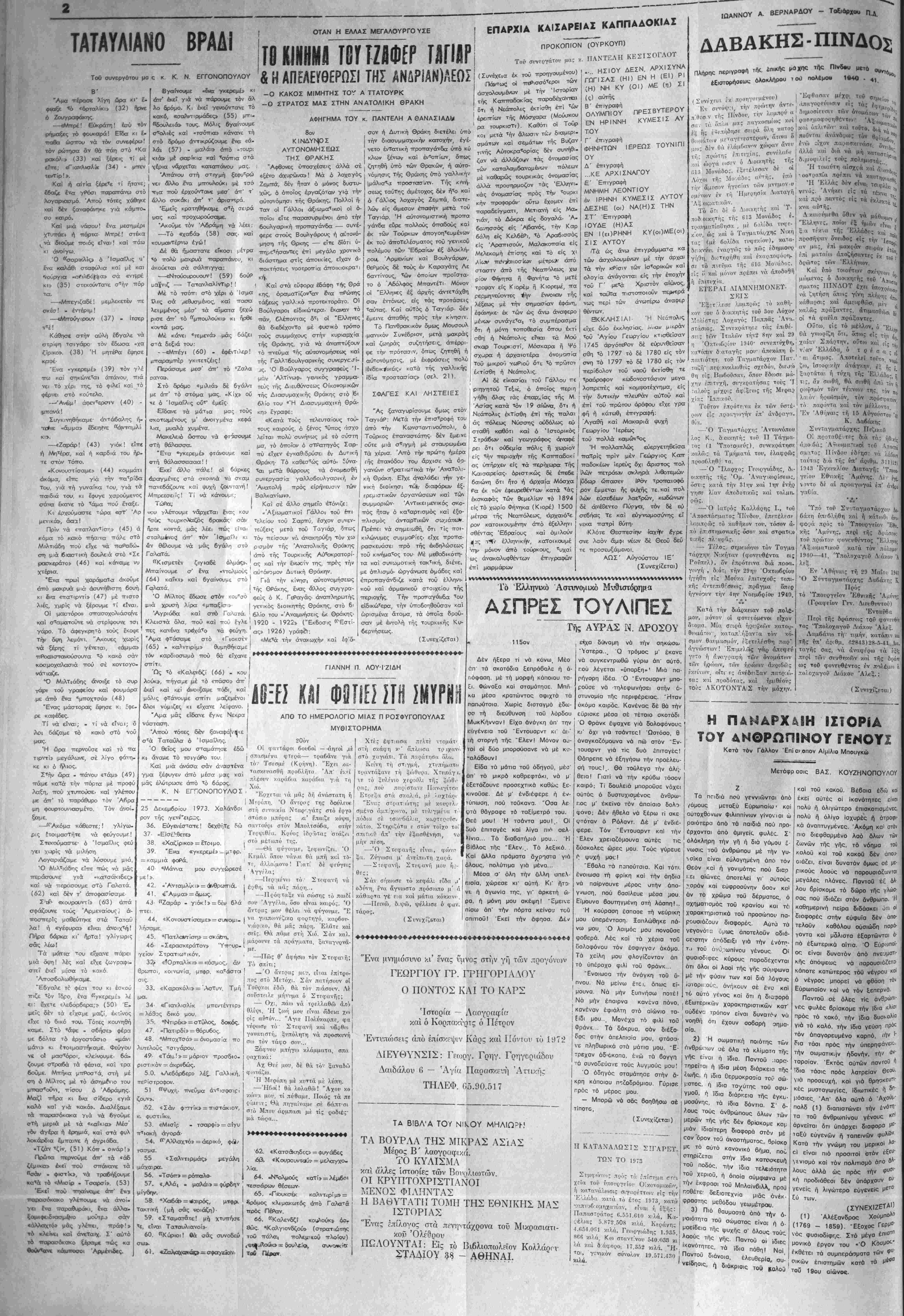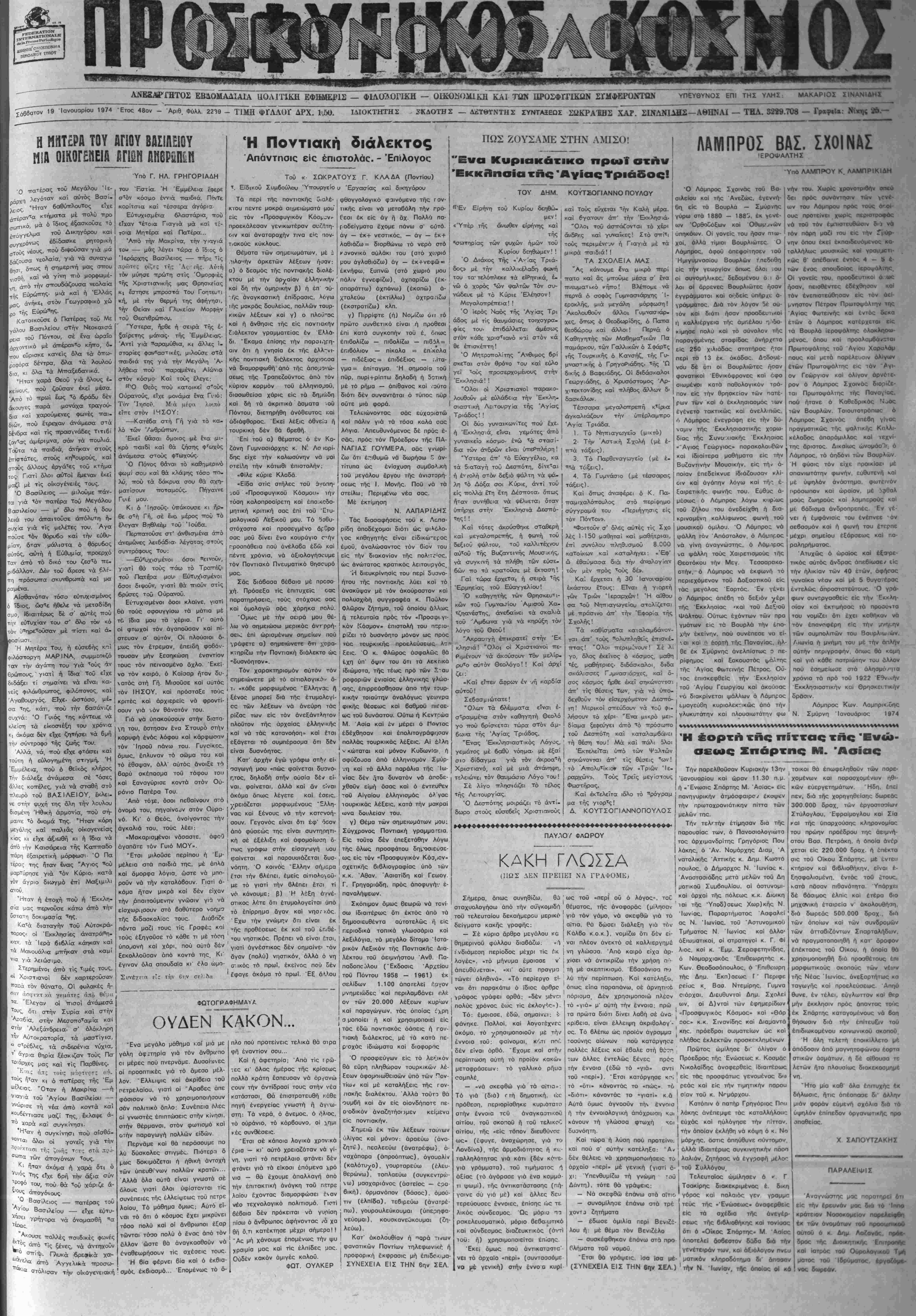 Σά66ατον 19 Ιανουαρίου 1974 Έτος 48ον - Αριθ. Φύλλ. 2239 _ Τ1ΜΗ ΦΓΛΛΟΓ ΔΡΧ. 1,50. ΙΔΙΟΚΤΗΤΗΣ 3ΚΔΟΤΗΣ — Δ£ΤΘΤΝΤΗΣ ΣΥΝΤΑΞΕΩΣ ΣίίΚΡΑΈΒΣ ΧΑΡ. ΣϋίΛΝΙΐΕΣ— ΑΘΗΝΑΙ — ΤΗΛ. 5289.Τ08 — ΓραφεΙ*: Νίκης 26.—