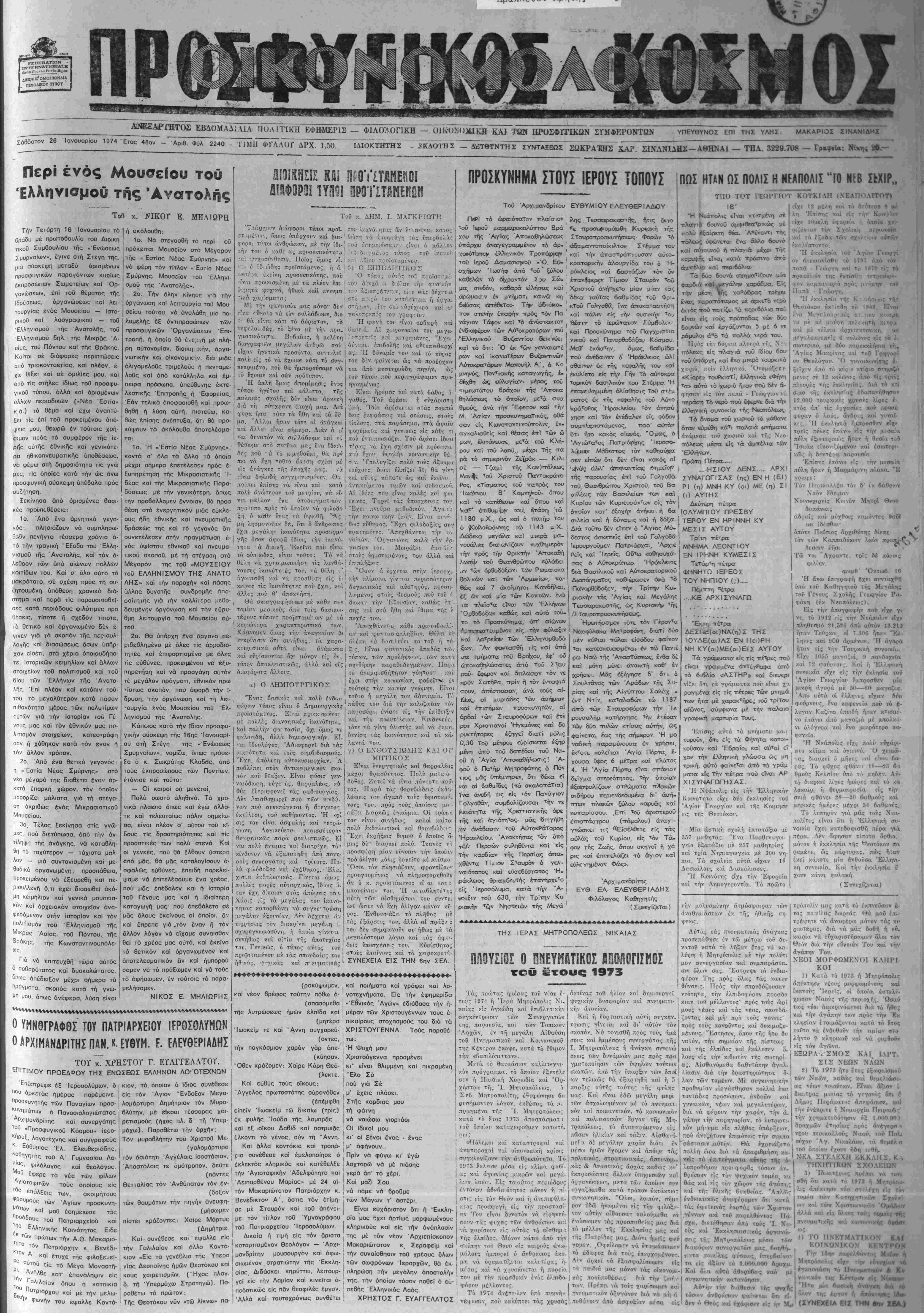 Σα6β0ΤΟν 26 Ίανουαρΐου 1974 "Επ* 48ον - Αριθ. Φύλ. 2240 - ΠΜιΓφΤλΛΟΥ ΔΡΧ. 1.50. Γδ"Ϊοκ"ιΉΤΗΣ -