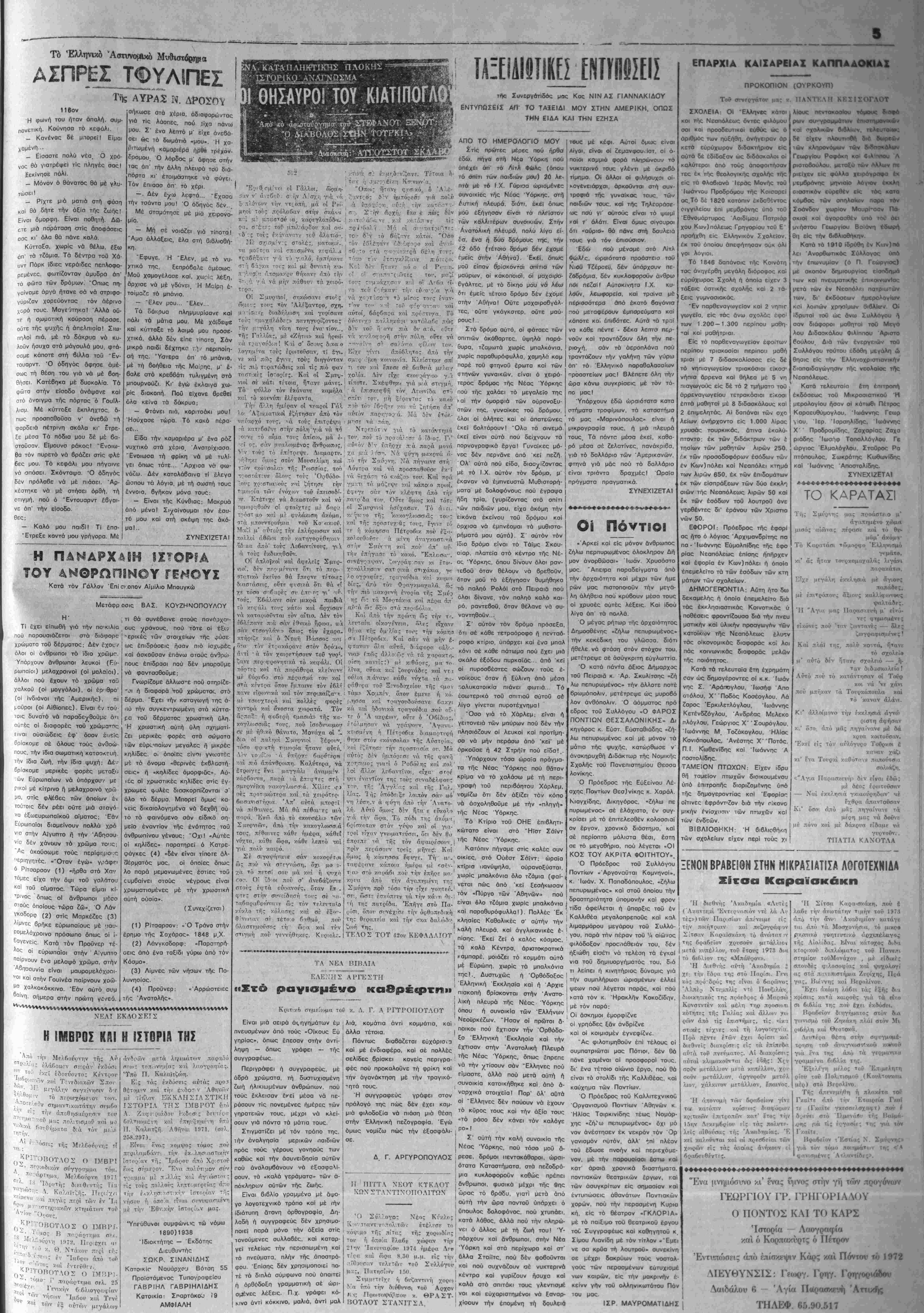 ντονονεί"" ; άναβιώση κ<ιί προαχθή ή τοπική άν ψ | γειοπλαστική, άπό μακράς παραδό Ηεϊνόνλον Κων)νος τού ΣτΕ(Γά σεω? «σκο»·μένη είς τύ χωρίον αί· νόν, έκ Σμύρνης. Ητνχιοϋχο; τής τοτ;,η? ^οή,τη:; . ; τοϋ Έθνιχοϋ !-- «ιδΐ5ί{Ιν νϋ ηανεπ.σττν αΐον Αθηνών ένταχβείς είς την Λη "<«αστάσει καί λειτουργία των εν αοσ,αν υπηρεσίαν τού υπουργείον λόγ(", μηχ<ινημάτων, ό νομάρχας * ' - — υ-Λ-'.------ γ γ Δΐ)ΐιόπονλος '.ξή- ναιτερομέν'ην πςοσ'τοράν να τελευταΐως'Πράόεδρο'ς Πρωτο Το{:' Οργαν,σμοϋ Χε.οοτεχνίας, ;^ς Λικαιοσύνης ώς Είρηνοδίκη;. Δ.-- Ρεθύμνης κ. τ?λεσε· Φορολογικό; ΠρΜτοδίκη; ρε_τίιΙ Α^η( Ήοακλε Φοοολογικών Δικαστηρίιην Κοήτη;. Απεβίωσεν σημαντικώς σνντεΛοϋιταν είς την έν γένει ανάπτυξιν τής ώς άνω κρητικής περιοχή-. —Έξ άλλου, στέλεγος τής άο- μοδίας υπηρεσίας τού "Οργανισμόν δεκάδα έςγαστηρίιον άγγειοπλ<ί(ΤΤ.- ΙΙαοίτσιις - ΙΔΙΩΜΑΤΙΣΜΟΙ - Ή κόνα Πιπίνα ήπήρε τσίροι (τσίρους). Ήάο;ησε λοιπόν τσοί τσίροι τση απάνω σέ μιά πέτοα κ ήπήε νά πιή ένα τσιτσιμπίρι (γκα ϊόζα). Γιά ν£ΐ πάη νά πιή τό τσιτσμπίοι τση, τσή κλέψανε τσοί τσίροι τση. —ΠΑΡΟΙΜΙΕΣ — Μιά Σαμιώτισσα, τής ΐίχε τή ή γιαγιά της αυτή την παροιμία. • «Μιά φορά είχε πέσει ενα σαμια μήδ.μ έσ' στό Ποτήριο, την "Αγια ΚοΐΛ'ίονία, κ.<ιί ή γάτα τό γάτξωσε μέ τό νύχ: της, τό 'βγαλε άπτό "Αγιο Ποτήριο καί τό 'φαγε, γιαν τό είναι καθαρό ζώο. Μά καί ή γλώσσά τη; είναι γανιομένη & ^ε,ν πιάνει άορώστεια. "Εχΐΐ έφτά ψι χές κι' οποίος σκοτιίινει γάτα, έ- φτά χοόνια δέν έχει προκοπή». Κ' έτθ'. λοιπόν άγ(ΐποΓ*σε τί; γά τες. Είχε πολλές στό σπίτι τη; /.αί τίς αφηνε νά τρώνε άπτά πιάτα της, ά(ίοΰ ητανε καθαρά ξοκι. Άλ λά αύτές εΓχανε έχινοκόκκους καί τηνέ -,ιολλήσανε την Τδια άπό αυτή την άοριόστεια. ΔΗΜ. ΑΡΧΙΓΕΝΗΣ κης Διατηρπ σήμερον Φροντιστή- | μοποιεί θανμάσι... Είναι φύσις πο- "" Μέσης" Έκπαιδενσεως έν Παγ , λν πεοίεργη. Ένδιαφέρεται ύπε·>