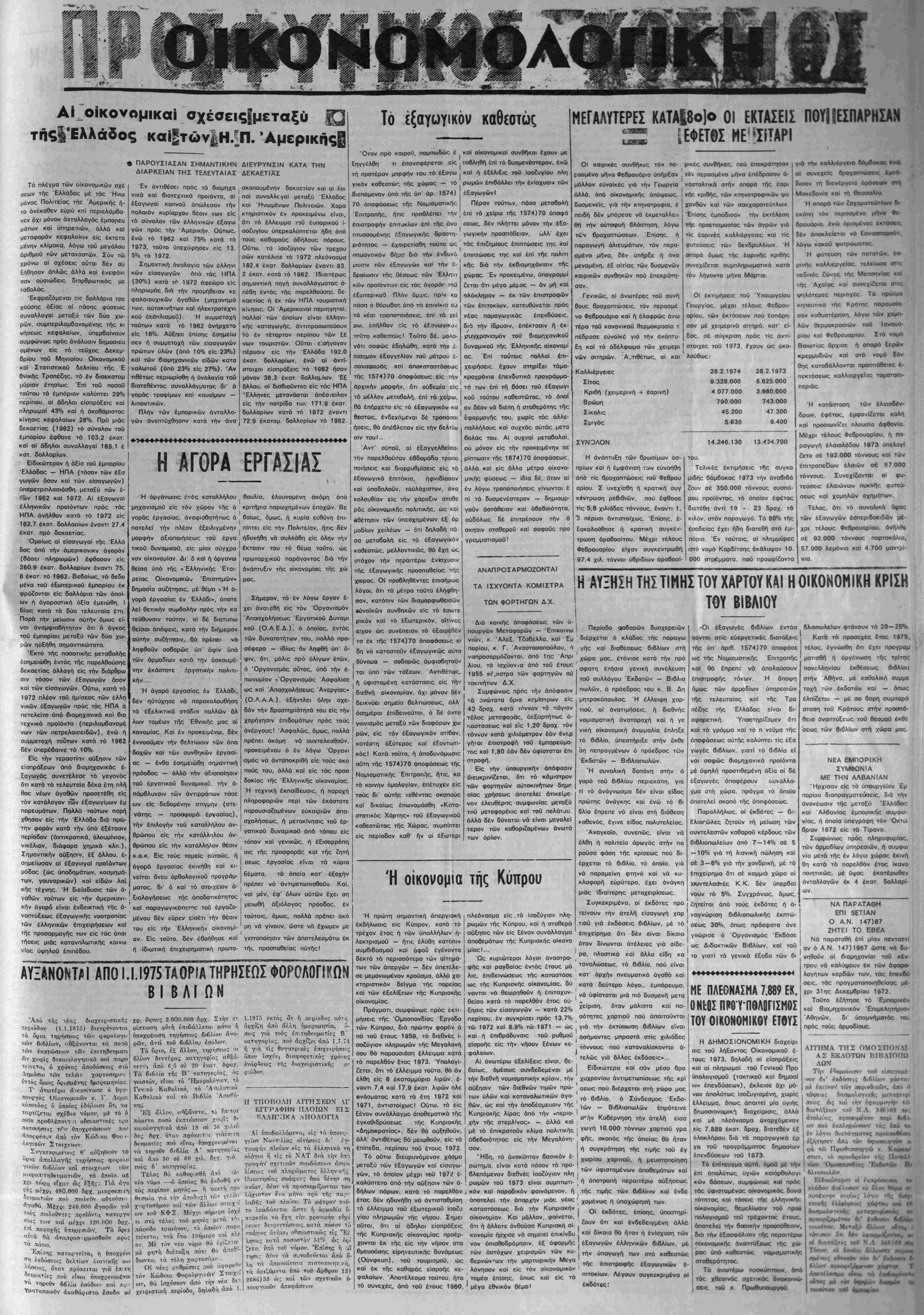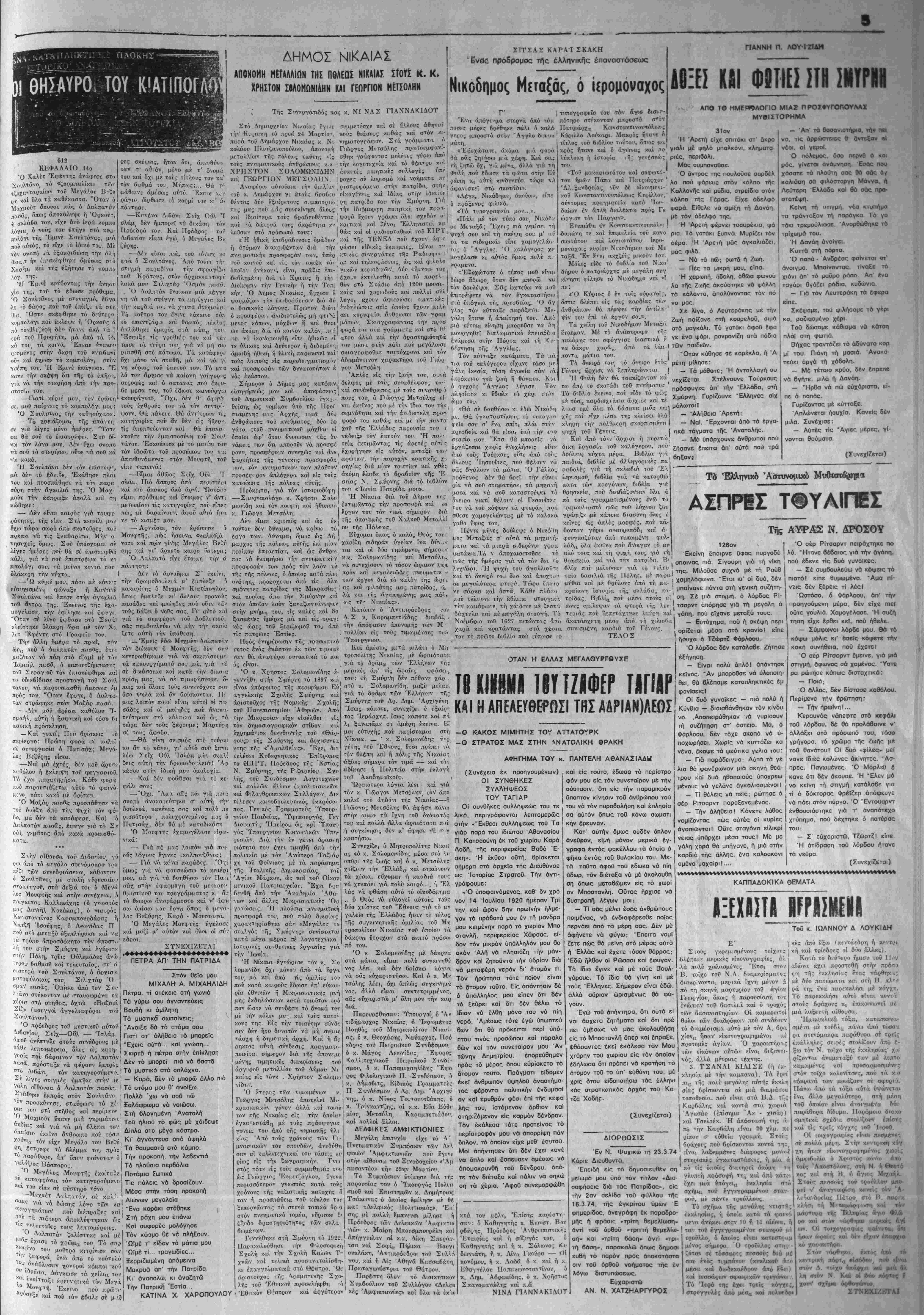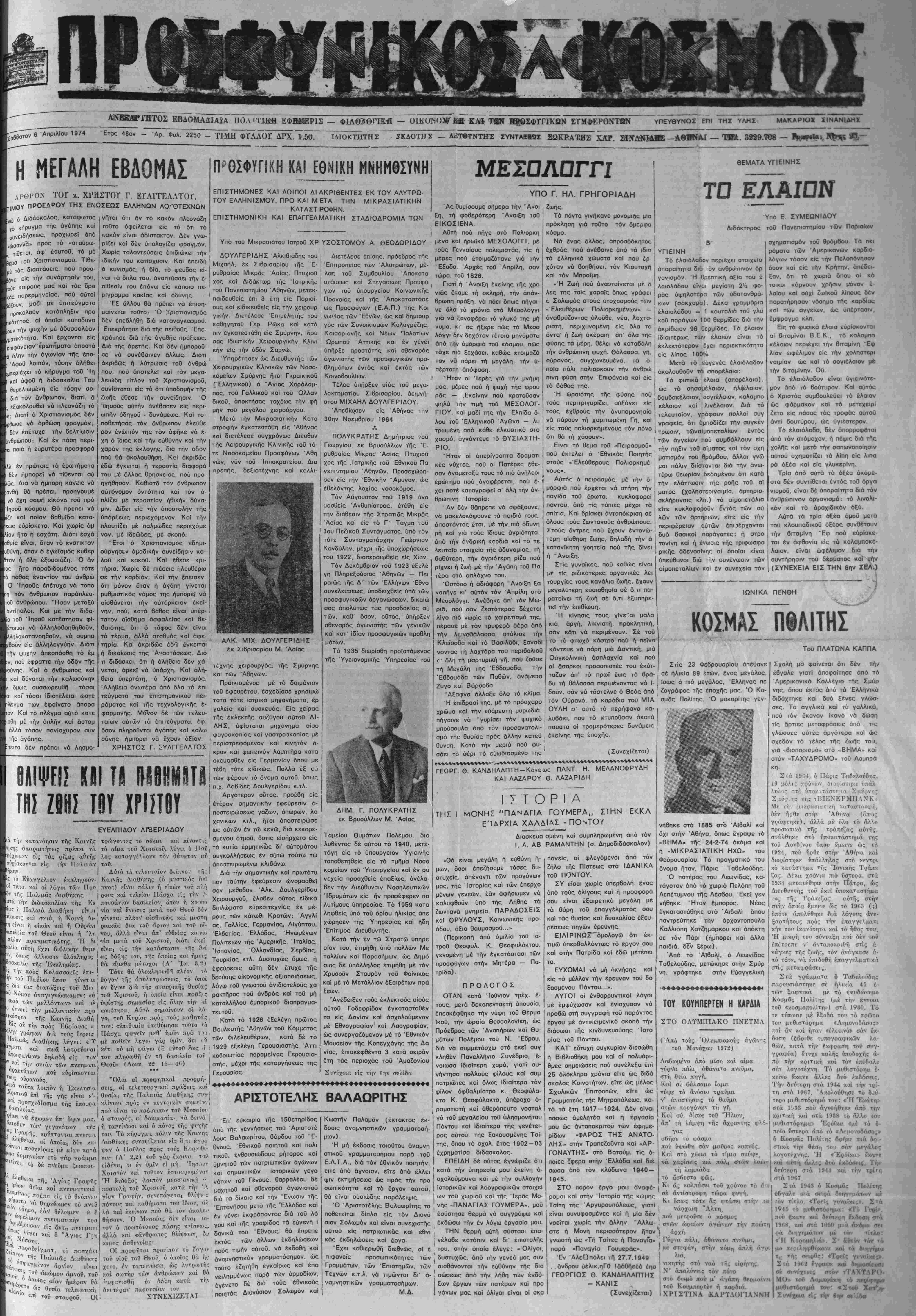 Σάββατον 6 Απριλίου 1974 Έτος 48ον - Αρ. Φυλ. 2250 - ΤΙΜΗ ΦΓΛΛΟΓ ΔΡΧ. 1,50. ΙΔΙΟΚΊΉΤΗΣ - 3ΚΔΟΤΗΣ - ΔΙίΤΜΝΤΗΧ ΣΥΝΤΑΪΙΚΙΣ ΖϋΚΡΑΈΗΐ: ΧΑΡ. ΜΚΛΝΗ-Ε-Αβ»ίϋ