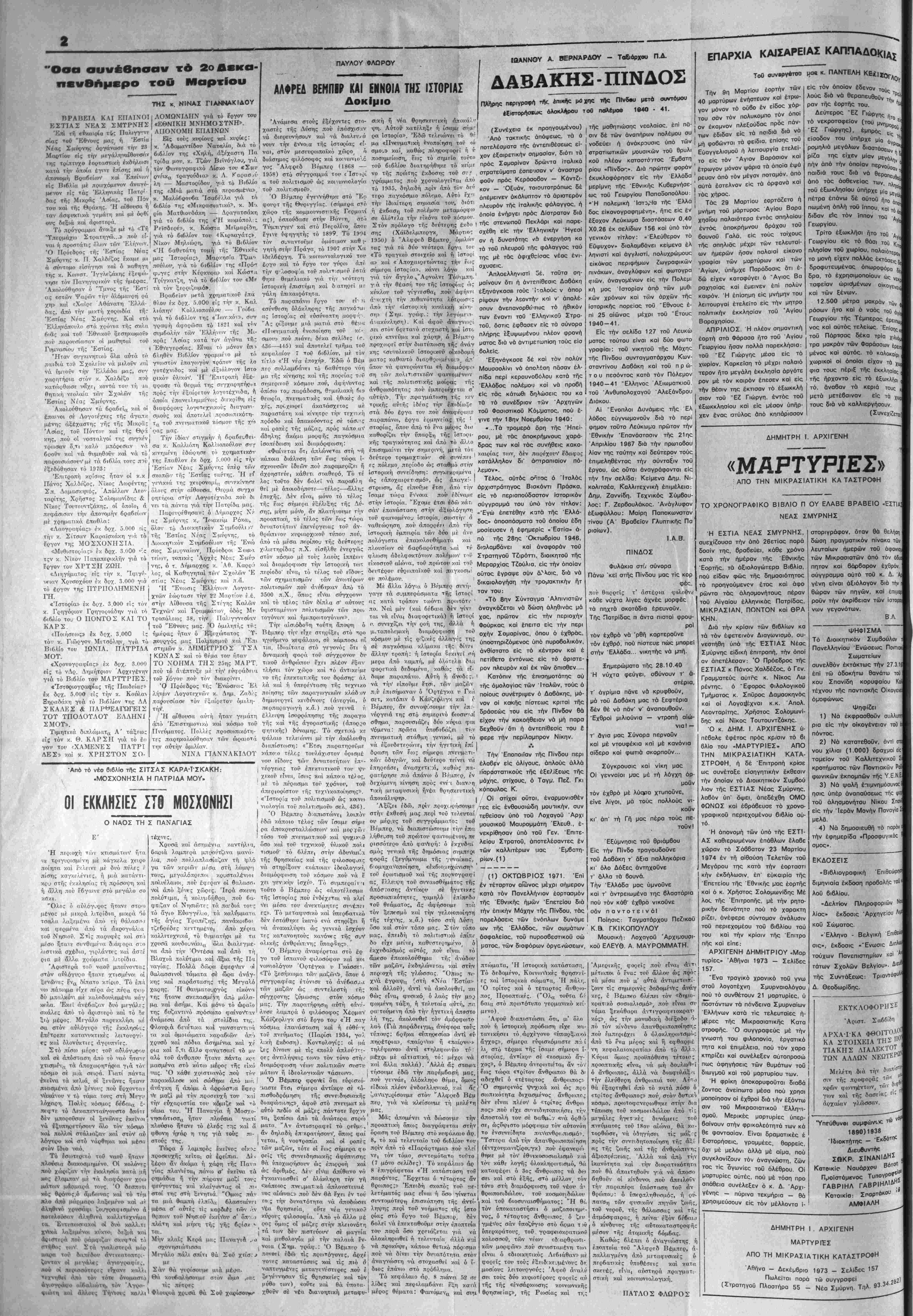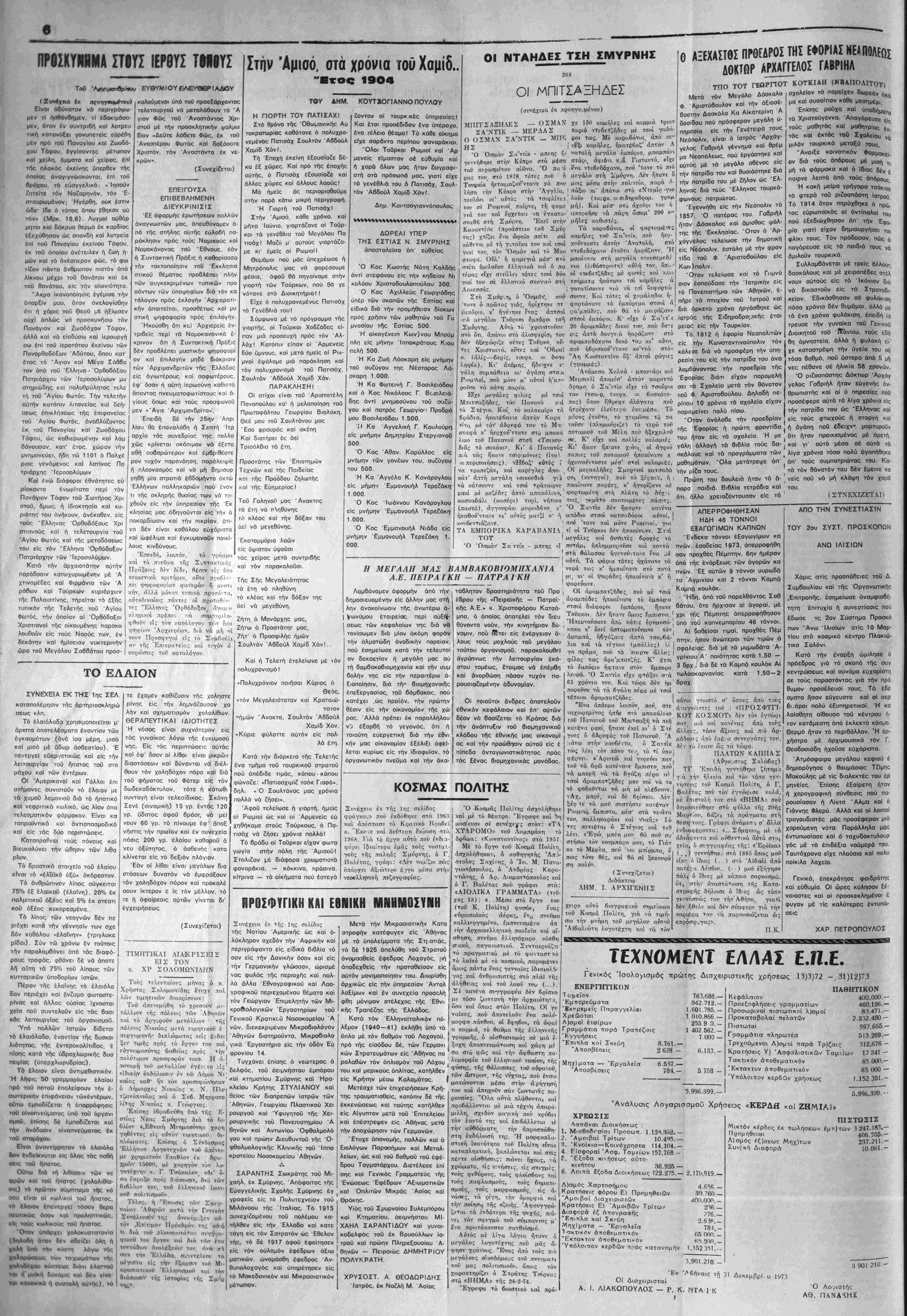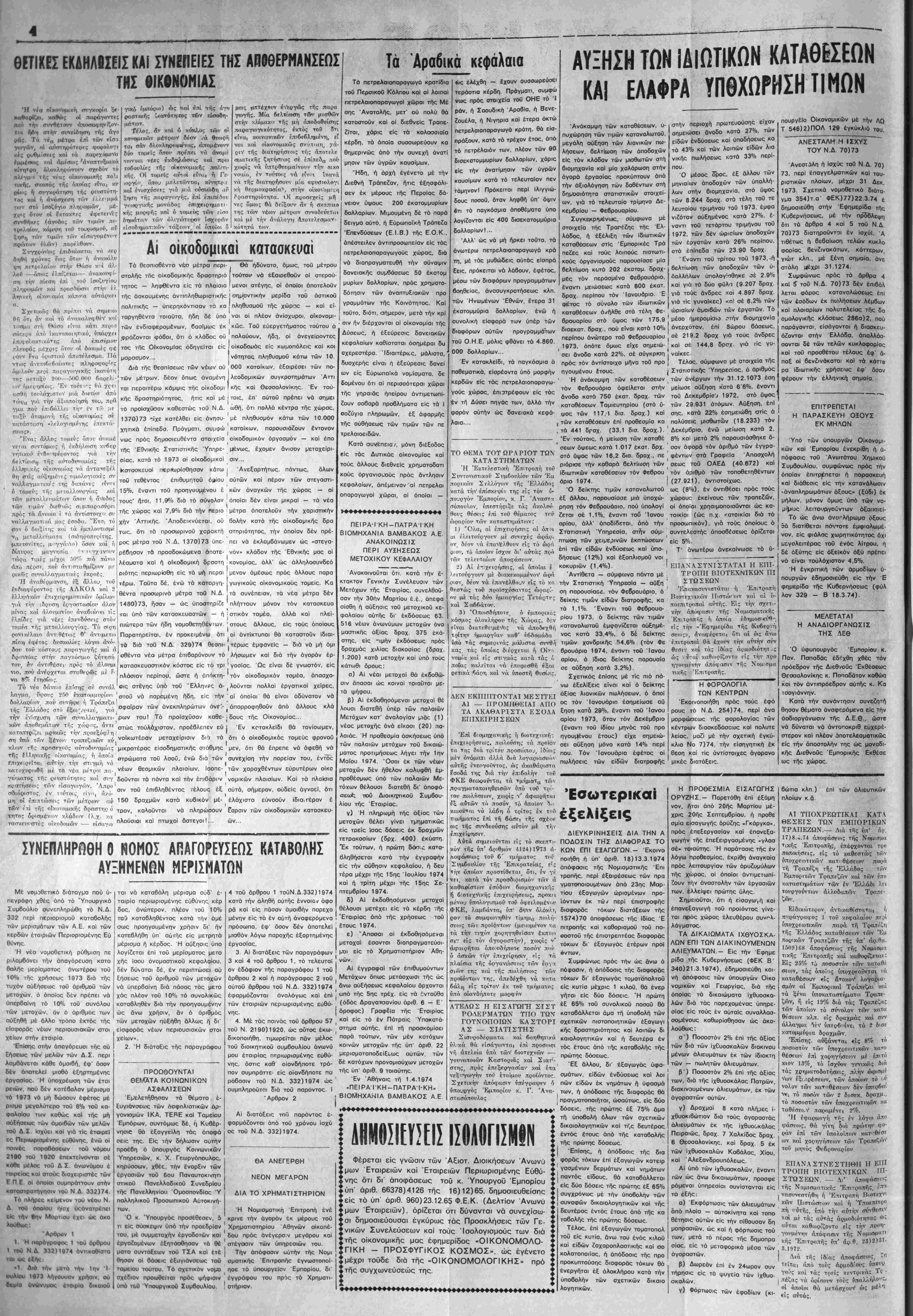 Σάββατον 6 Απριλίου 1974 Έτος 48ον - Αρ. Φυλ. 2250 - ΤΙΜΗ ΦΓΛΛΟΓ ΔΡΧ. 1,50. ΙΔΙΟΚΊΉΤΗΣ - 3ΚΔΟΤΗΣ - ΔΙίΤΜΝΤΗΧ ΣΥΝΤΑΪΙΚΙΣ ΖϋΚΡΑΈΗΐ: ΧΑΡ. ΜΚΛΝΗ-Ε-Αβ»ίϋ