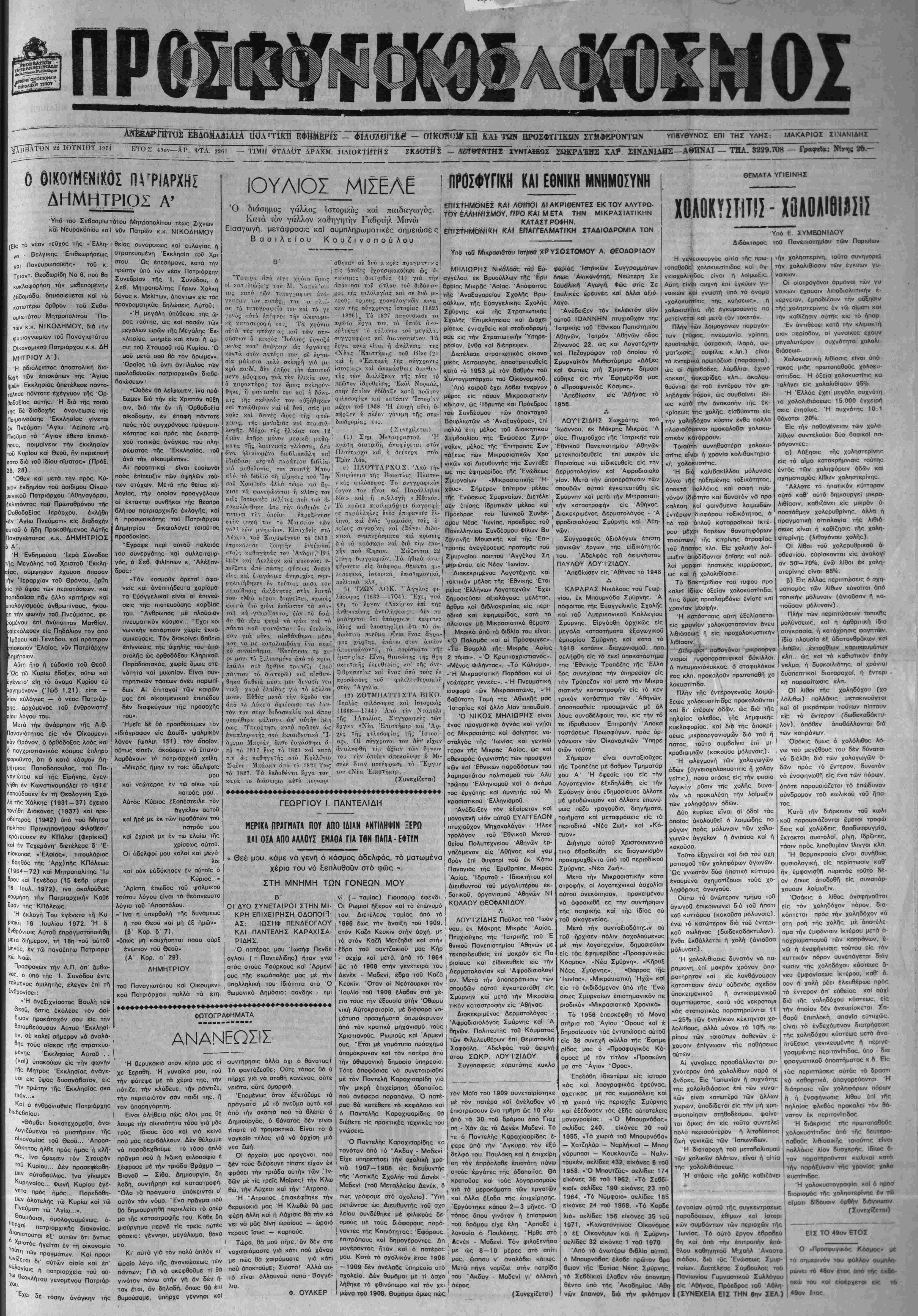 ΚΤΟΣ 4»ον—ΑΡ. ΦΤΛ. 2261 — ΤΙΜΗ Φ'ΤΛΛΟΤ ΔΡΑΧΜ. 31ΛΙ0ΚΤίίΤΗΣ 3ΚΑ0Τ#ί: - ΔβΤβϊ'ίίΤίΙΙ ίΥΜΤΑΙΒΟΣ Σ&ΚΡΑΈΒ- ΧΑΡ. ΣΠίΔΝΙ_ΗΣ— ΑΘΗΝΑΙ — ΤΉΑ. 3229.7Ό8 — Γραφείβ: ΝΙ—ς 26 —