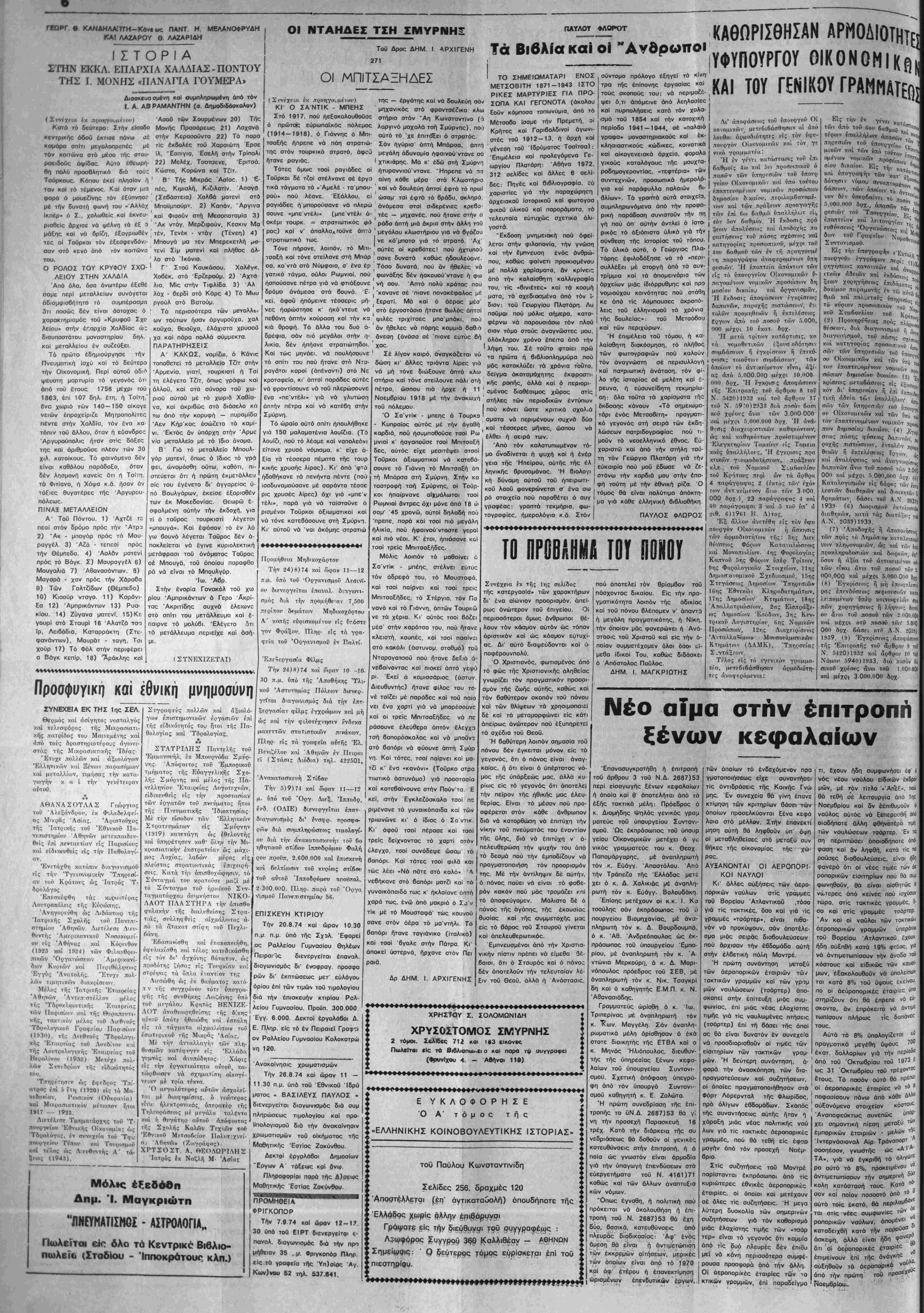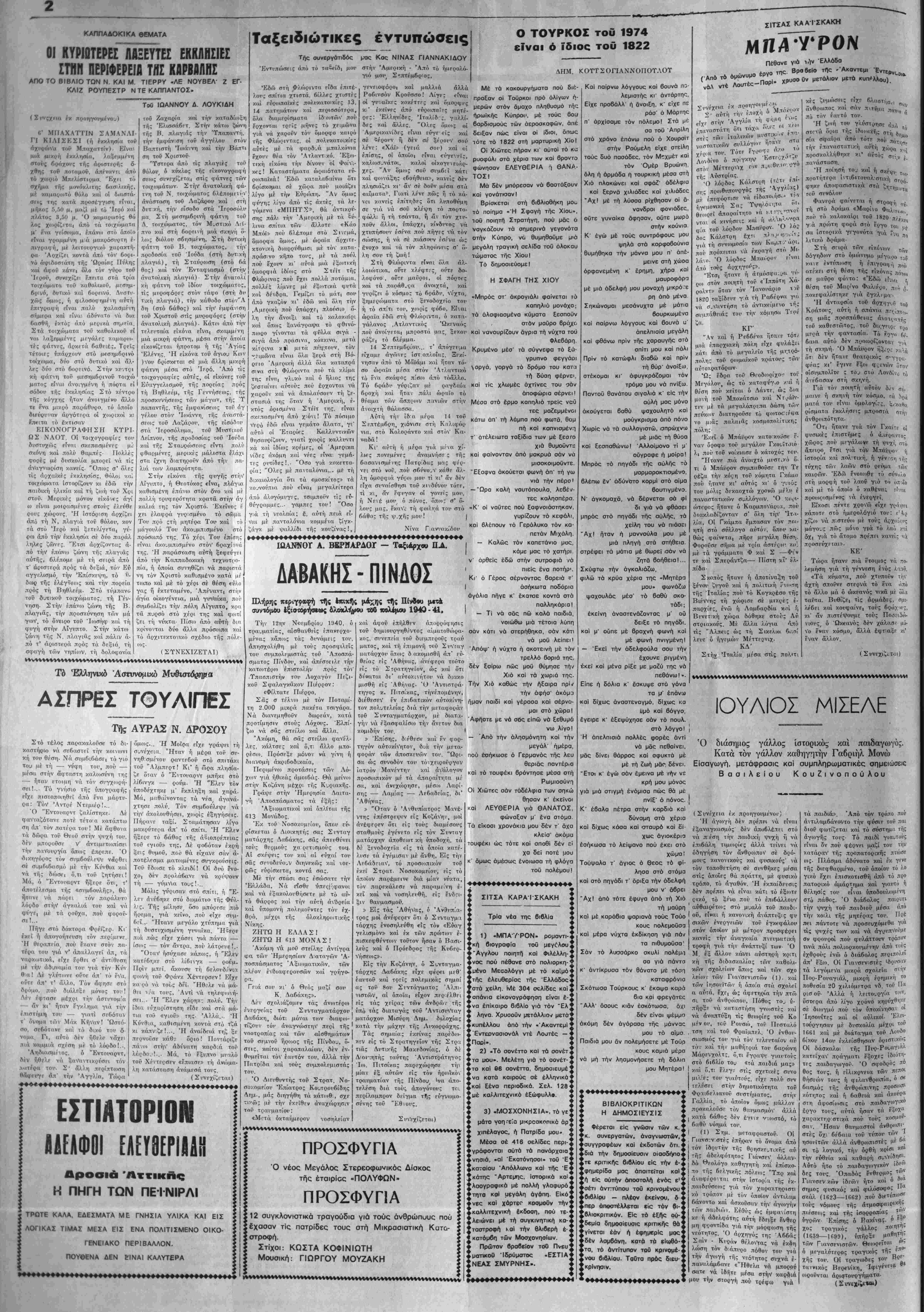 Έτος 49ον Άρ.θ. Φυλ. 2269 Σάββατον 17 Αύγούστου 1974 ΤΙΜΗ ΦΤΛΛΟΤ ΔΡΑΧΜ. 3ΪΑΙ0ΚΤΗΤΉΣ - 3ΚΔΟΤΗΣ _ ΔϋΤΘΤΝΤΗΧ ΣΥΐνΤΑΪΕβΣ ΣΩΚΡΑΈΗ- ΧΑΡ. ΣΙΝΔΝΙ__Σ —ΑΘΗΝΑΙ — ΤΗΛ. 3229.708 — Γε*φετ·> Νΐηης 2».