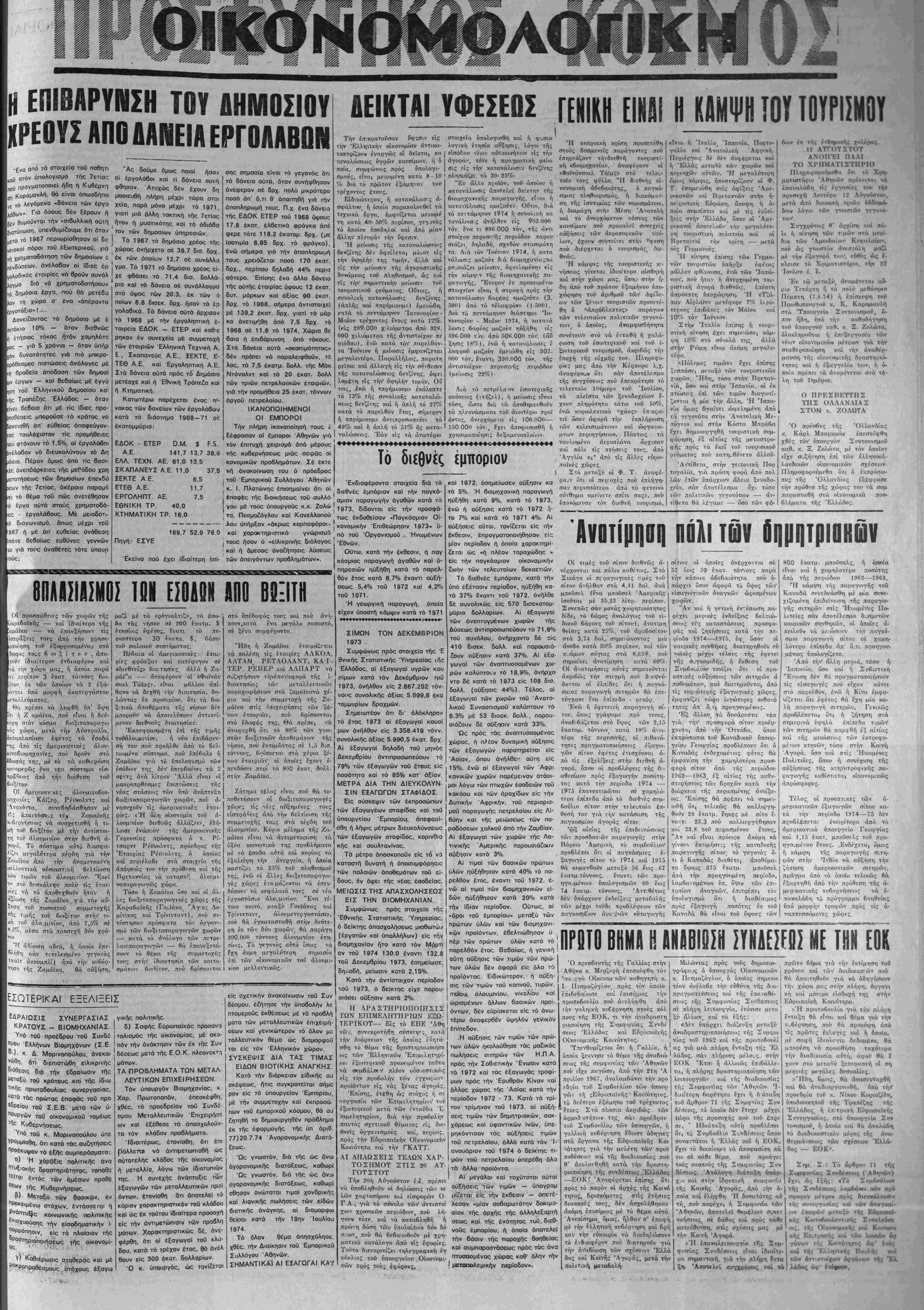 ΠΐΜλβΐται είς τά 0»βλιοηω<.ει α καί παρο τφ ουγγροφει (ΦρυνΙχου 4. - Αθήναι 110) 'θθθθθ»»»! Η Ε ΥΚΛΟΦΟΡ Ό Α' τόμος «ΕΛΛΗΝΙΚΗΣ ΚΟΙΝΟΒΟΥΛΕΥΤΙΚΗΣ ΙΣΤΟΡΙΑΣ» Σ Ε τής τοϋ Παύλου Κωνσταντινιδη Σελίδες 256, δραχμές 120 'ΑποοτέλλεχΦ (έπ' άγτικαταθολή) όπουδήποτε τής ! 3^λ"ΐν είς την ^ιεύ γγρο§ 3§θ ΚαΑΑιθέαν - Σημείωρις: ' ζ} ^ε^τερρς τόμο^ εήρ'Ρ^εΤΡ· επί τοϋ πιεοτηαι'§υ. Έπανοσυγκροτήθη ή έπιτροπή τοϋ άρθρου 3 τοϋ Ν.Δ. 2687)53 περί είοαγωγής Εένων κεφαλαίων ή όποία καί θ' όποτελήται άπό τά έΕής τακτικά μέλη: Πρόεδρος ό κ. Διομήδης Ψηλός γενικάς γραμ ματεύς τοϋ ύπουργείου Συντονι- σμοϋ. Ώς έκπρόσωπος τοϋ υπουρ γείου Οίκονομικών μετέχει ό γ£ νικός γραμματεύς τού κ. θεοχ. Παπαμάργαρης, μέ άναπληρωτή τόν κ. Εύάγγ. Αποστόλου. Άπό τήν ΤράπεΖα τής Ελλάδος μετέ χει ό κ. Δ. Χαλικιάς μέ άναπλη¬ ρωτή τόν κ. Εύάγγ. Βολουδάκη. Έπίσης μετέχουν οί κ.κ. Ι. Κα τσούλης οάν έκπρόσωπος τοϋ ύ πουργείου Βιομηχανίας, μέ άνα¬ πληρωτή τόν κ. Δ. Βουρδουμπδ, ό κ. Άθ. Άνδρεόπουλος ώς έκ¬ πρόσωπος τοϋ ύπουργείου Έμπο- ρίου, μέ άναπληρωτή τόν κ. Ά- ντώνιο Μερκούρη, ό κ. Δ. Μαρι- νόπουλος πρόεδρος τοΰ ΣΕΒ, μέ άναπληρωτή τόν κ. Νικ. Τσαγκρί δή καί ό καθηγητής Ε.Μ.Π. κ. Ν. Αθανασιάδης. Γραμματεύς ωρίσθη ό κ. Ιω. Τριπερίνας μέ άναπληρωτή τόν κ. ^ων. Μαγγέλη. Σάν άναπλη- ρωματικά μέλη όρίσθηοαν ό έκά στοτε διοικητής τής ΕΤΒΑ καί ο κ. Μηνάς Ήλιόπουλος, διευθυν¬ τής τής υπηρεσίας Εένων κεφα¬ λαίων τοϋ ύπουργείου Συντονι- σμοϋ. Σχετική άπόφαση υπεγρά¬ φη άπό τόν ύπουργό Συντονι- σμοϋ καθηγητή κ. Ε. Ζολώτα. "Η πρώτη ουνεδρίαση τής έπι¬ τροπής το 0Ν.Δ. 2687)53 θά γ! νη τήν προσέχη Παροοκευή 16 τρέχ. Κατά τήν διάρκεια τής ου νεδριόσεως θά δοθούν οί γενικές κατευθύνσεις στήν έπιτροπή, ή ό ποία ώς γνωστόν είναι αρμοδία γιά τήν ύπαγωγή έπενδύσεων στά εύεργετήματα τοϋ Ν. 4161)71 καθώς καί τών δλλων άναπτυΕια κων νόμων. Όπως έγνσθη, ή πολιτική πού πρόκειται νά ακολουθήση ή έπι¬ τροπή τοϋ Ν. 2687)53 θά έχη δύο, βασικά, κατευθύνσεις όπό πλευράς διαδικασίαν: Άφ' ενός όμεοη θά είναι ή αντιμετωπίση τών έκκρεμών αιτήσεων, μερικές των οποίων είναι άπό τό *Ι97Ο κοί άφ' ετέρου ή έπανεκτΐμηση !* | ωρισμένων έπενδυτικών έργων, τών οποίων τό ενδεχόμενον πρα γματοποιήαεως είχε συναντήσει τίς αντιδράσεις τής Κοινής Γνώ μης. Έν συνεχεία θά γίνη έπανε κτίμηση τών κριτηρίων βάσει τών οποίων προαελκύονται ξένα κεφά λαια στό μέλλον. Στήν έπανεκτί μηση αυτή θά ληφθούν ύπ' όψη οί μεταδληθεϊσες στό μεταξύ συν θήκες τής οίκονομίας τής χώ¬ ρας. ΑΥϊΑΝΟΝΤΑΙ ΟΙ ΑΕΡΟΠΟΡΙ- ΚΟΙ ΝΑΥΛΟΙ Κι' όλλες αύξήσεις τών άερο- πορικών ναύλιον στίς γραμμές τοϋ Βορείου Άτλαντικοϋ ,τόσο γιά τίς τακτικές, δσο καί γιά τίς γρομμές «τσάρτερ», είναι πιθα¬ νόν νά προκύψουν, σάν άποτέλε- σμα μιός σειράς διαβουλεύσεων πού ήρχισαν την έβδομόδα αυτή στήν έλβετική πόλη Μοντρέ. Ή πρώτη ουνάντηση μεταζύ τών άεροπορικών έταιριών τών τακτικών γραμμών καί τών γραμ μών ναυλώσεων (τσάρτερ) άπο- σκοπεϊ οτήν έπίτευΕη μιάς συμ¬ φωνίας, επί μιός νέας ελαχίστης τιμής γιά τίς ναυλωμένες πτήσεις (τσάρτερ) επί τή βάσει τής όποί άς θά είναι δυνατόν έν συνεχεία νά προοδιορισθοϋν οί τιμές τών είσιτηρίων τών τακτικών γραμ- τι, έχουν ήδη συμφωνήσει έφ ϊ νός νέου ναύλου είδικών έκδρο- μών, μέ τόν τίτλο ■."Απ'έΕ», ποκ θά τεθή σέ λειτουργϊα όπό 1 ής Νοεμβριού καί δν έέπιθυμοϋν ό ναϋλος αύτάς νά Εέπερασθη απο οιαδήποτε άλλη φθηνοτέρα τών νσυλώσεων τοάρτερ. Εν ιο ση περιπτώσει όποιαδήποτε άπό¬ φαση καί άν ληφθή, κατά τίς πά ροϋαες διαβουλεύσ